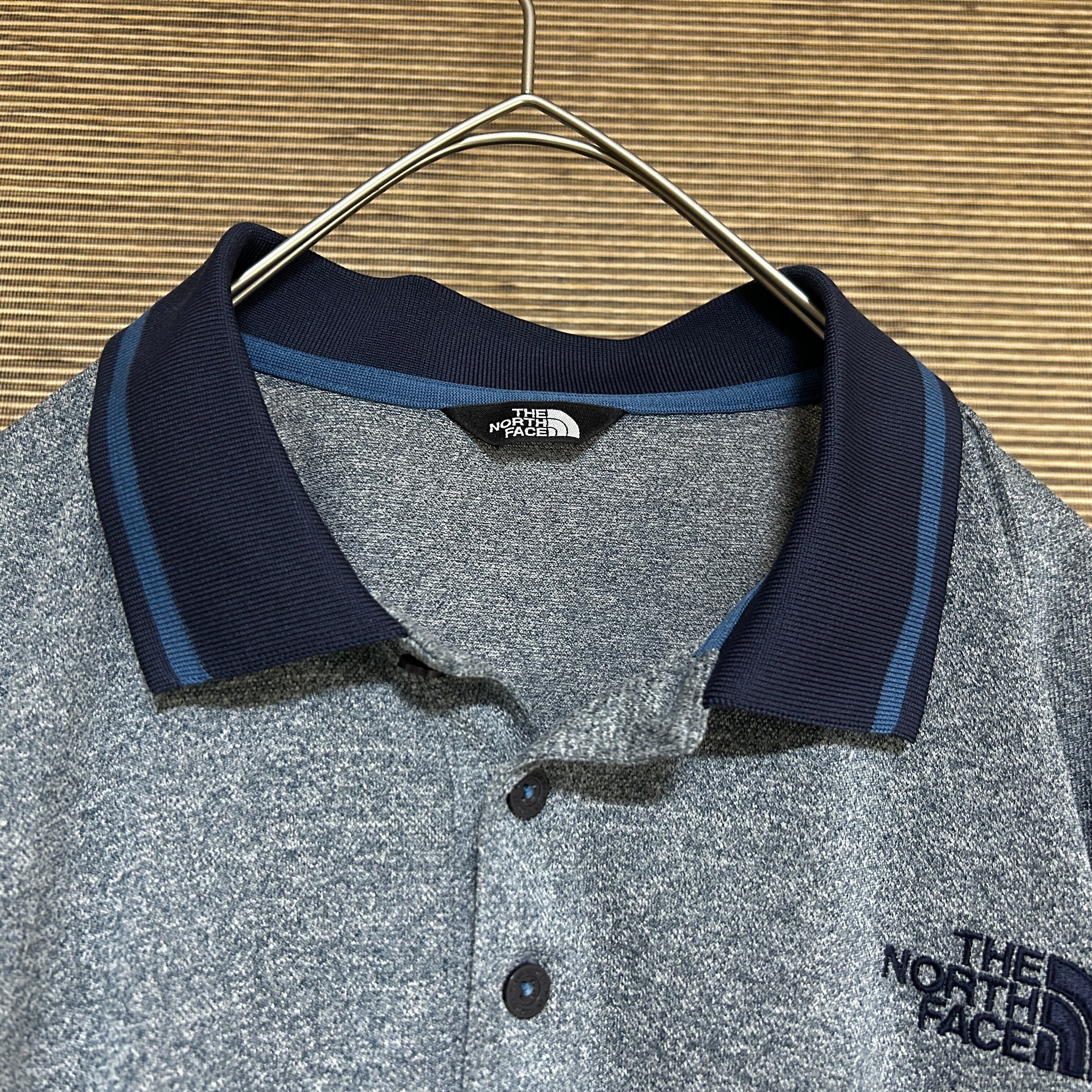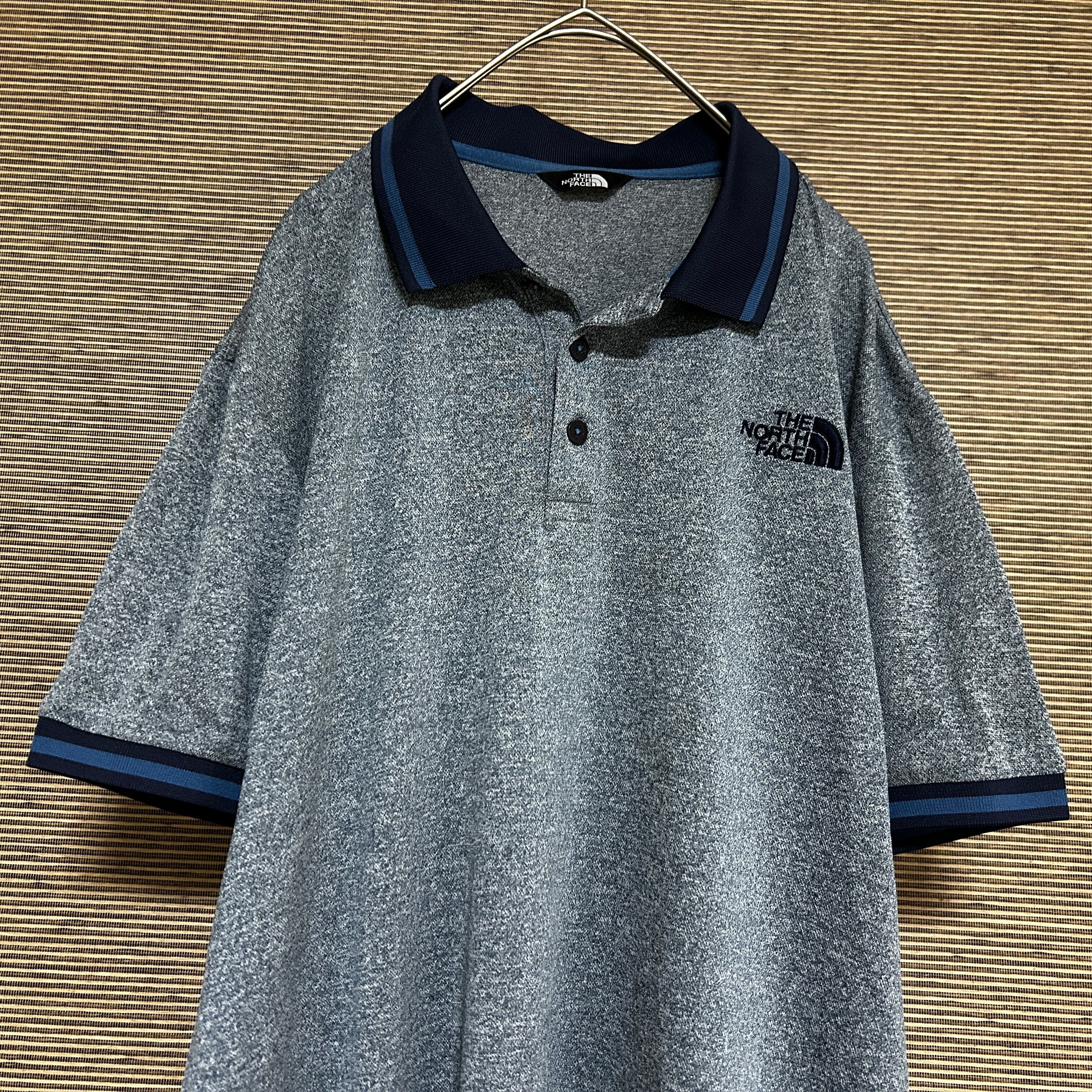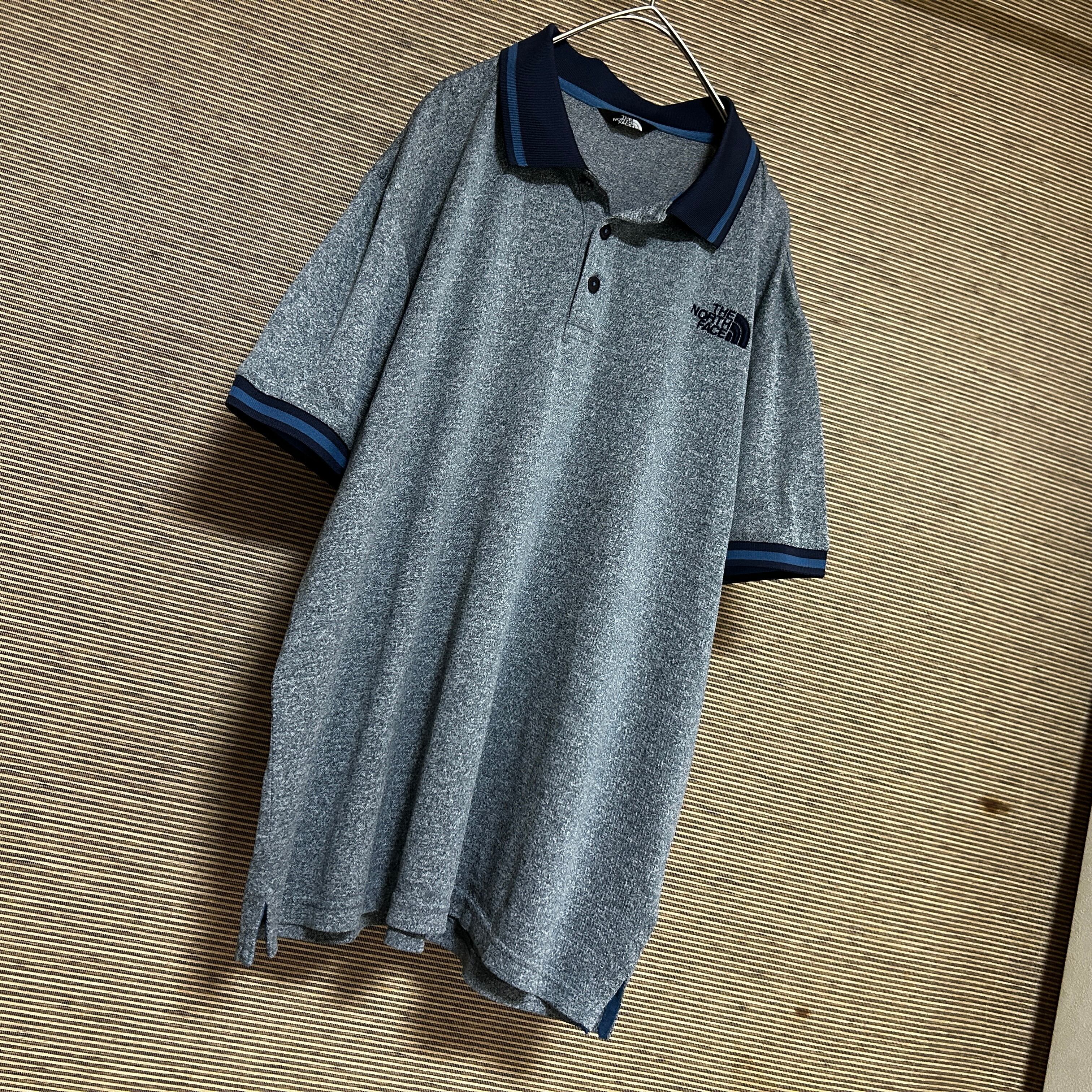 ノースフェイス 半袖ポロシャツ くすみネイビー ドライ ボーダー 刺繍 N 古着 ワンポイントロゴ 人気