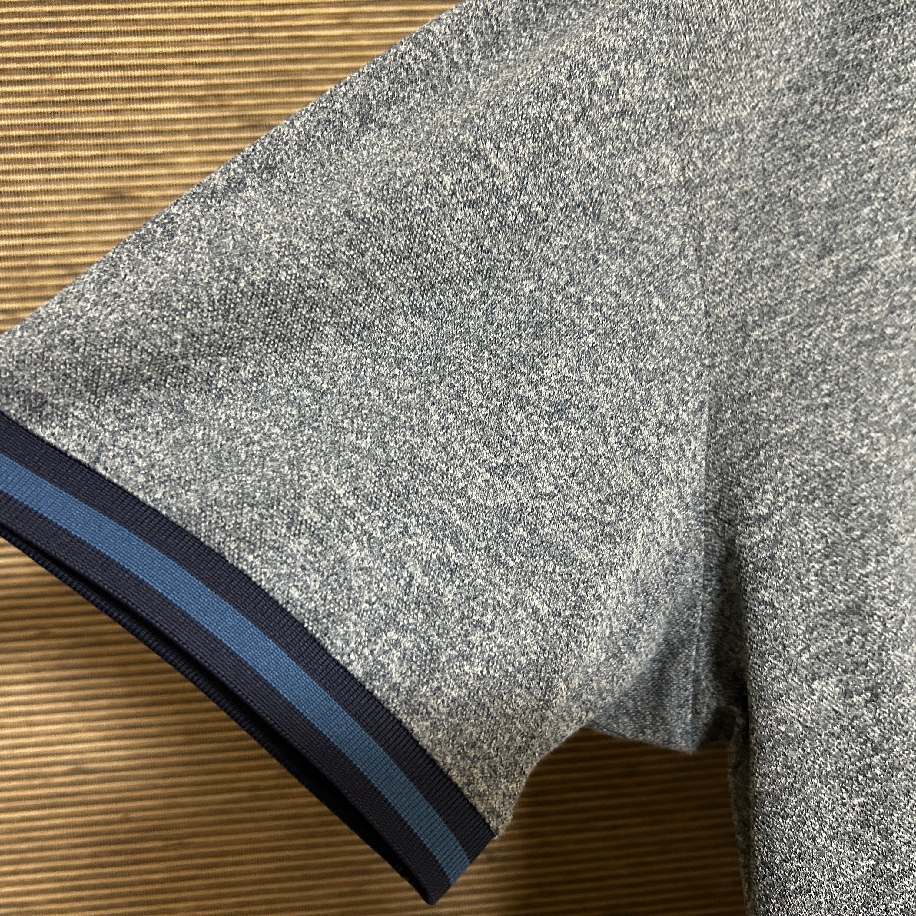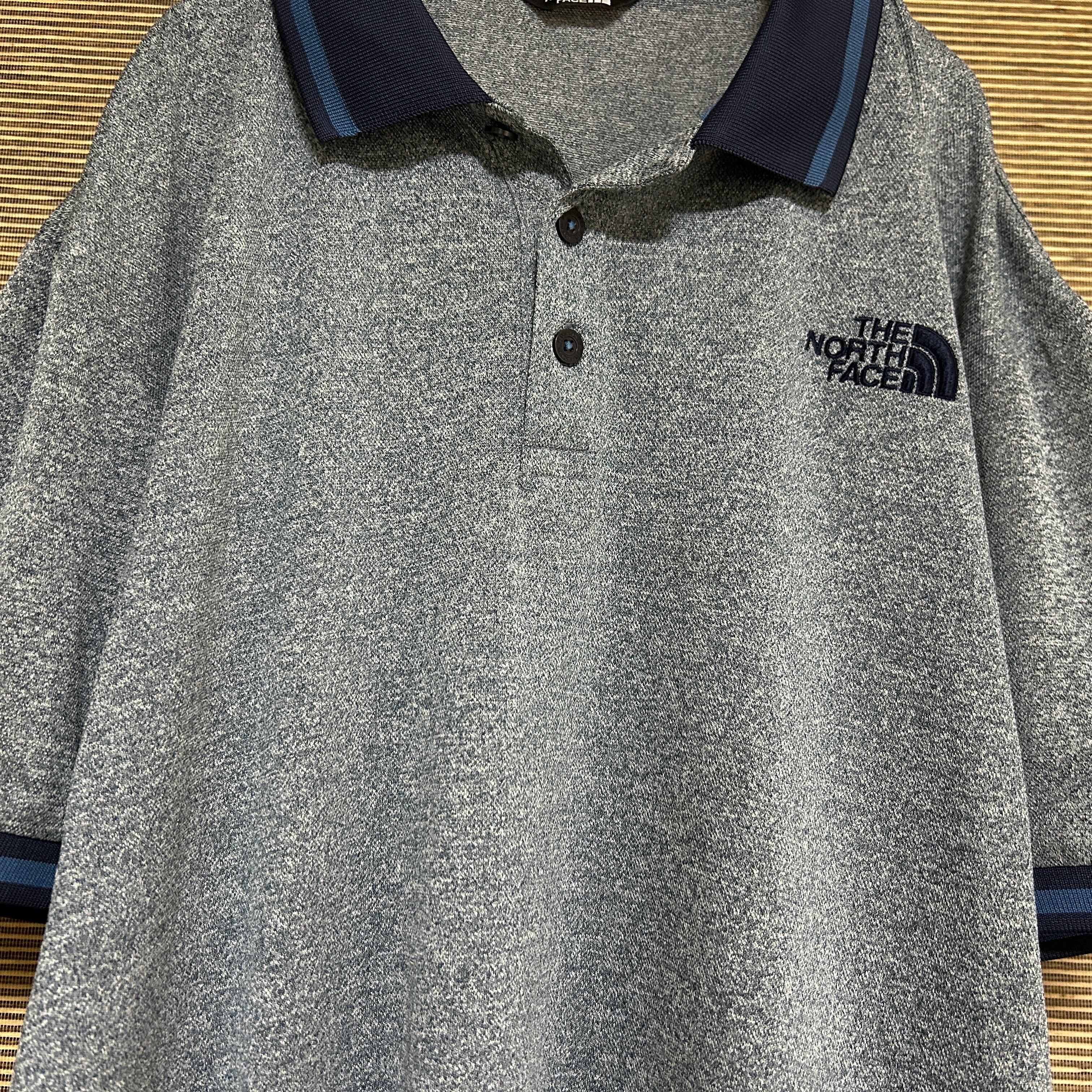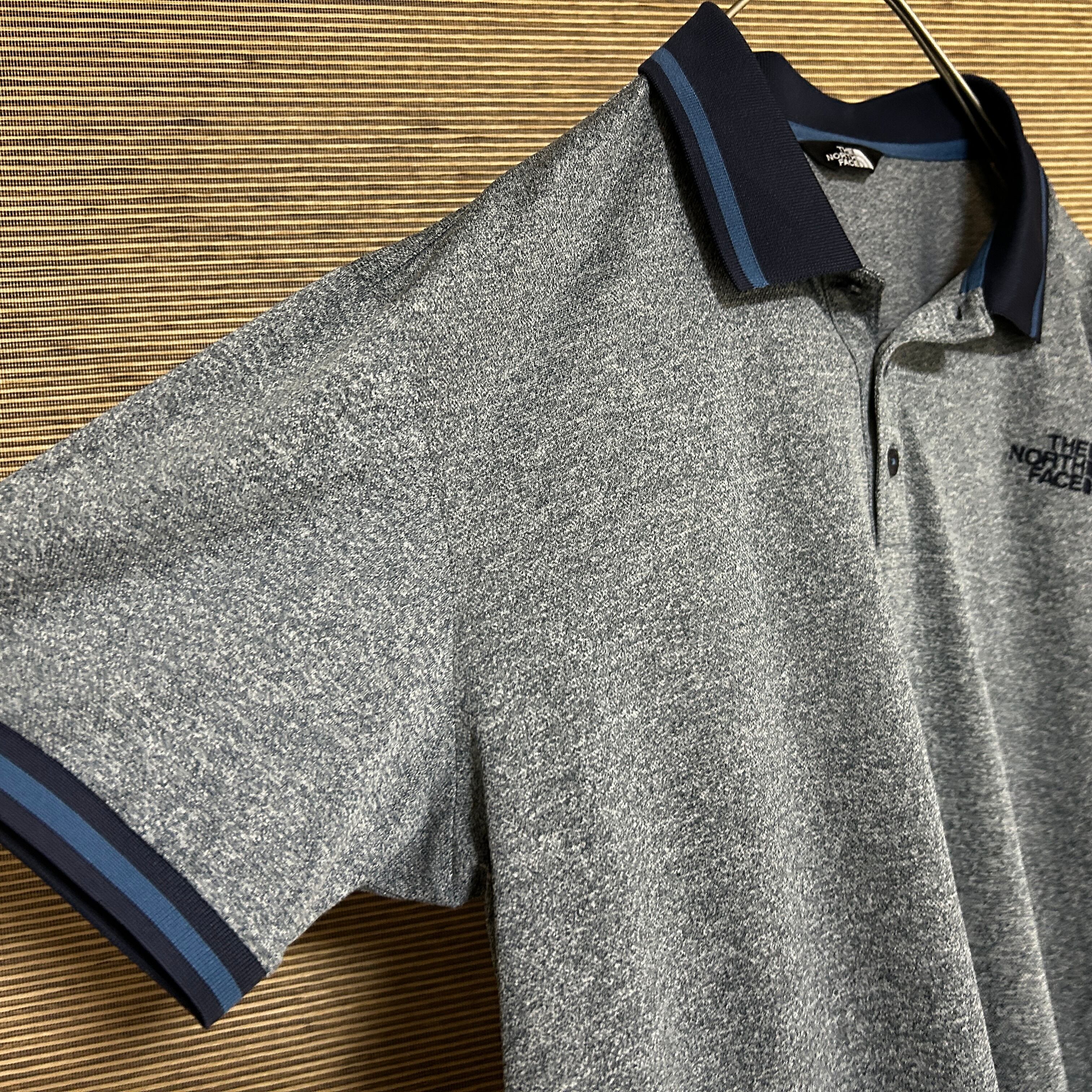ノースフェイス 半袖ポロシャツ くすみネイビー ドライ ボーダー 刺繍 N 古着 ワンポイントロゴ 人気
