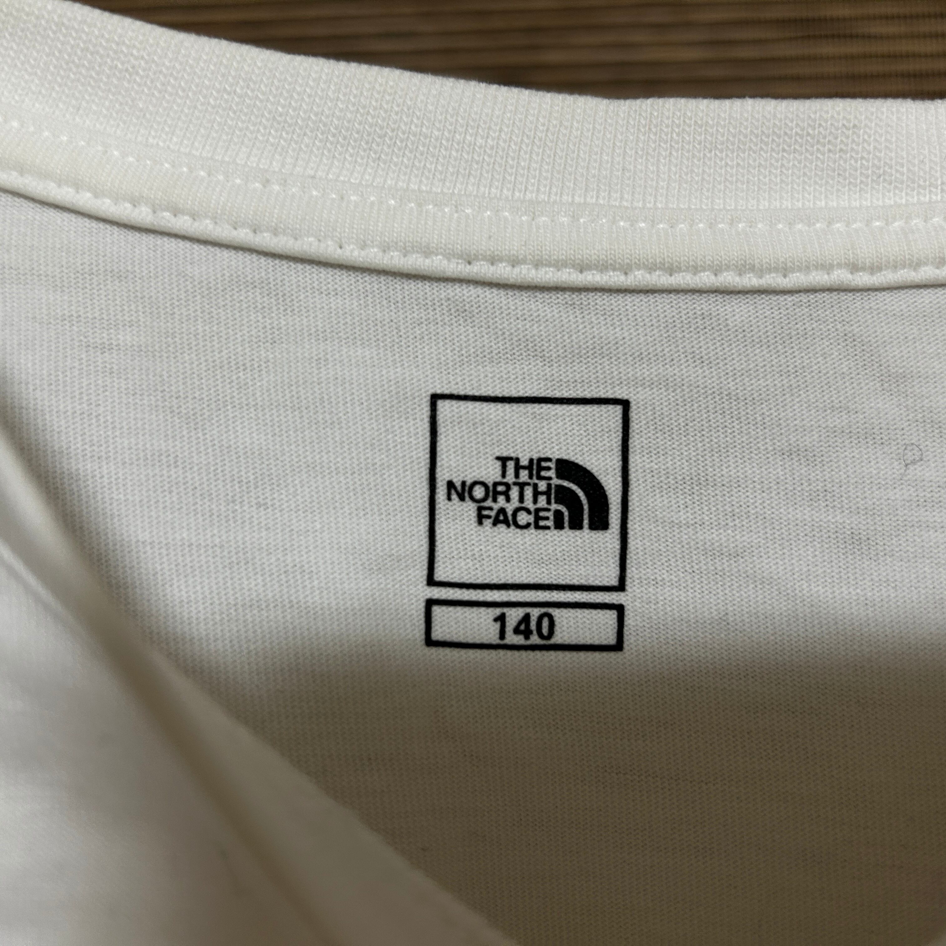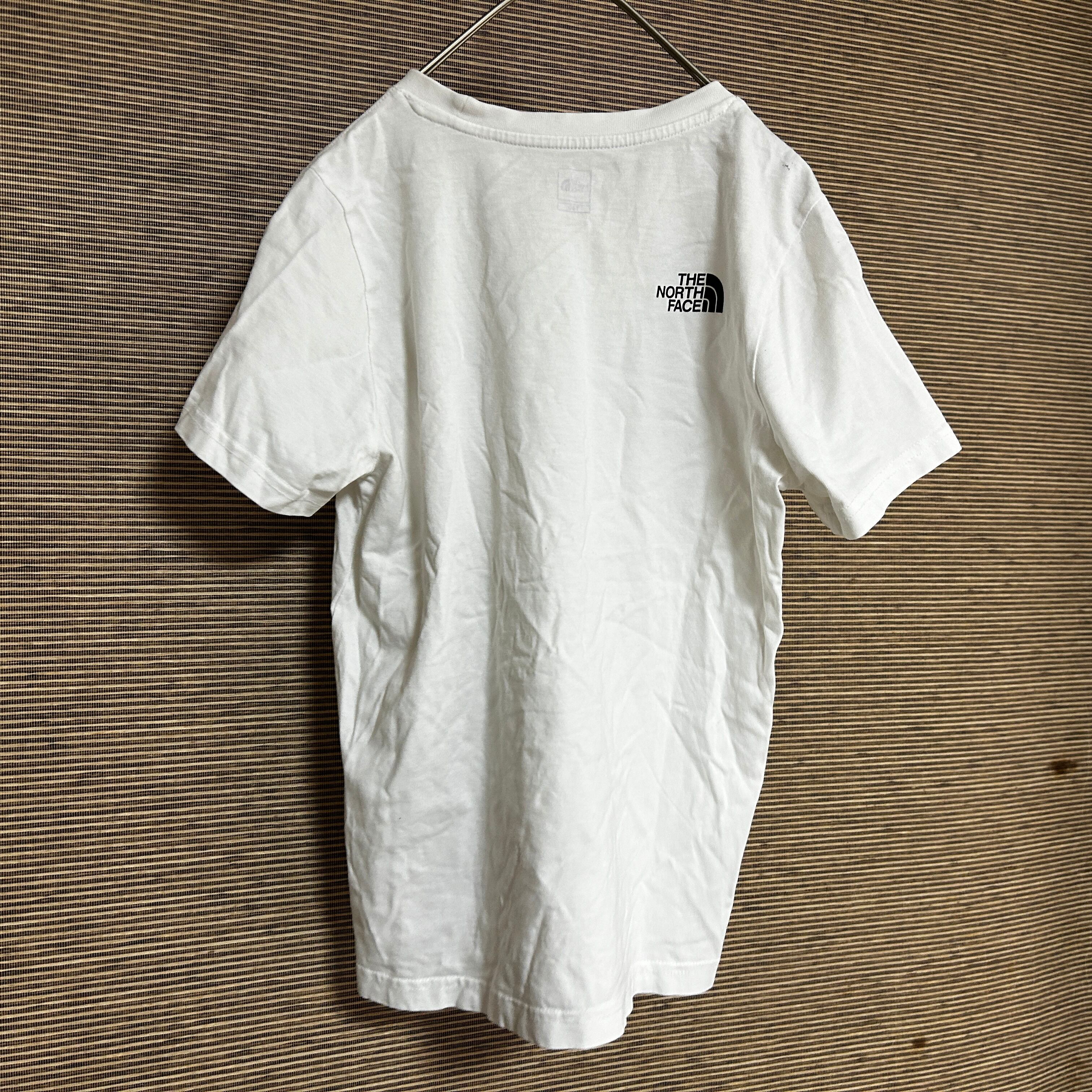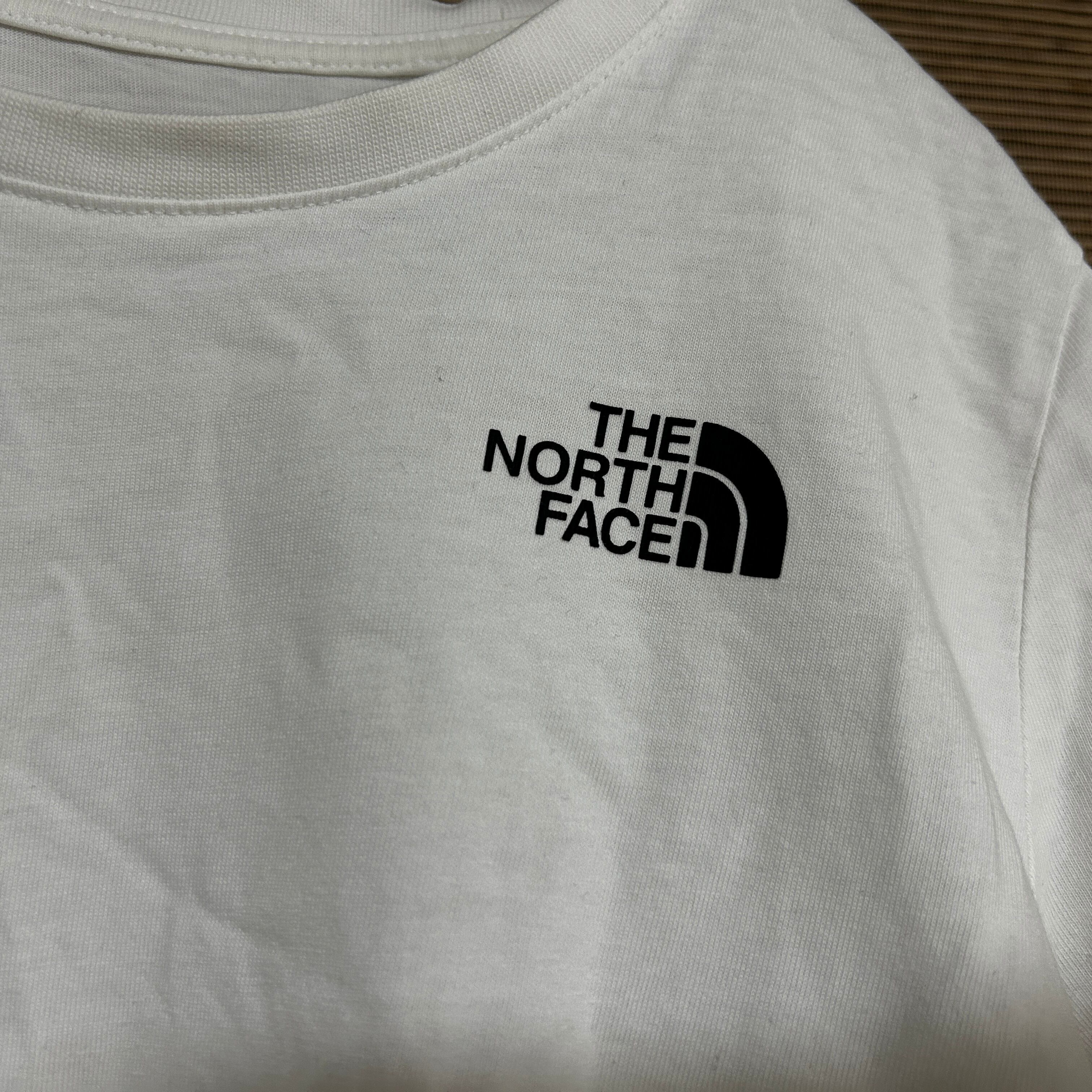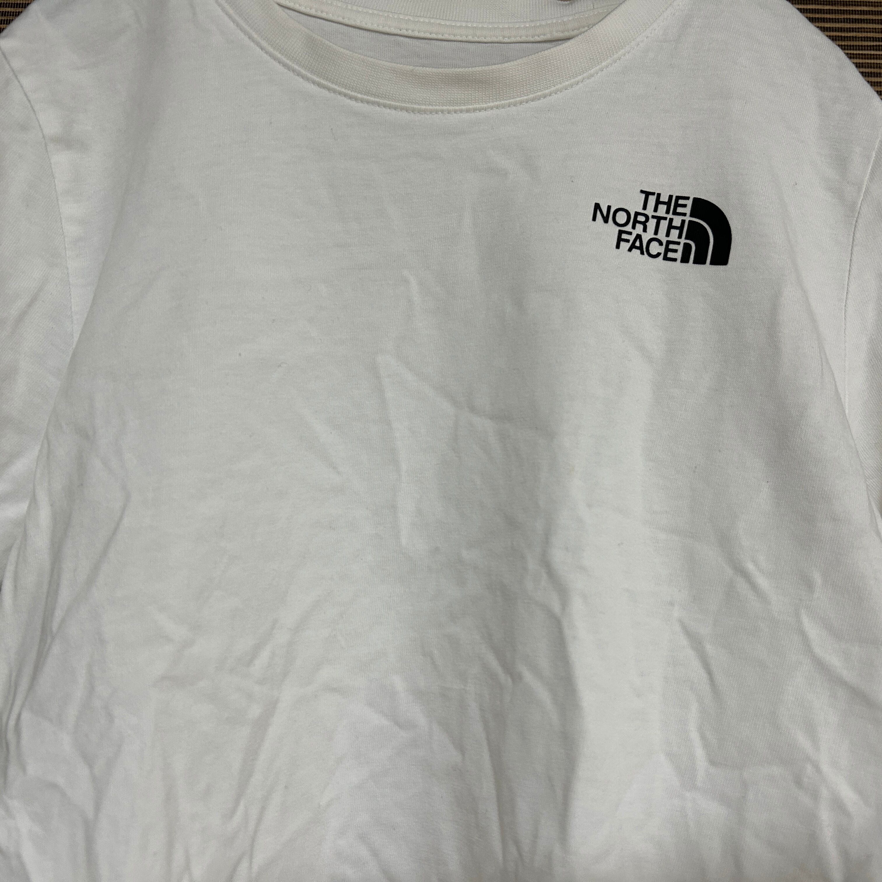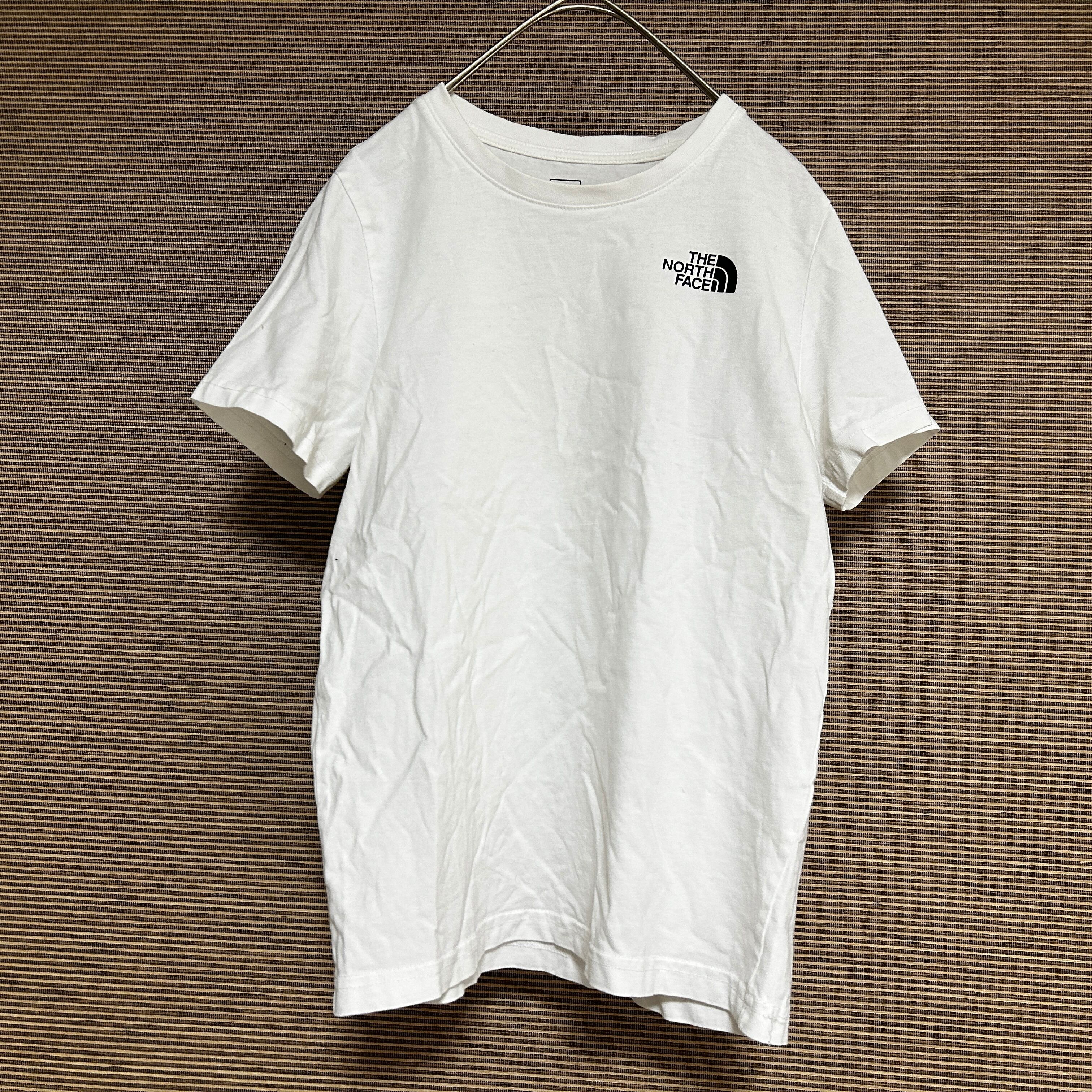 ノースフェイス 半袖Tシャツ 白 子供キッズ140 ワンポイントロゴN 古着 プリントロゴ 人気