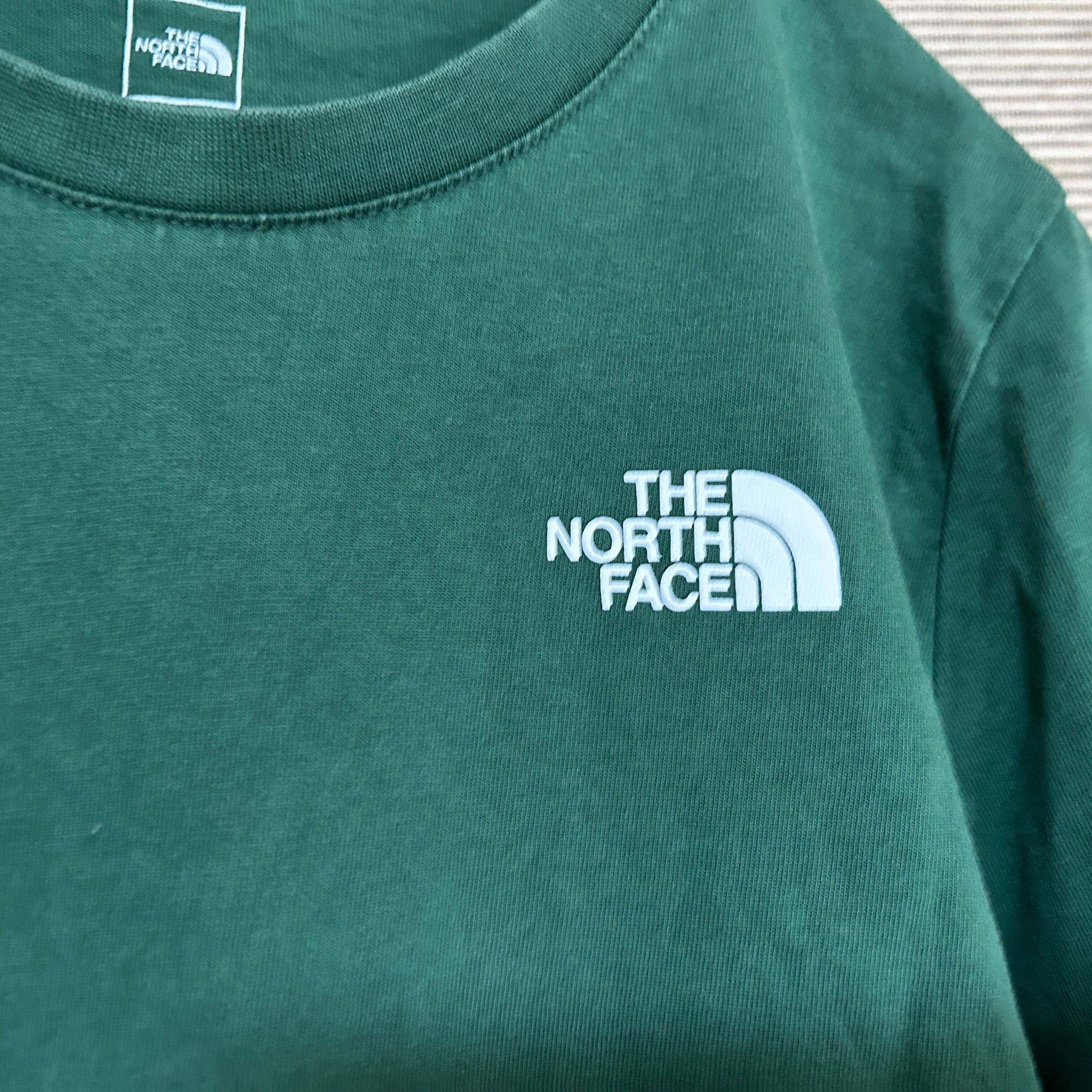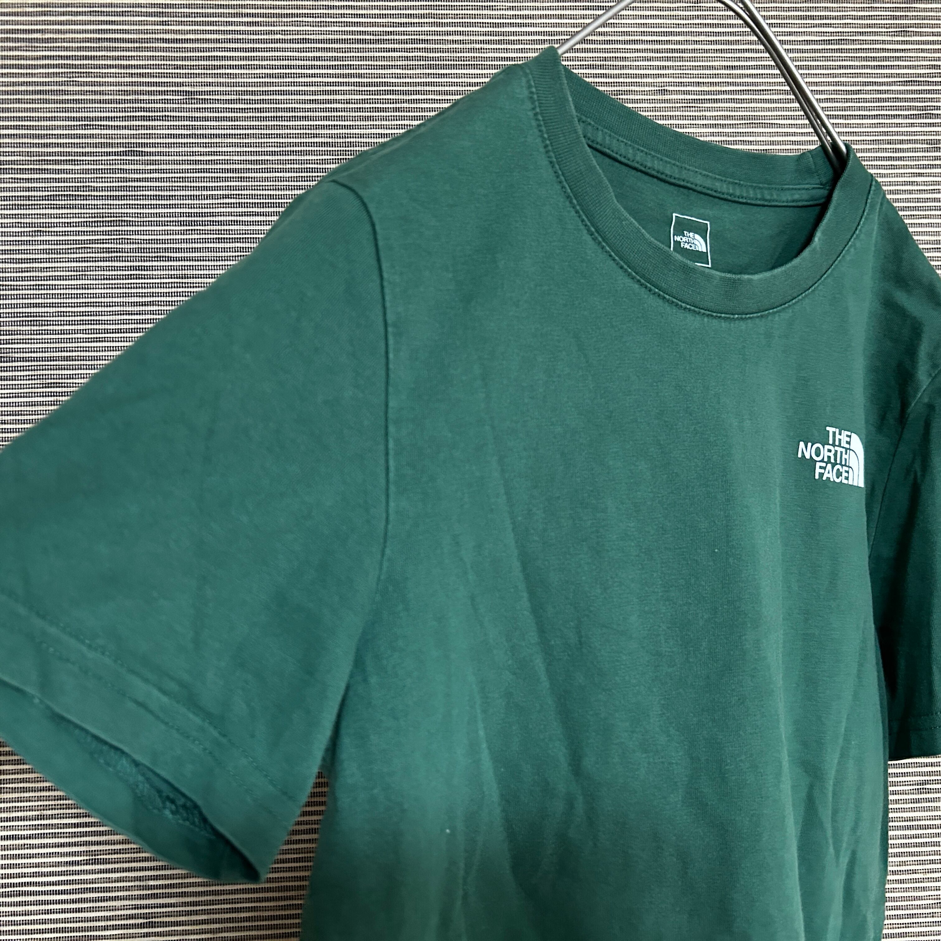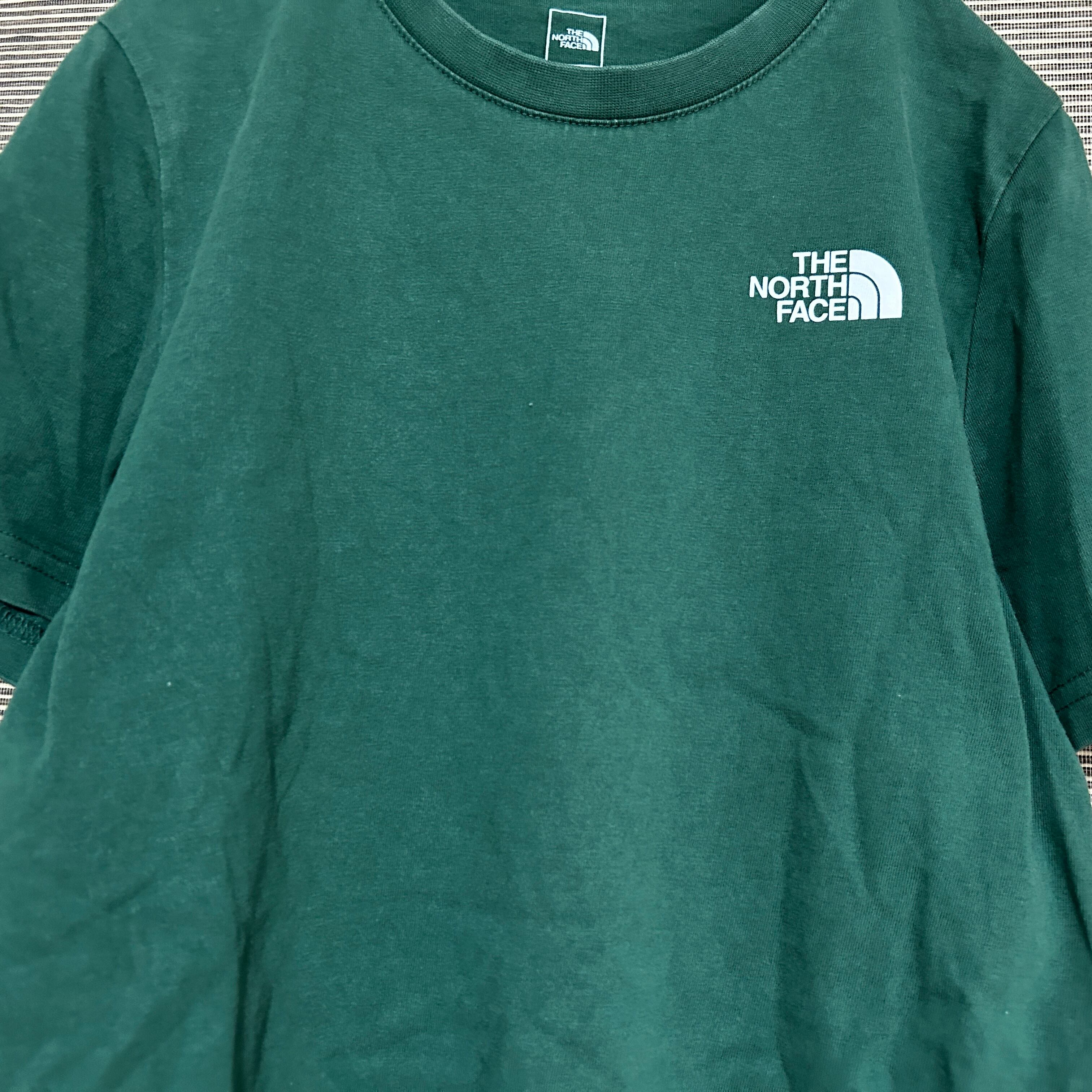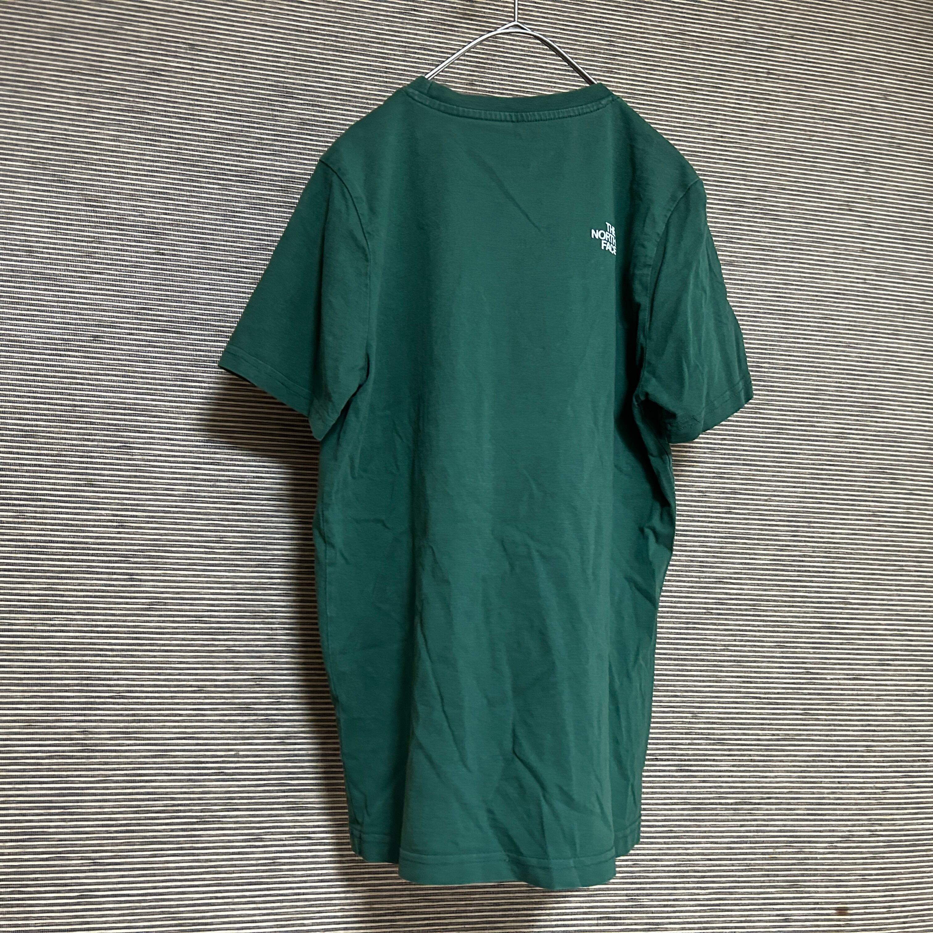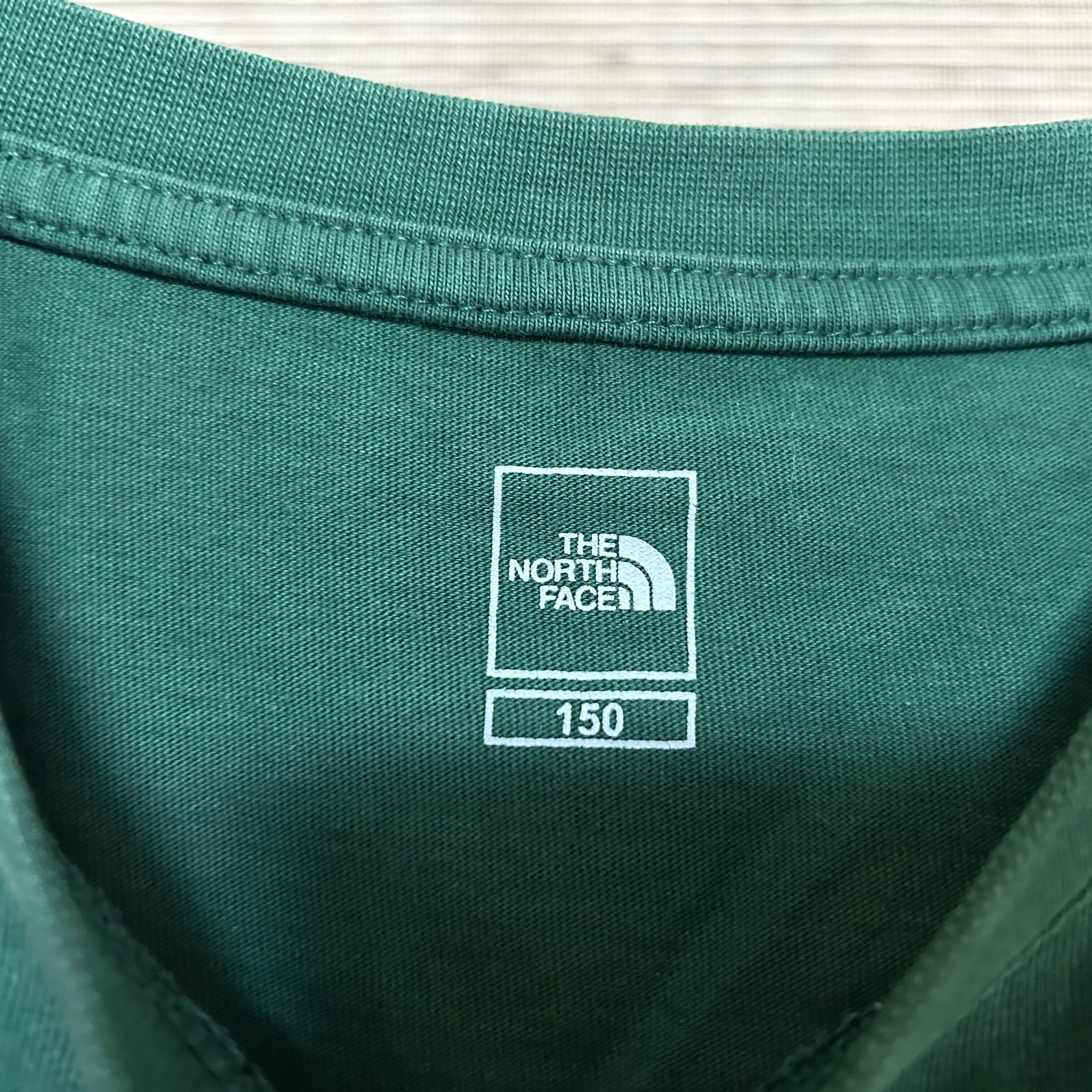 ノースフェイス 半袖Tシャツ 緑グリーン 子供キッズ150 ワンポイントロゴN 古着 人気 プリントロゴ