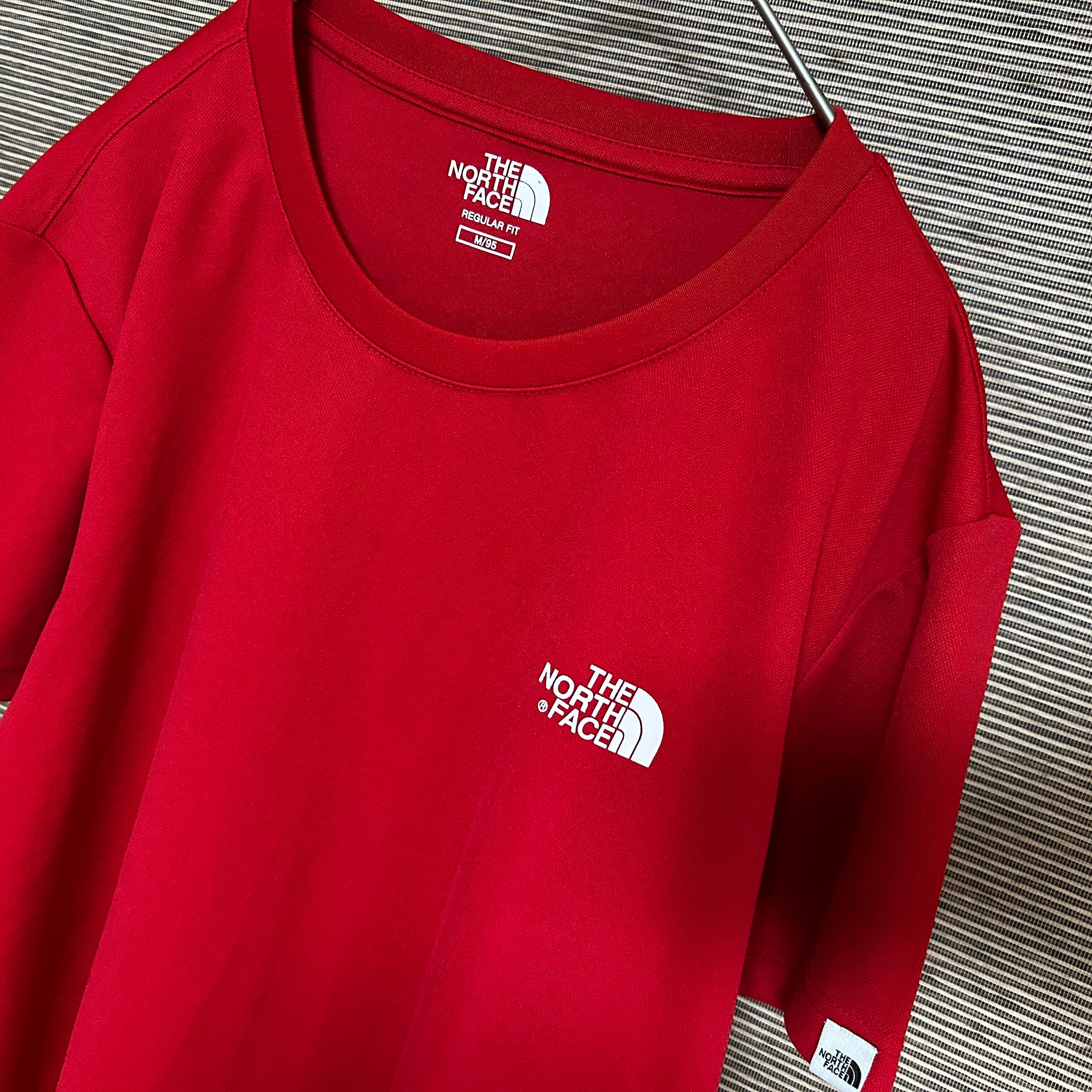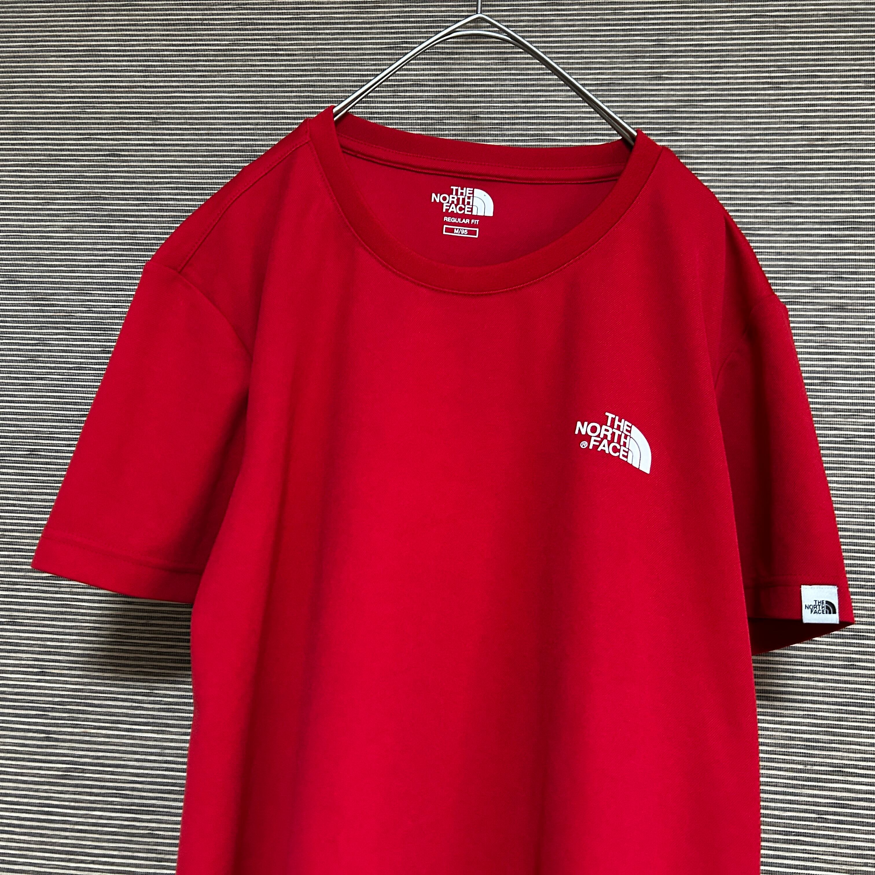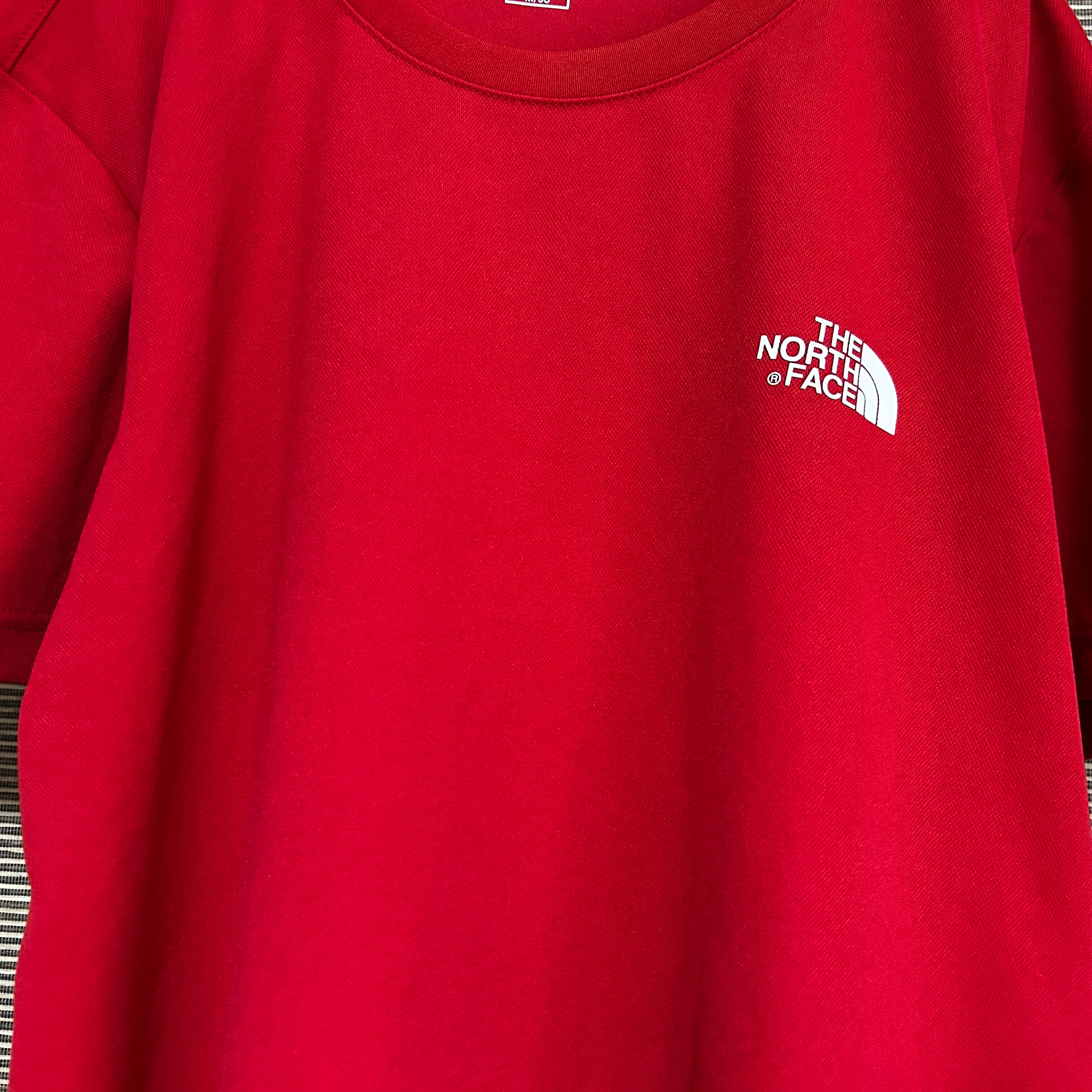ノースフェイス 半袖ドライTシャツ 赤 速乾 ワンポイントロゴ 韓国限定N 古着 プリントロゴ 袖ロゴ 激レアカラー