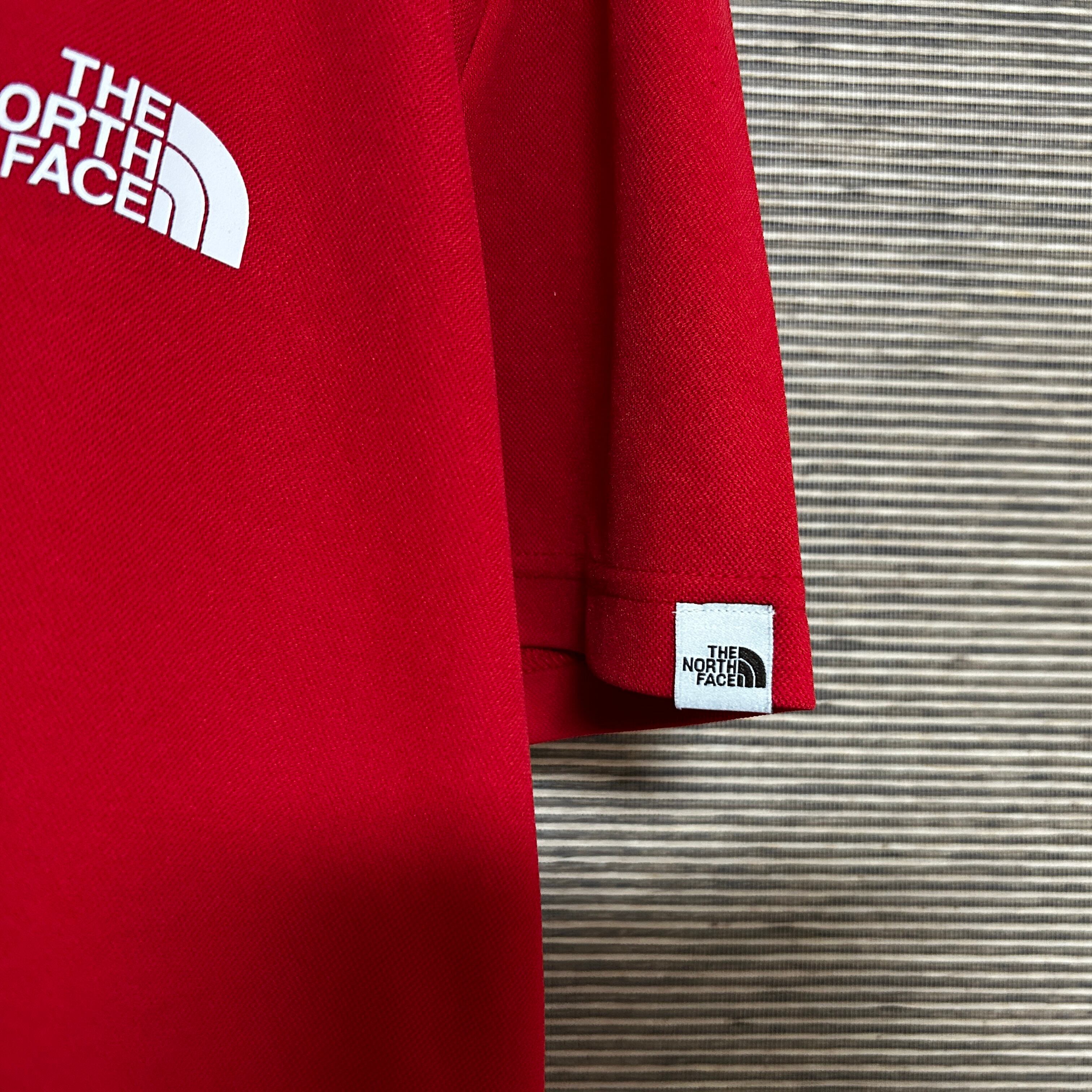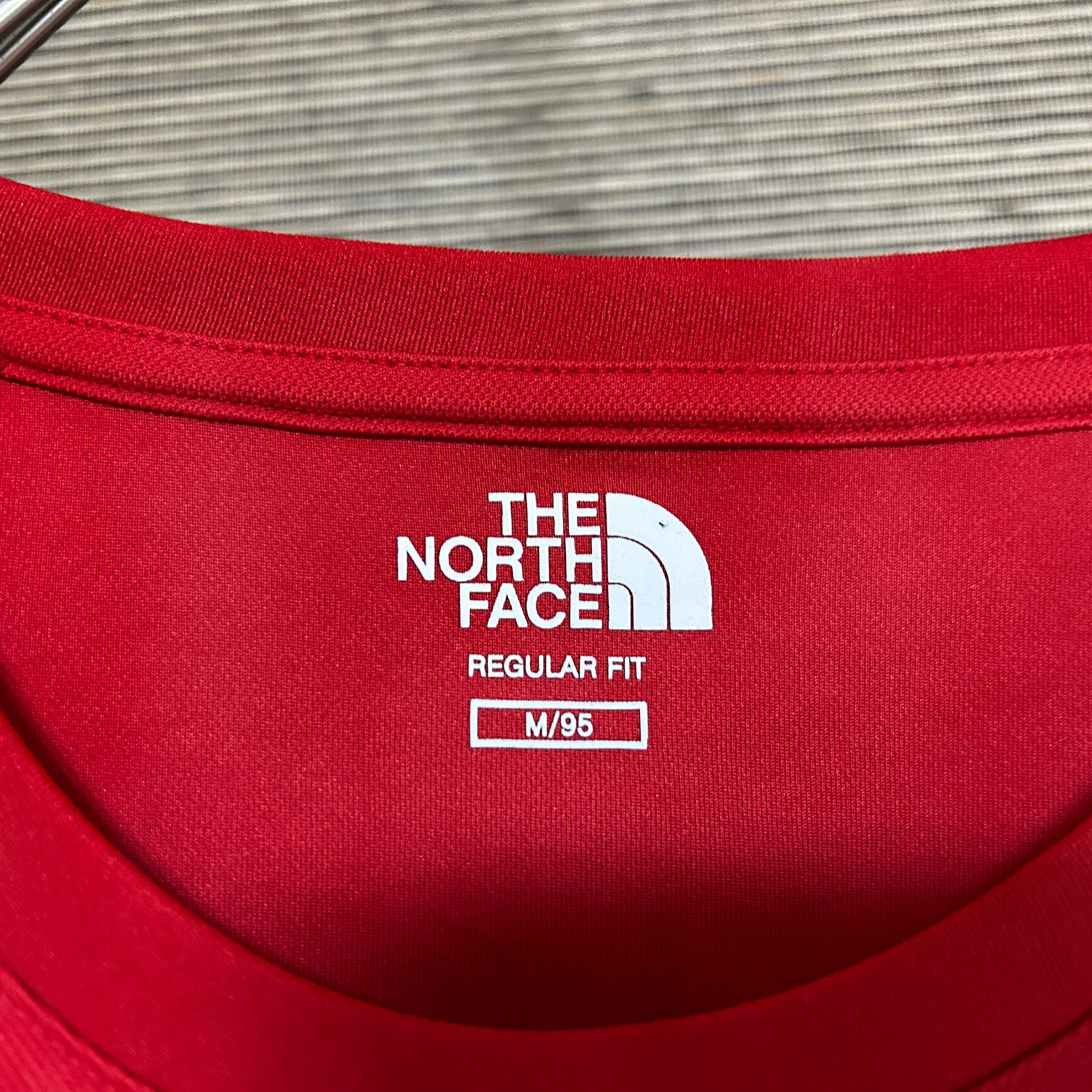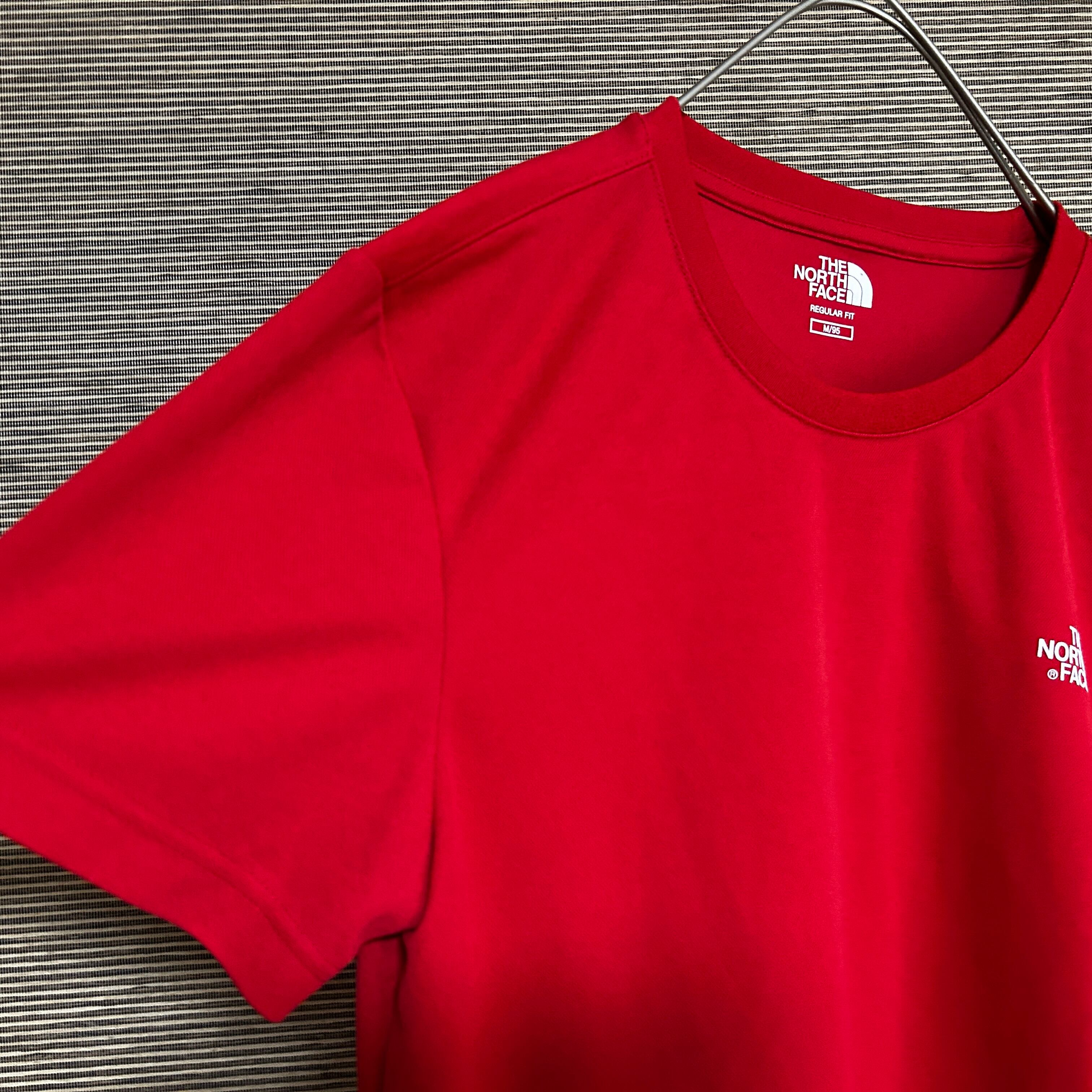 ノースフェイス 半袖ドライTシャツ 赤 速乾 ワンポイントロゴ 韓国限定N 古着 プリントロゴ 袖ロゴ 激レアカラー