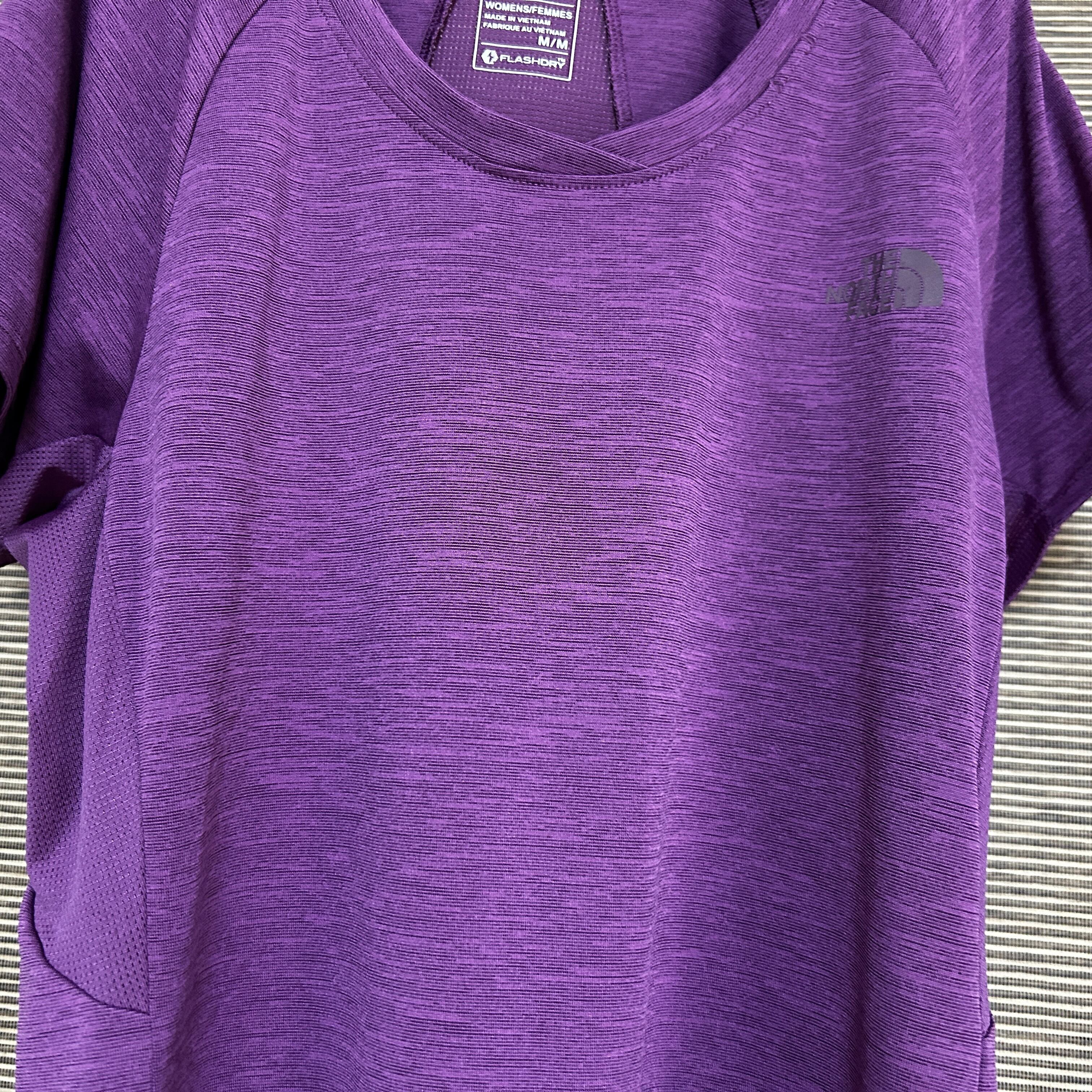 ノースフェイス US規格半袖Tシャツ フラッシュドライ 紫速乾ワンポイントN 古着 レディース ワンポイントロゴ