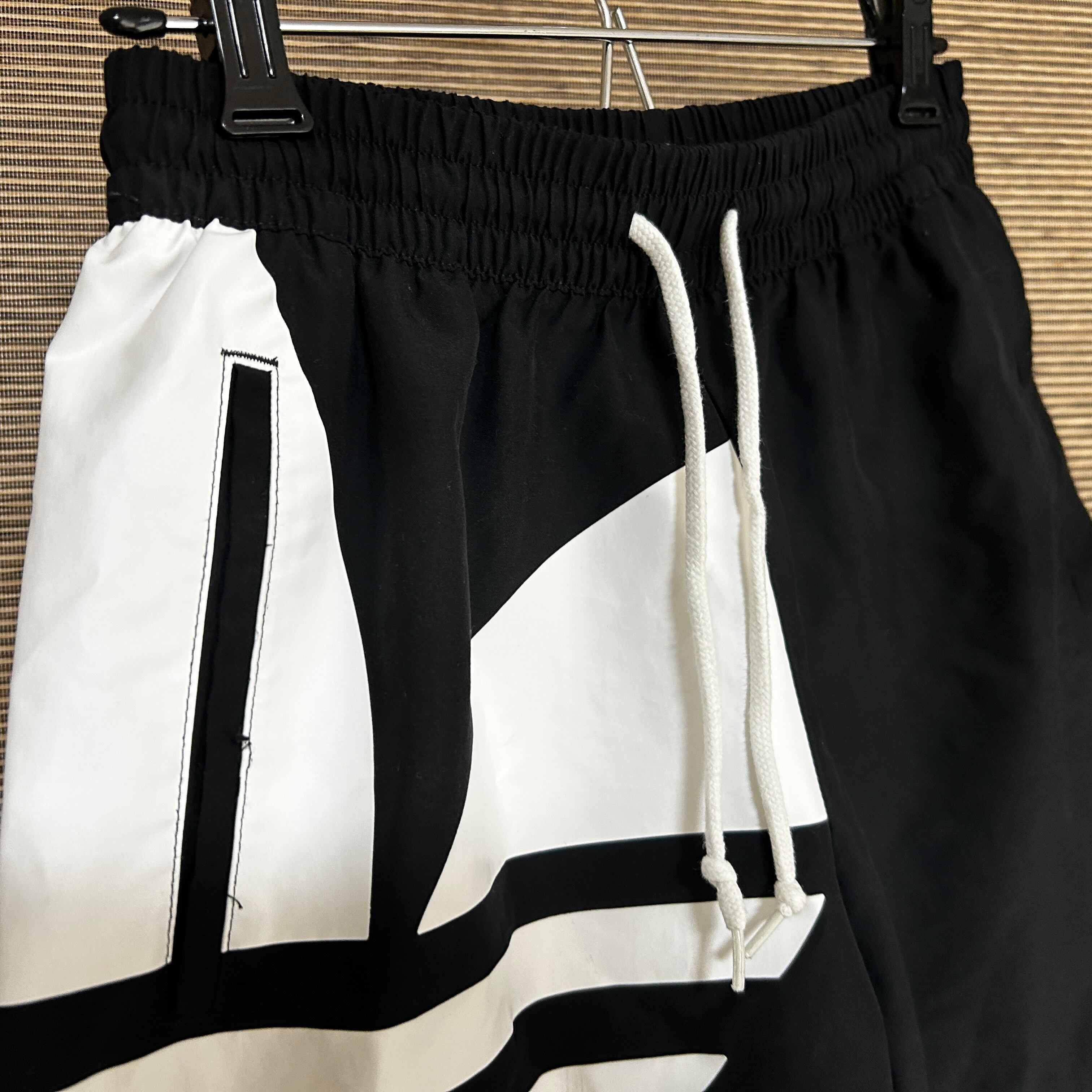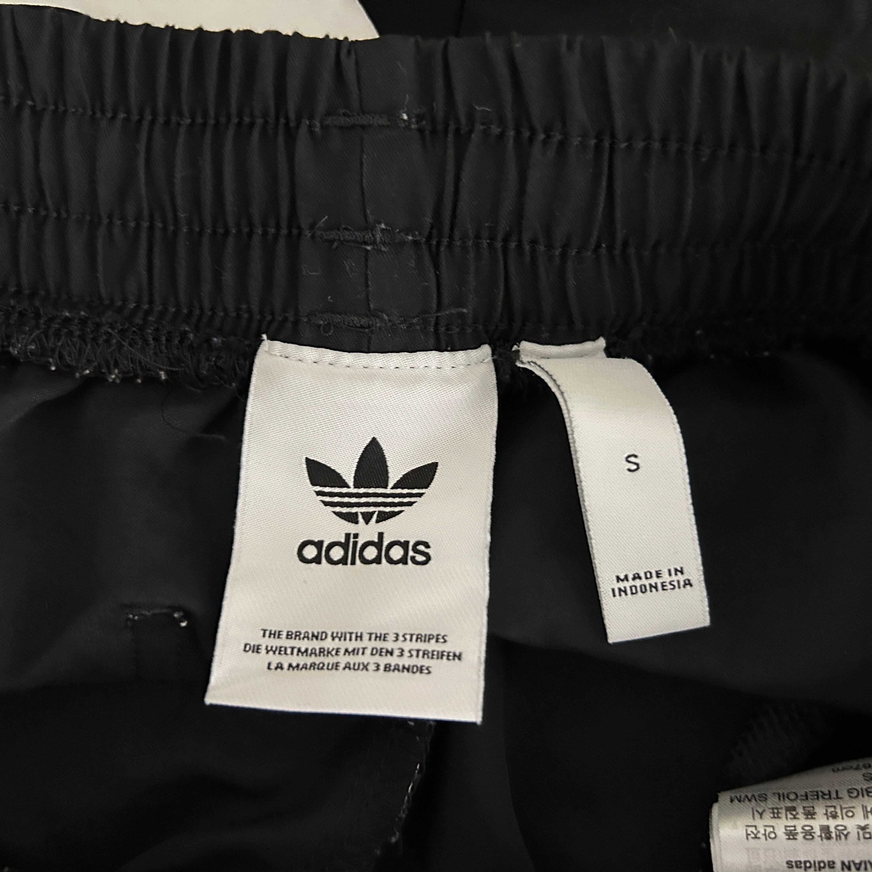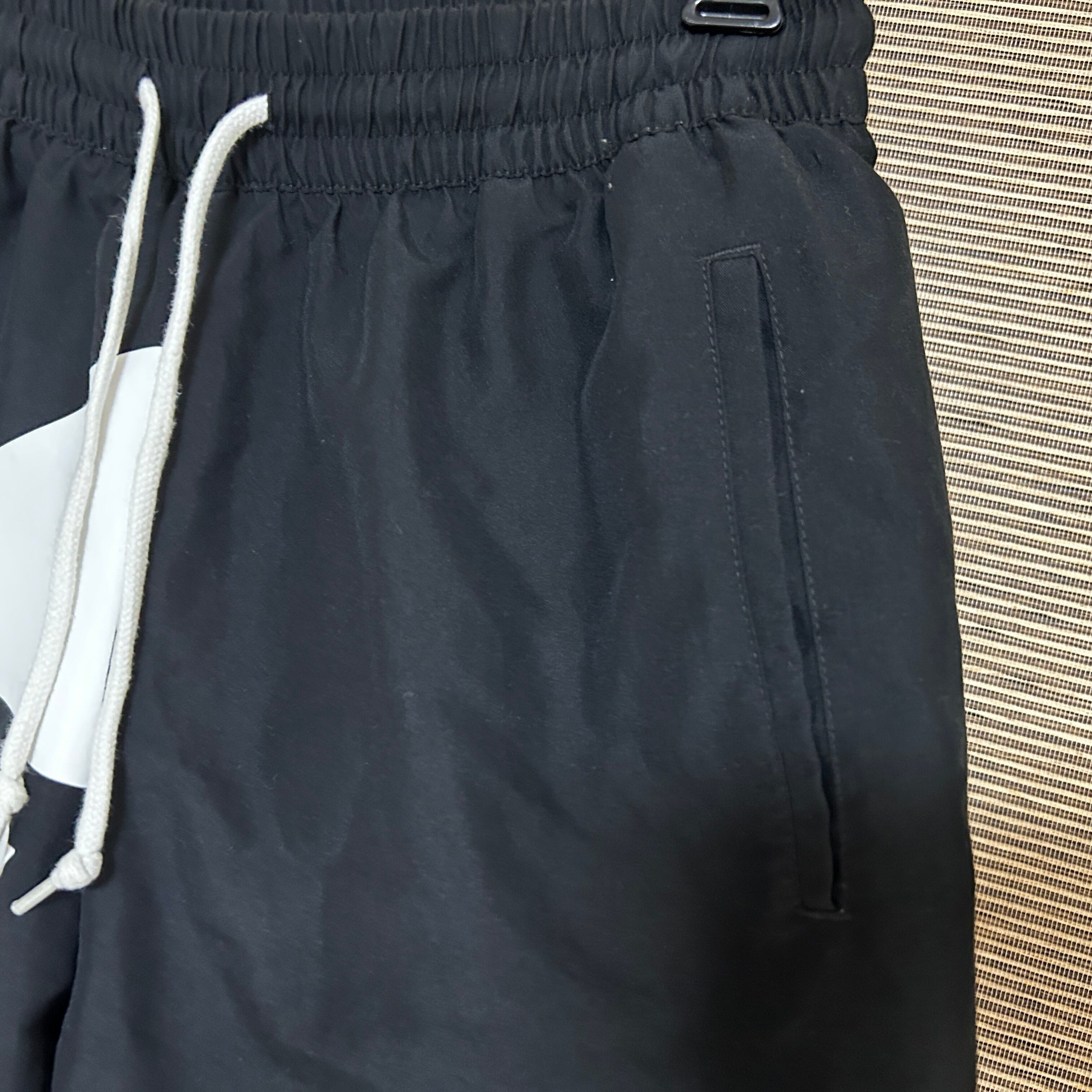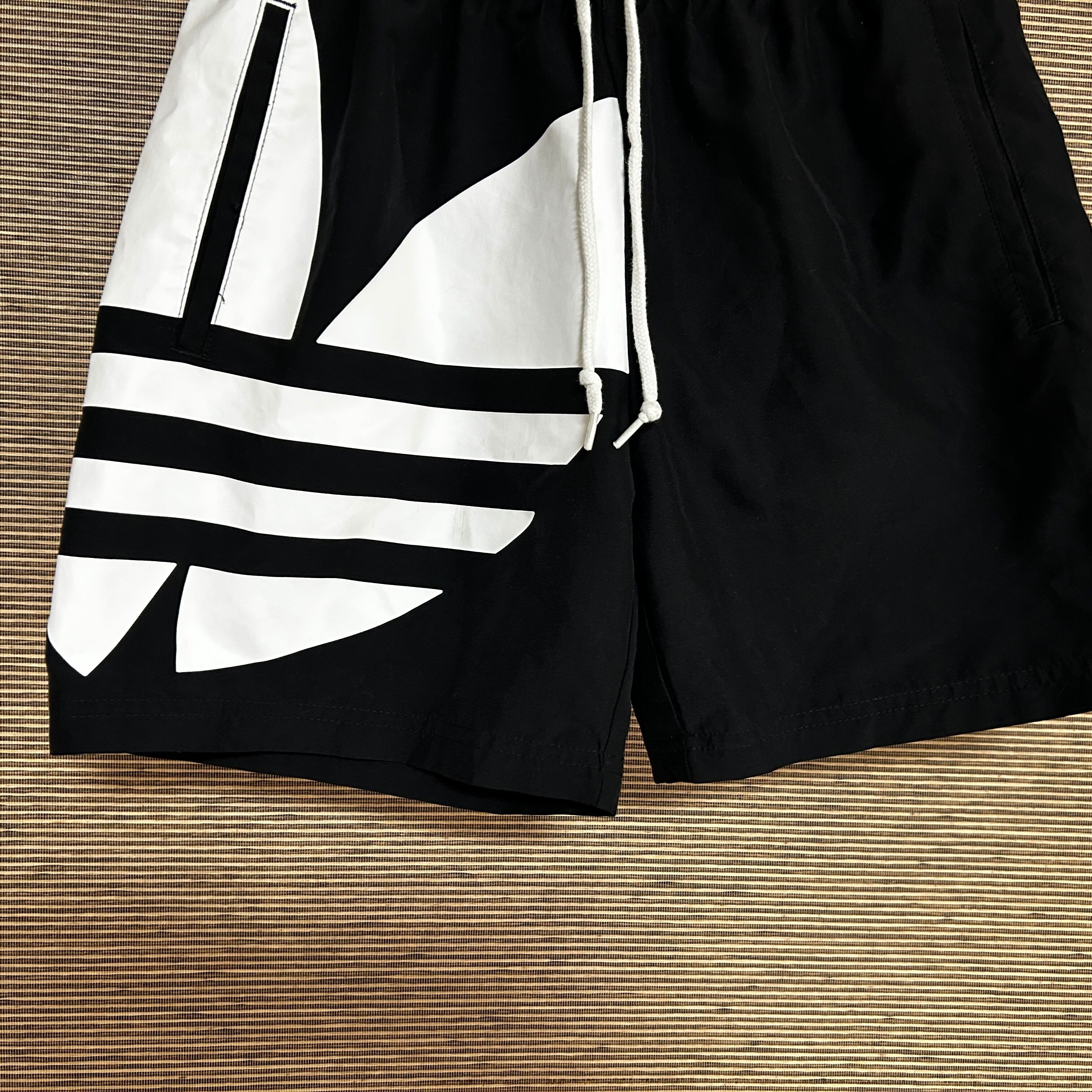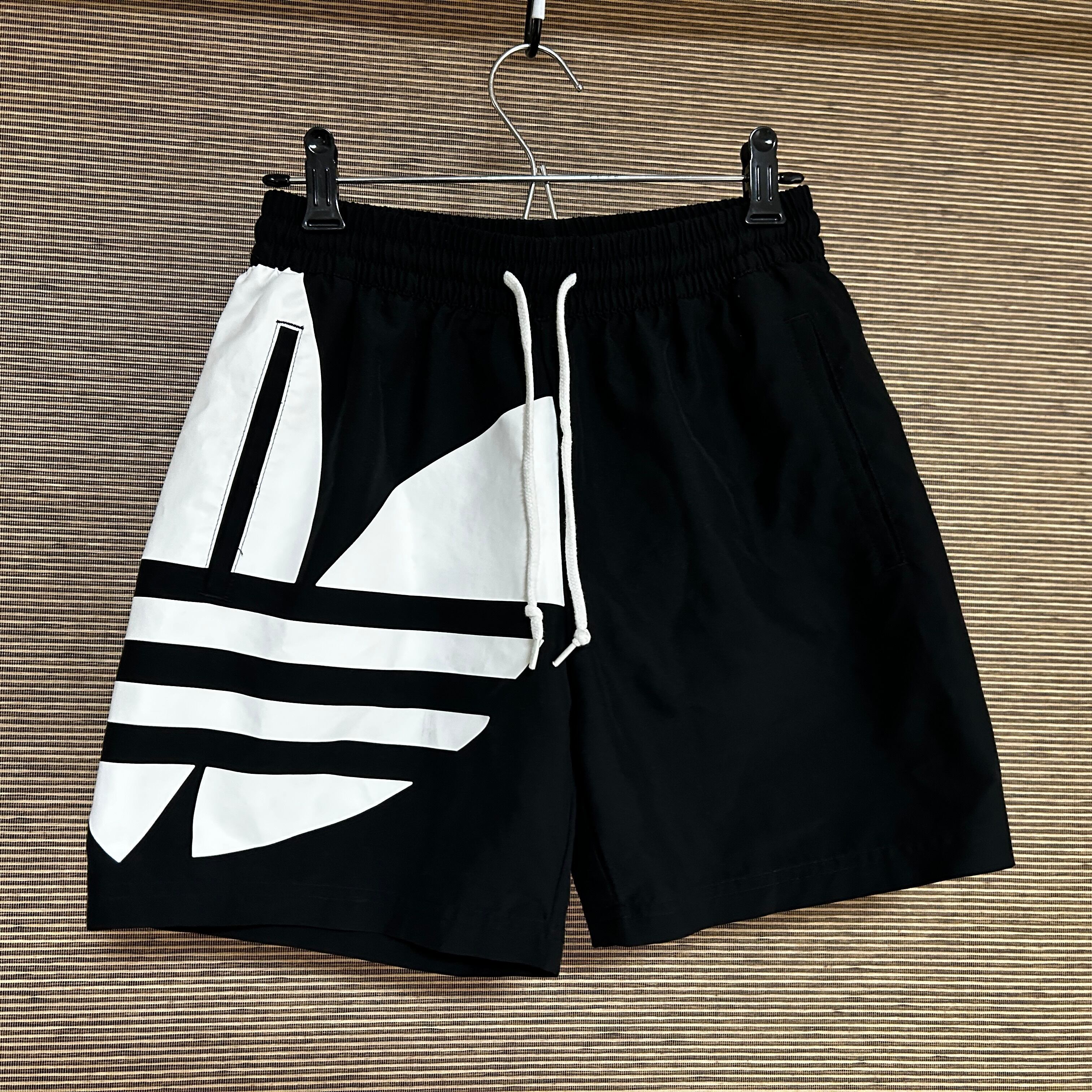 アディダス ショートパンツ 短パントレフォイル 黒ブラック 刺繍デカロゴN 古着 ビッグロゴ 男女兼用