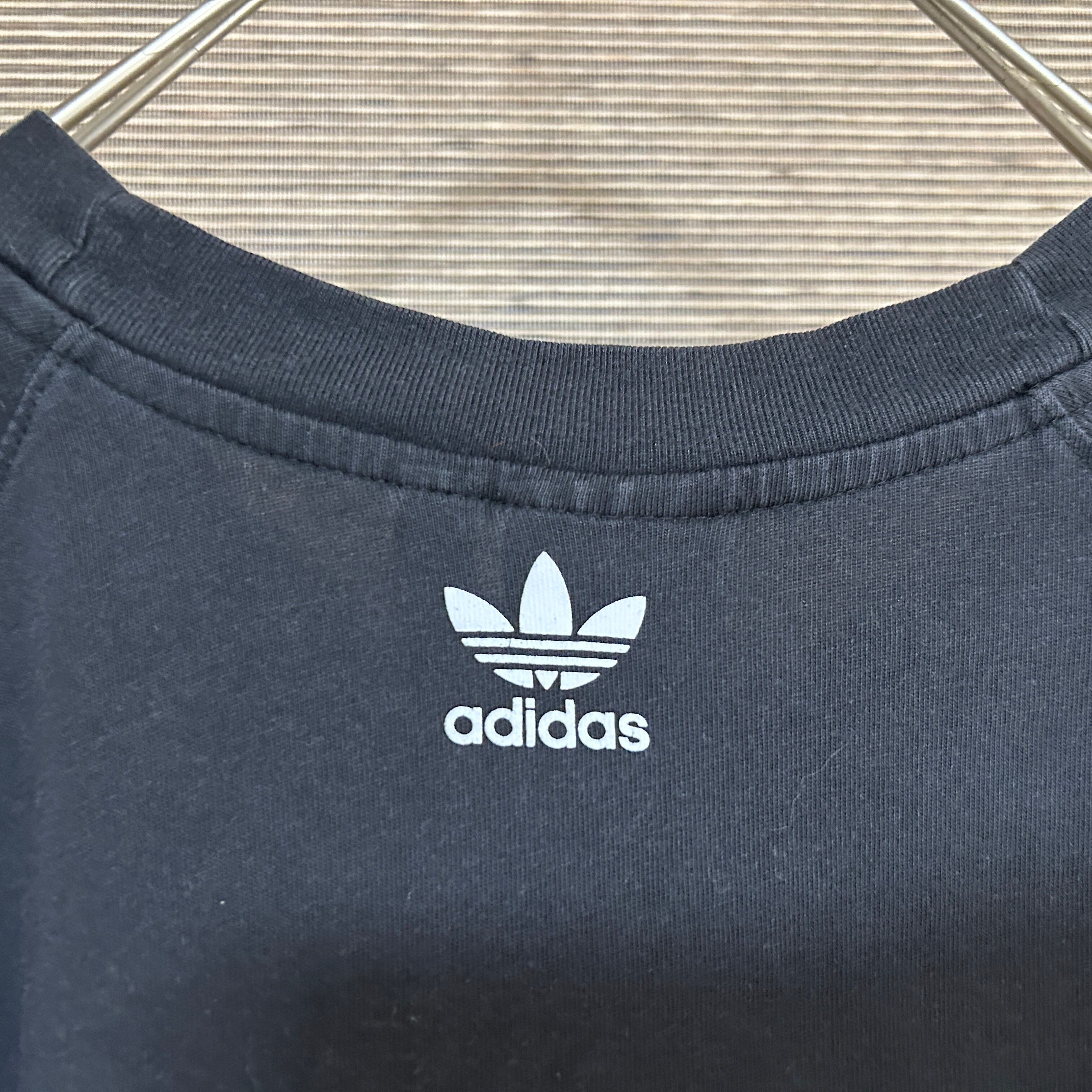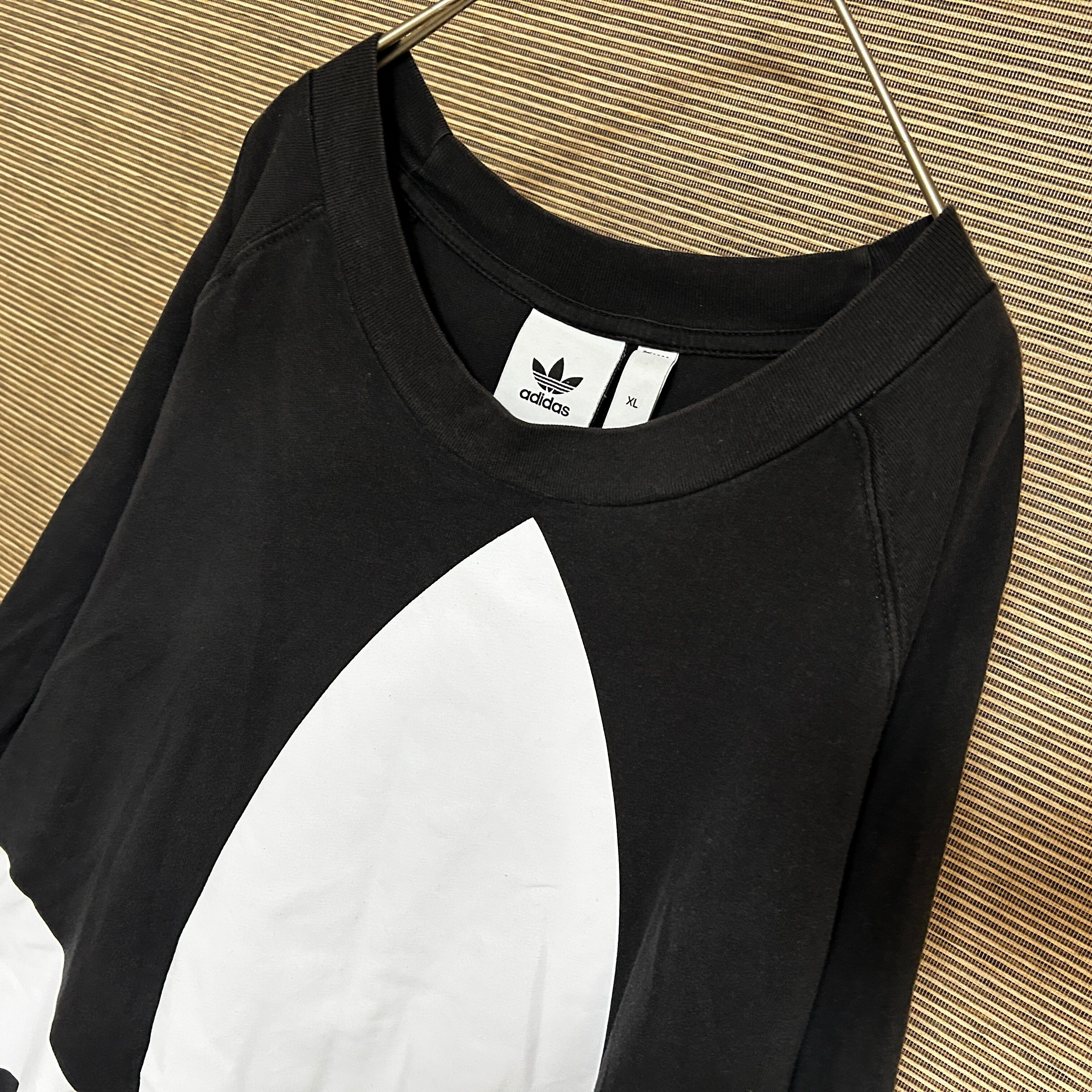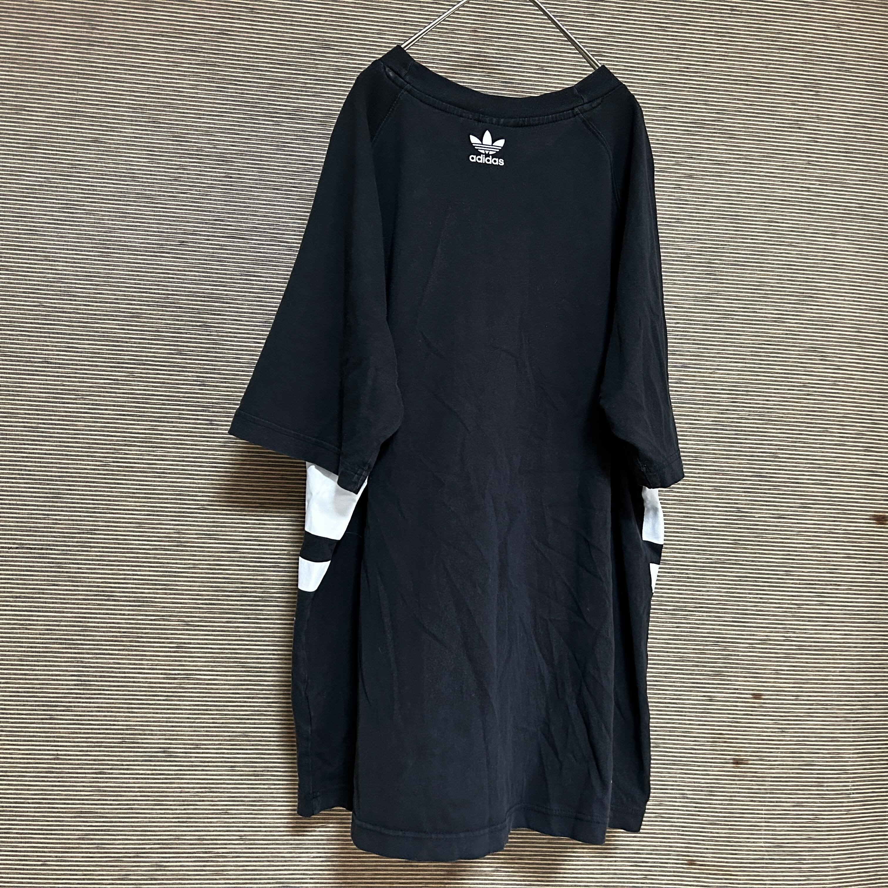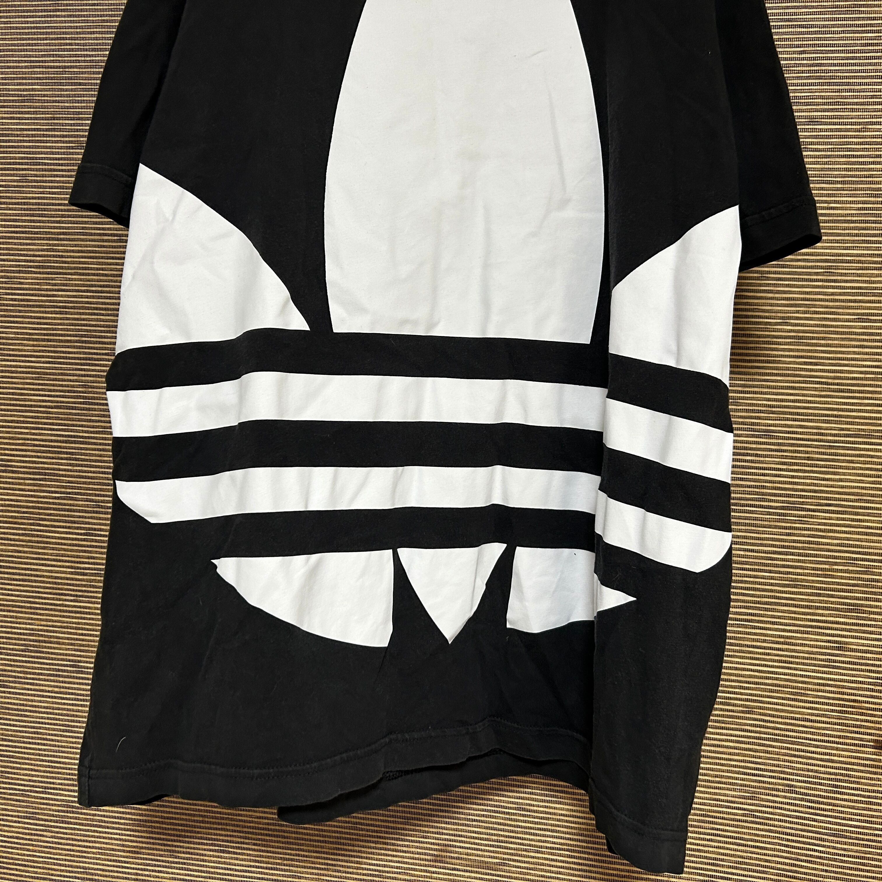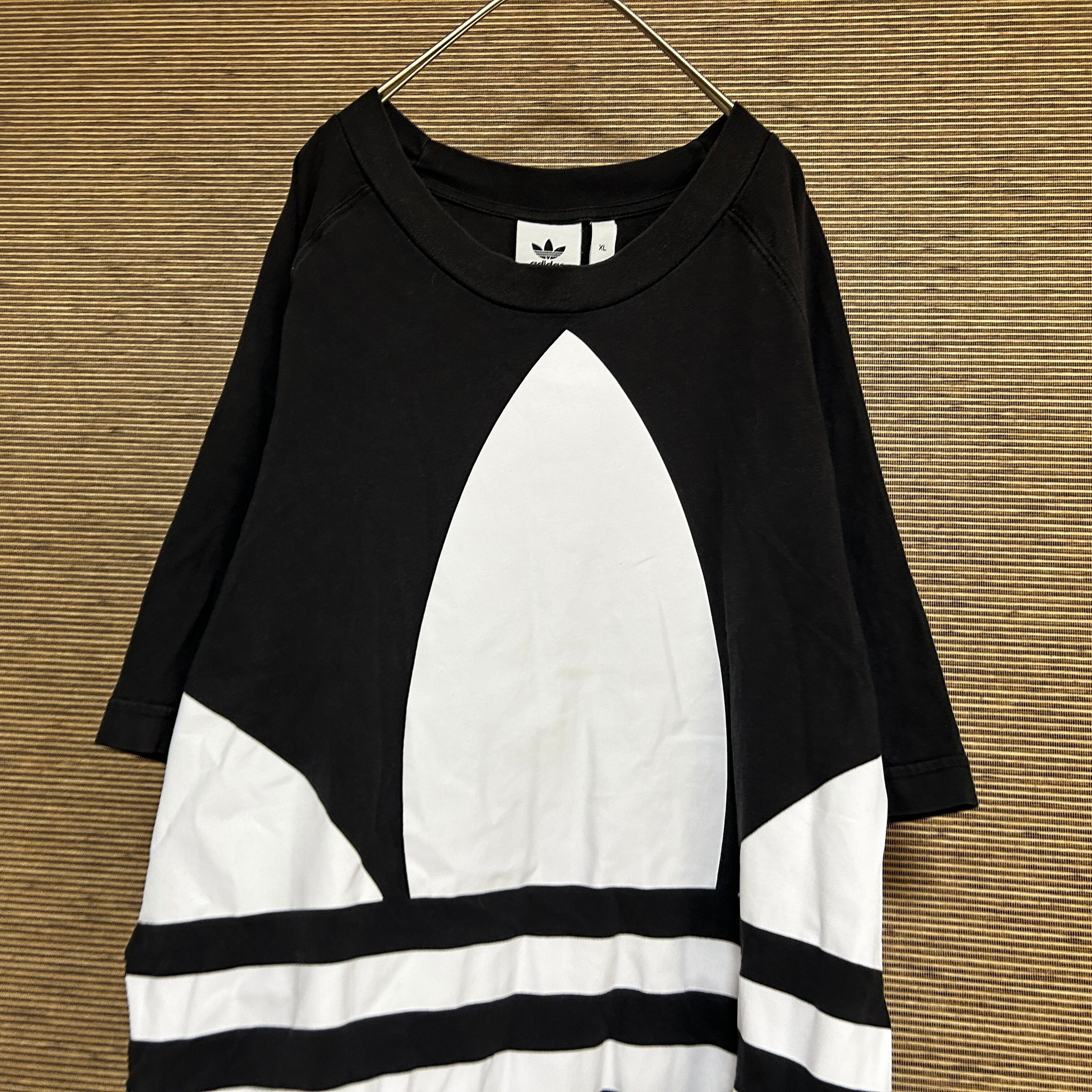 アディダス 半袖Tシャツ トレフォイルロゴ デカロゴ 黒白 ビッグロゴN 古着 人気 激レアデザイン