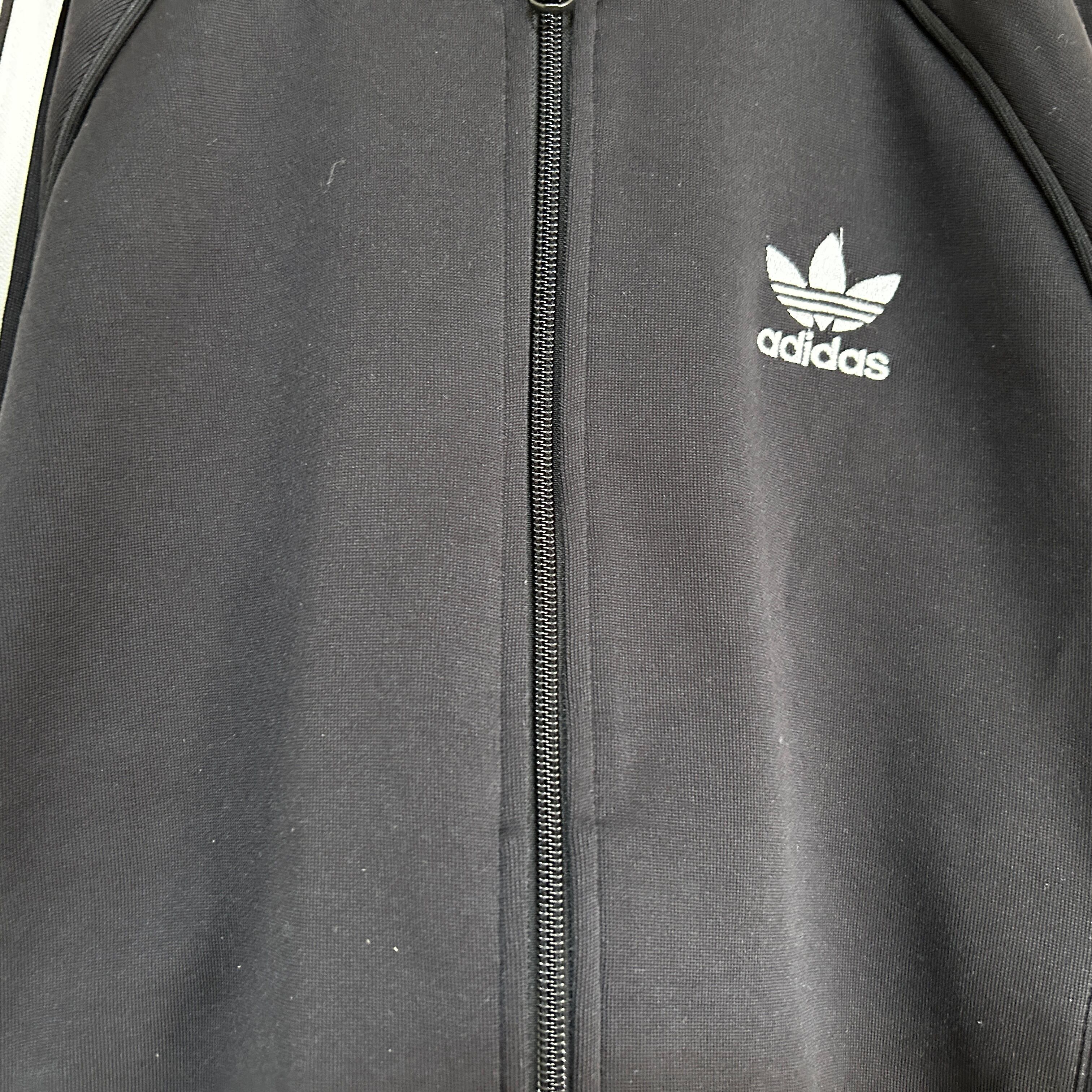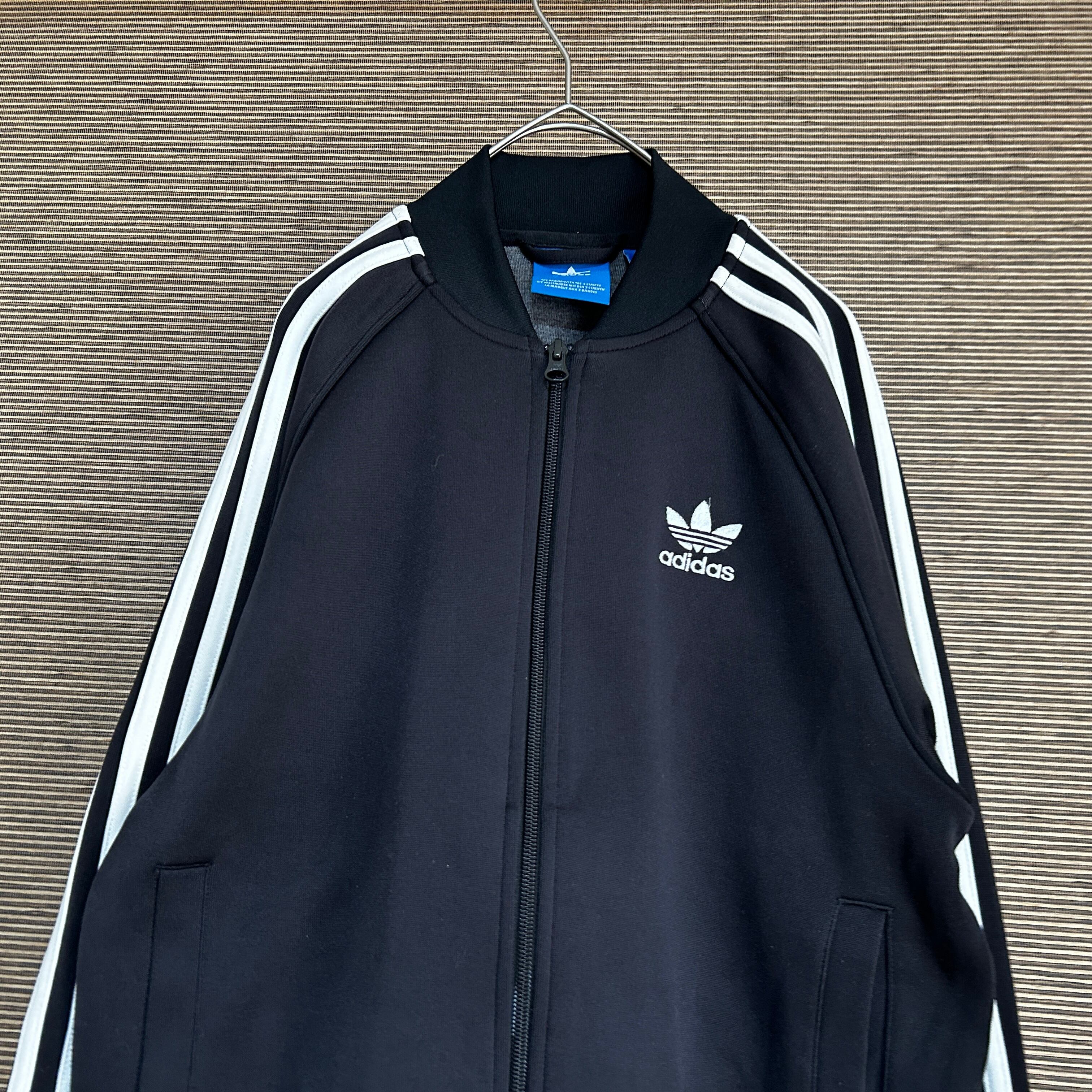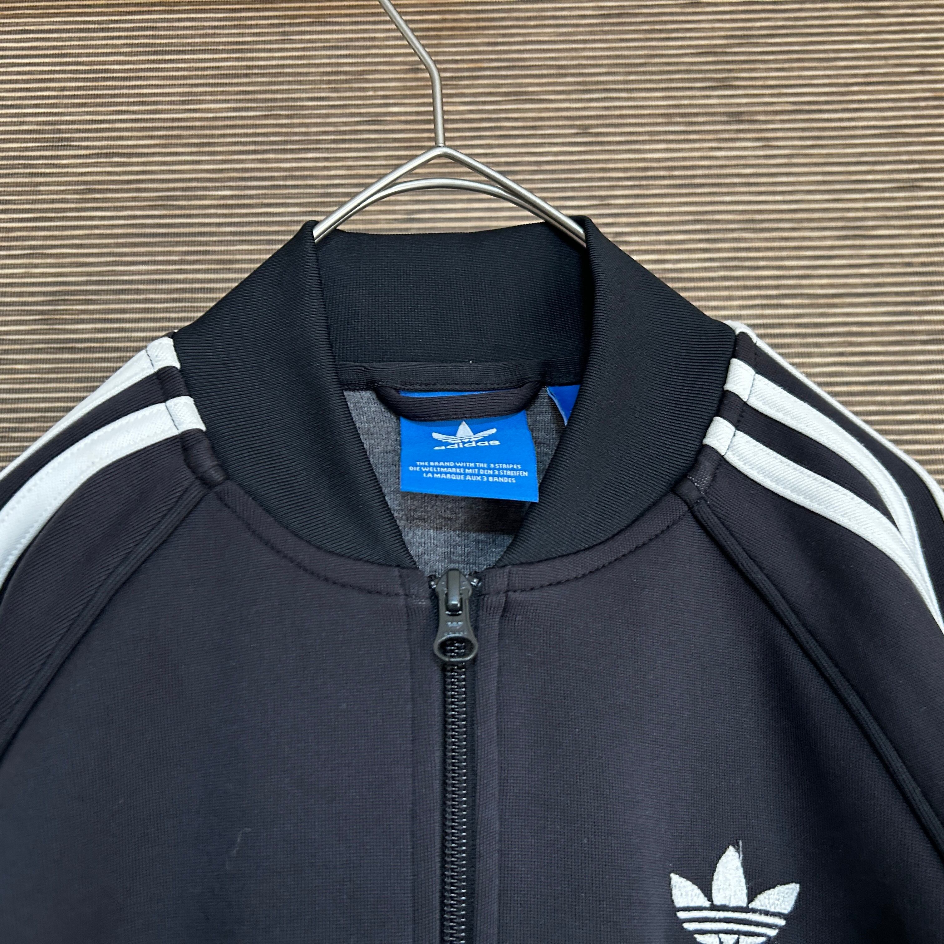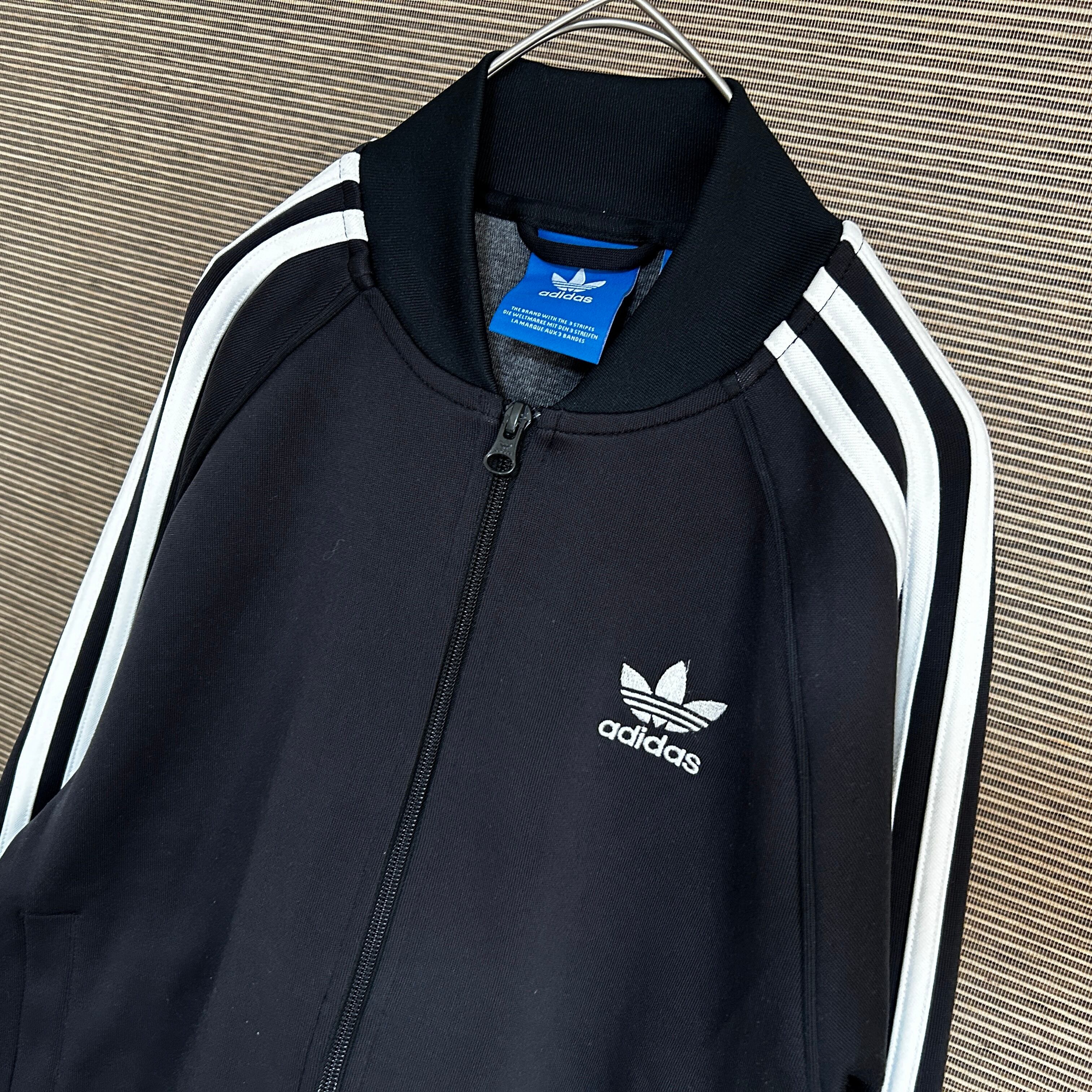 アディダス ジャージトラックジャケットSST 黒白 刺繍 スーパースターE1 古着 ワンポイントロゴ トレフォイル ブラック 人気カラー