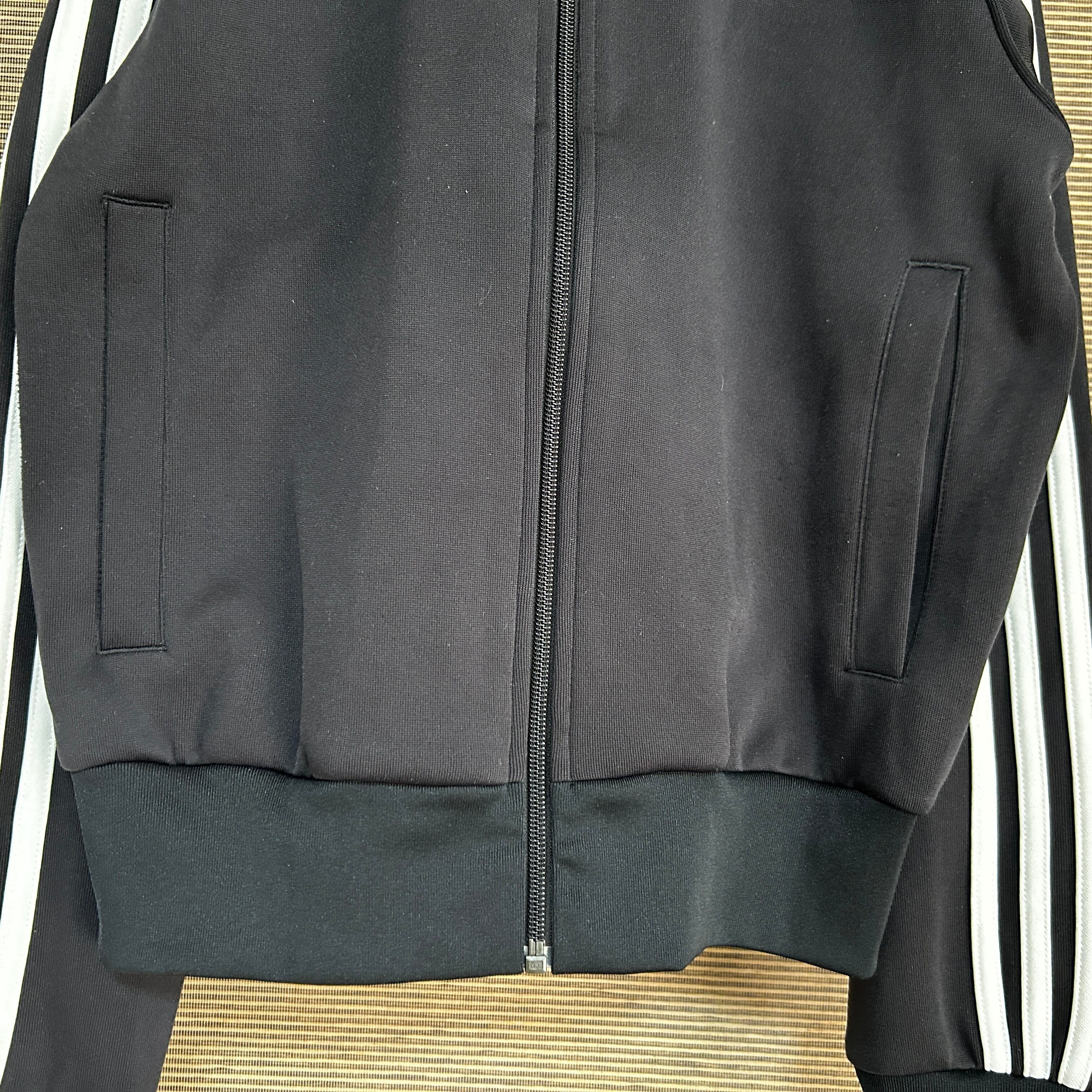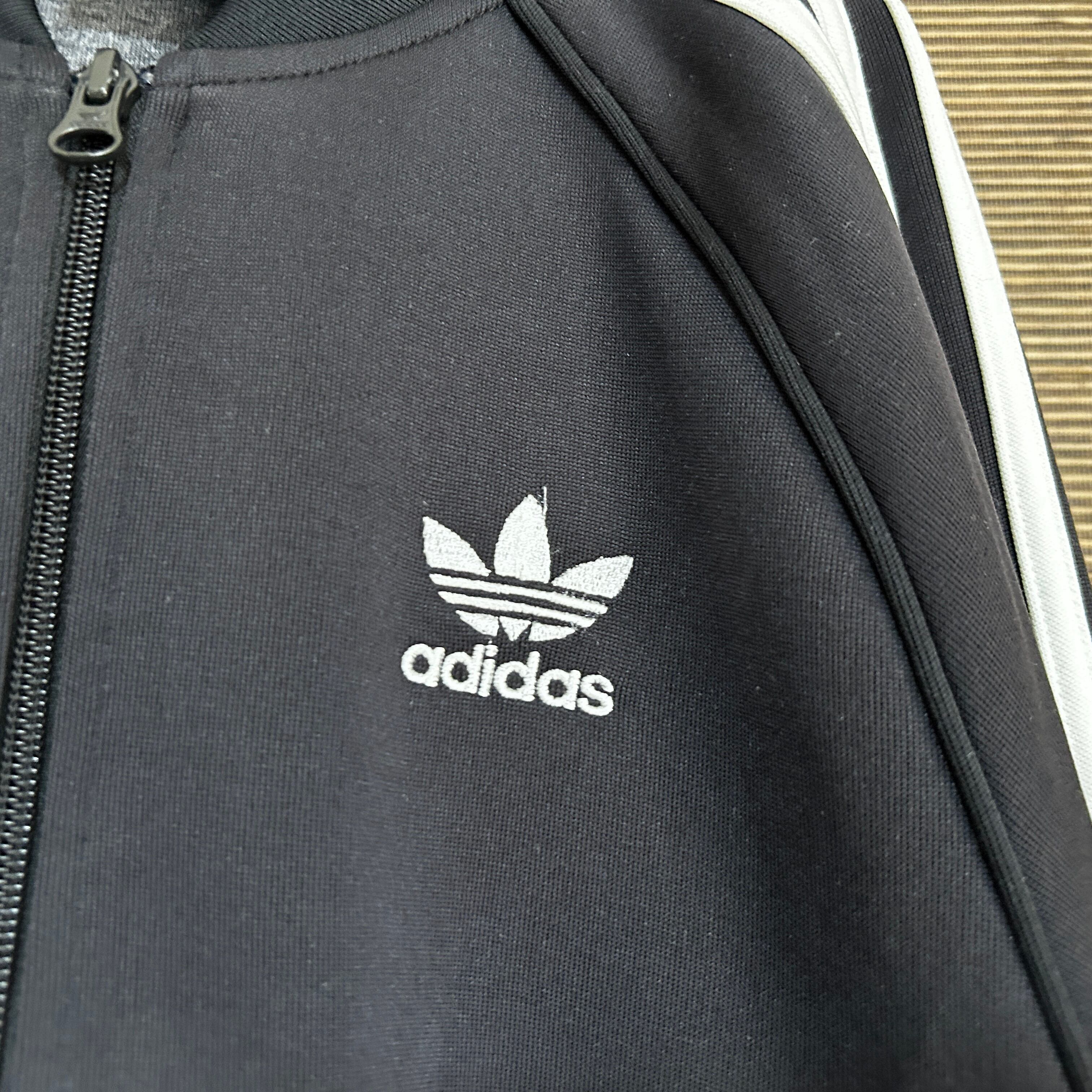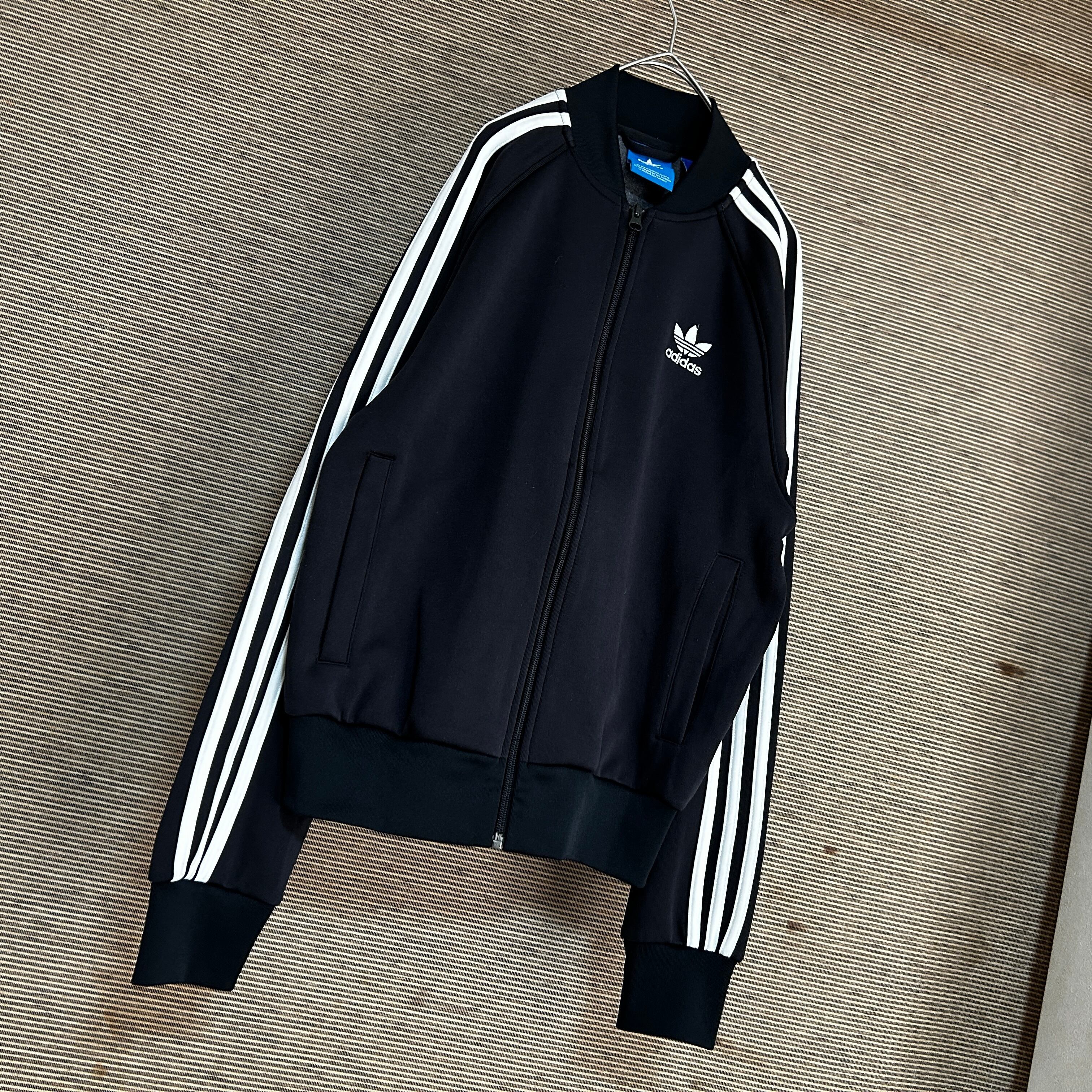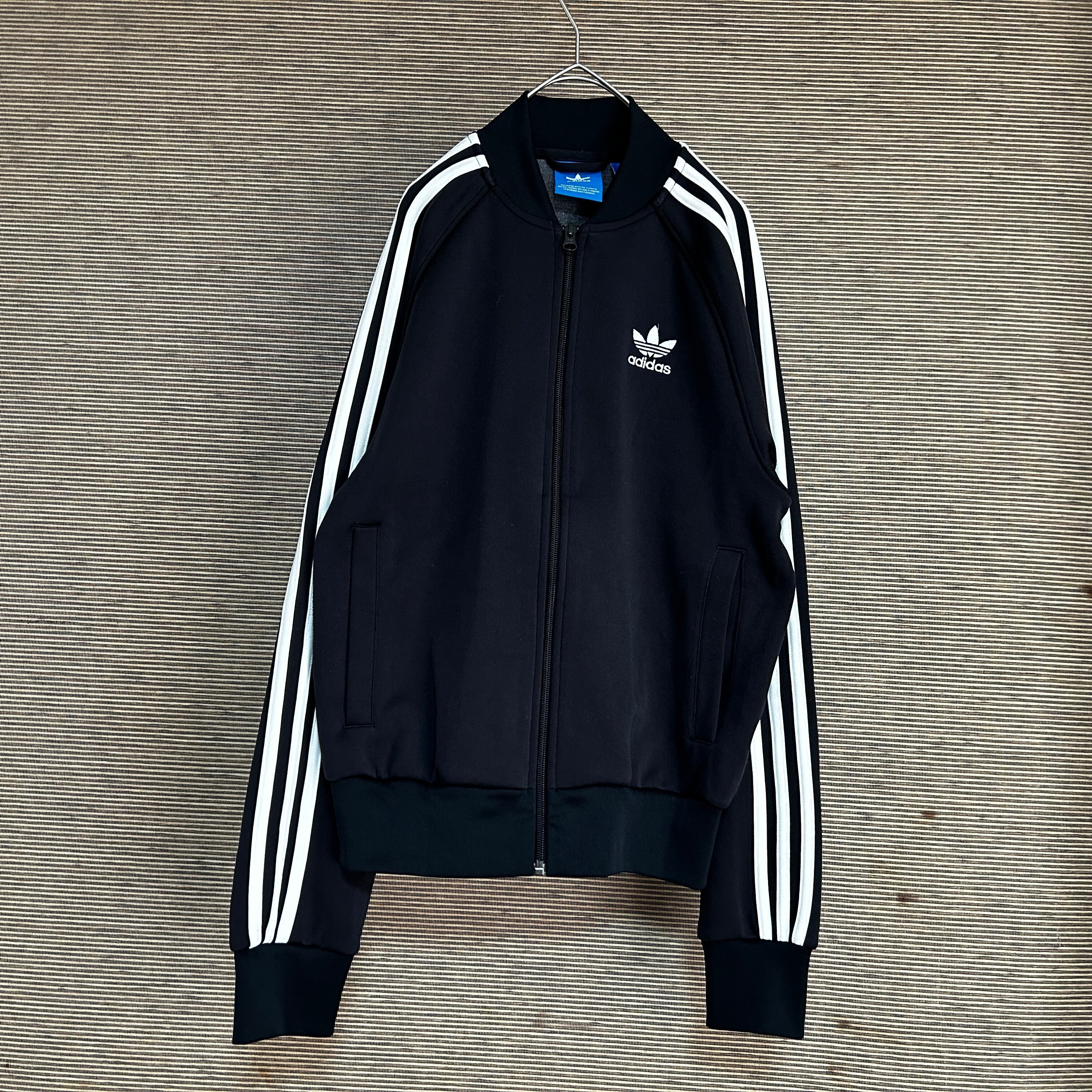 アディダス ジャージトラックジャケットSST 黒白 刺繍 スーパースターE1 古着 ワンポイントロゴ トレフォイル ブラック 人気カラー
