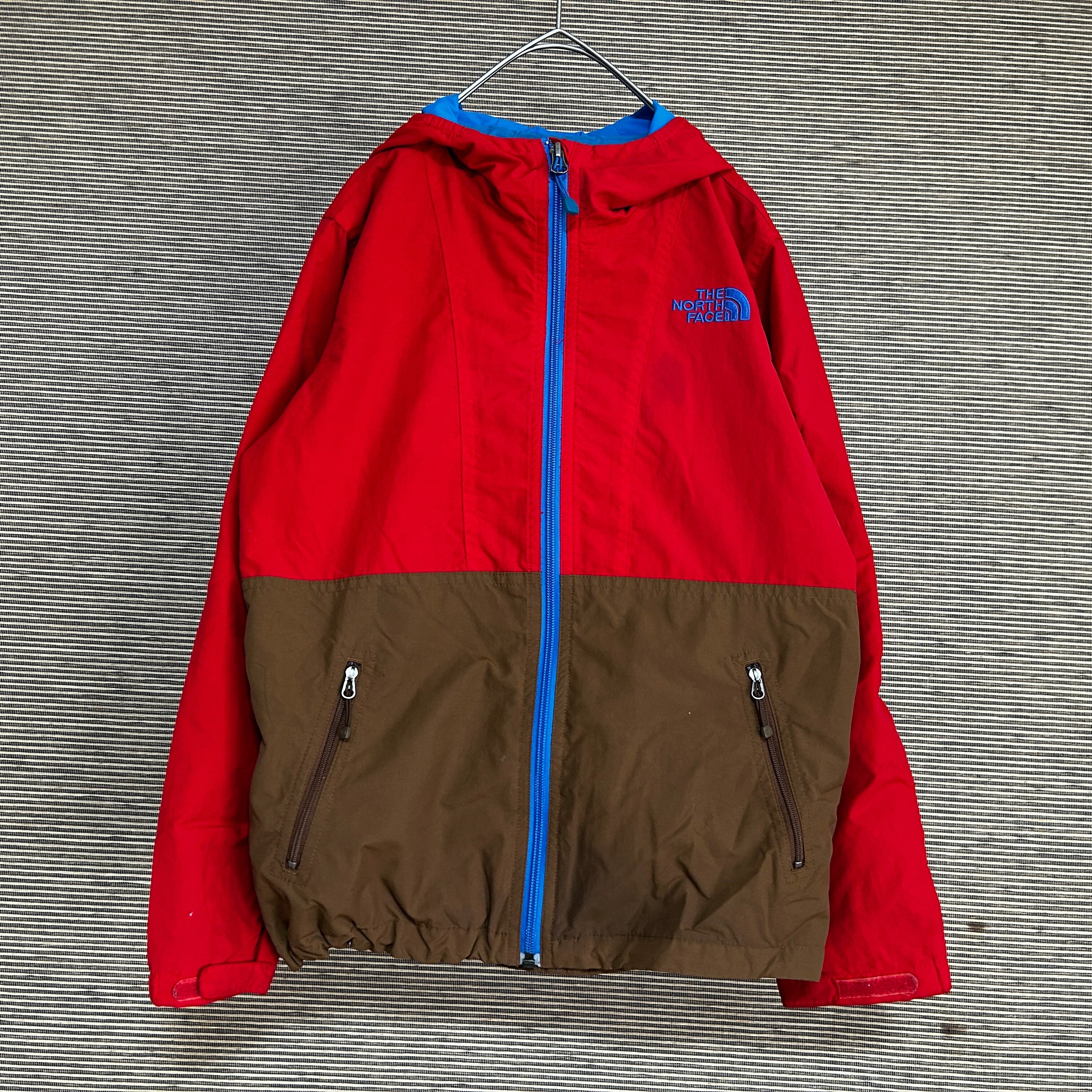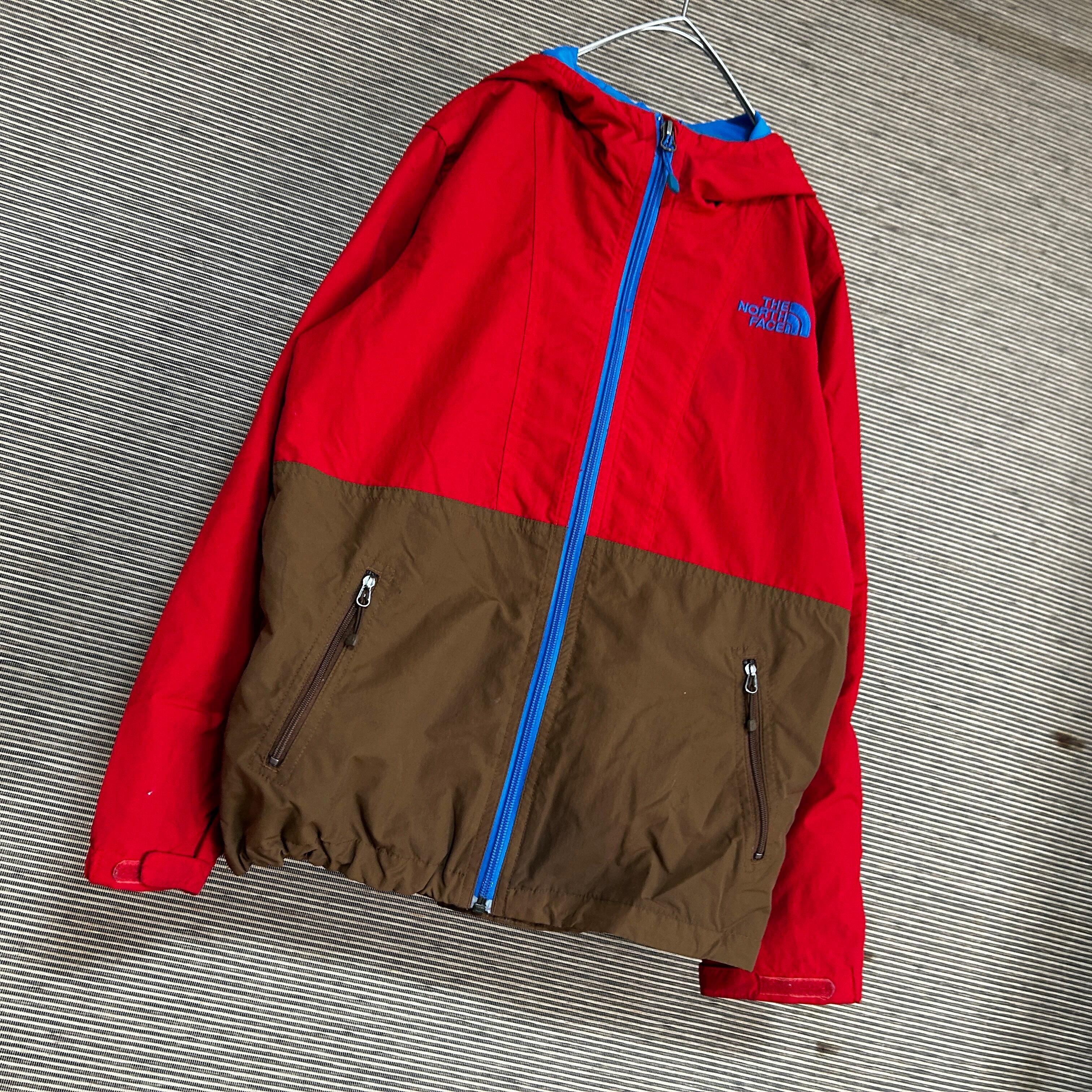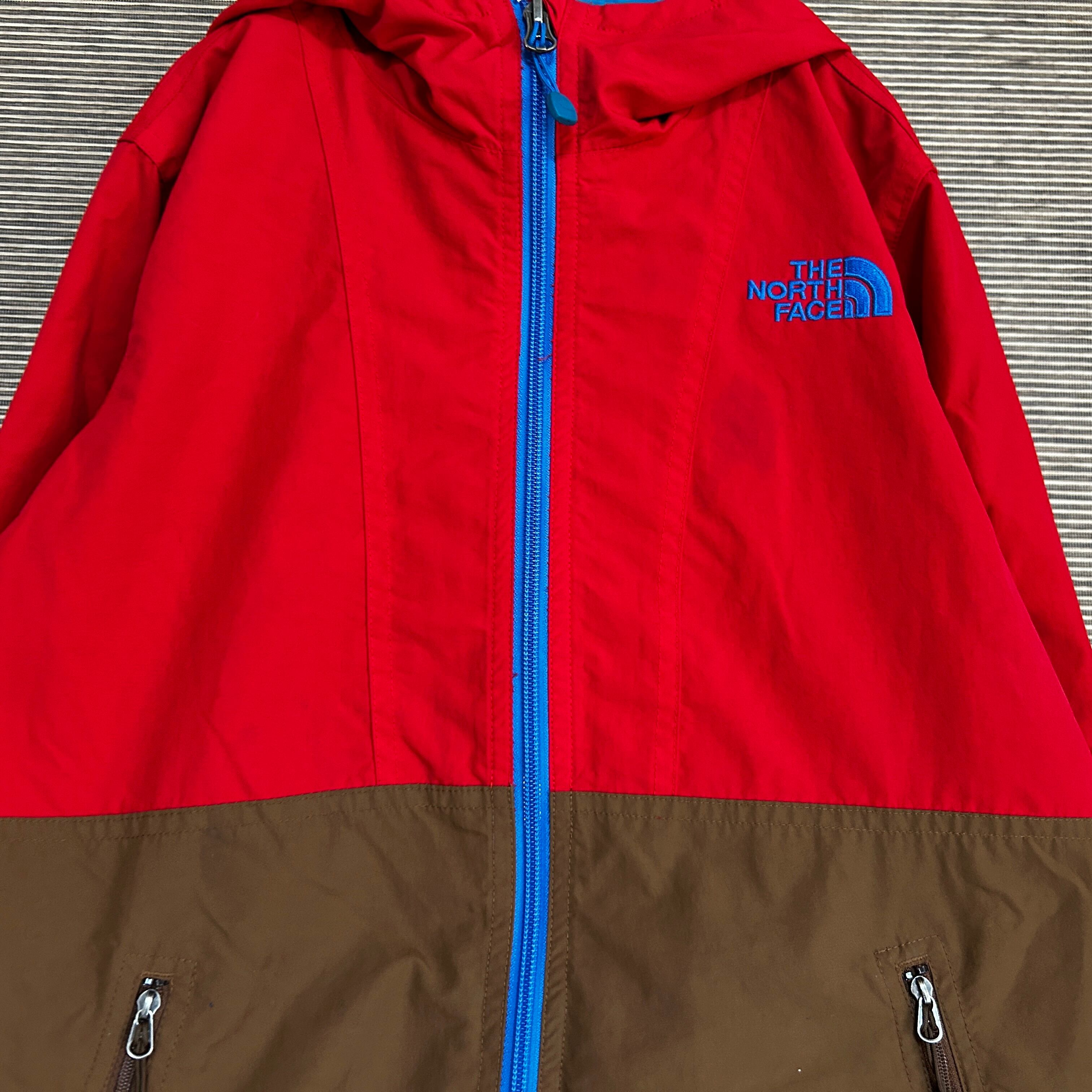 ノースフェイス ナイロンジャケット 赤茶色 子供150 刺繍 ワンポイントN1 古着 人気 キッズ 訳あり激安
