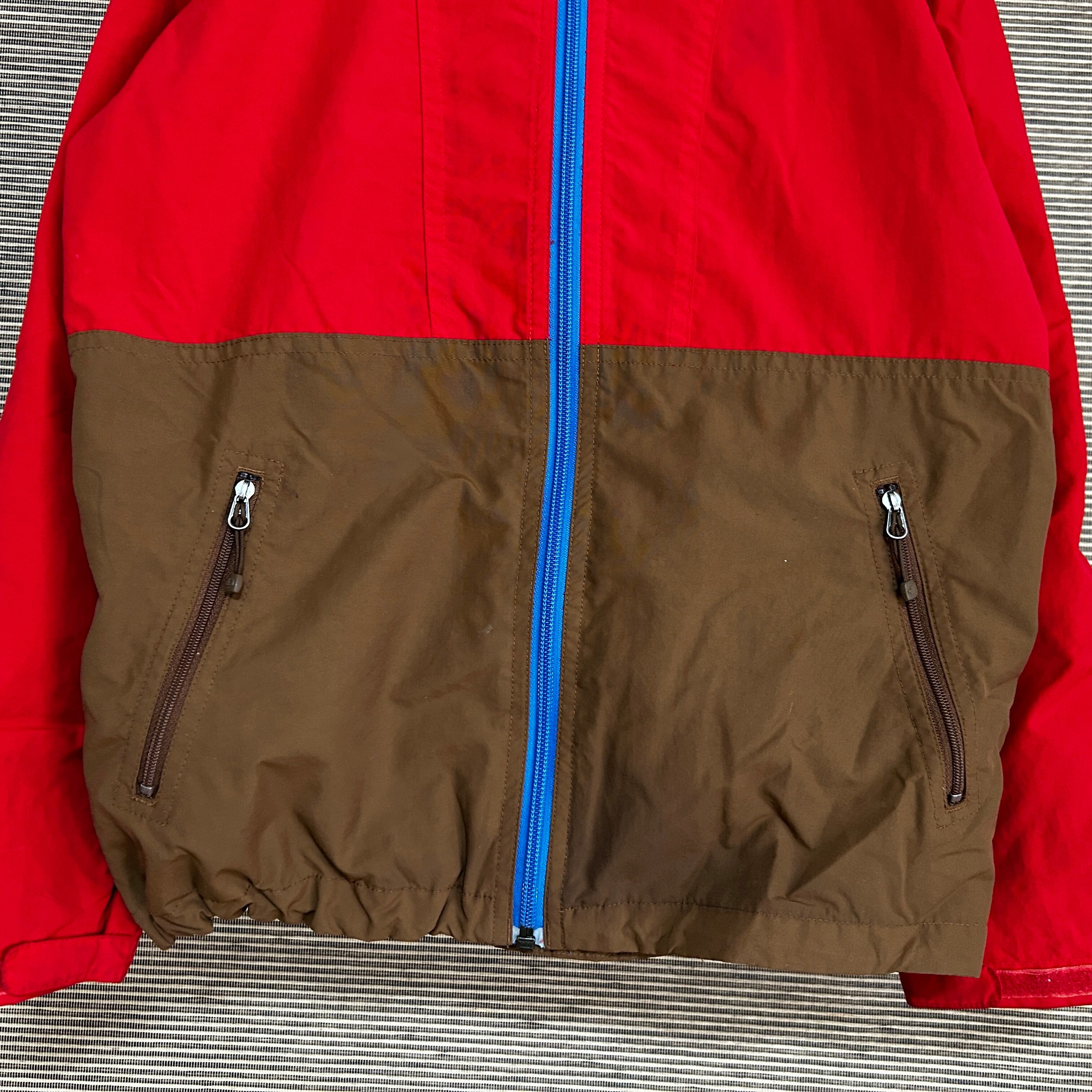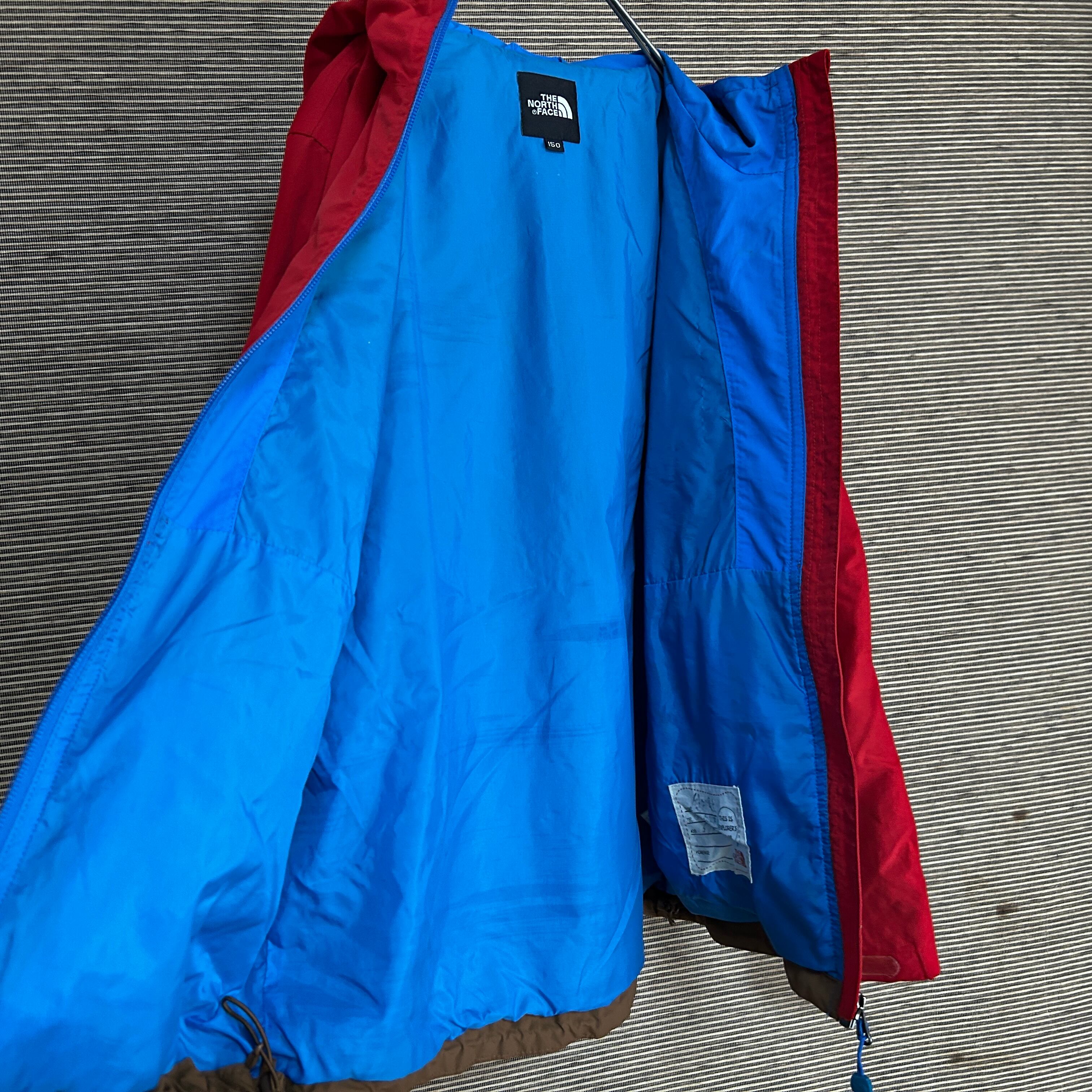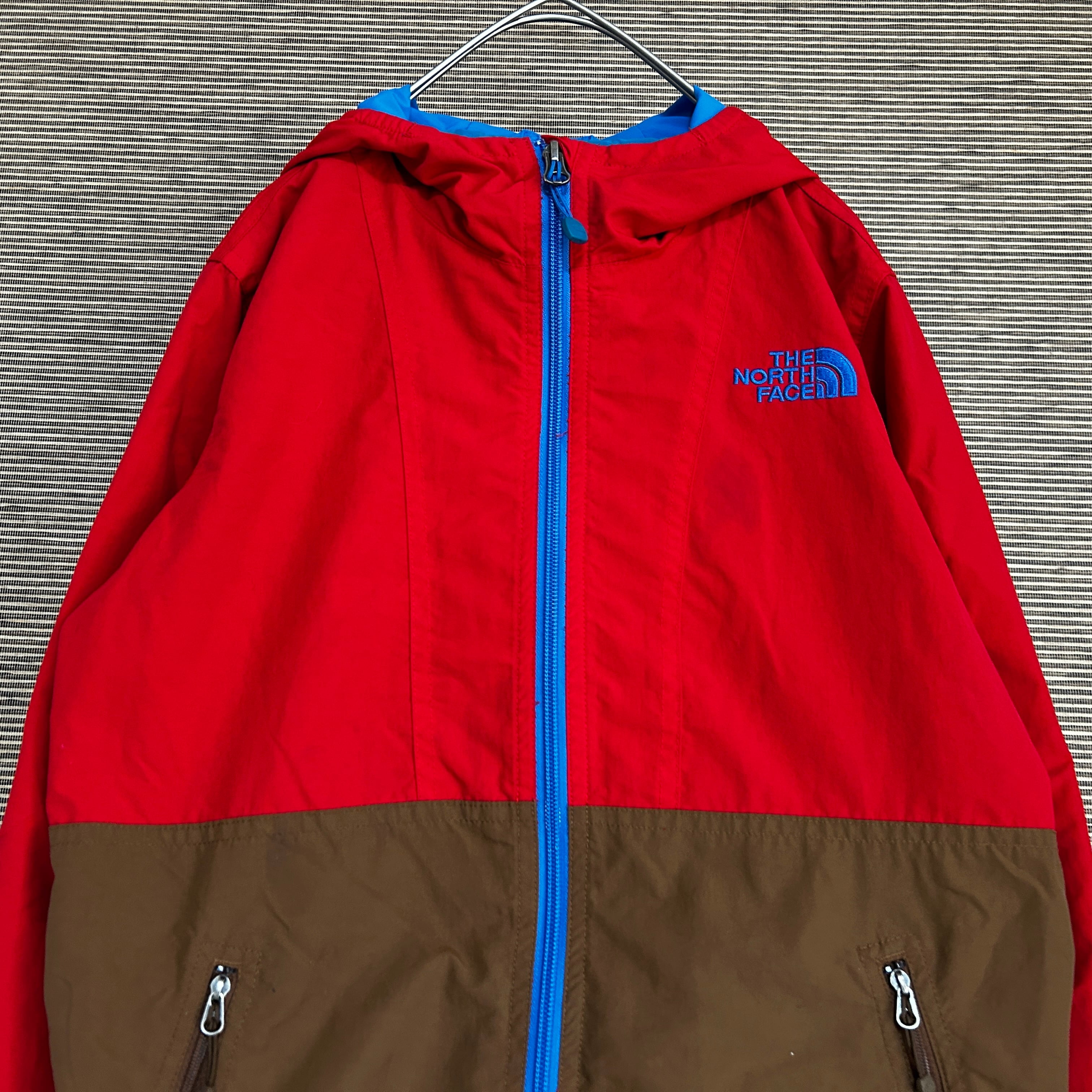 ノースフェイス ナイロンジャケット 赤茶色 子供150 刺繍 ワンポイントN1 古着 人気 キッズ 訳あり激安