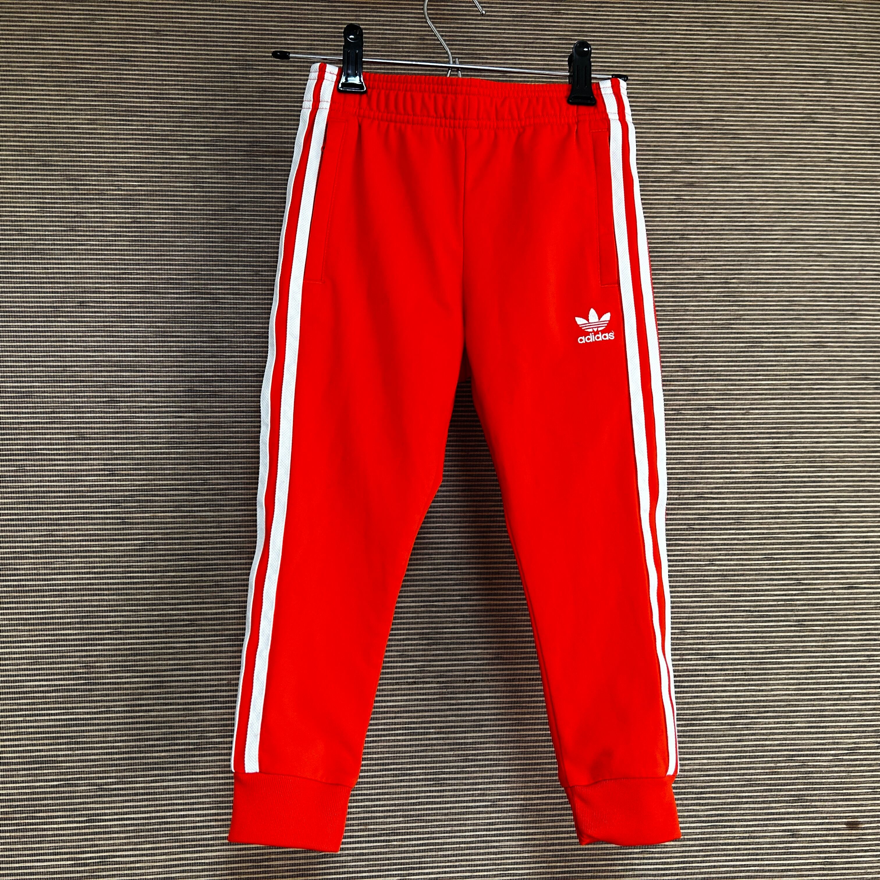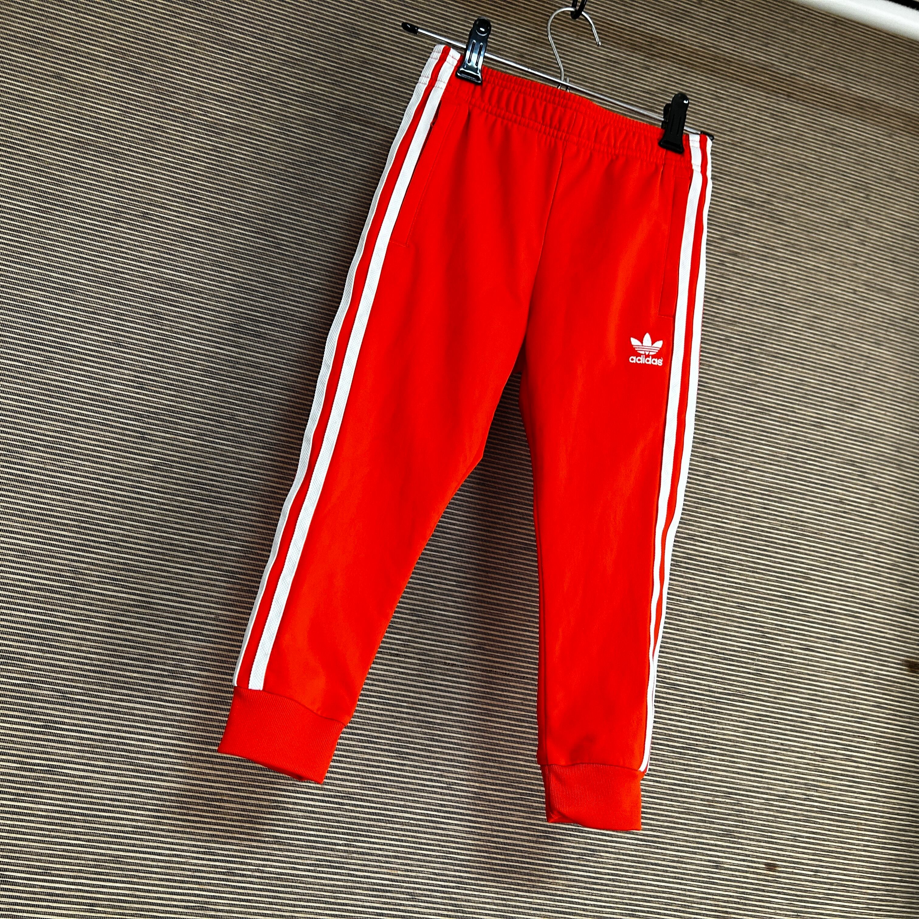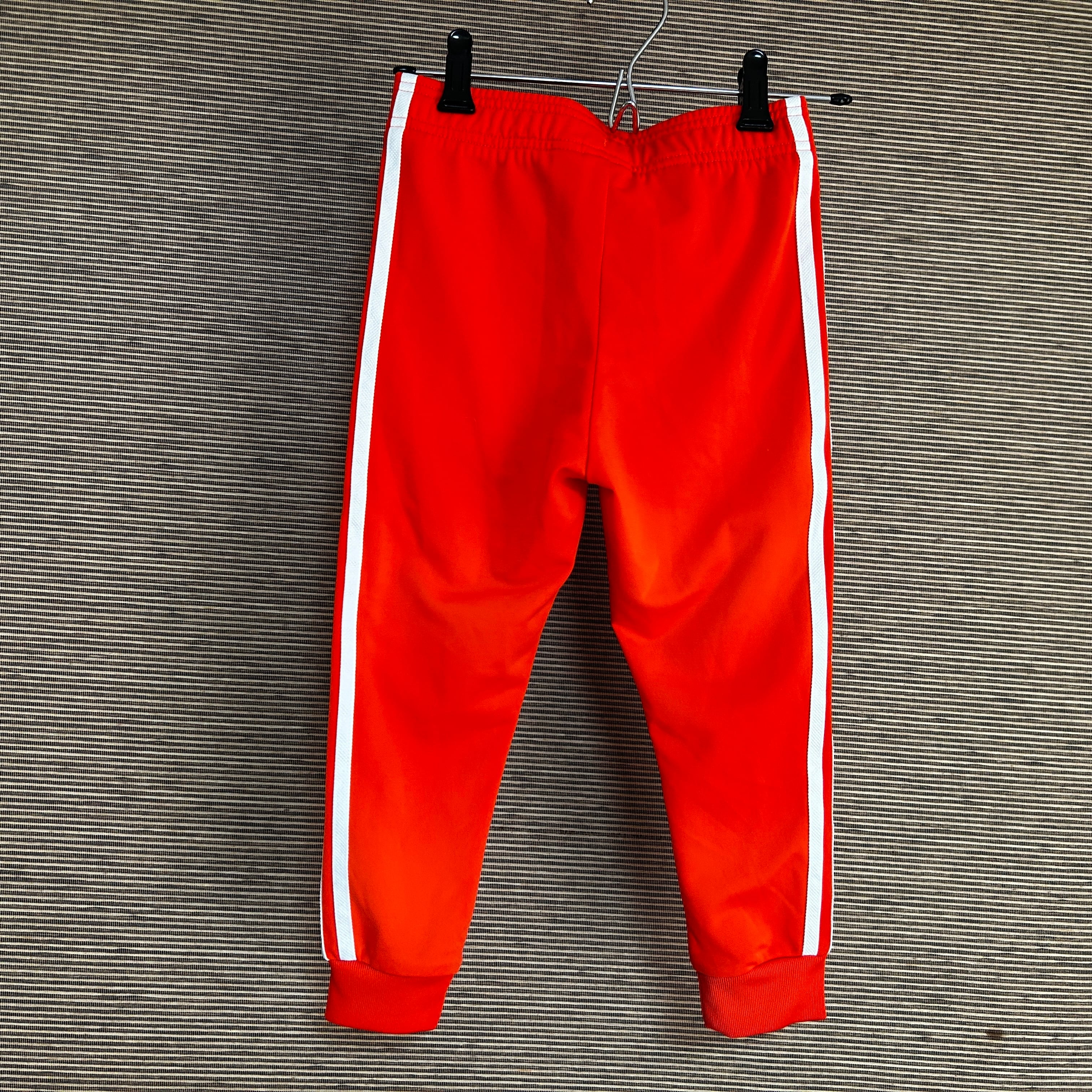 アディダス ジャージトラックパンツSST 子供110キッズ オレンジ 刺繍N 古着 サッカーオランダ代表カラー 人気 トレフォイル