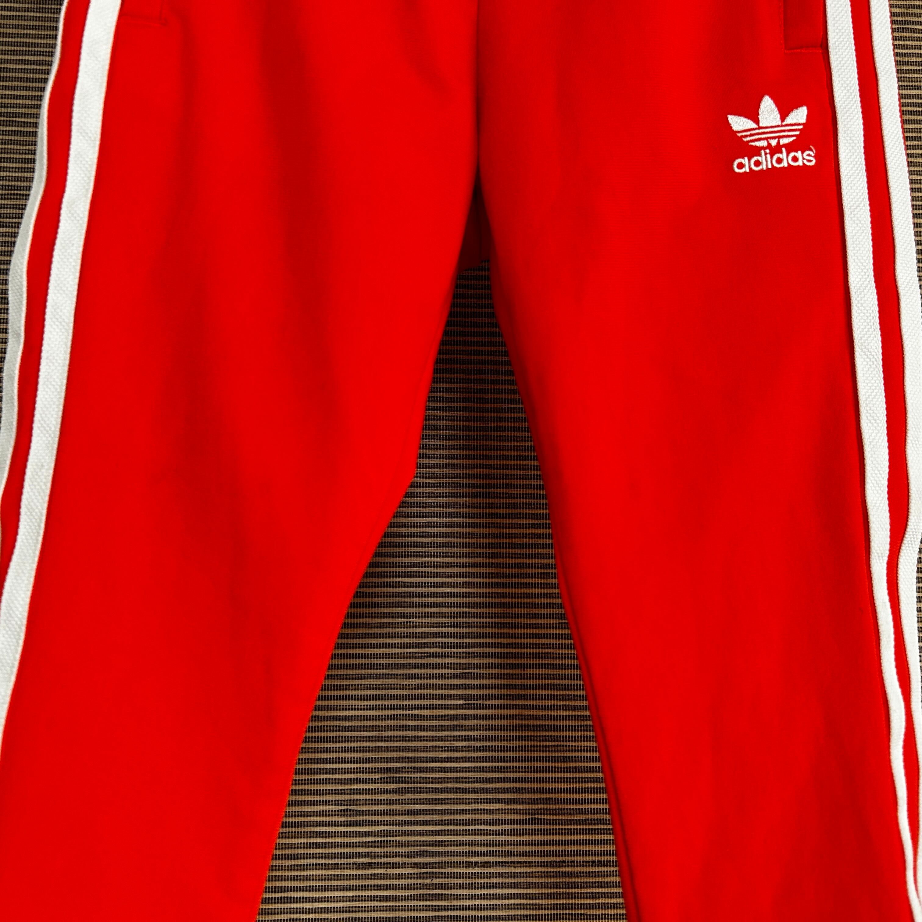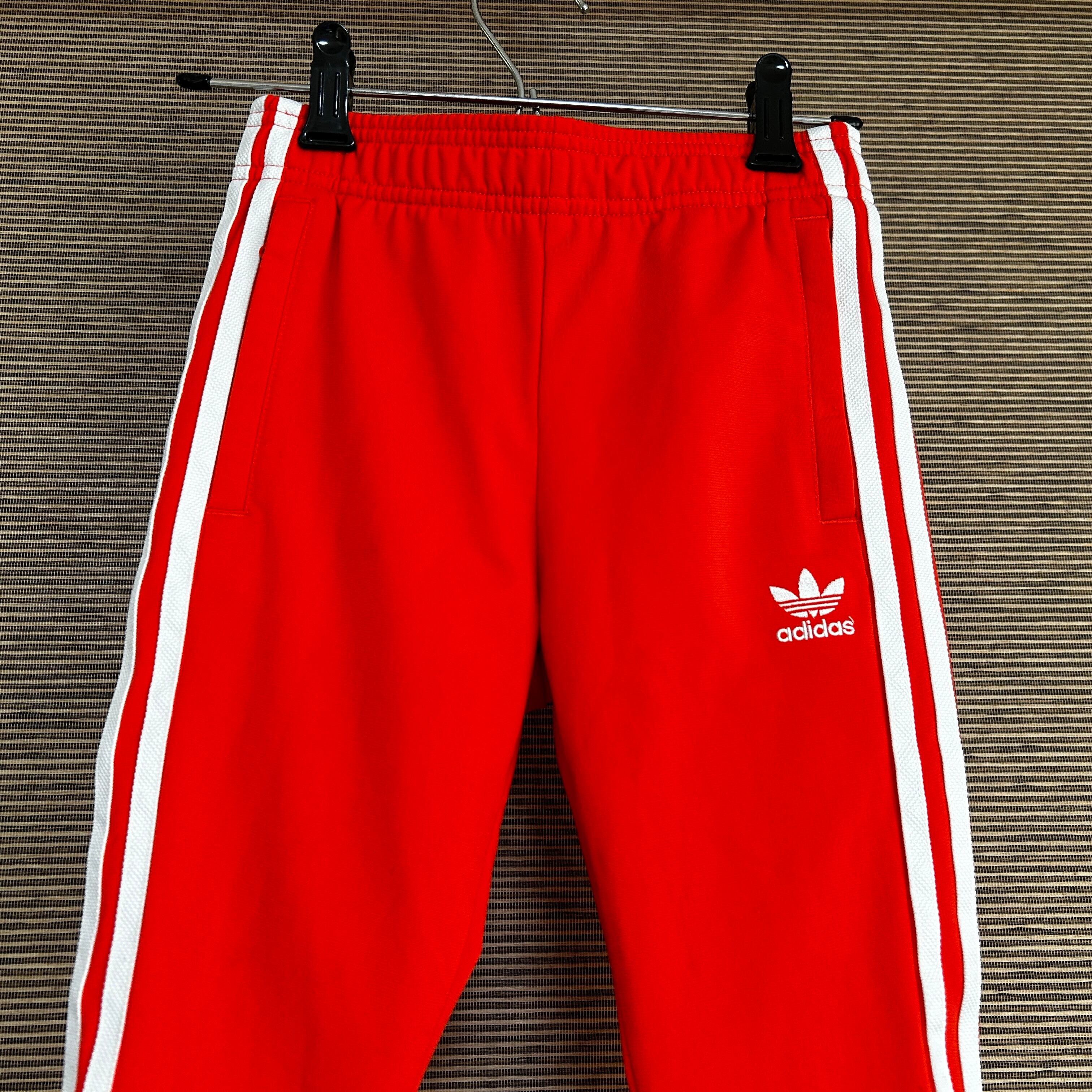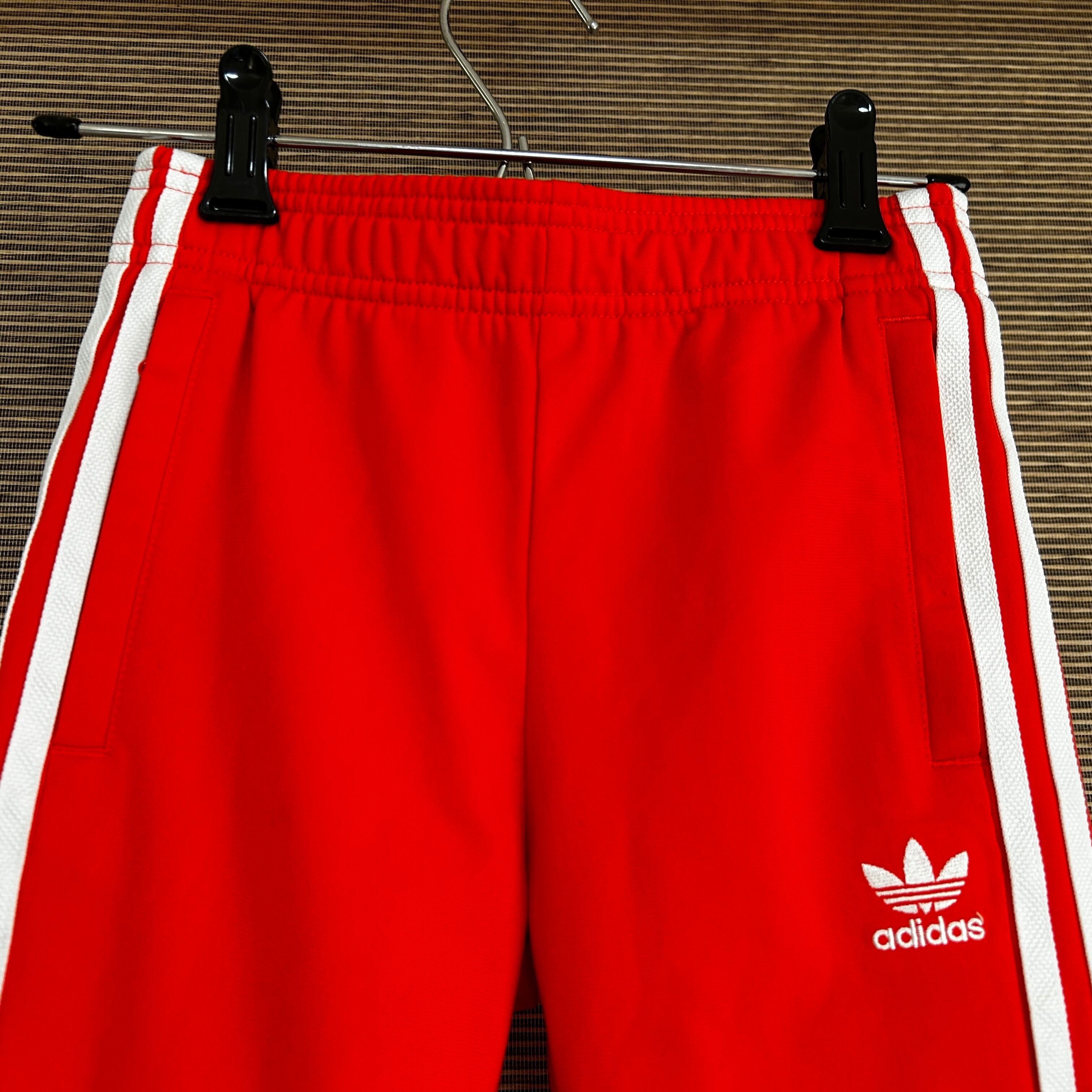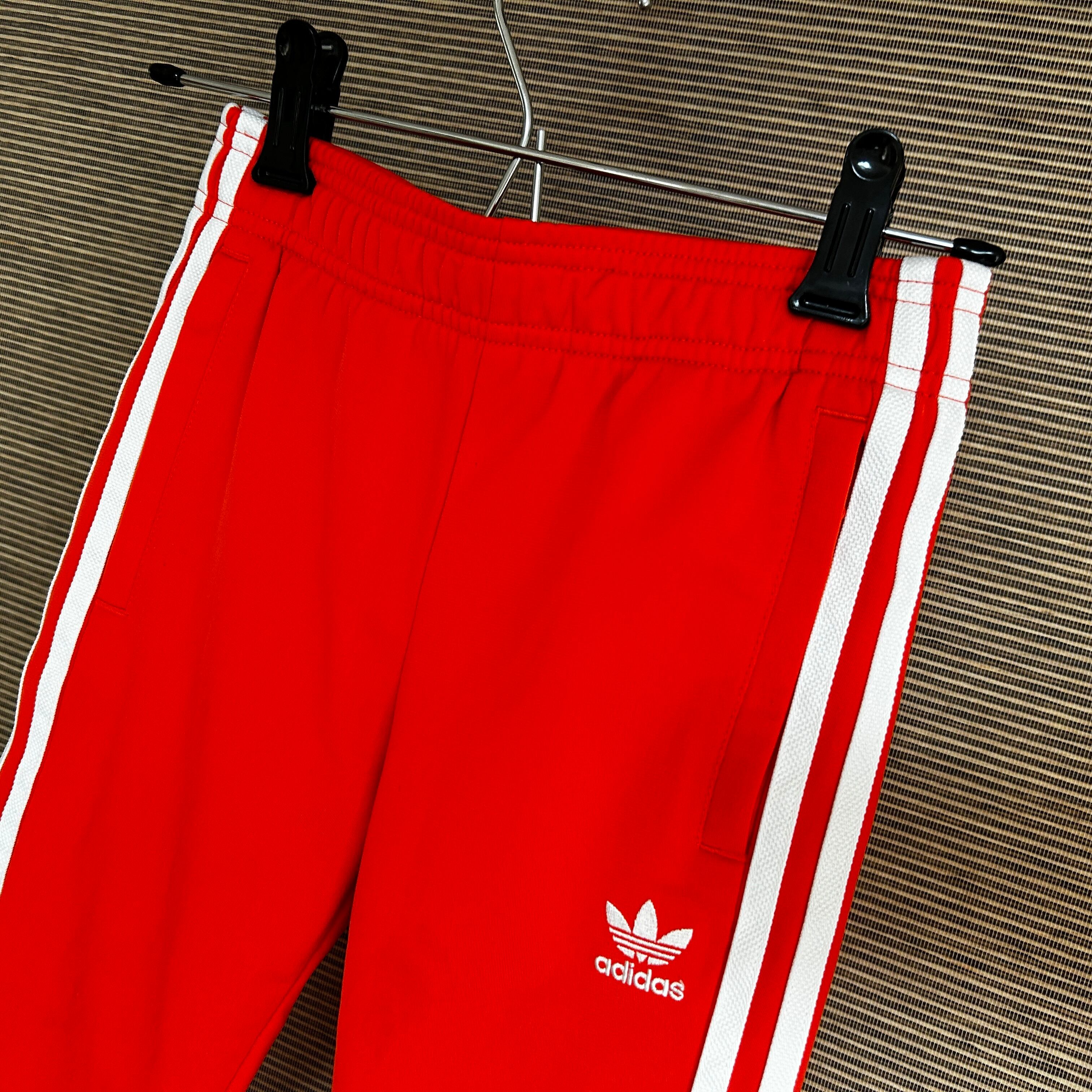 アディダス ジャージトラックパンツSST 子供110キッズ オレンジ 刺繍N 古着 サッカーオランダ代表カラー 人気 トレフォイル