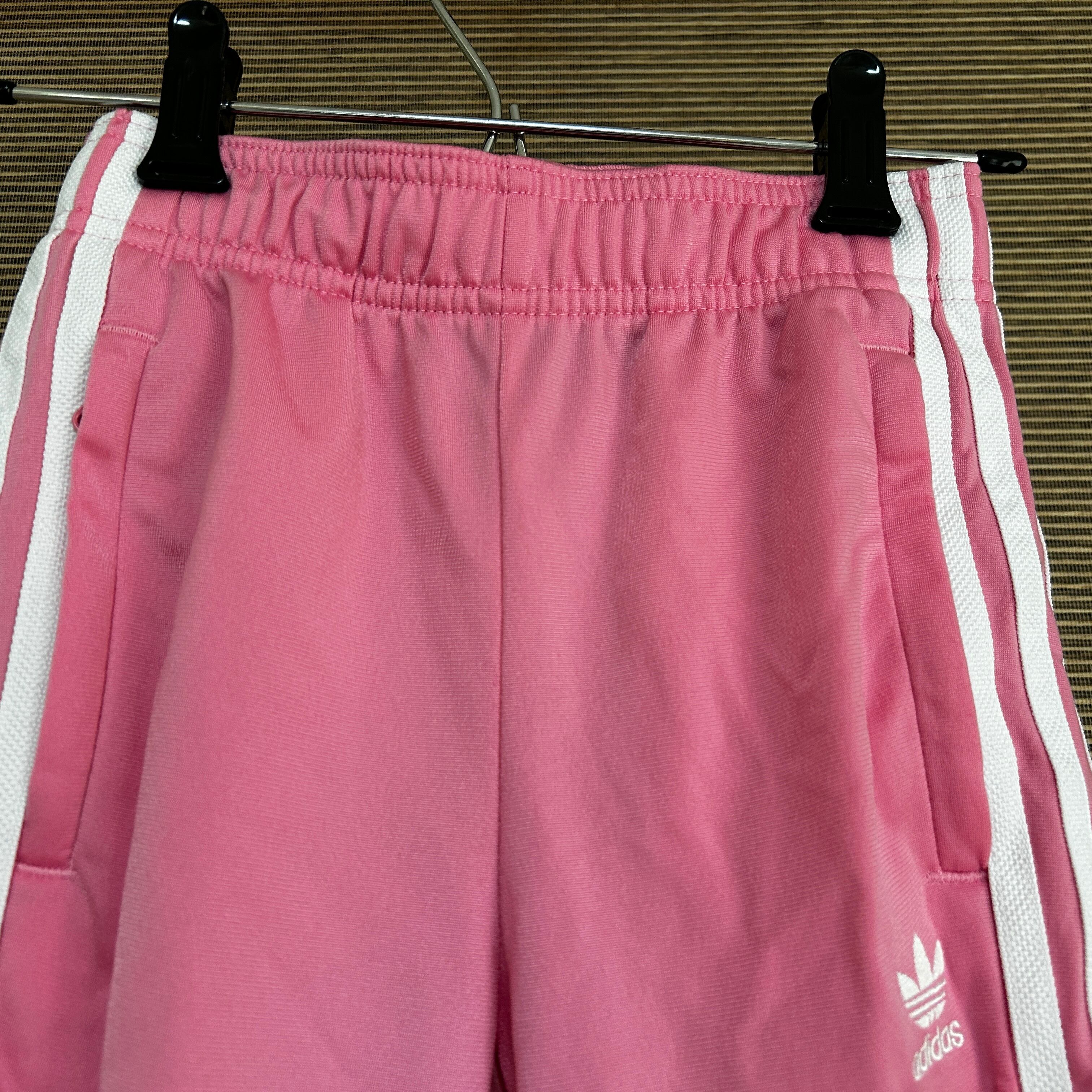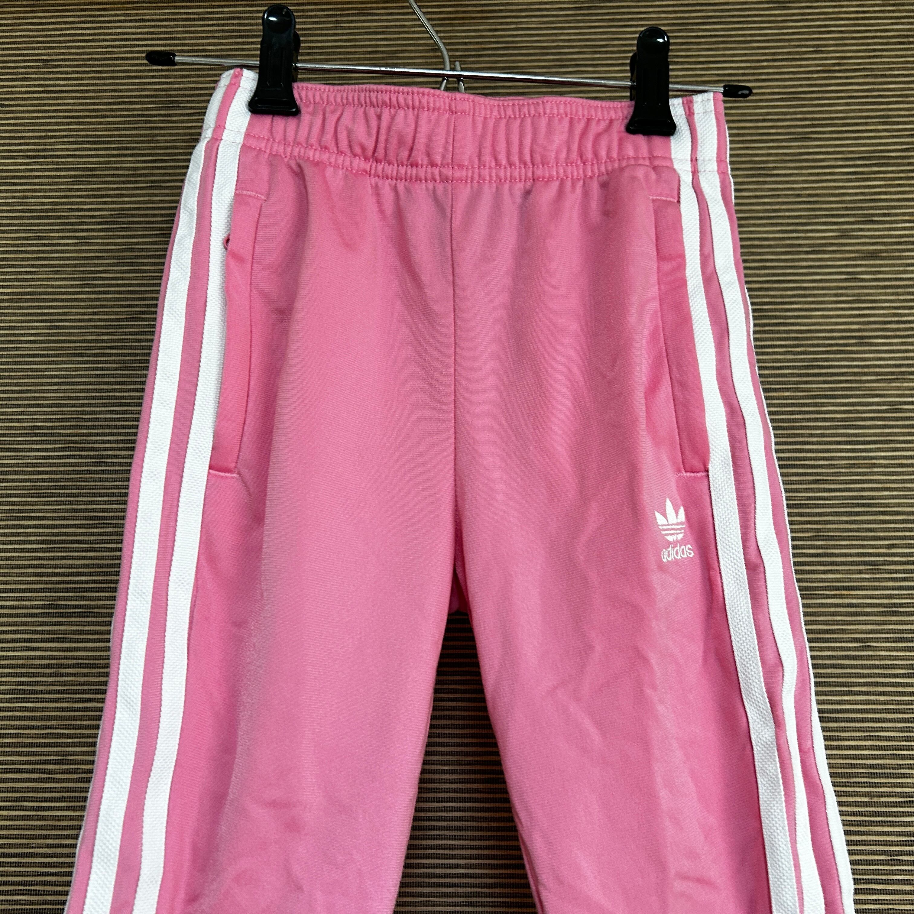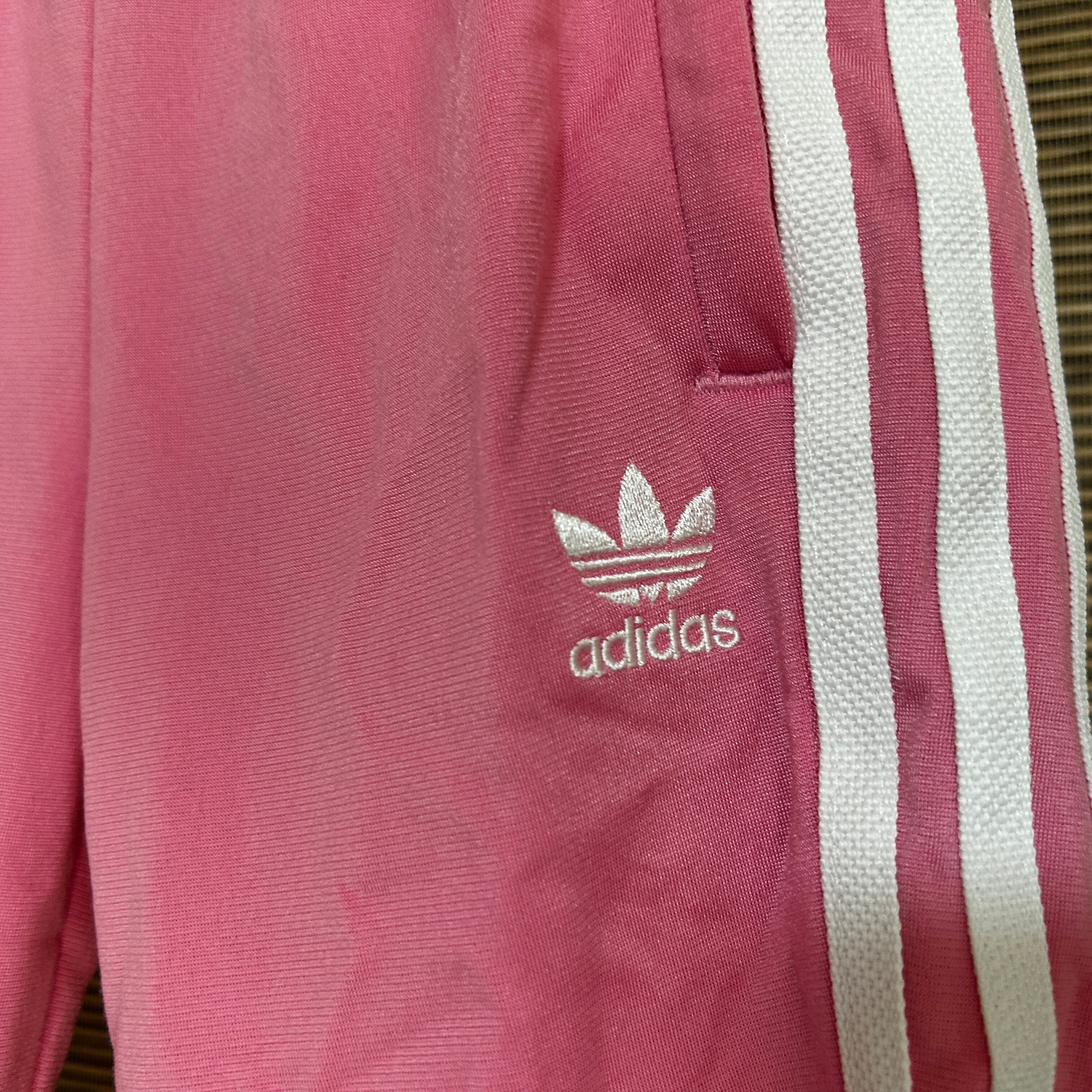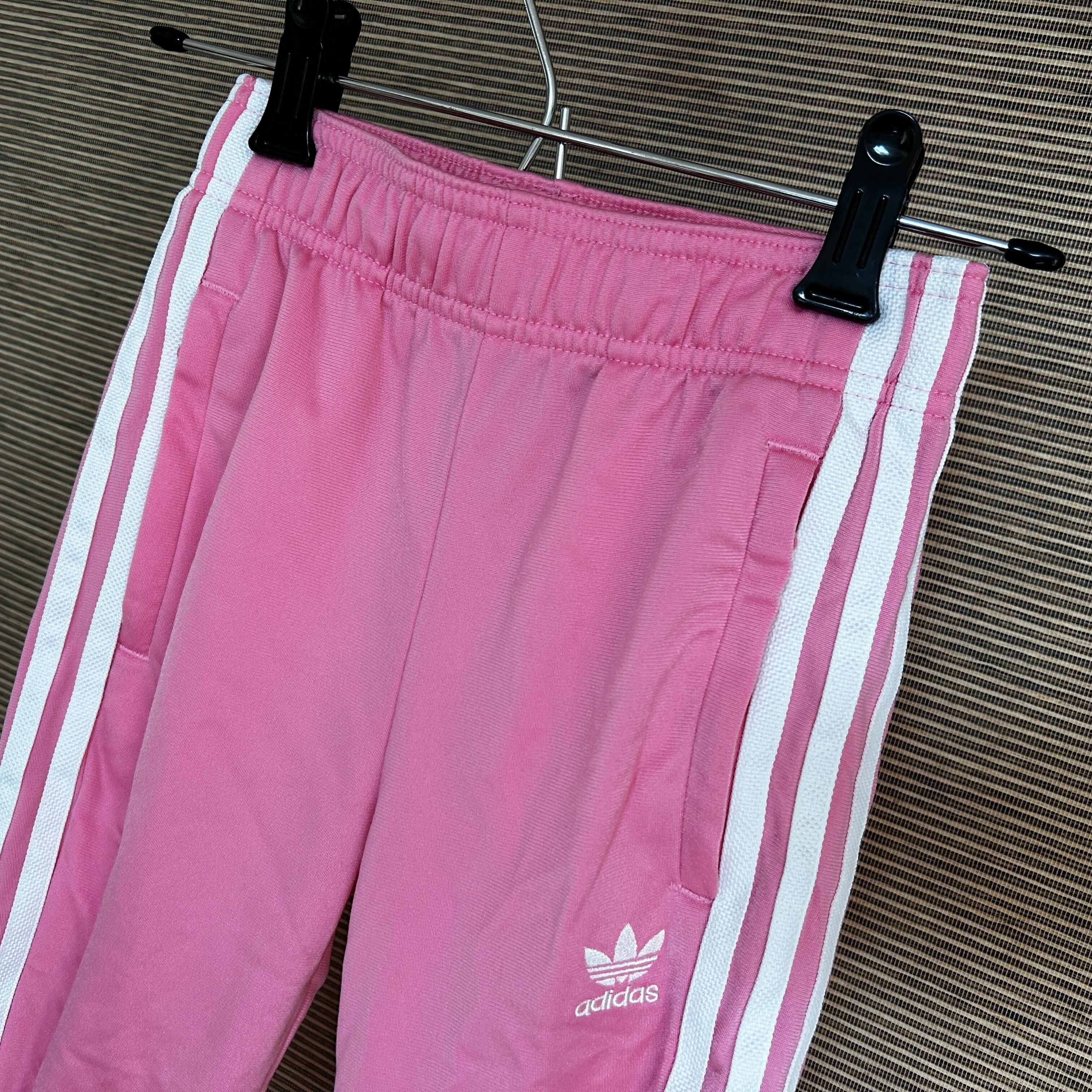 アディダス ジャージトラックパンツSST 子供120キッズ ピンク 刺繍N 古着 激レアカラー 人気カラー トレフォイルロゴ ワンポイントロゴ