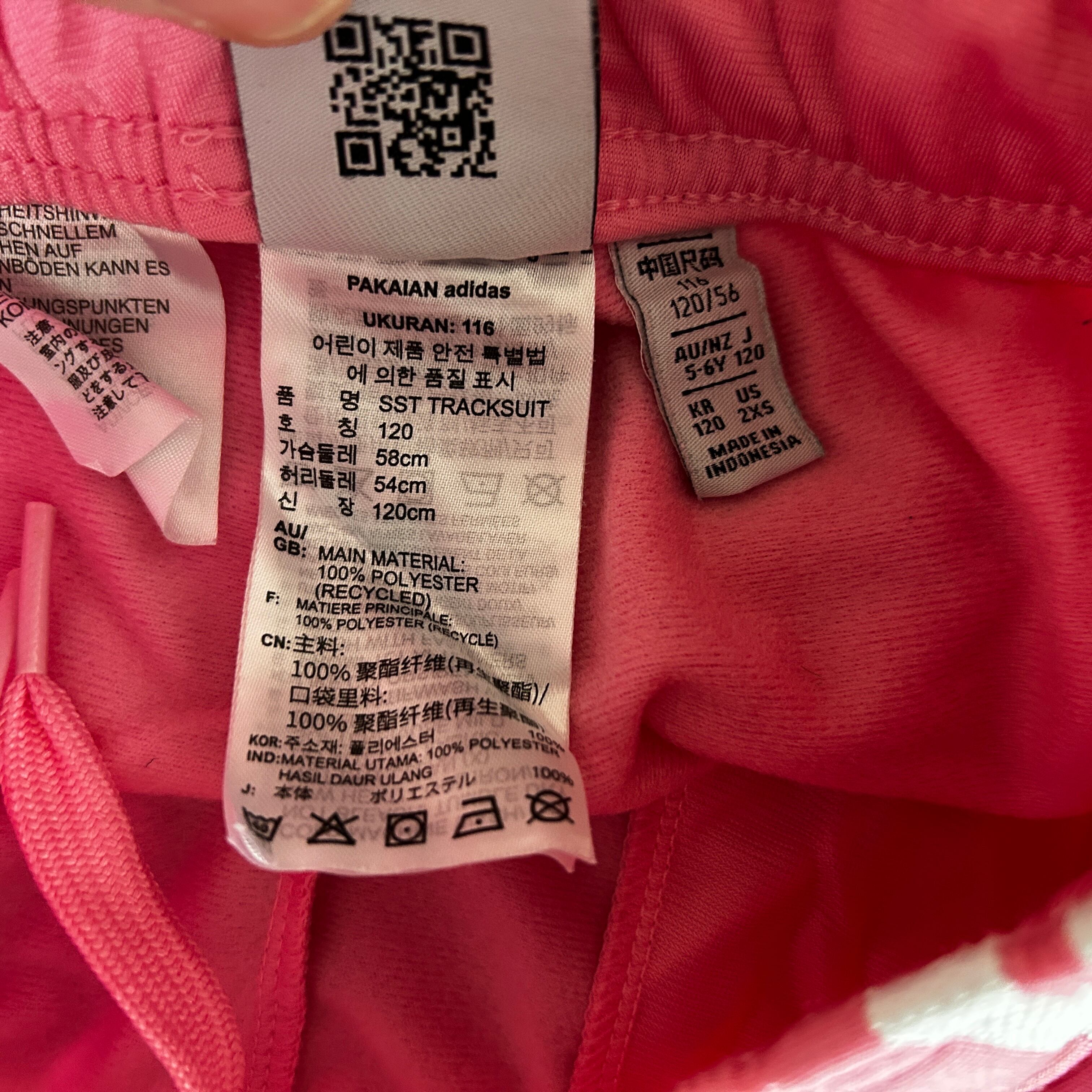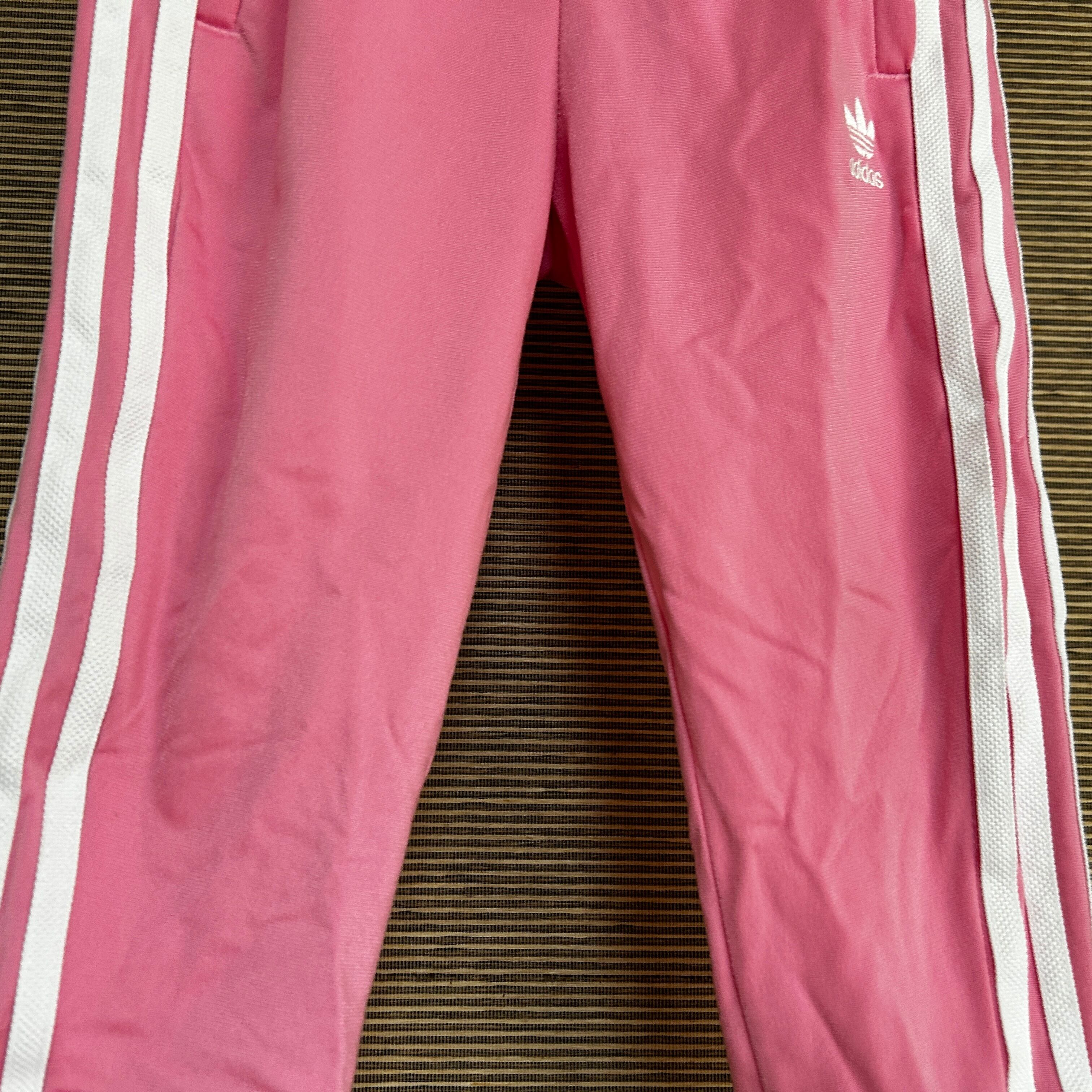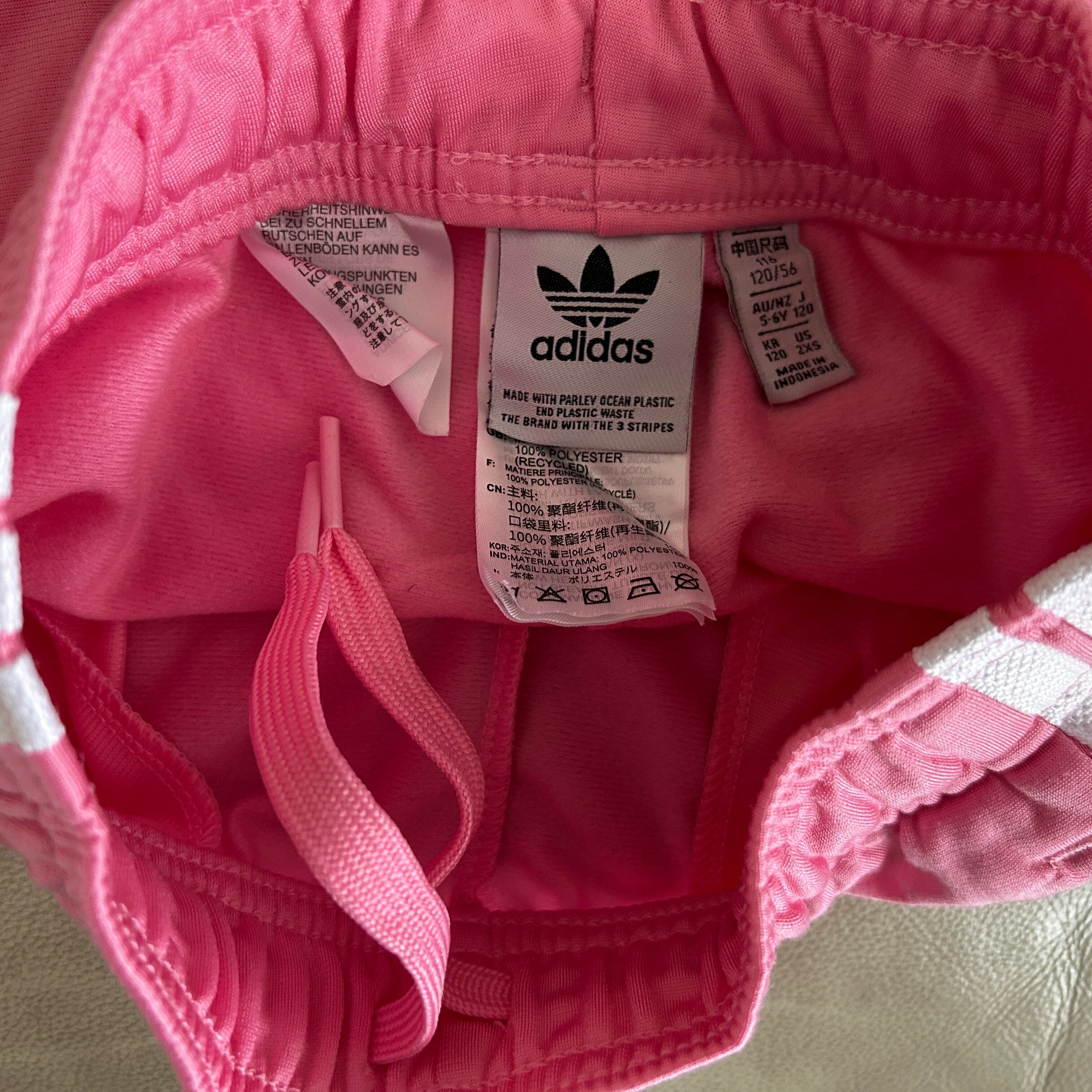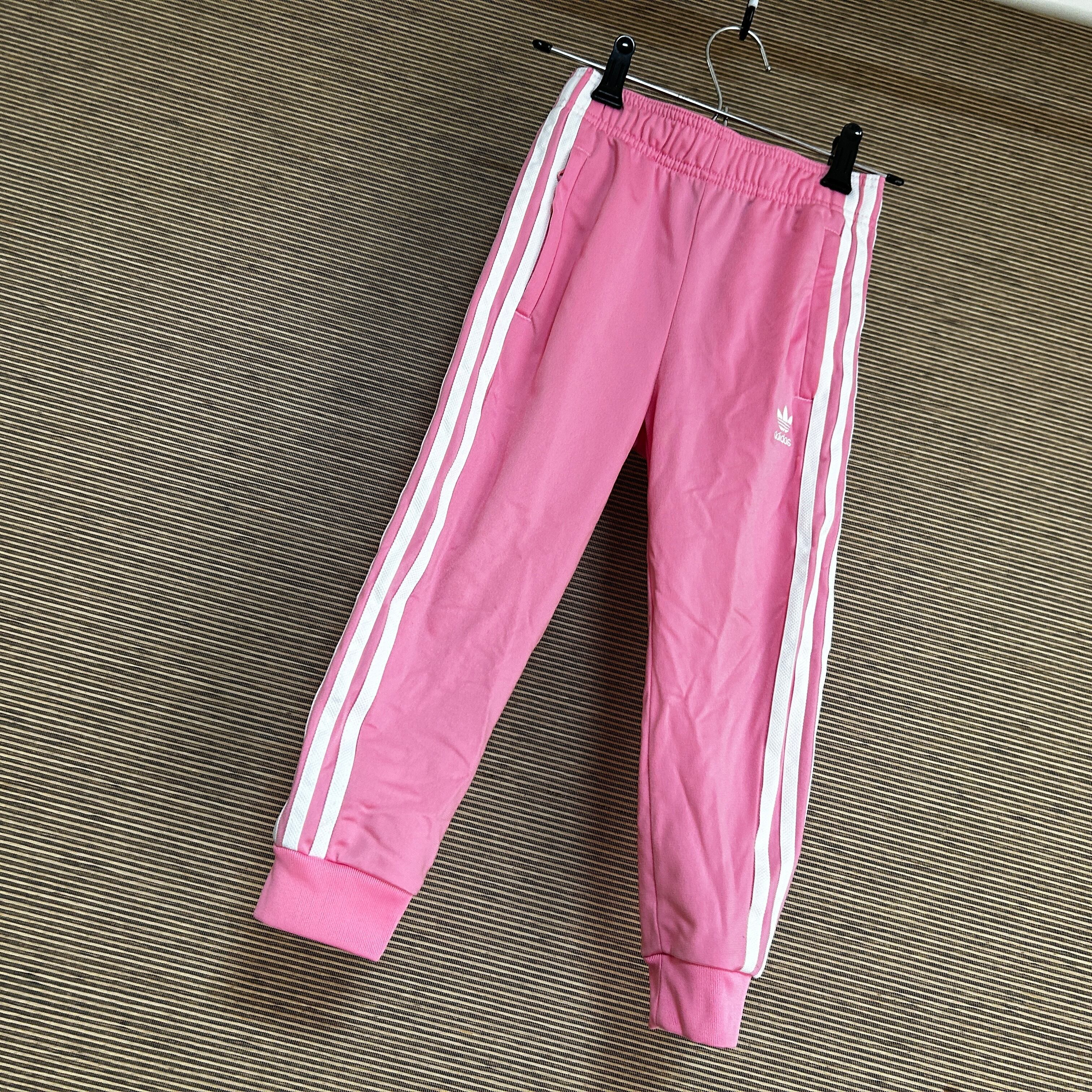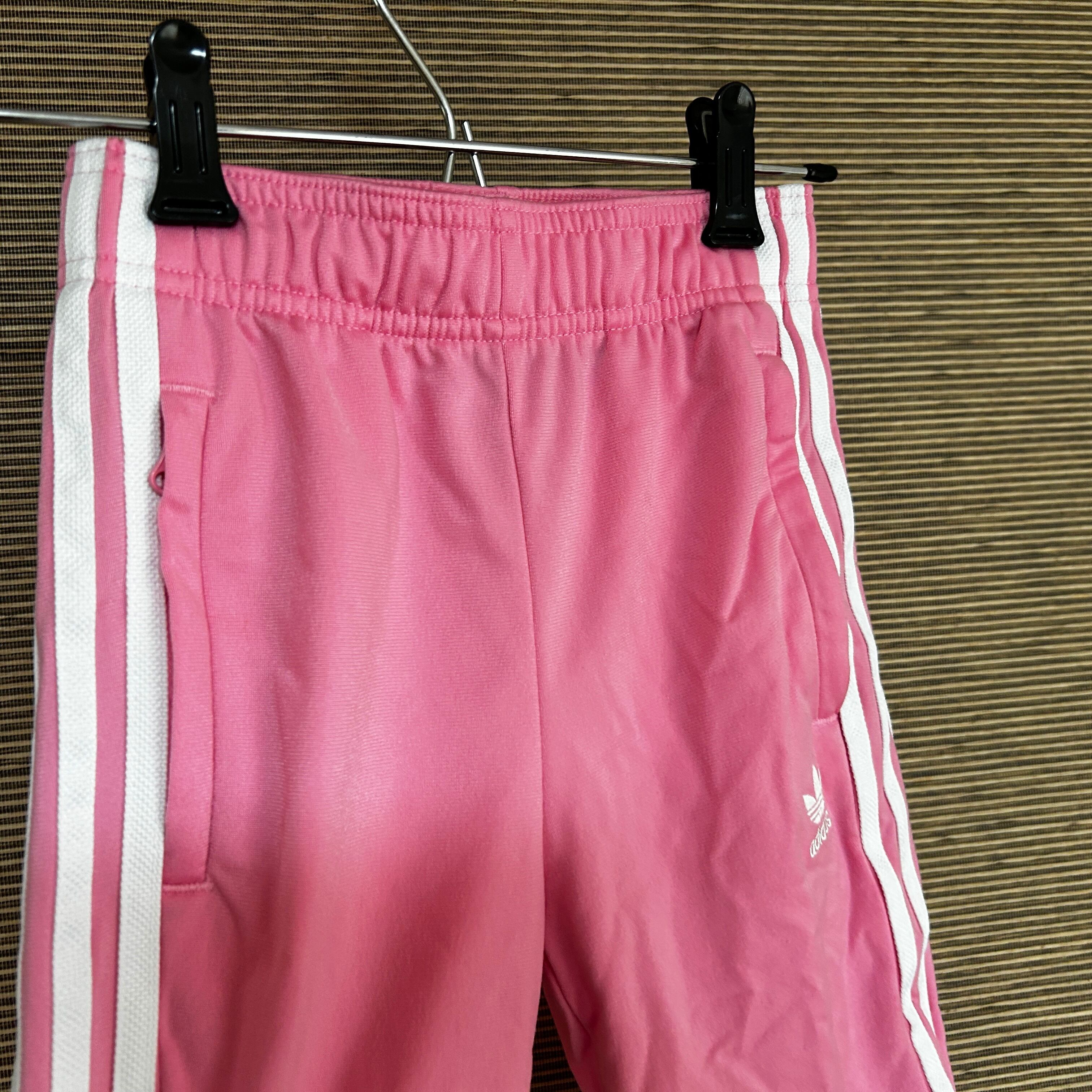 アディダス ジャージトラックパンツSST 子供120キッズ ピンク 刺繍N 古着 激レアカラー 人気カラー トレフォイルロゴ ワンポイントロゴ