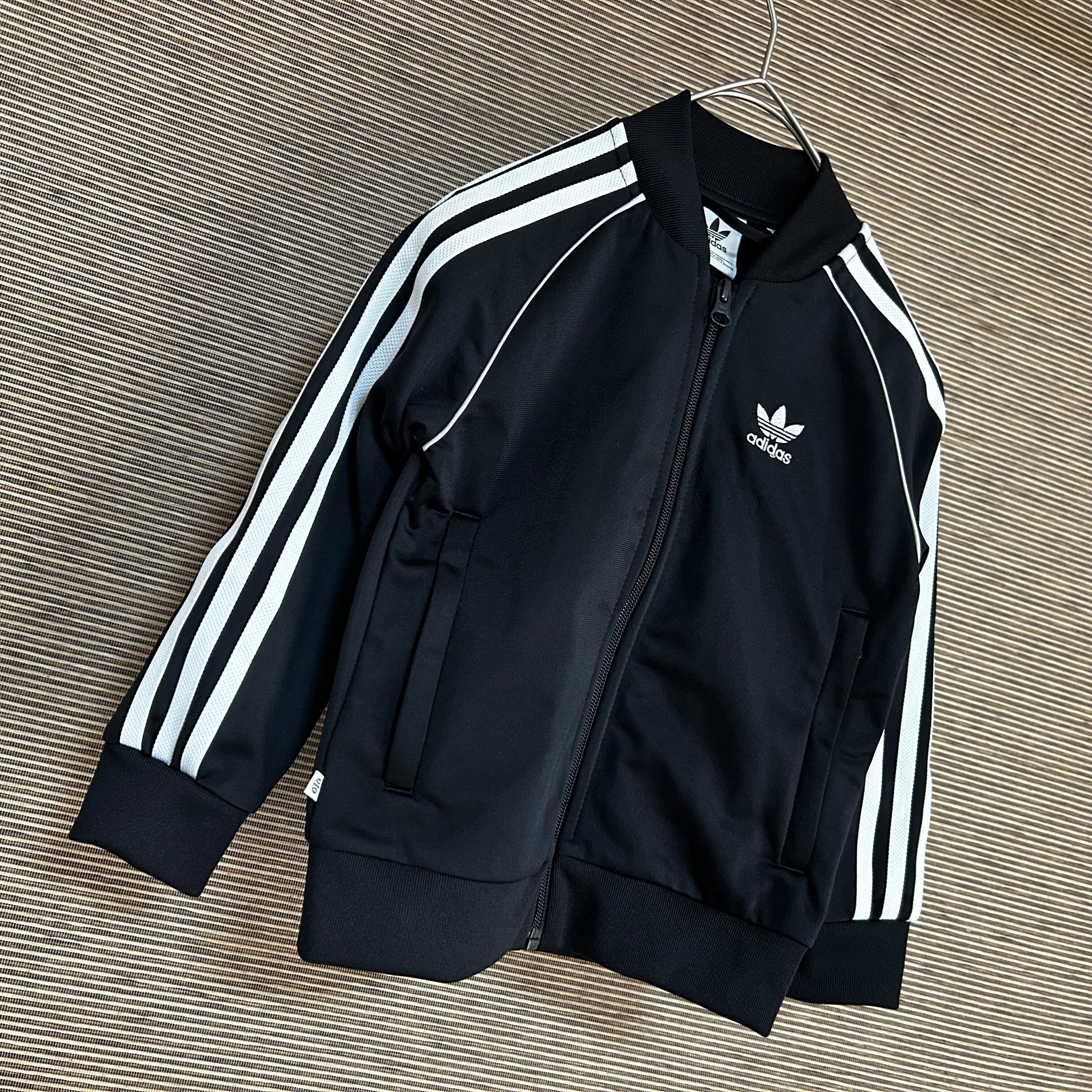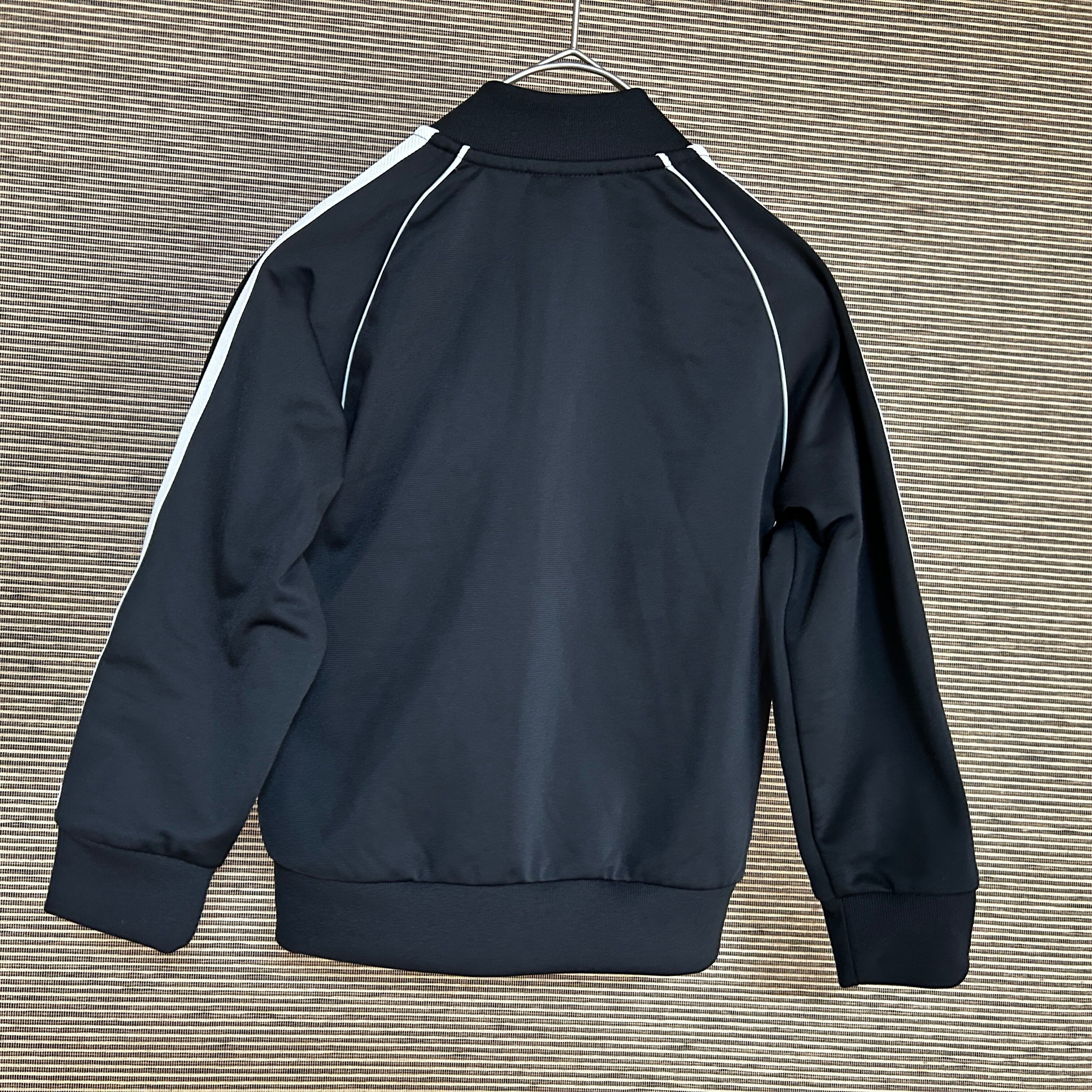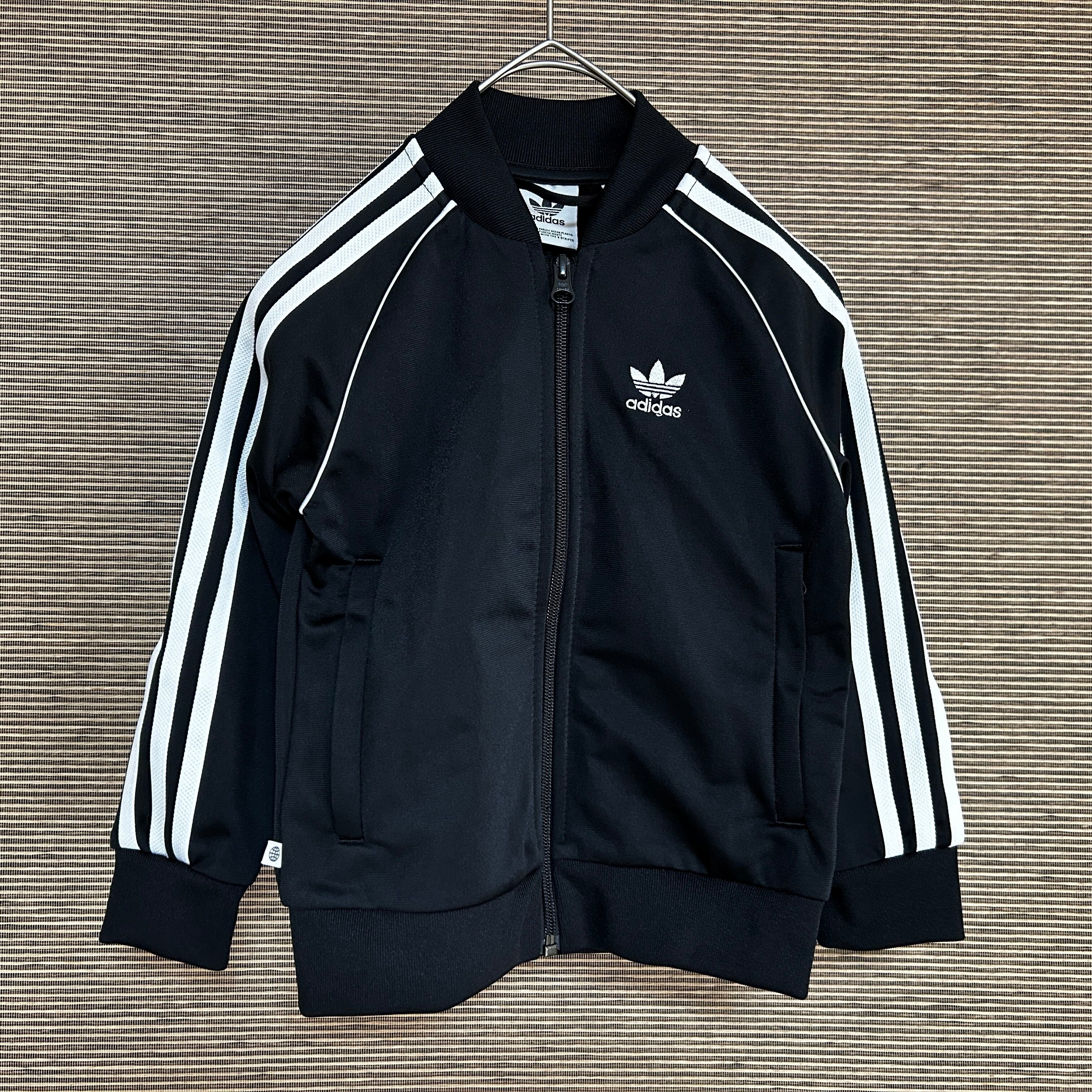 アディダス ジャージトラックジャケットSST黒白子供110刺繍トレフォイルN 古着 スーパースター キッズ ブラック