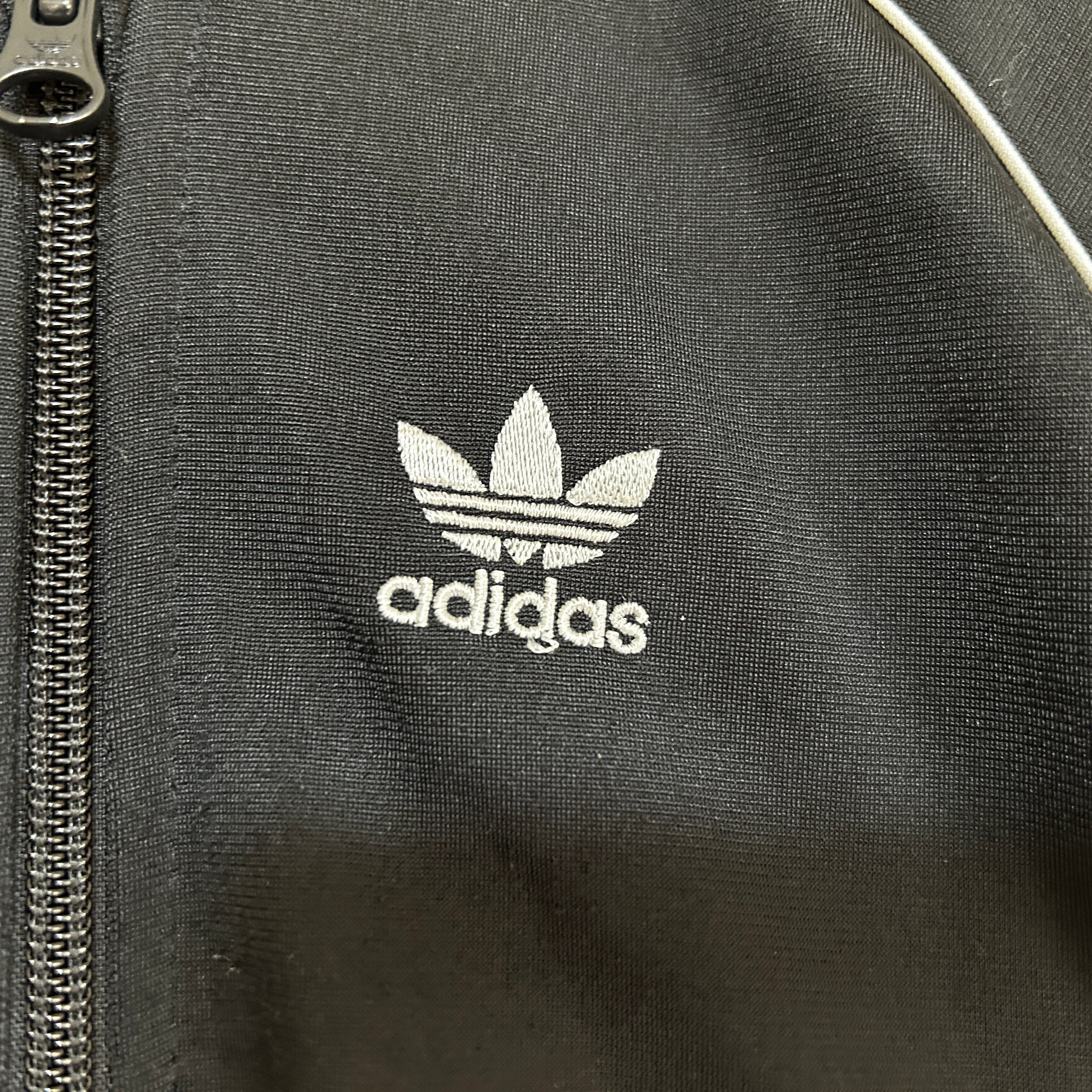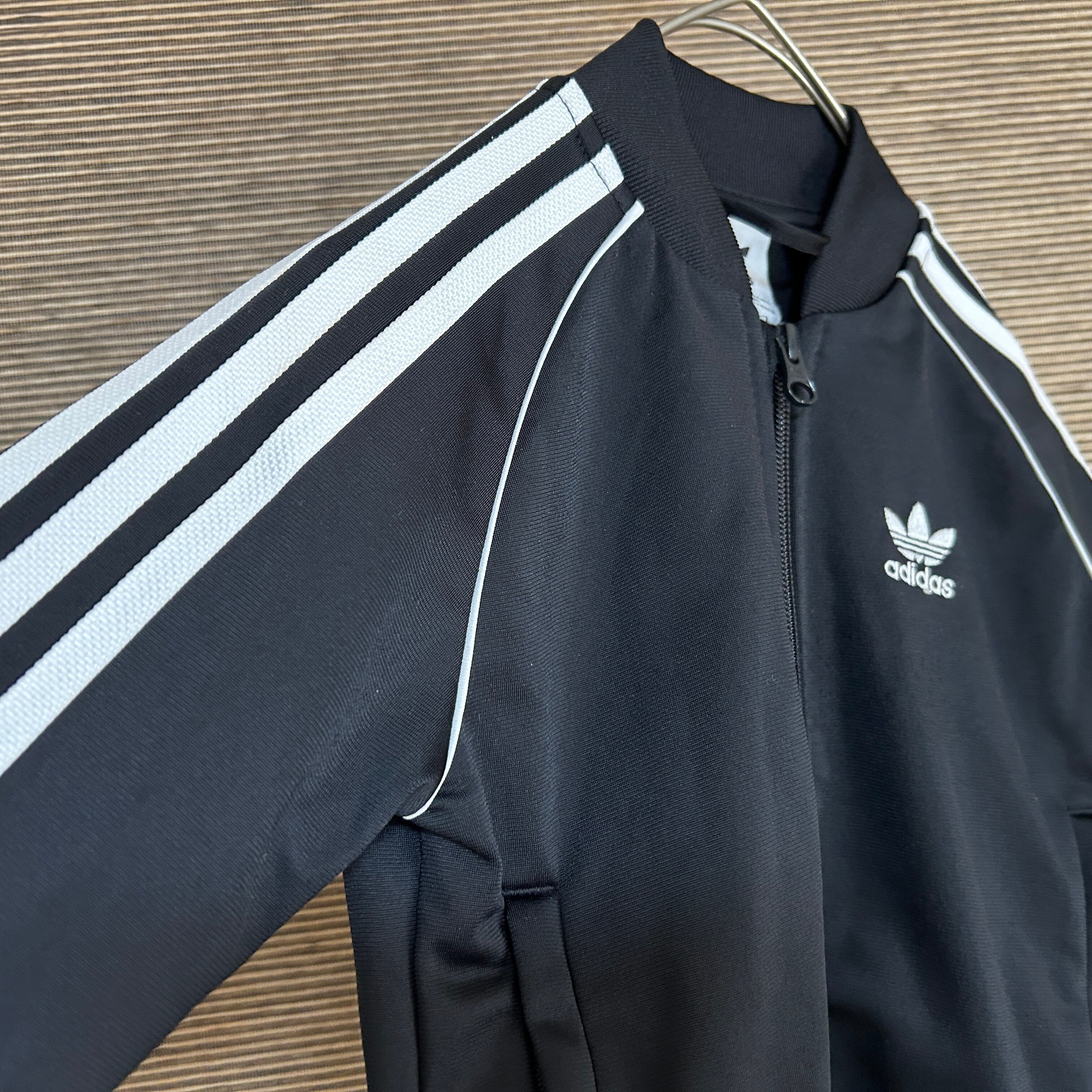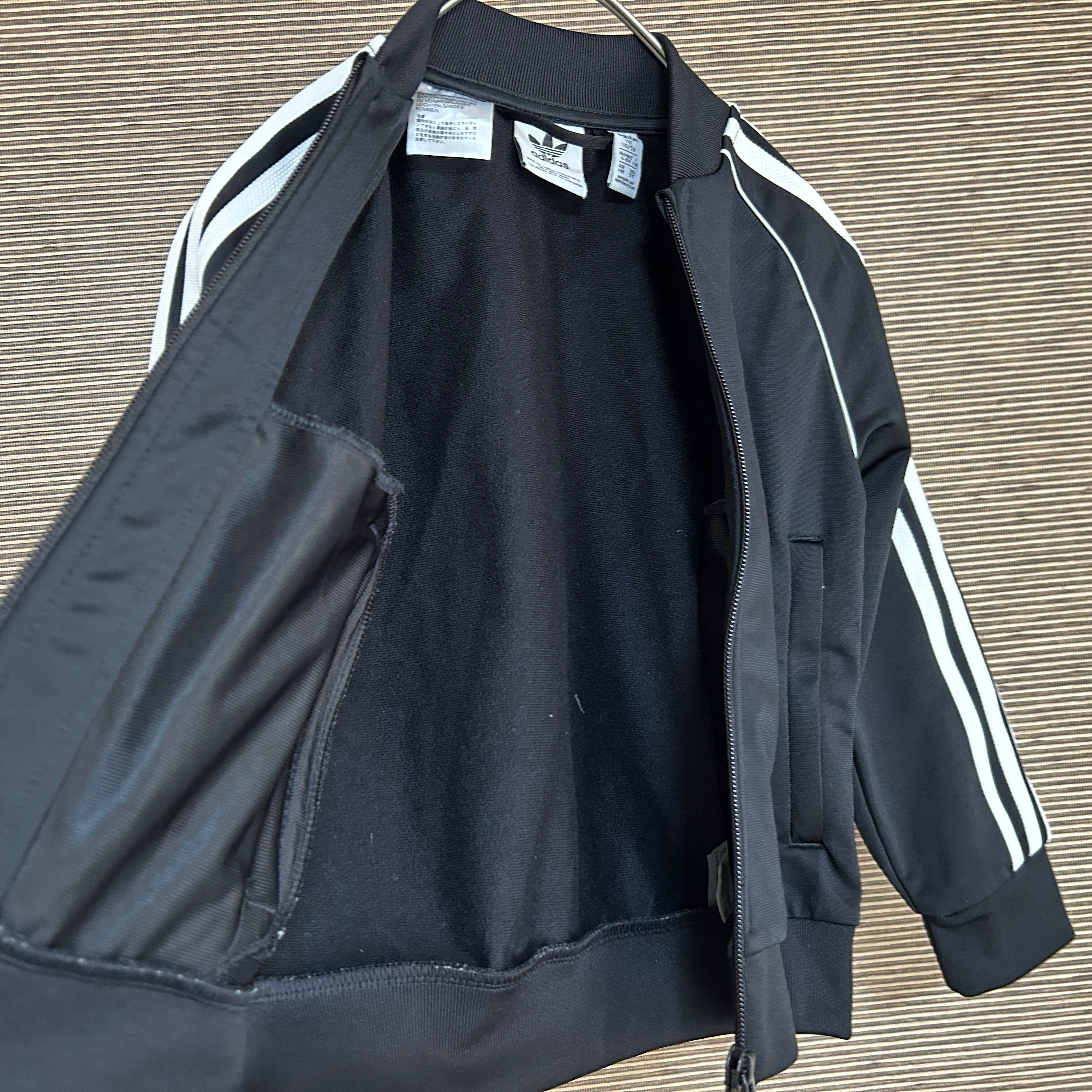 アディダス ジャージトラックジャケットSST黒白子供110刺繍トレフォイルN 古着 スーパースター キッズ ブラック