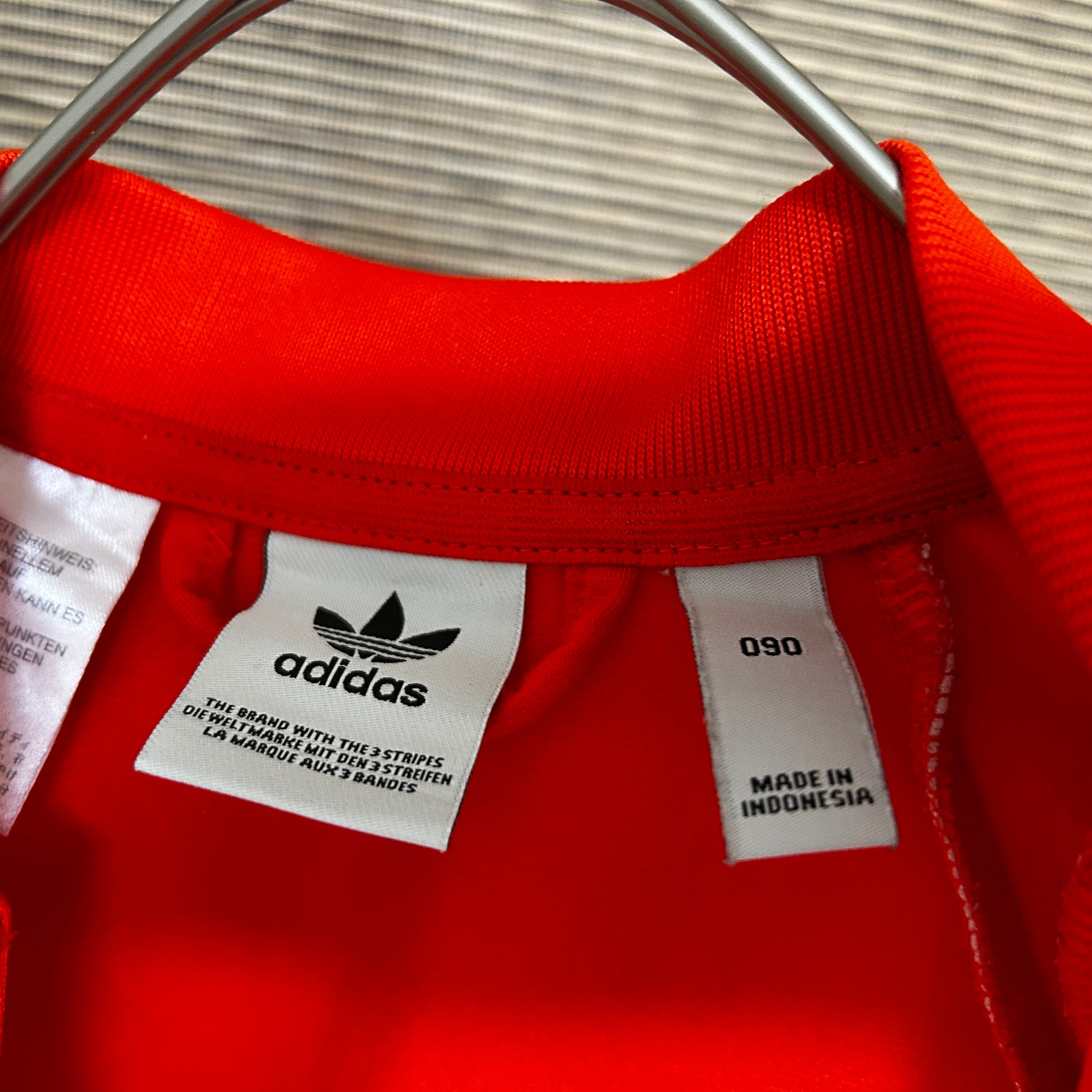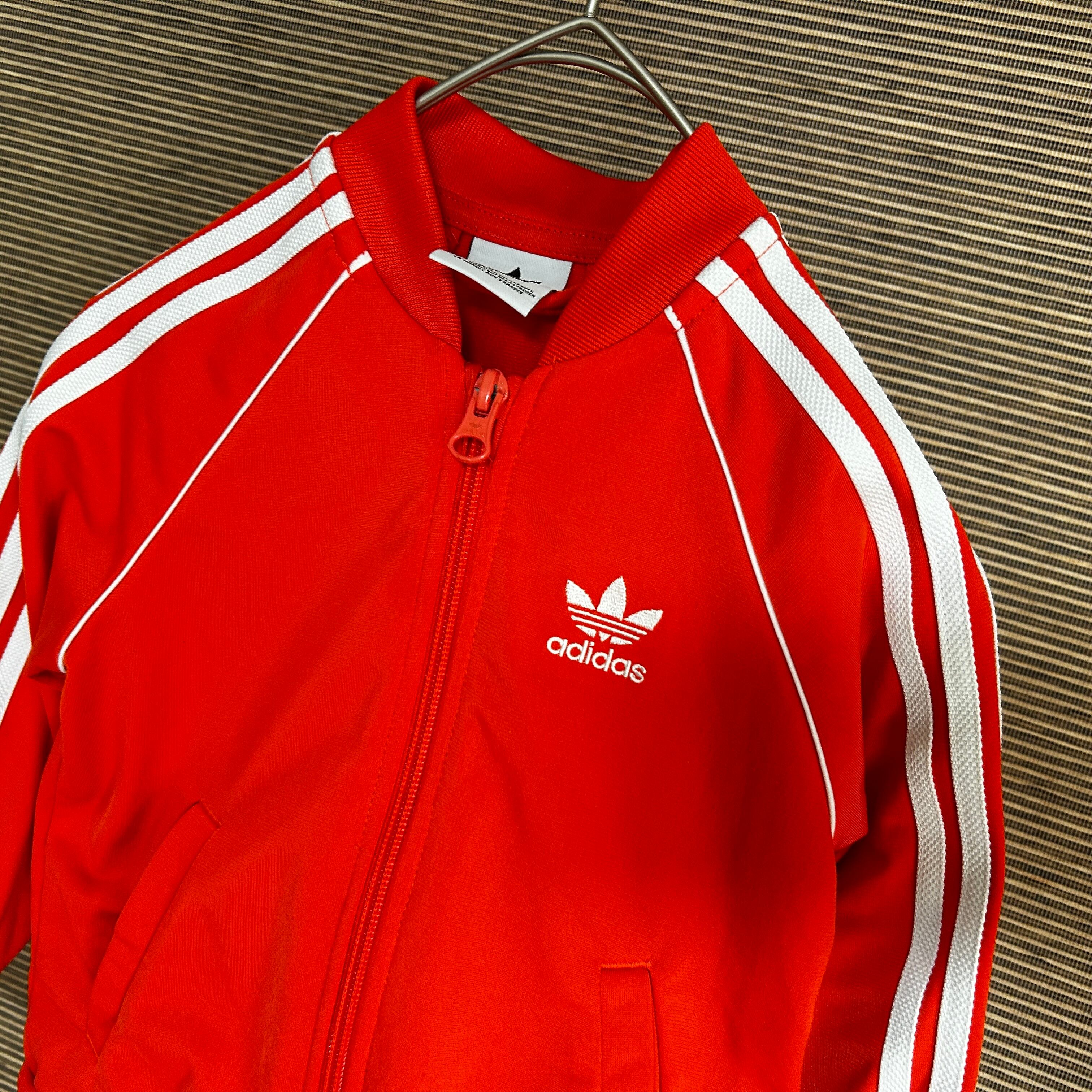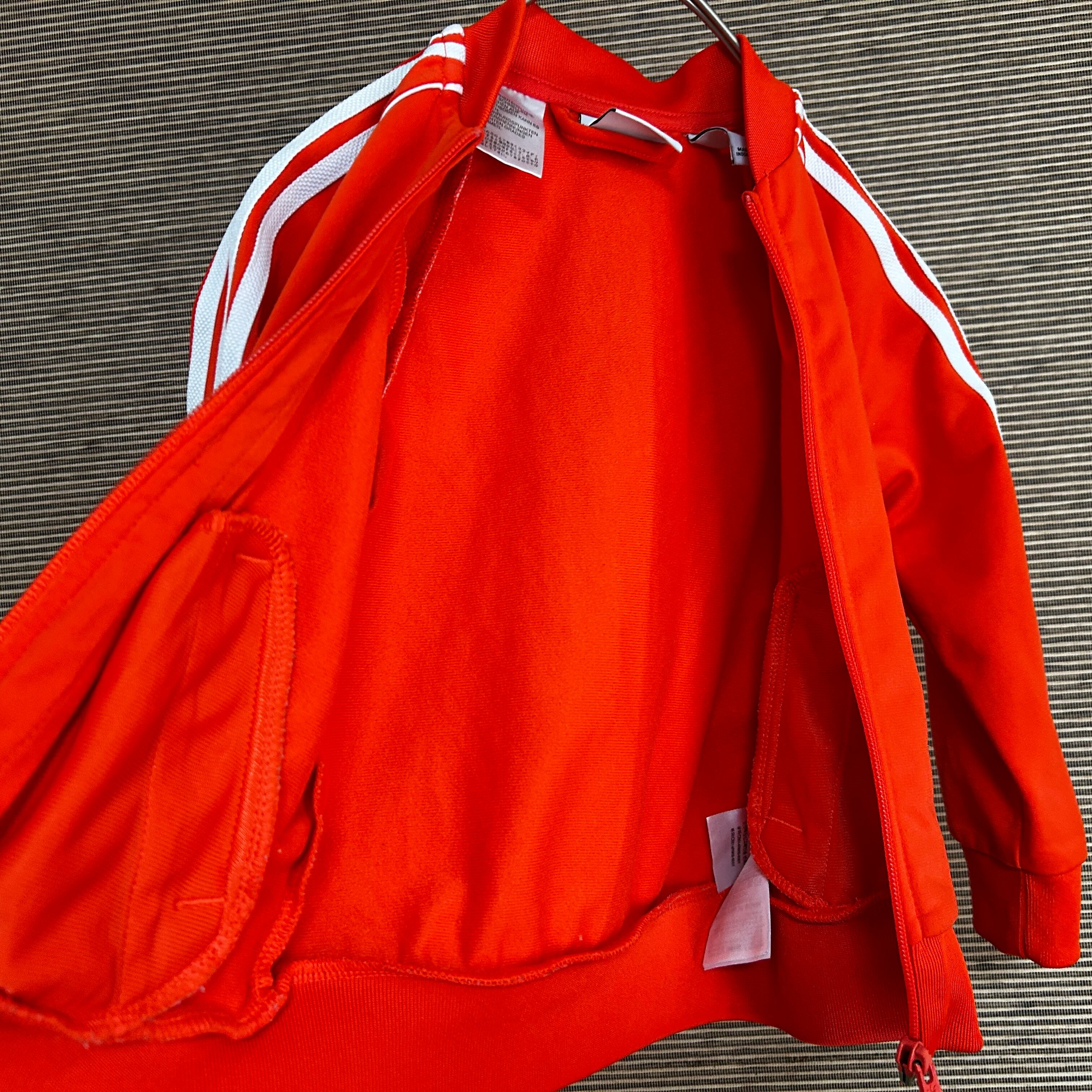 アディダス ジャージトラックジャケットSST子供90ベビー オレンジ刺繍N 古着 ワンポイントロゴトレフォイル サッカーオランダ代表カラー