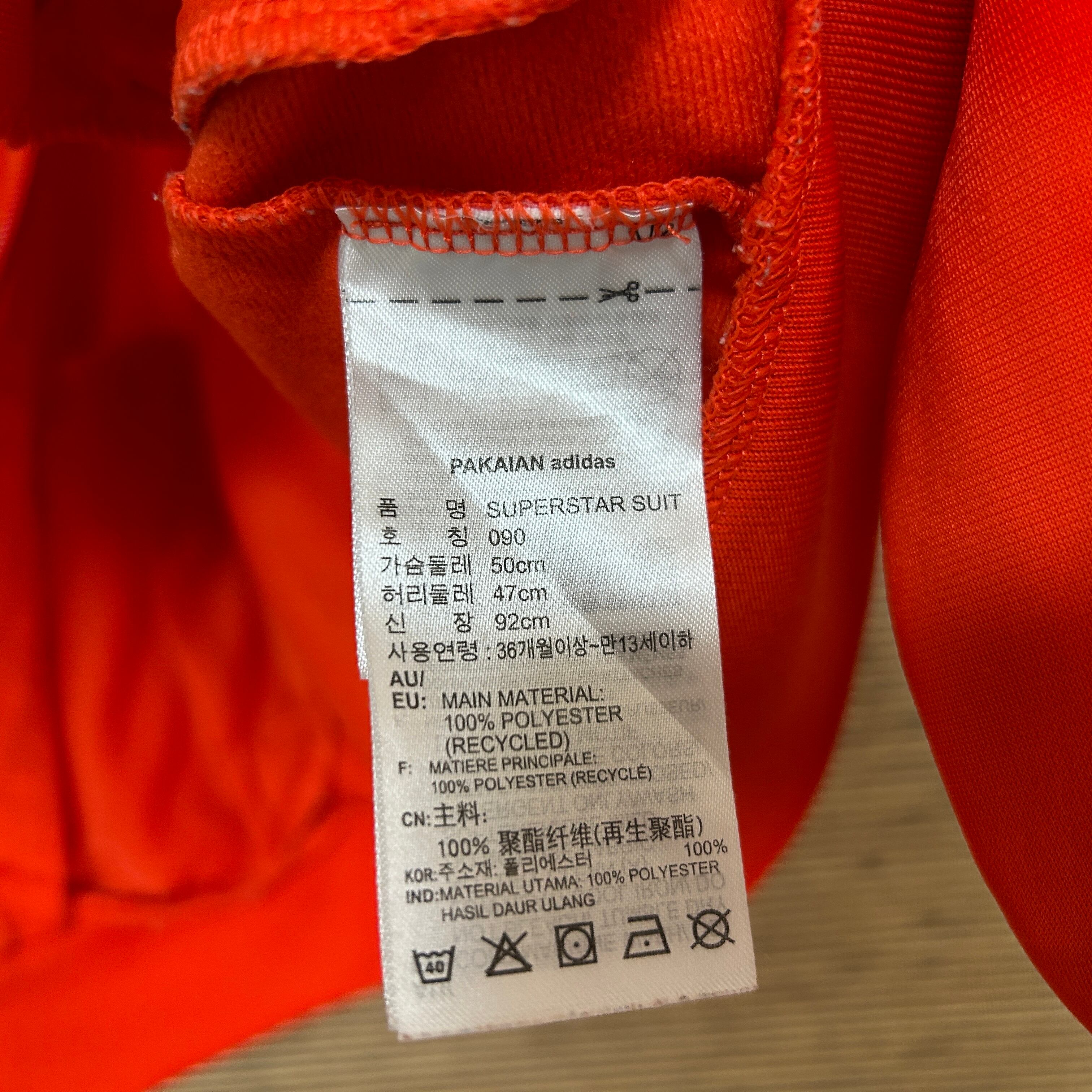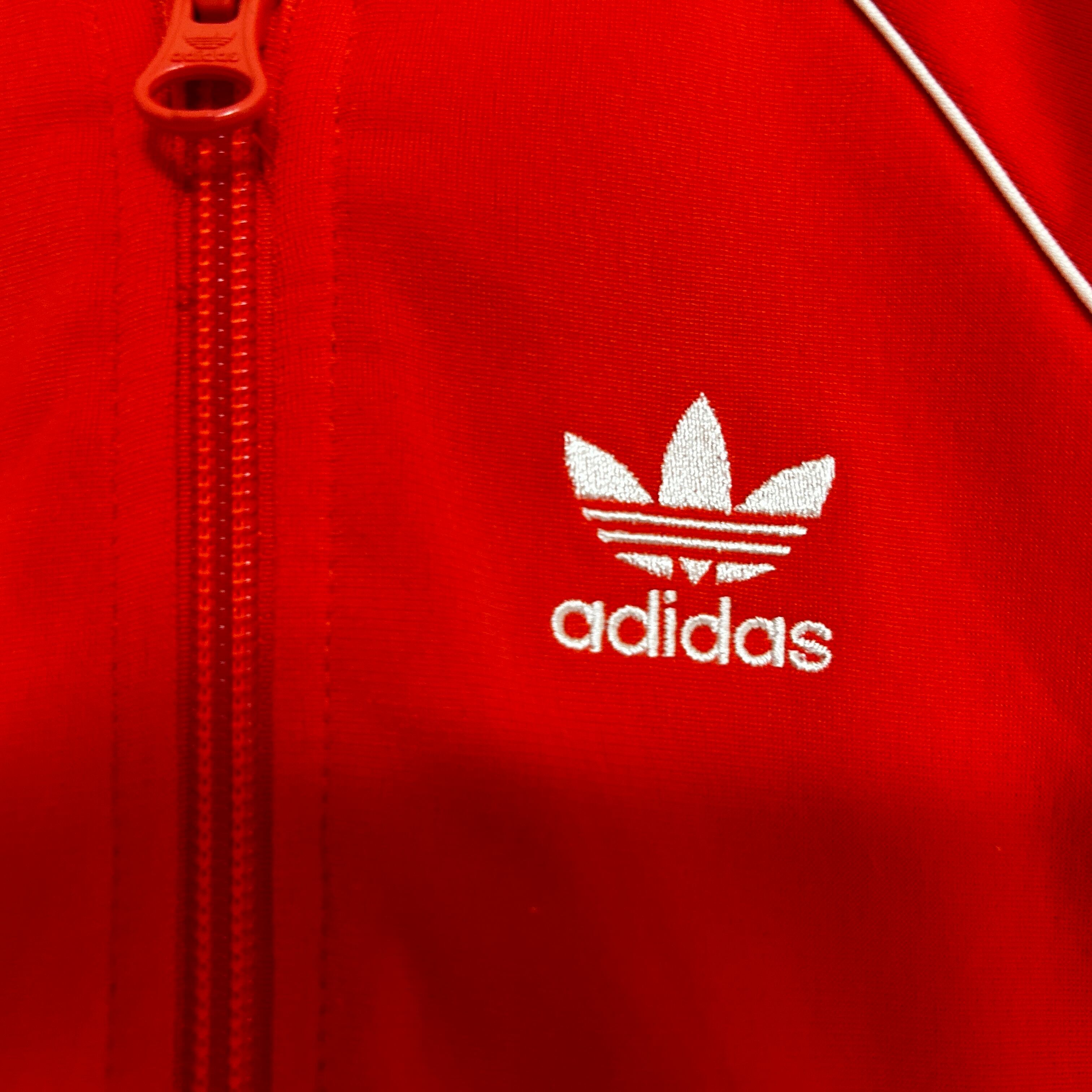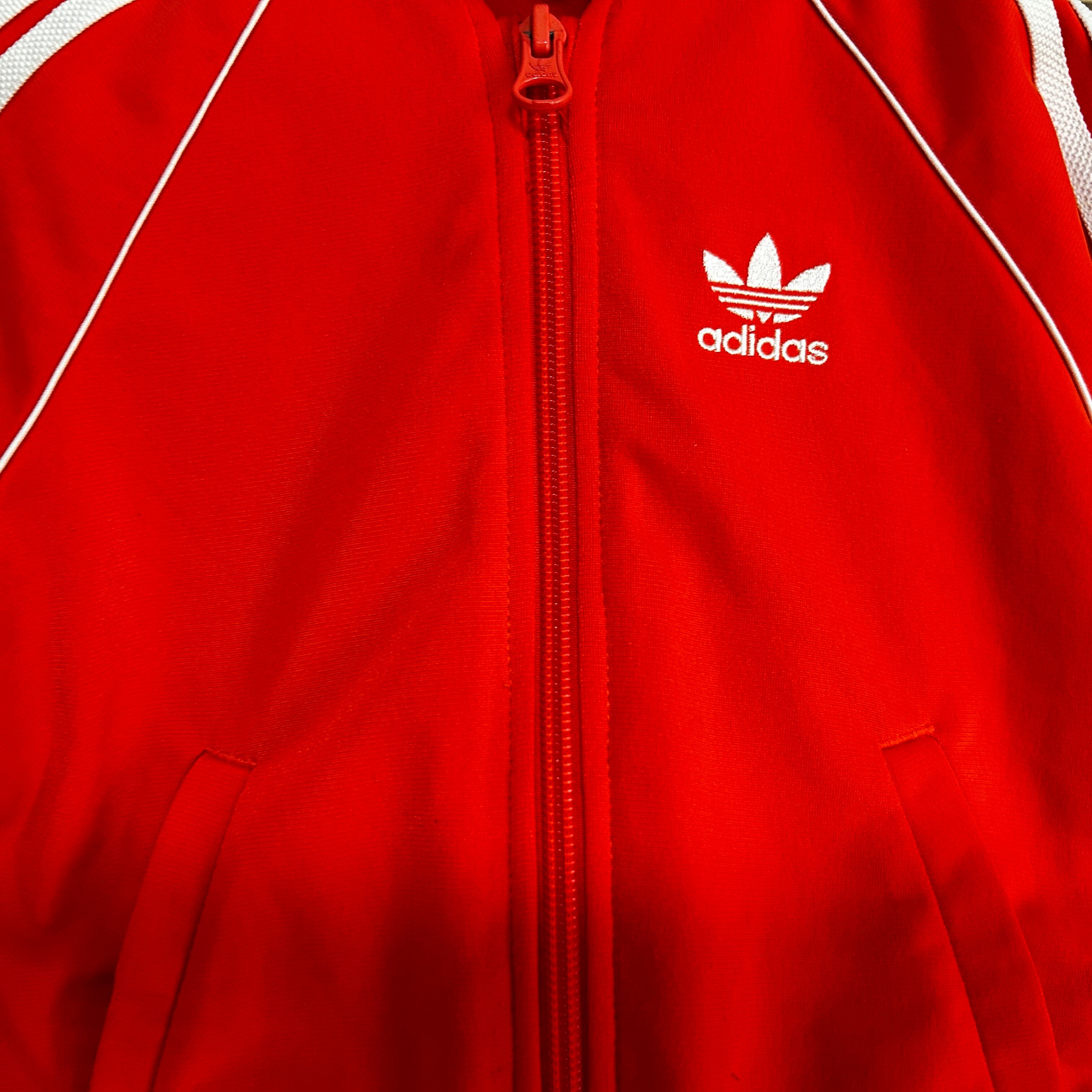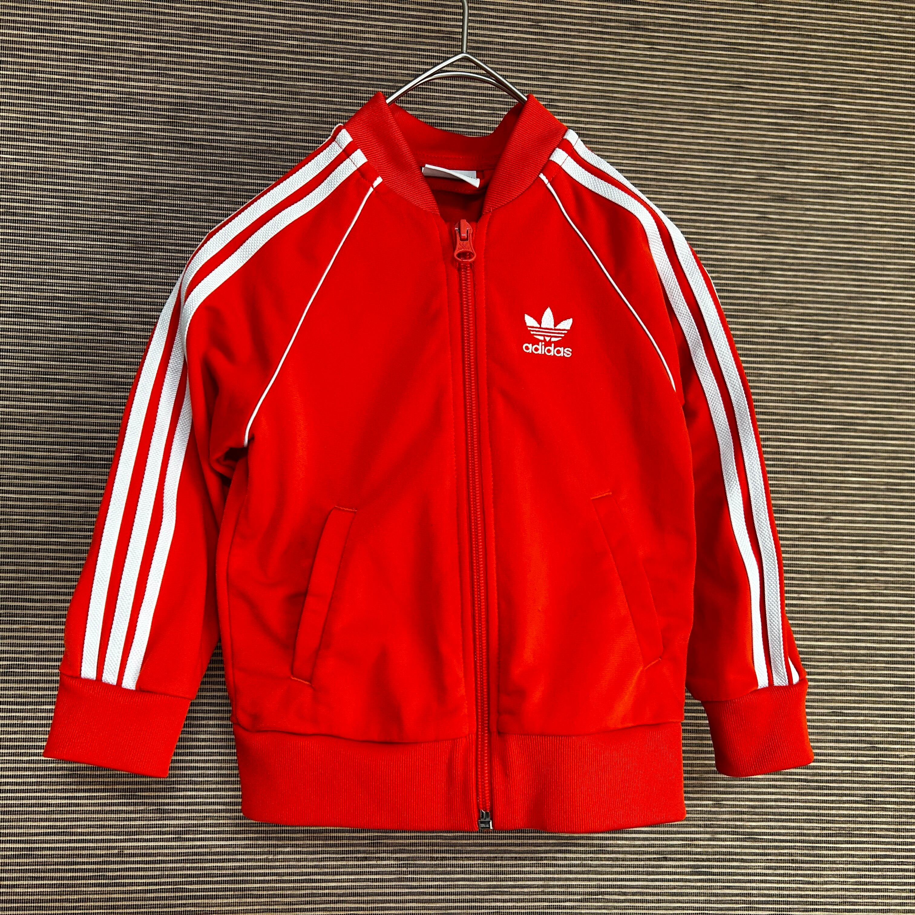 アディダス ジャージトラックジャケットSST子供90ベビー オレンジ刺繍N 古着 ワンポイントロゴトレフォイル サッカーオランダ代表カラー