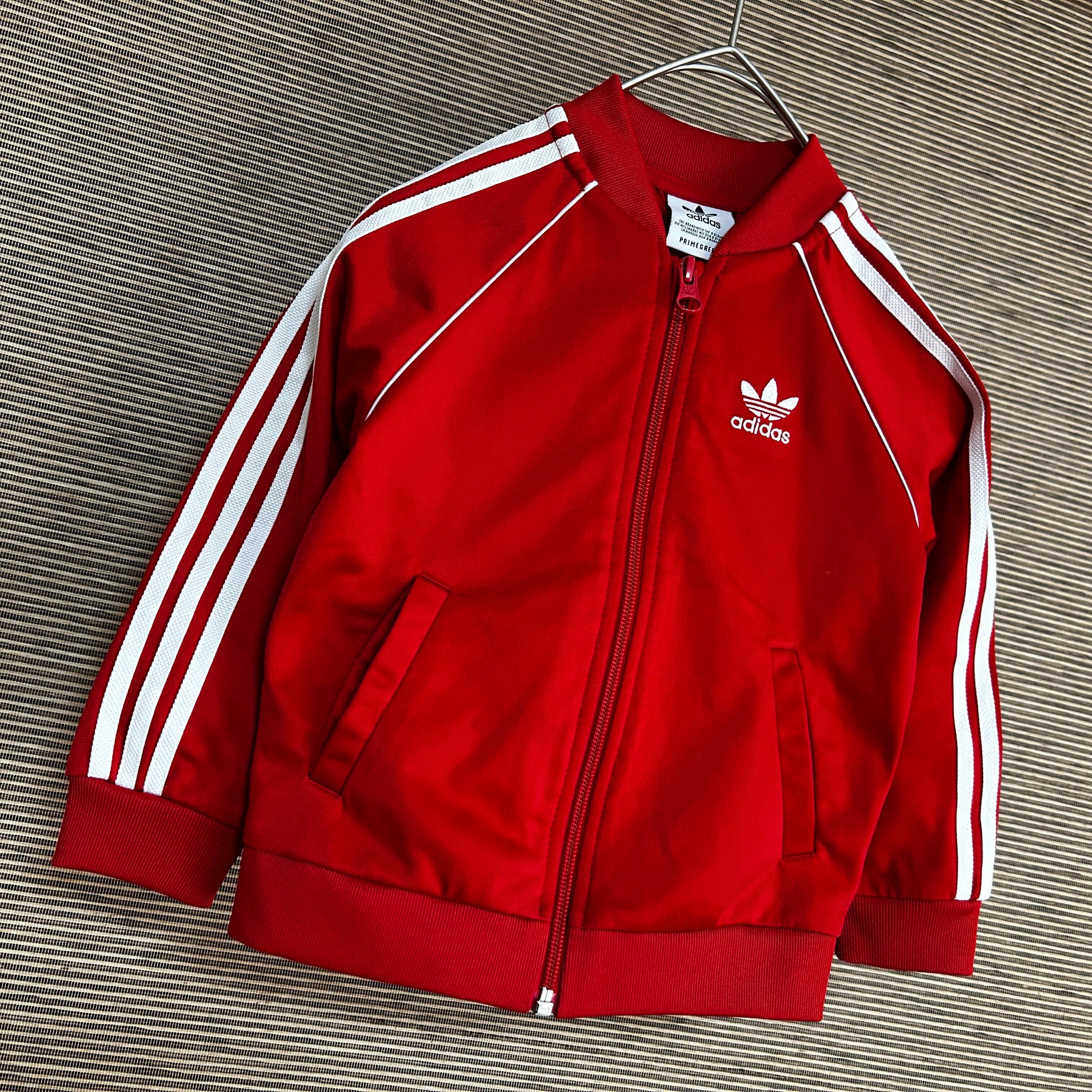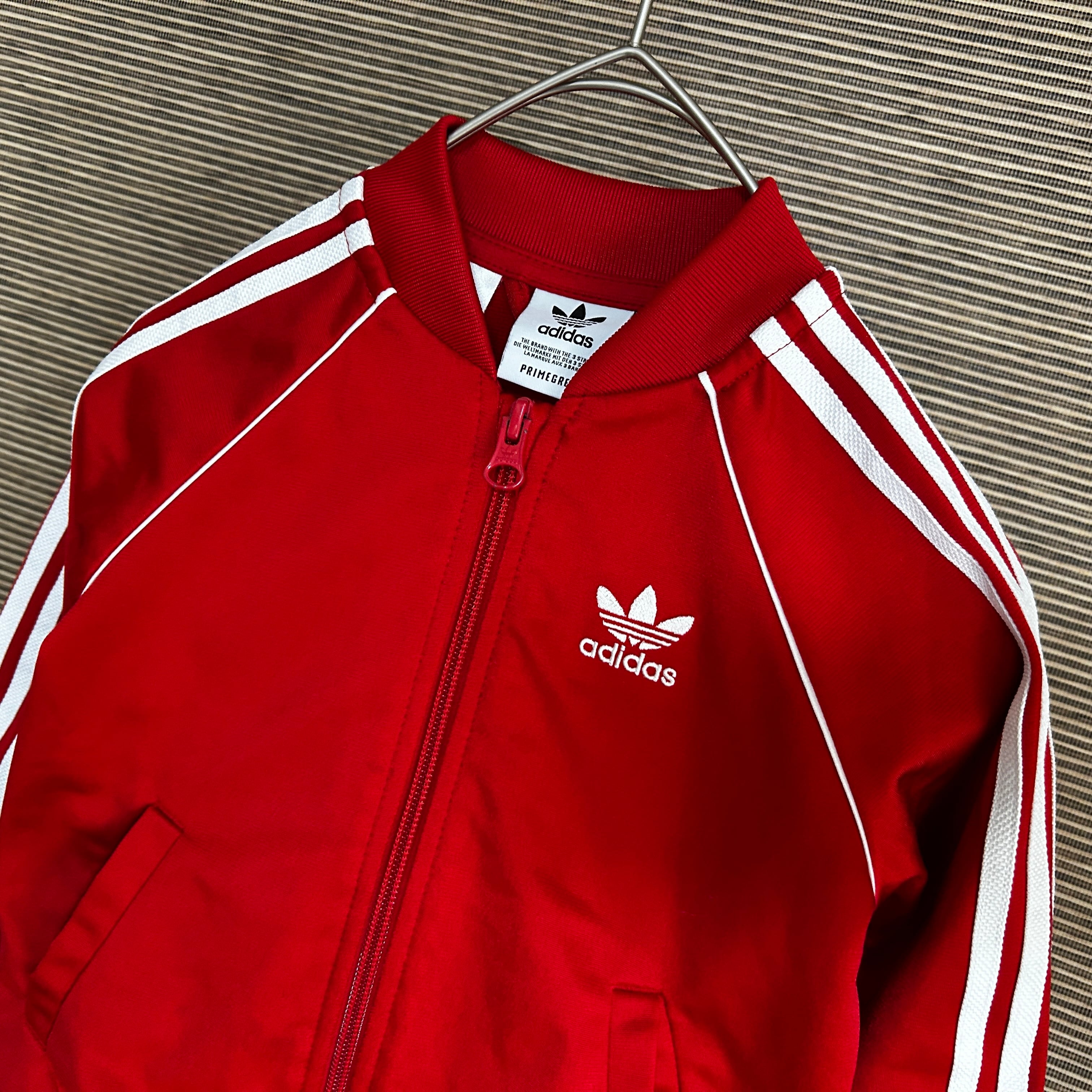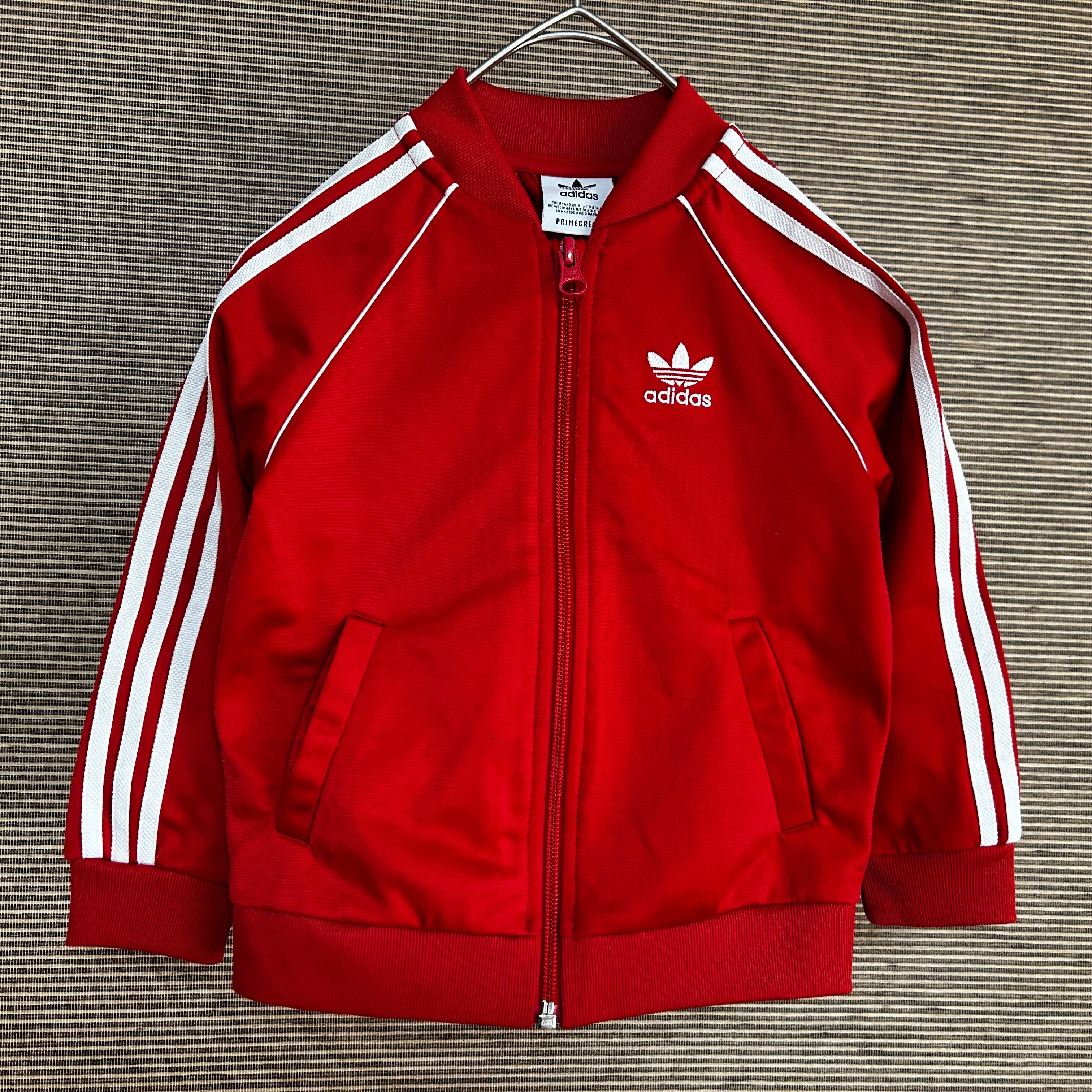 アディダス ジャージトラックジャケットSST子供90ベビー 赤白刺繍N 古着 キッズ スーパースター ワンポイントロゴトレフォイル
