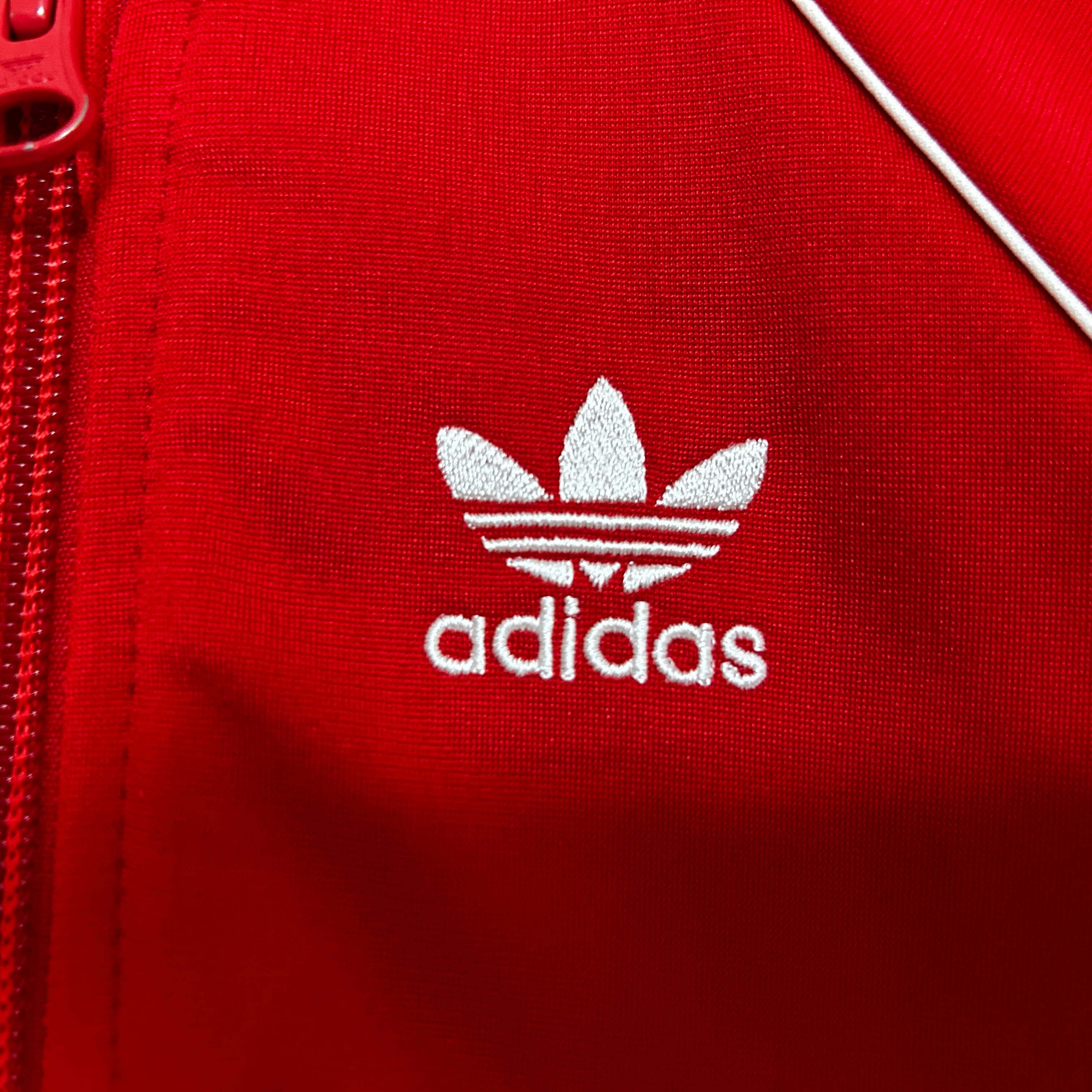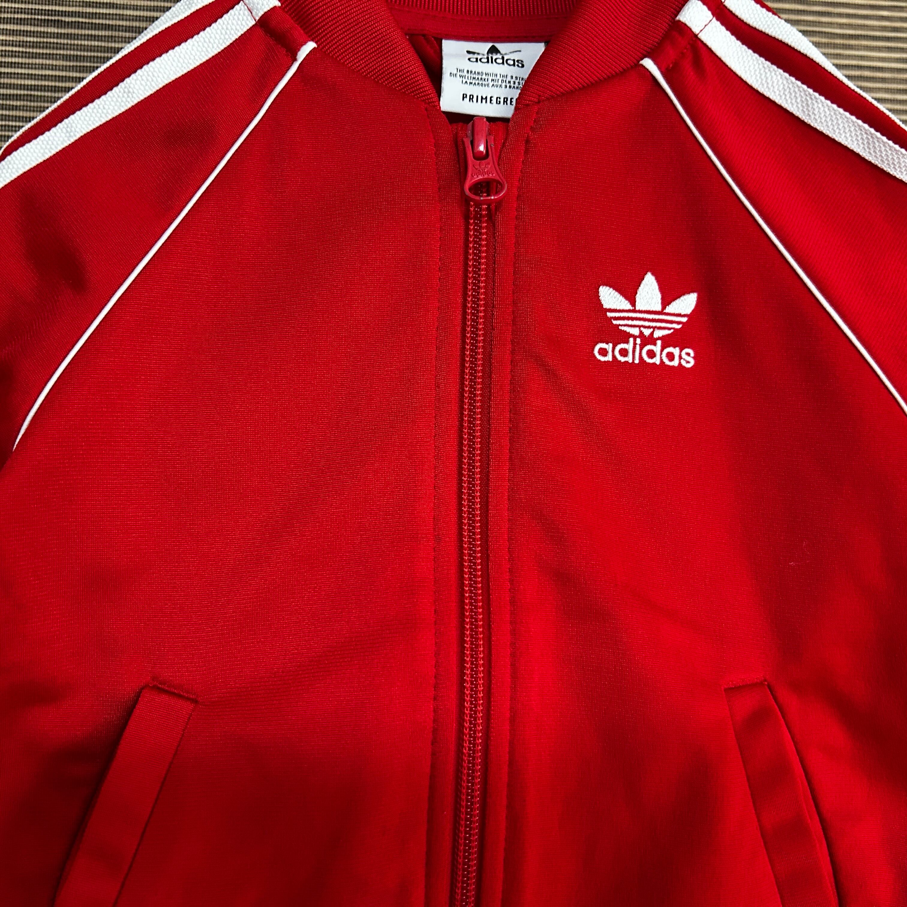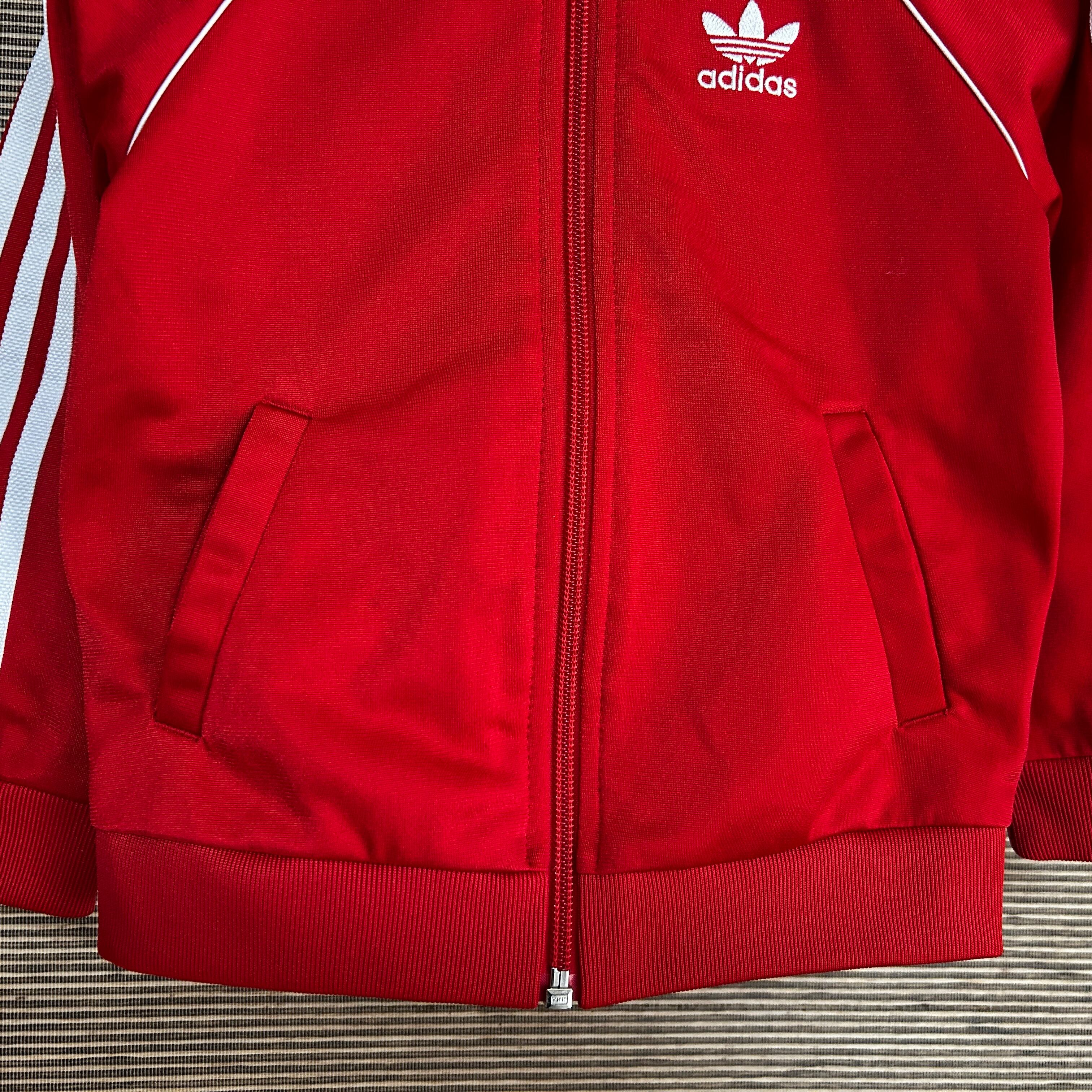 アディダス ジャージトラックジャケットSST子供90ベビー 赤白刺繍N 古着 キッズ スーパースター ワンポイントロゴトレフォイル