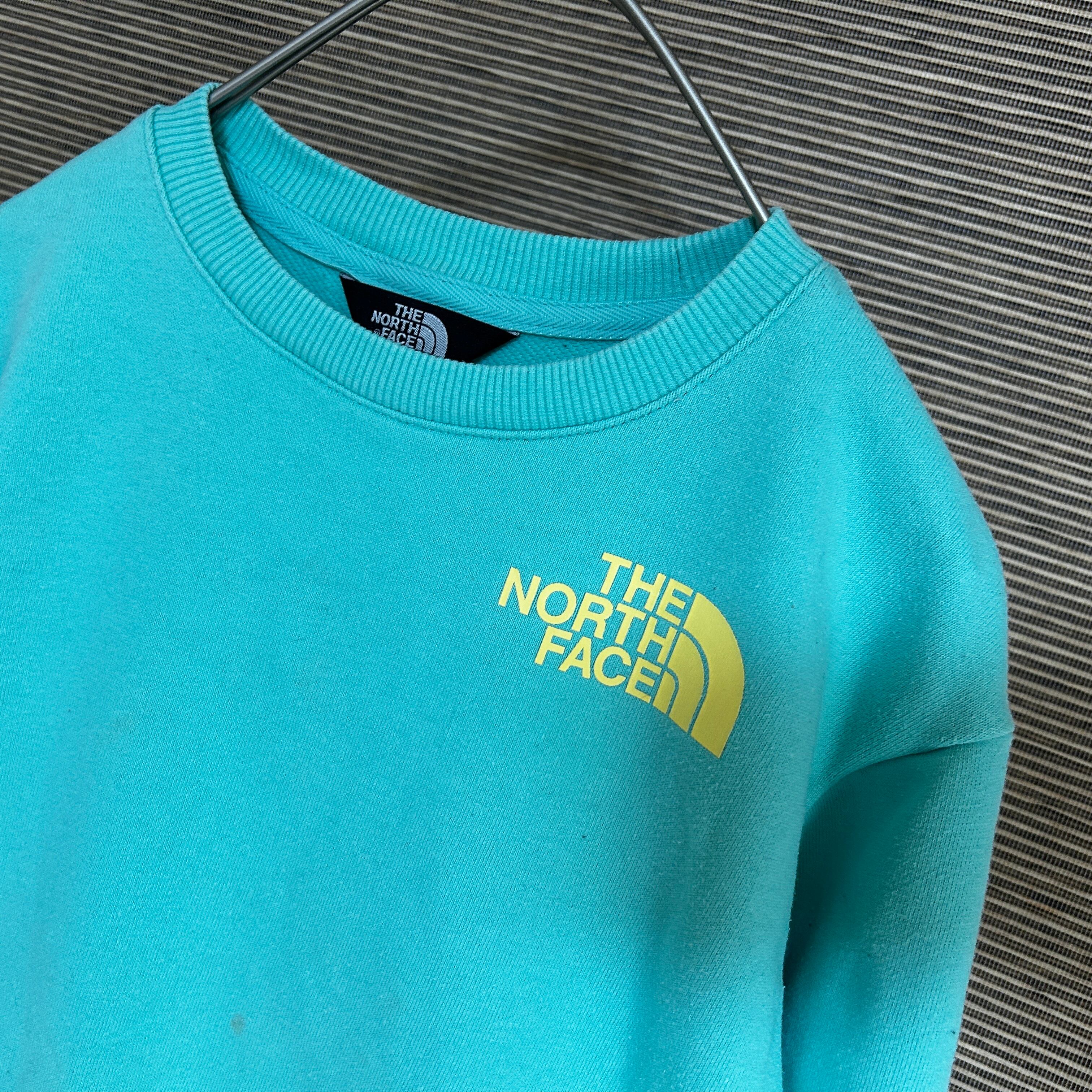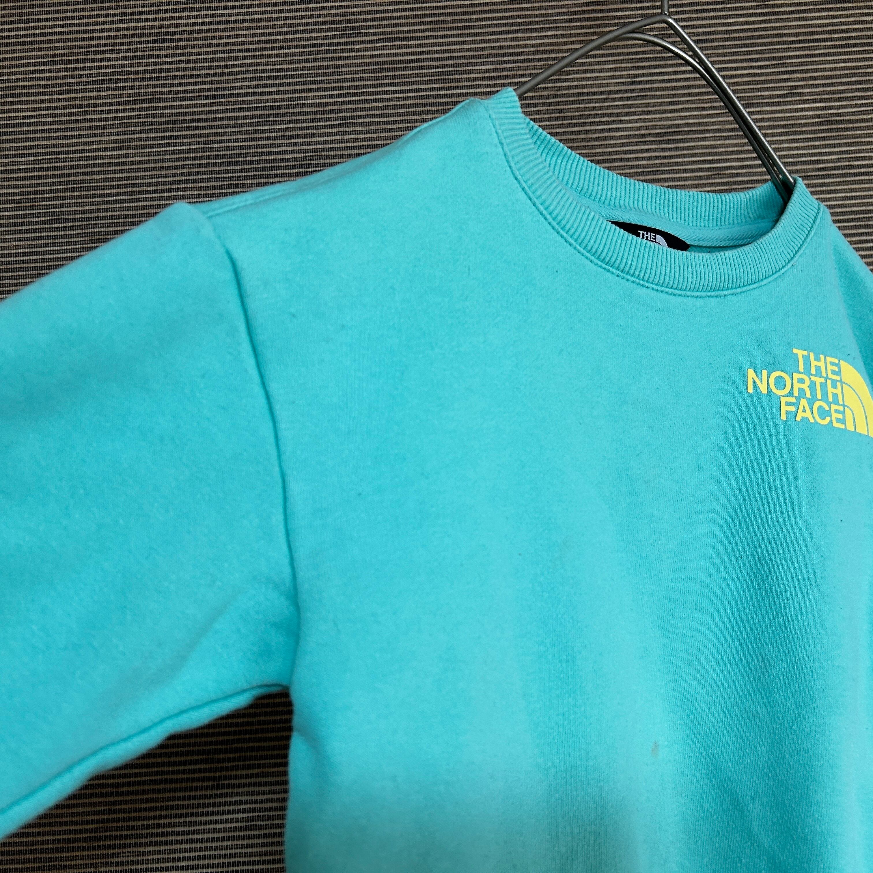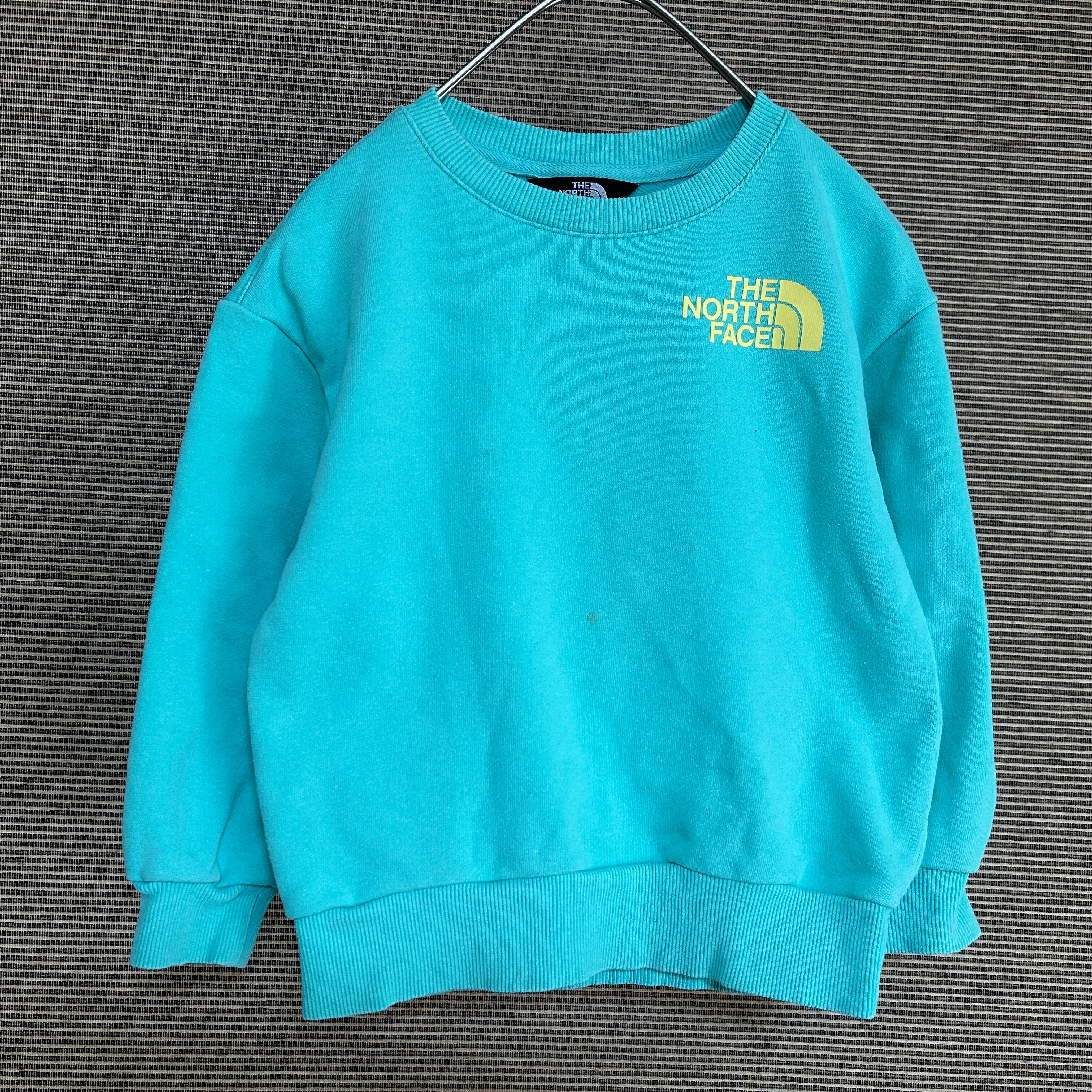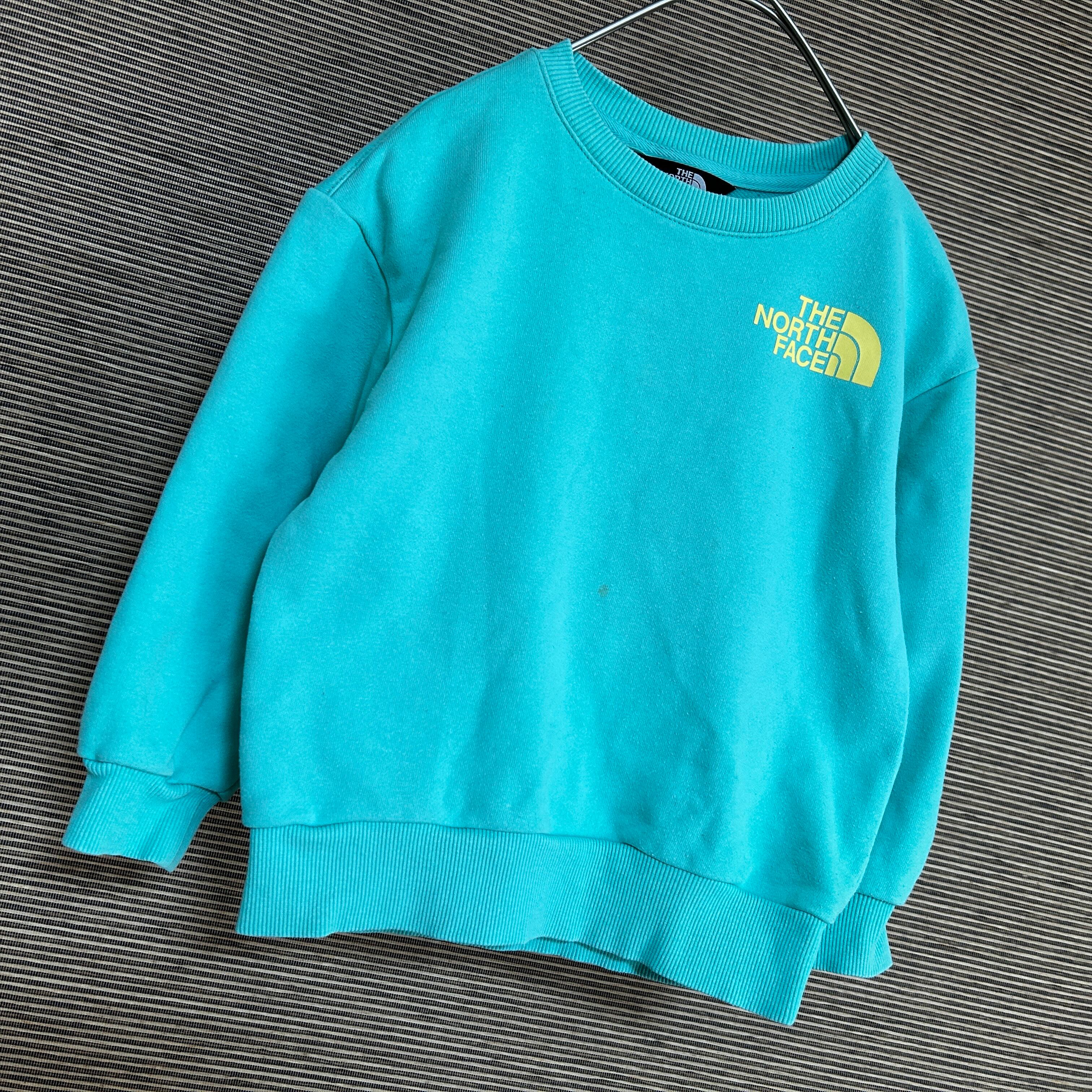 ノースフェイス スウェット トレーナー 子供110キッズ ミントグリーン裏毛N 古着 ワンポイントロゴ プリントロゴ