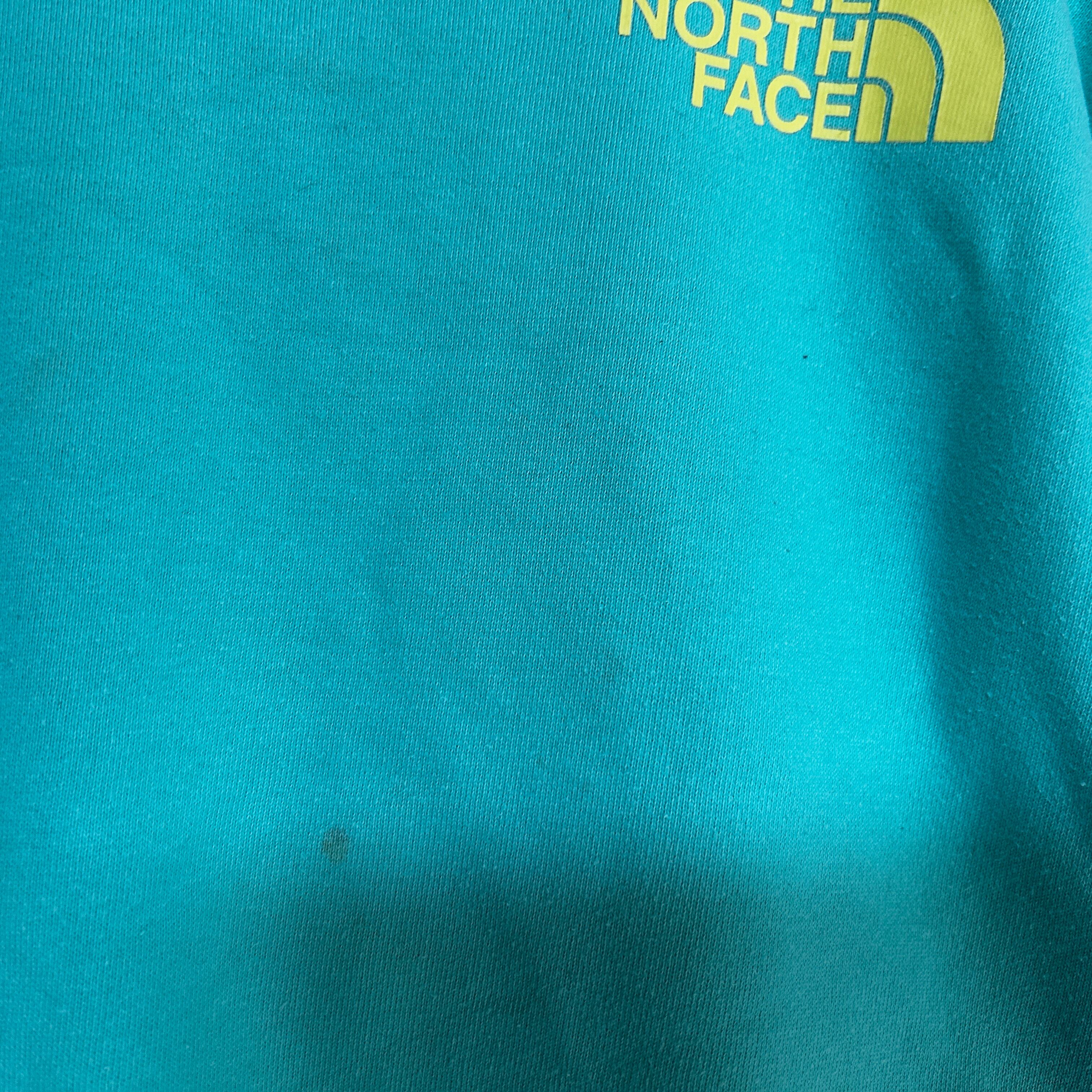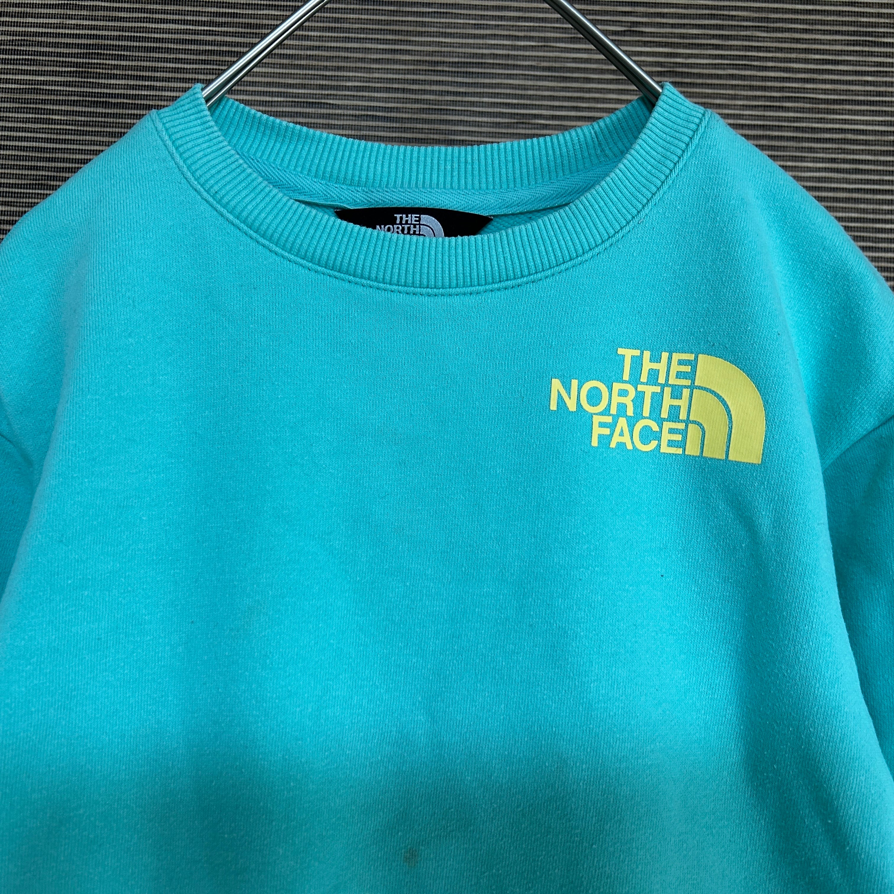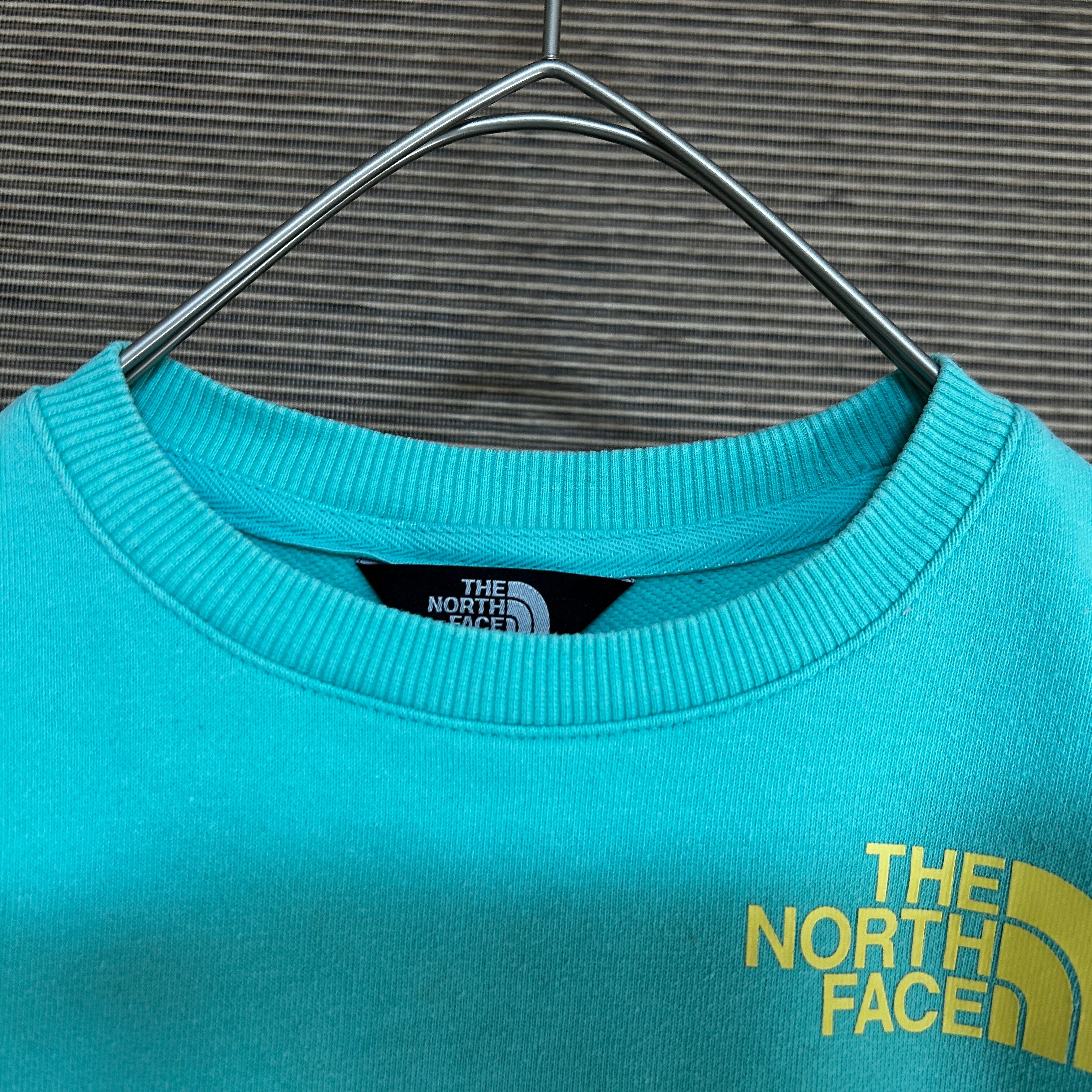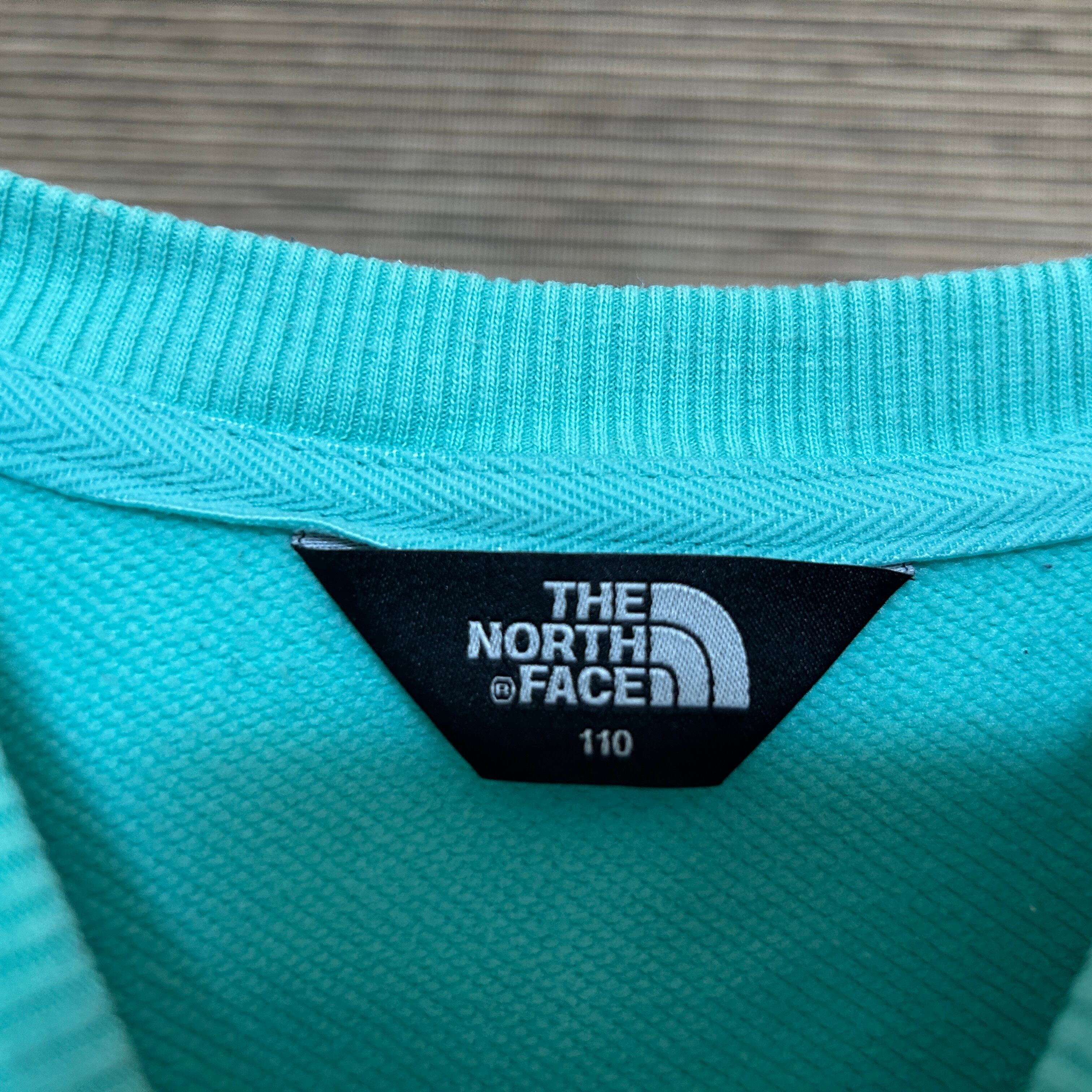 ノースフェイス スウェット トレーナー 子供110キッズ ミントグリーン裏毛N 古着 ワンポイントロゴ プリントロゴ
