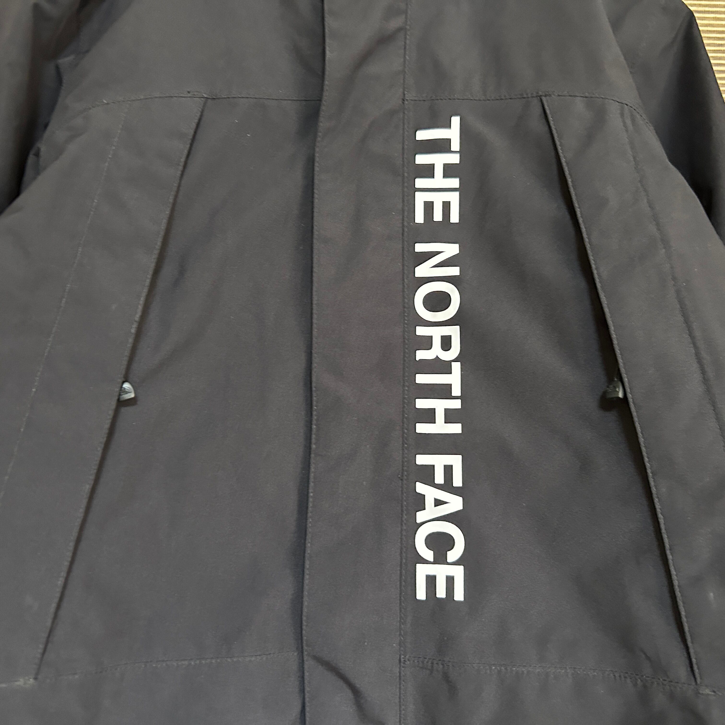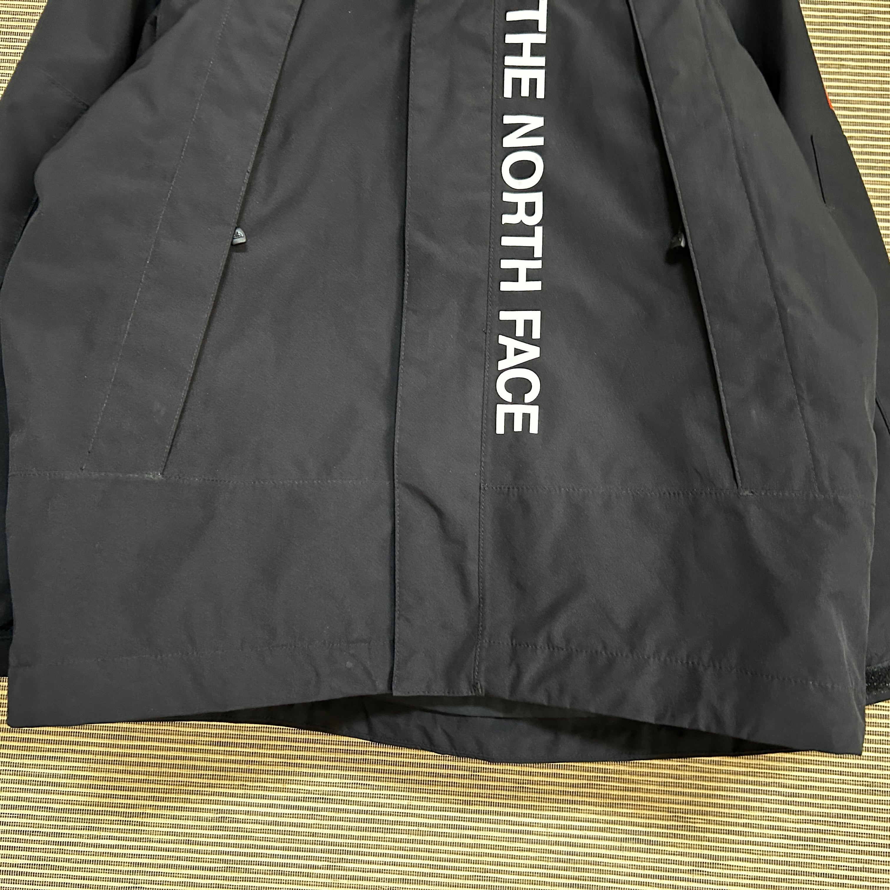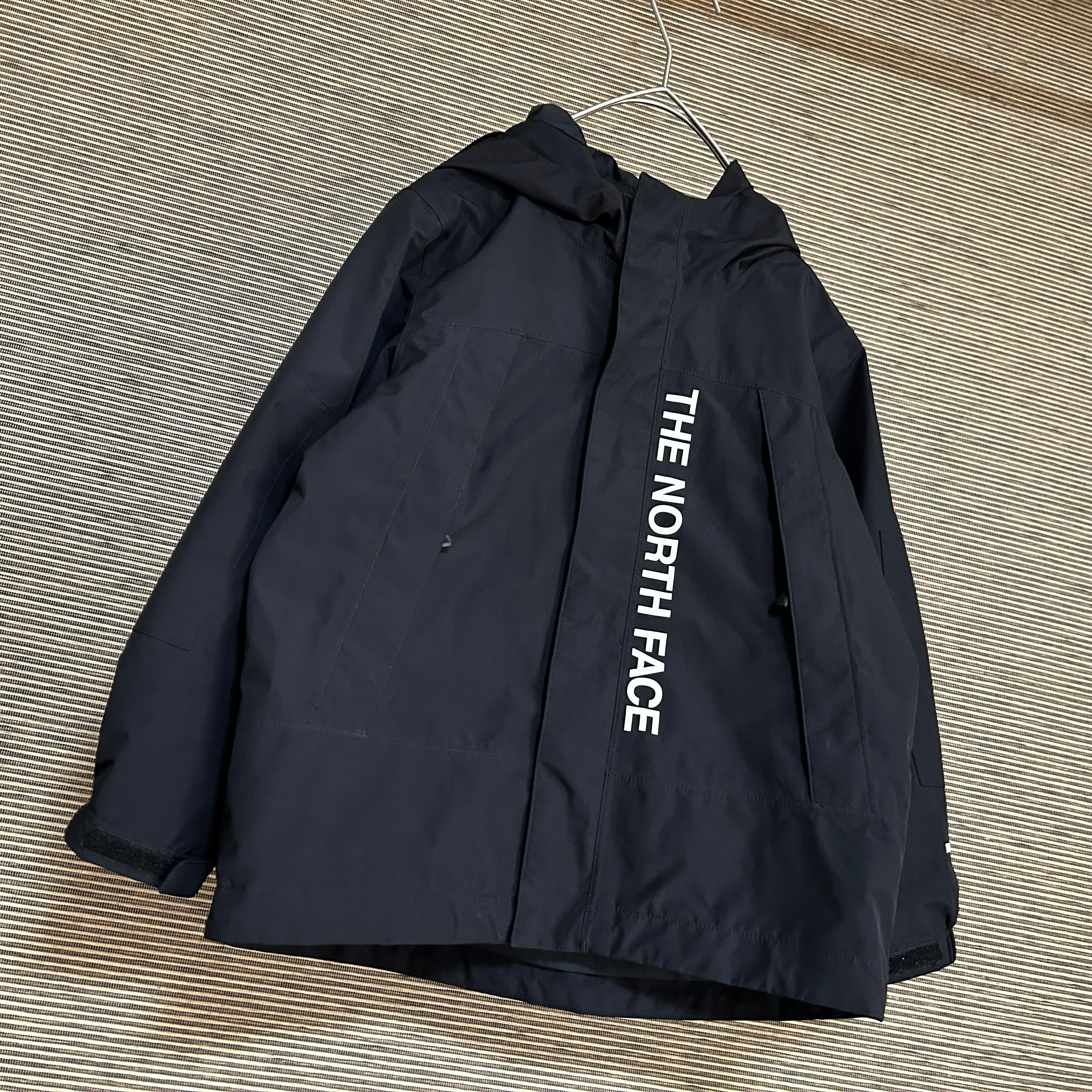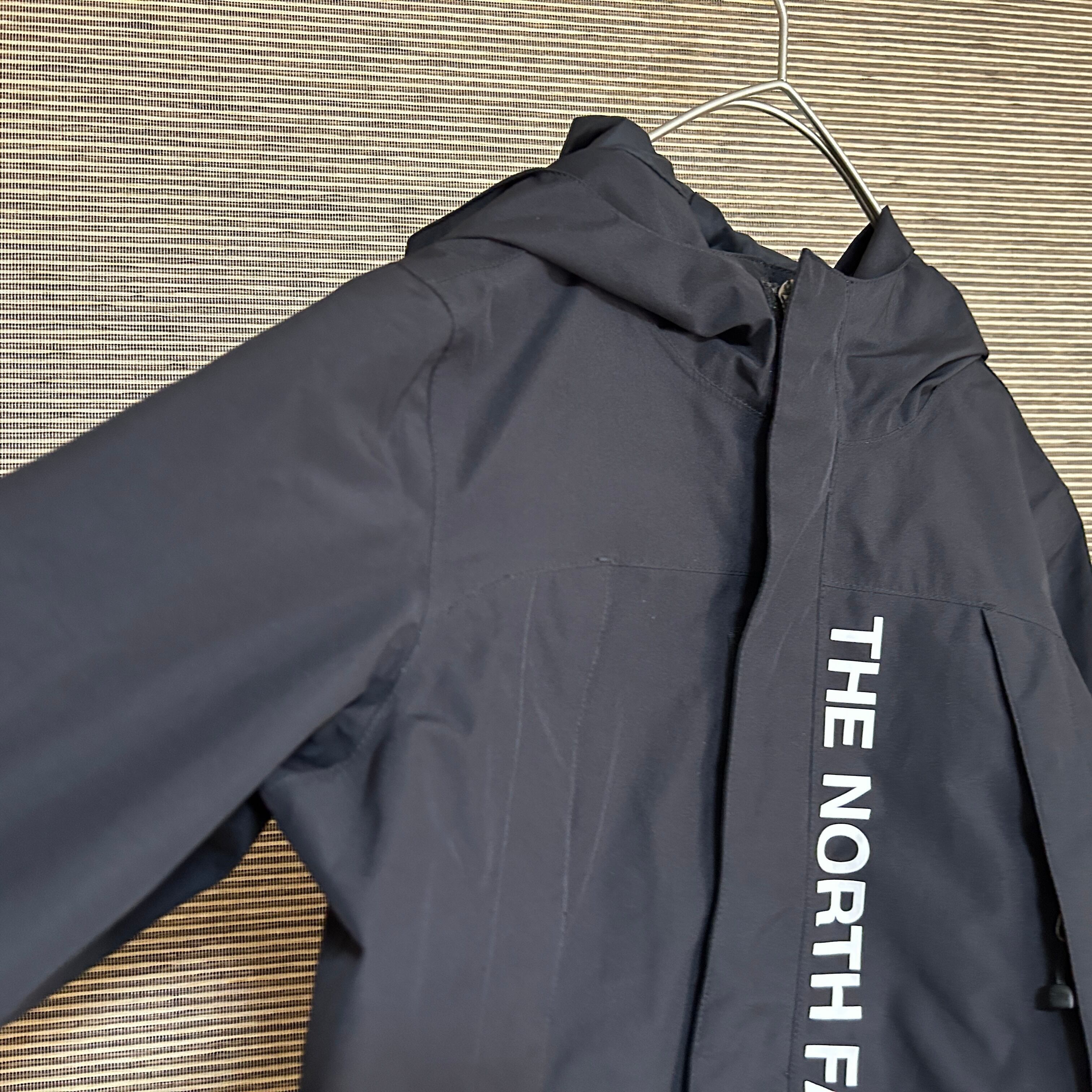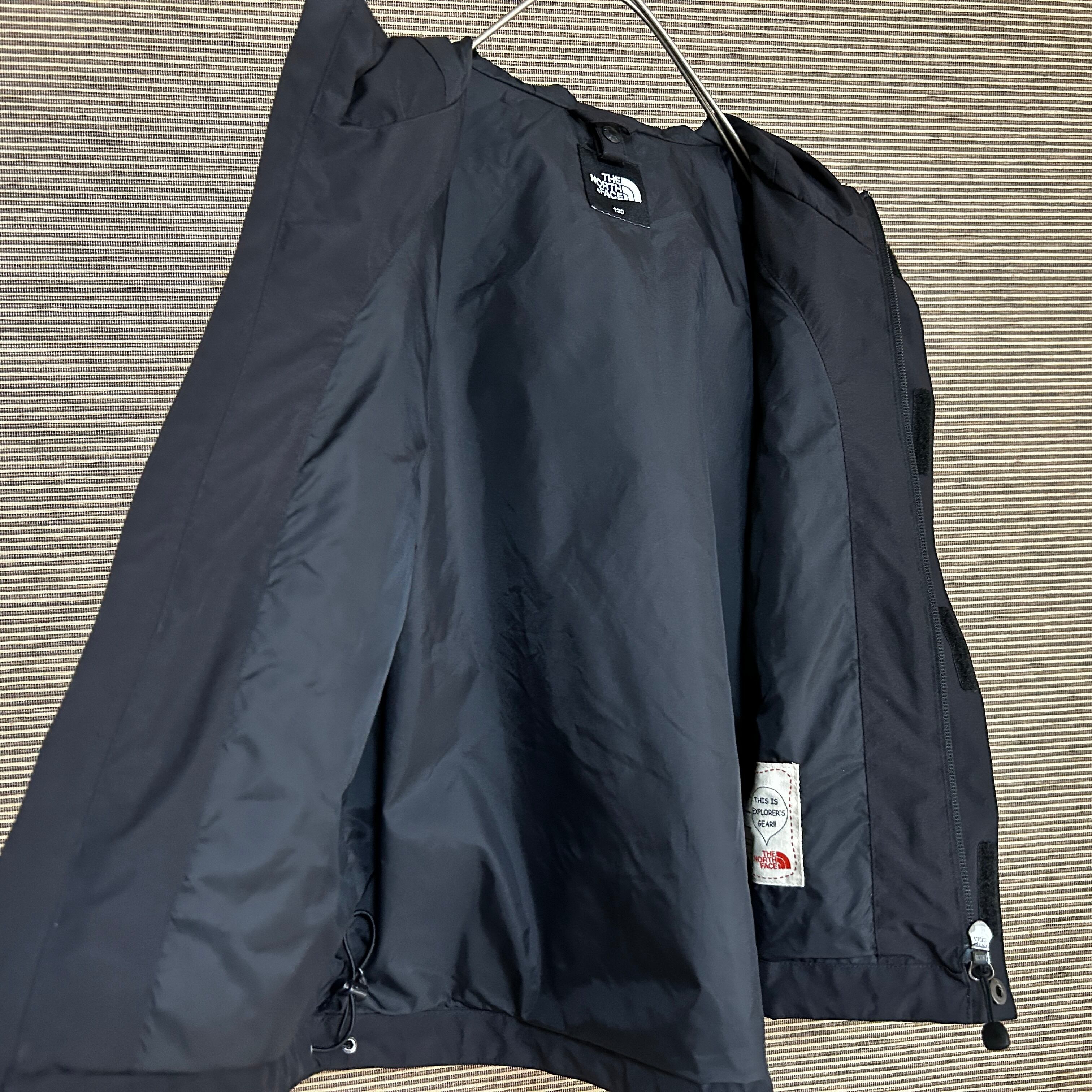 ノースフェイス マウンテンパーカー 黒ブラック 肩ロゴ 子供120 デカロゴN 古着 キッズ 人気 袖ロゴ ビッグロゴ