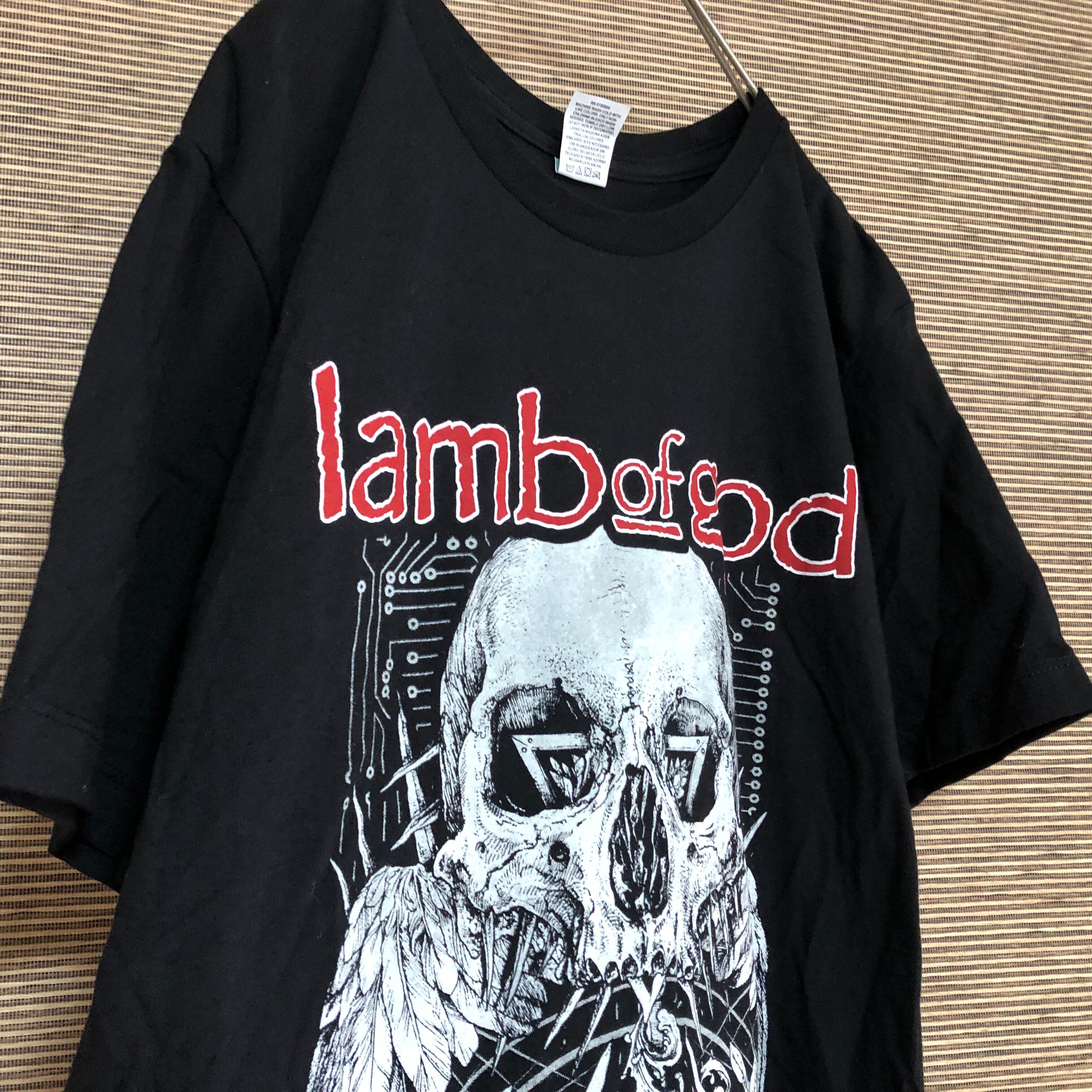 パシフィック 半袖Tシャツ ラムオブゴッド lambofgod バンT 時計ドクロ50 羽 古着 激レア ガイコツ