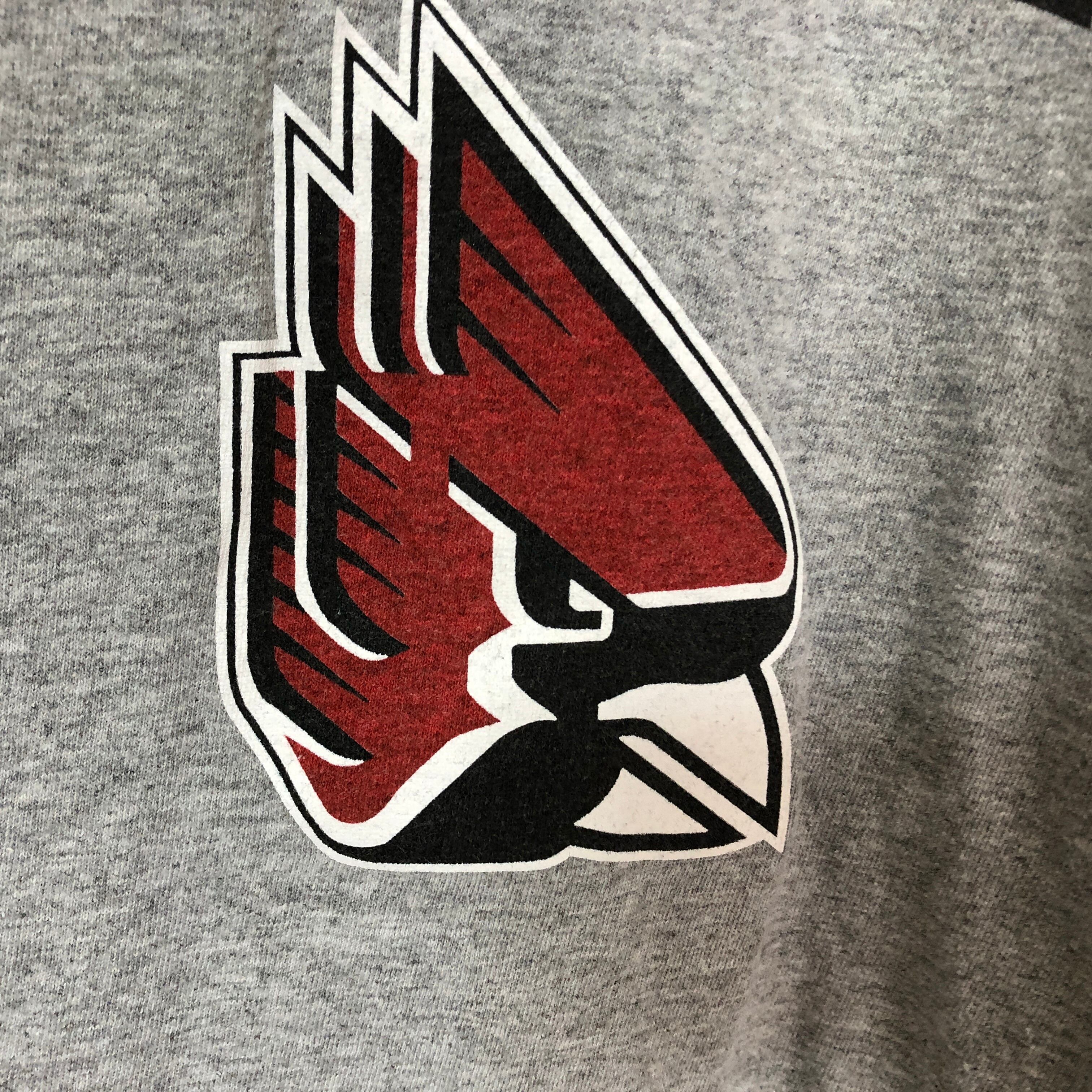 ギルダン 半袖Tシャツ カレッジロゴ アニマル 鳥 ラウンドロゴ グレー49 ballstate デカロゴ ビッグロゴ 古着