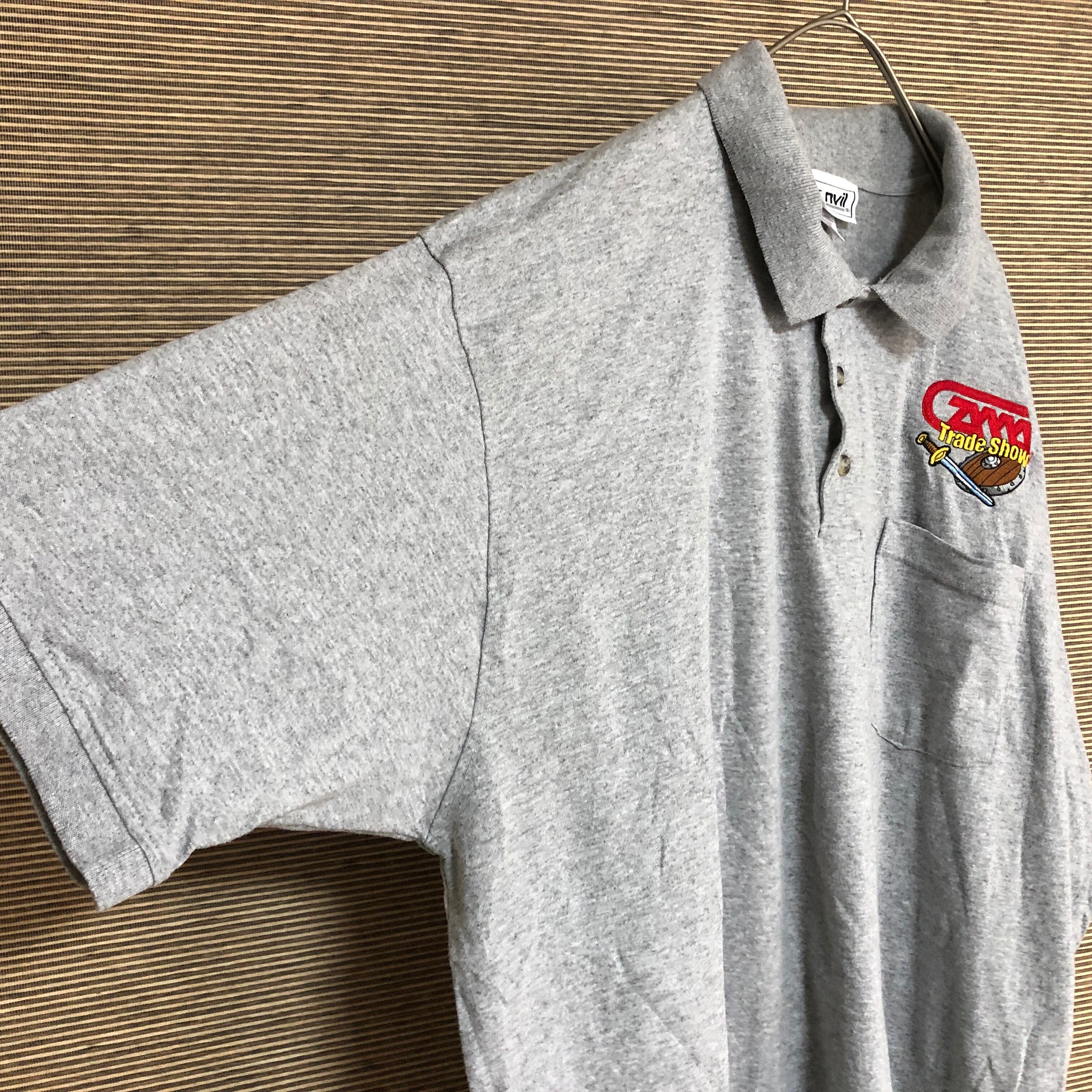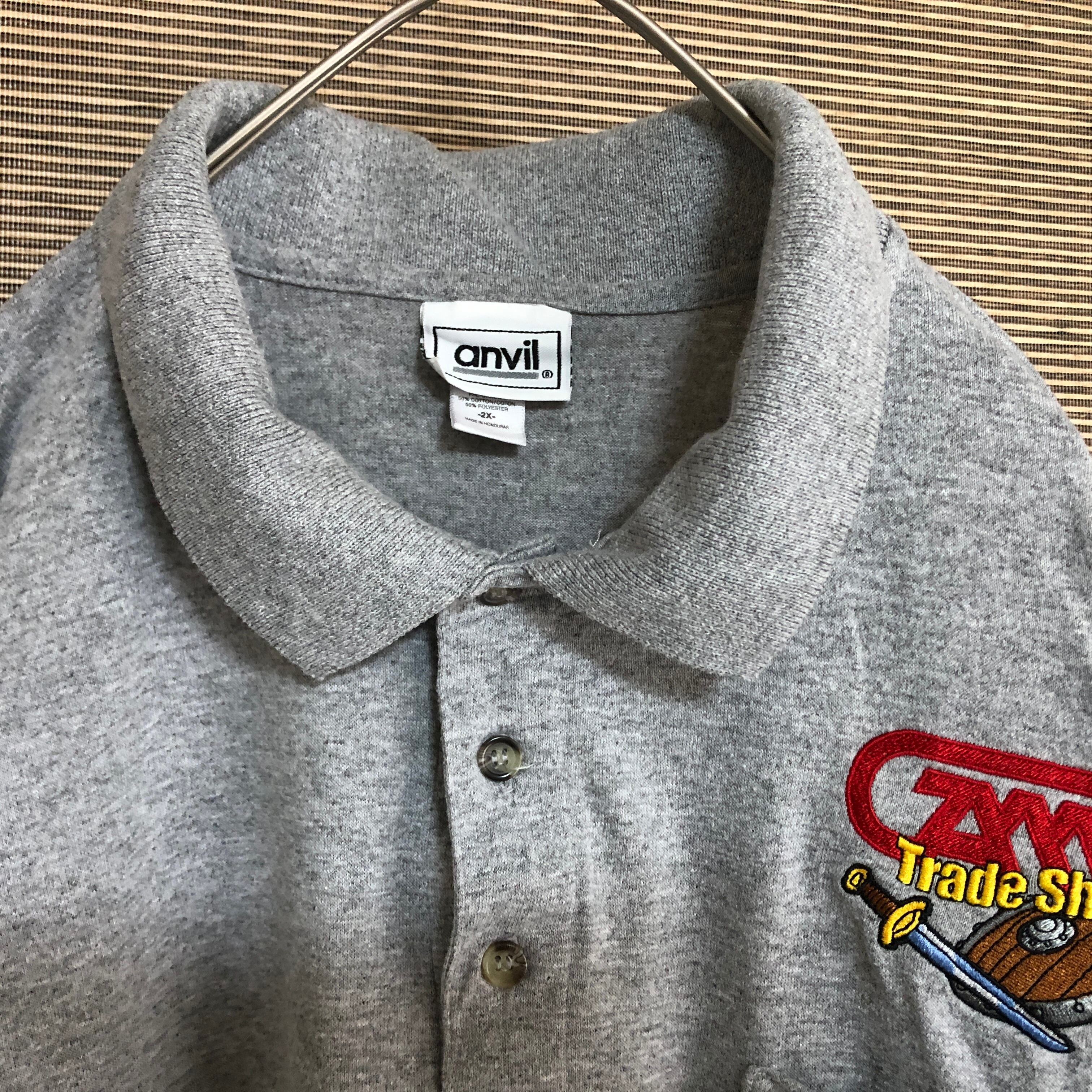 アンビル 半袖ポロシャツ 刺繍 剣 盾 ソード シールド ワンポイント13 古着 ゆるだぼ ビッグサイズ