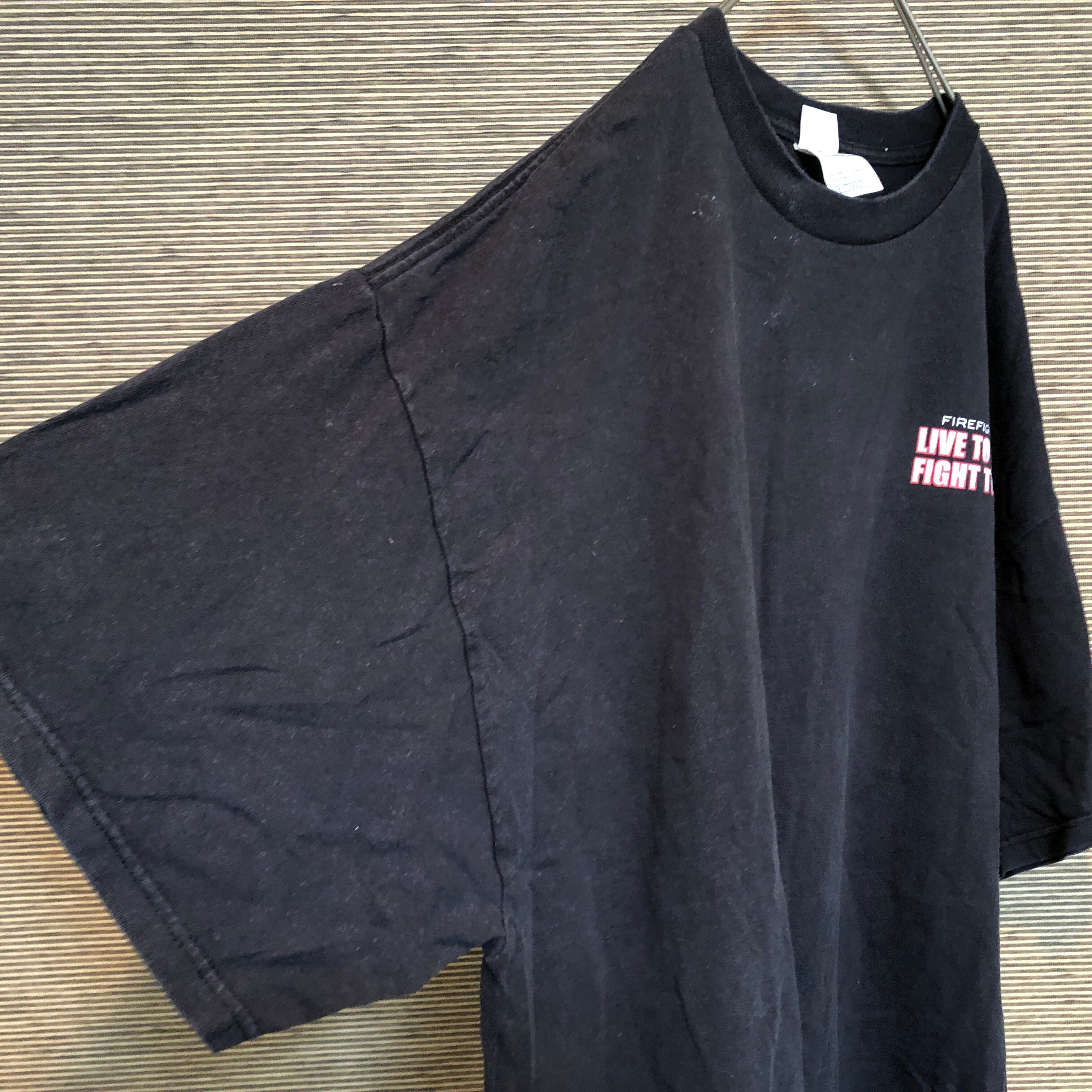 デルタ 半袖Tシャツ 消防士 ファイヤーファイター 斧 呼吸器 FD黒60 古着 ビッグサイズ オーバーサイズ 人気 激レア