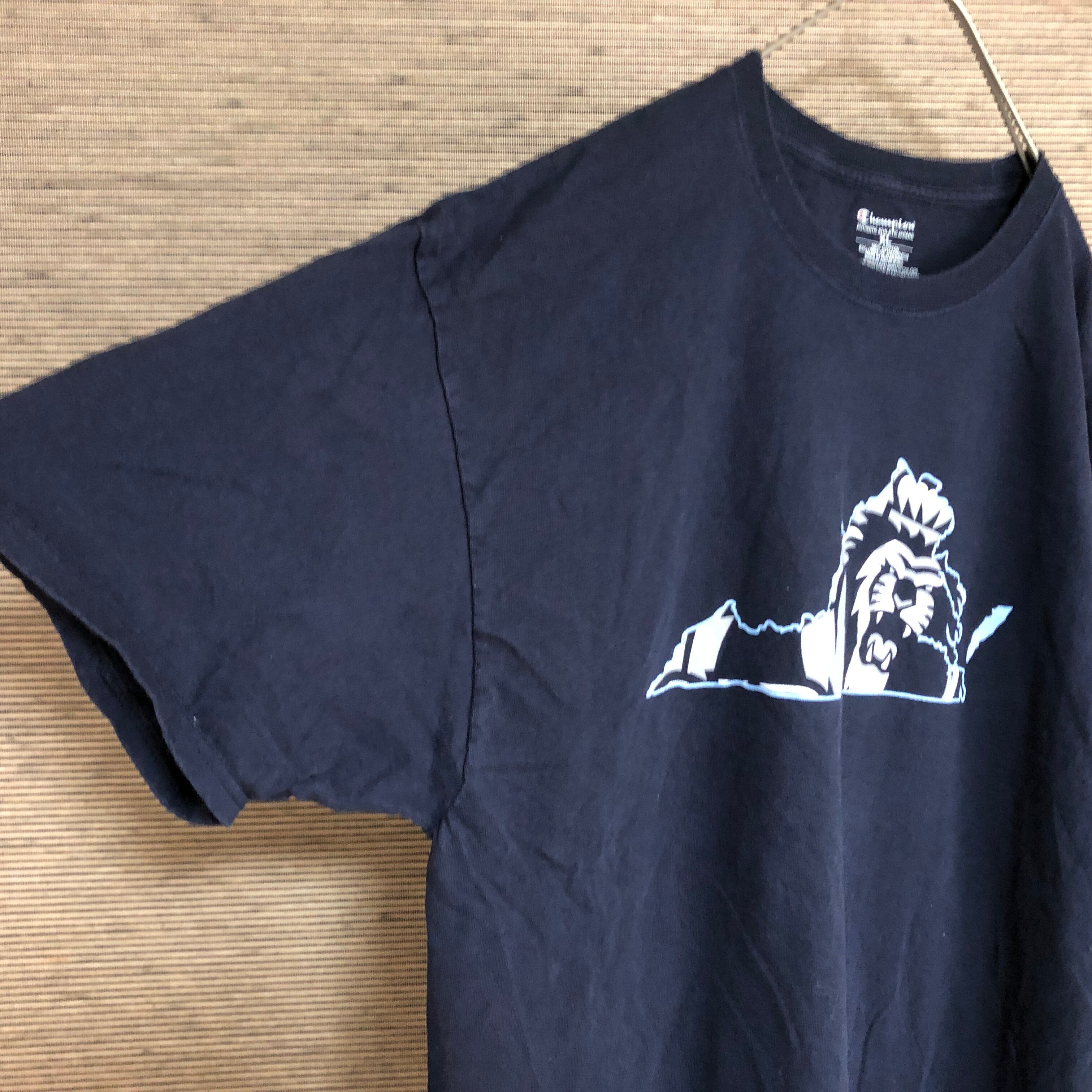 チャンピオン 半袖Tシャツ アニマル ライオン 紺色 ネイビー ビッグサイズ60 ビッグプリント デカプリント 激レア 古着