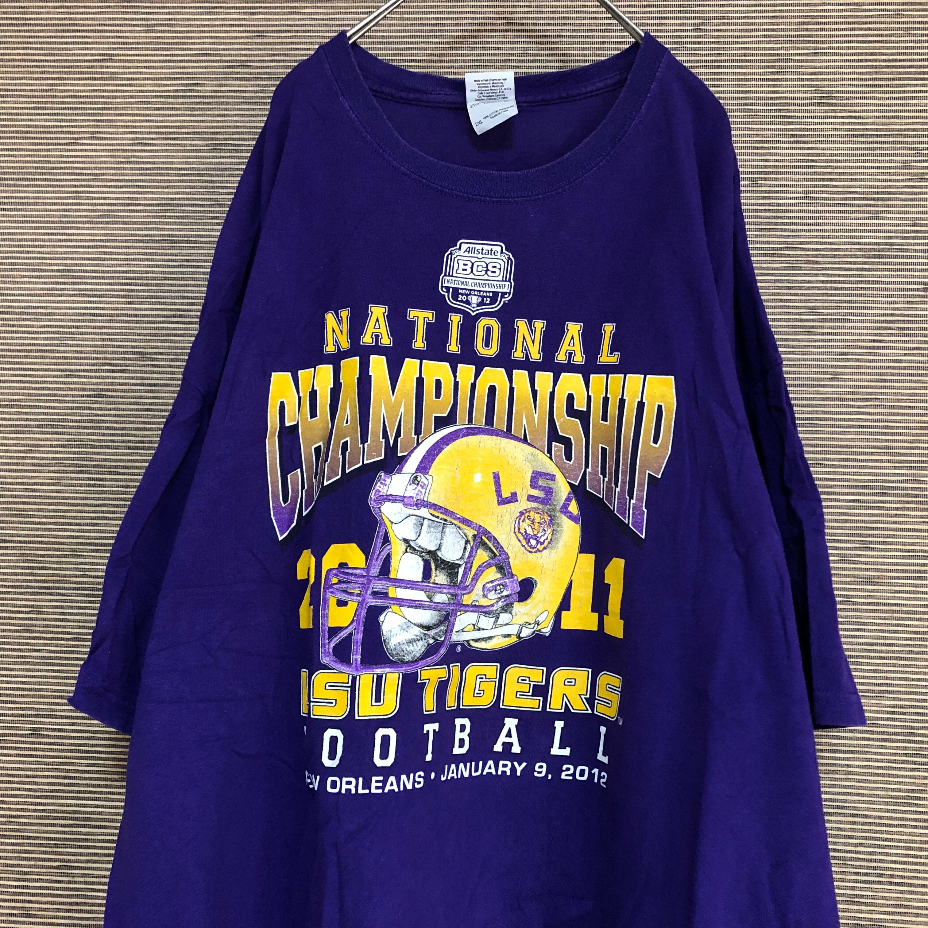 ギルダン 半袖Tシャツ アメフト カレッジロゴ LSDタイガー 紫パープル60 古着 激レア 希少 人気 ビッグサイズ