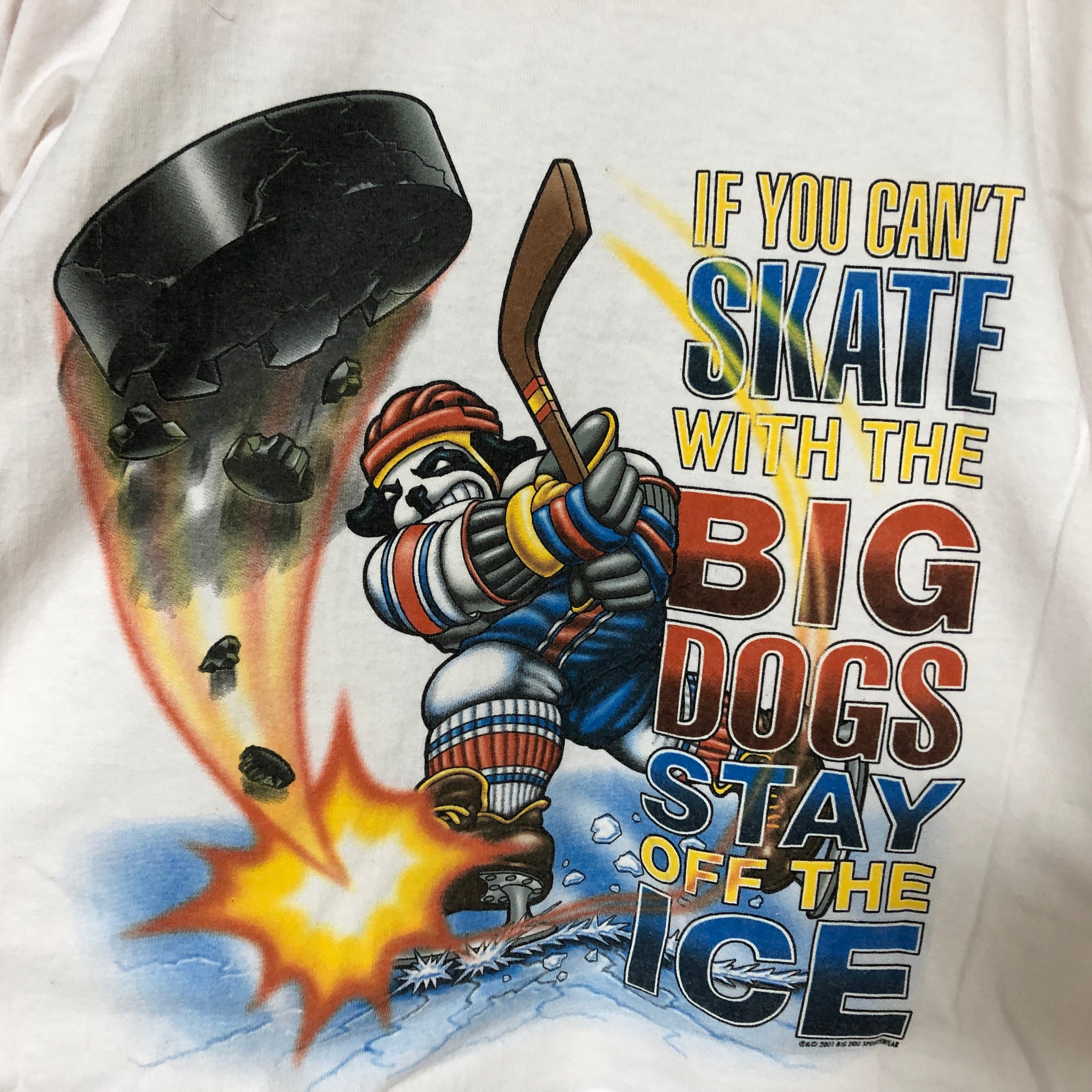 アニマル 半袖Tシャツ パンダ 犬 アイスホッケー バックプリント 白42 古着 ビッグサイズ ゆるだぼ