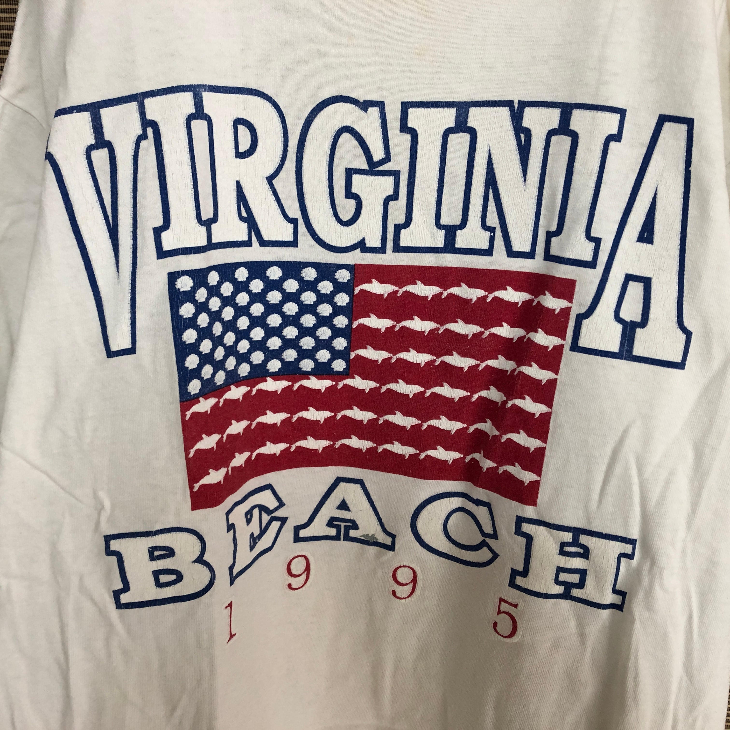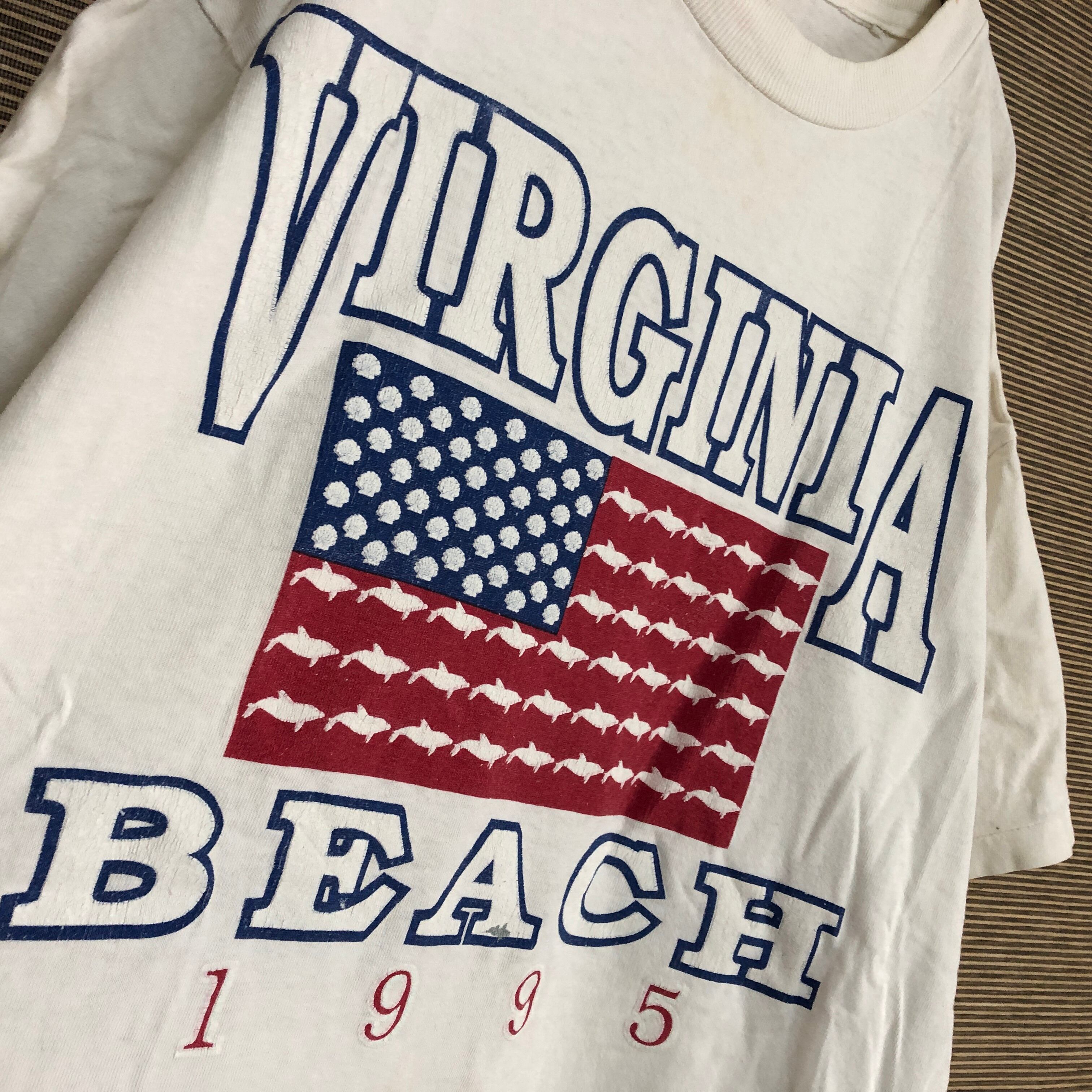 デルタ 半袖TシャツUSA製 ヴァージニアビーチ イルカ 総柄 ビンテージ44 古着 デカプリント ビッグプリント 90年代