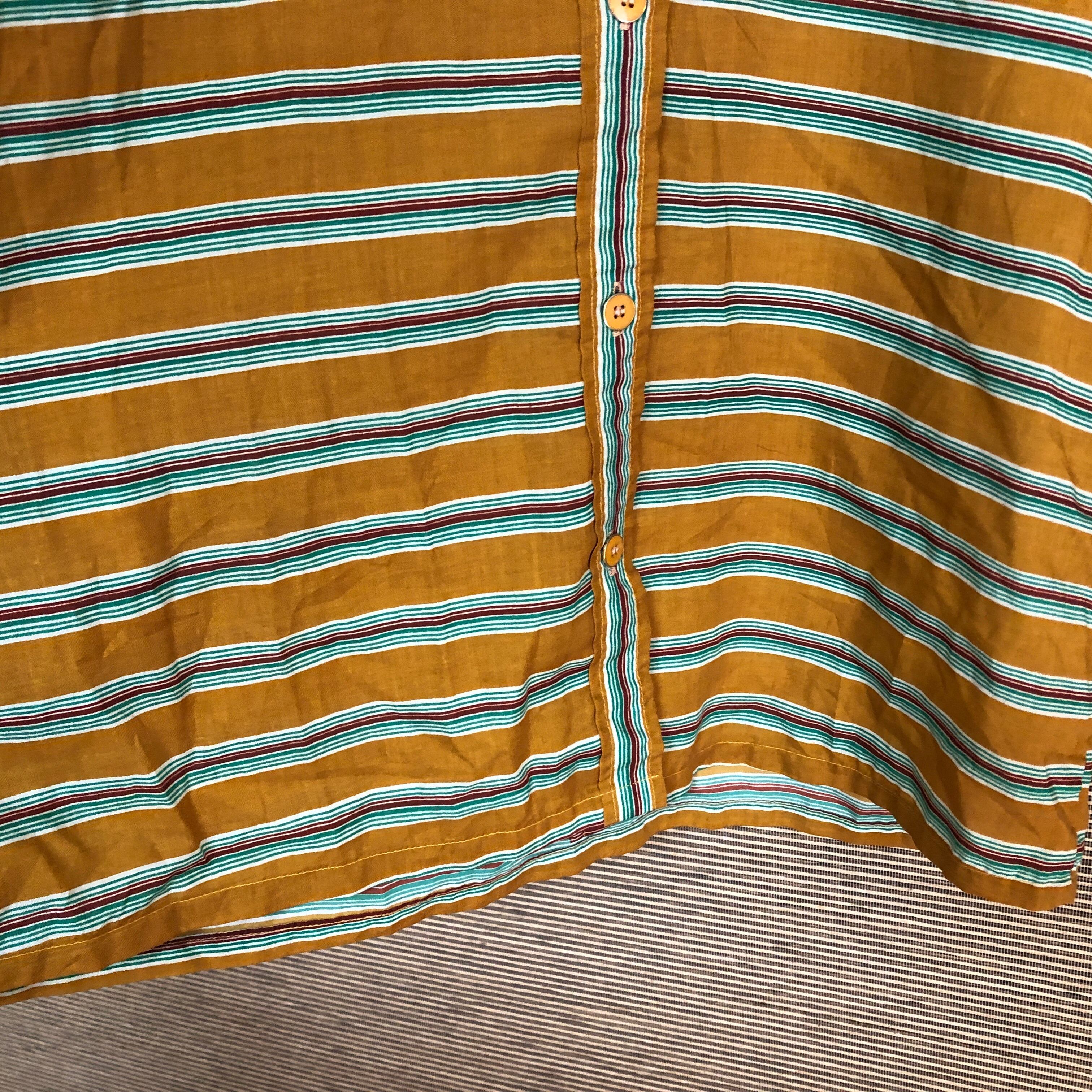 柄シャツ 長袖シャツ 総柄 幾何学 ボーダー ストライプ ブラウン 茶色11 古着 昭和レトロ ビンテージ