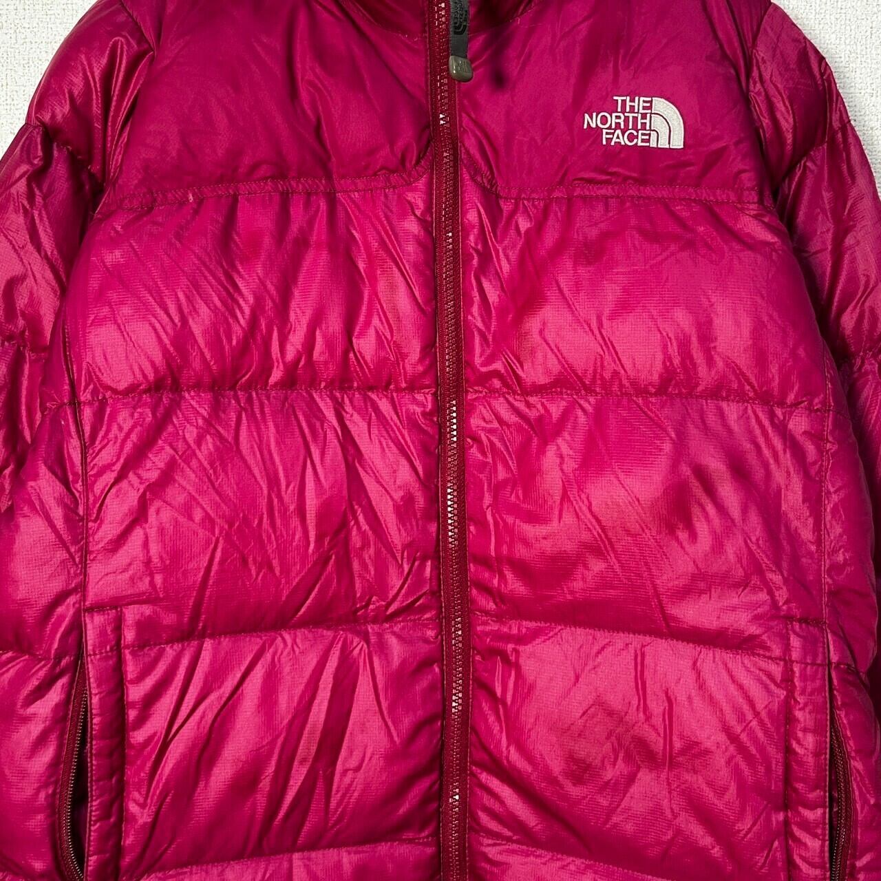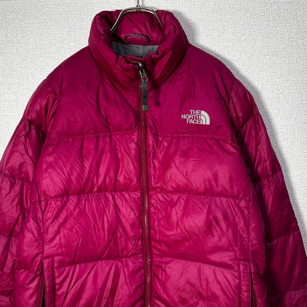 ノースフェイス ダウンジャケット ヌプシ 700 紫ピンク ワンポイントKG 古着 レディース 刺繍ロゴ 袖ロゴ 希少カラー 人気