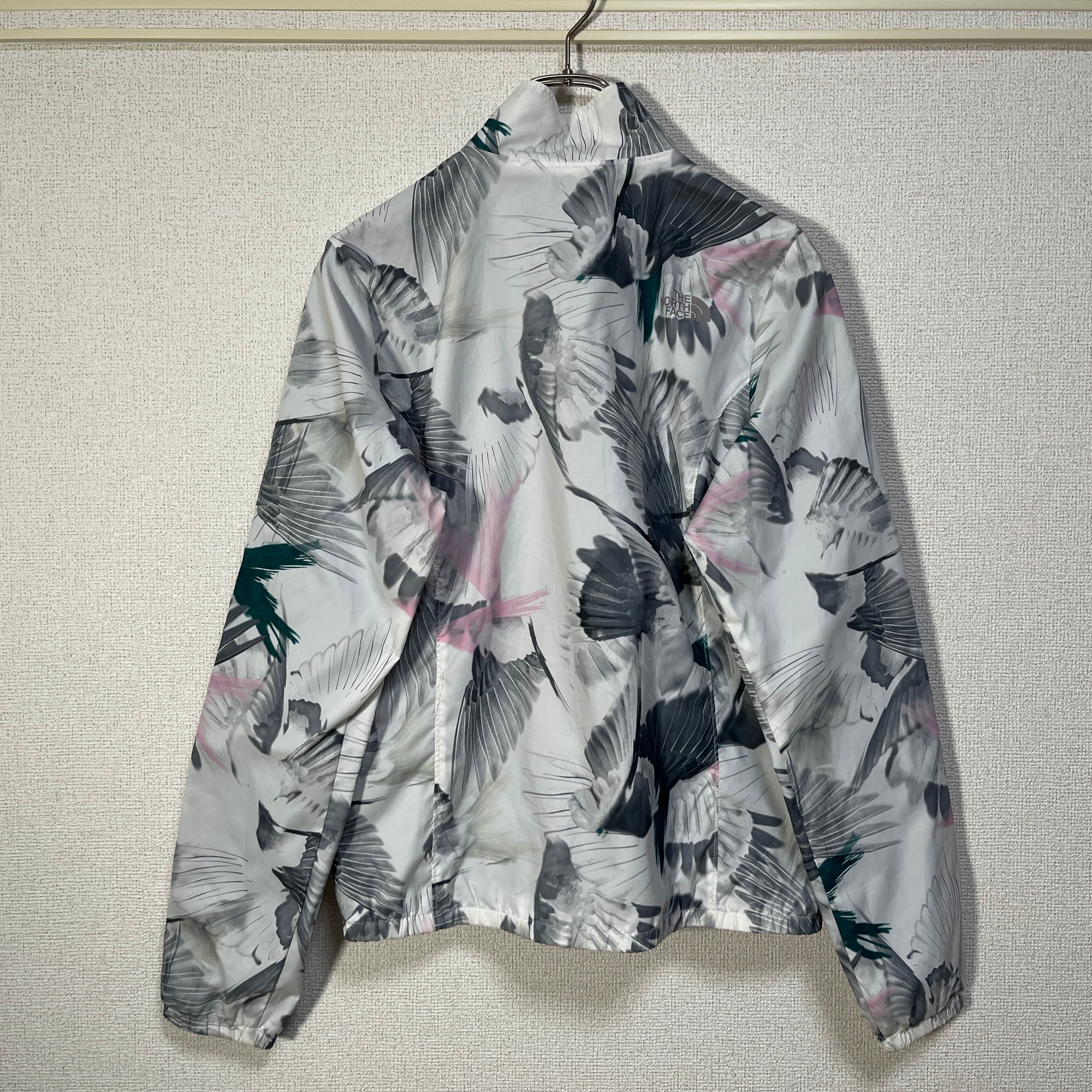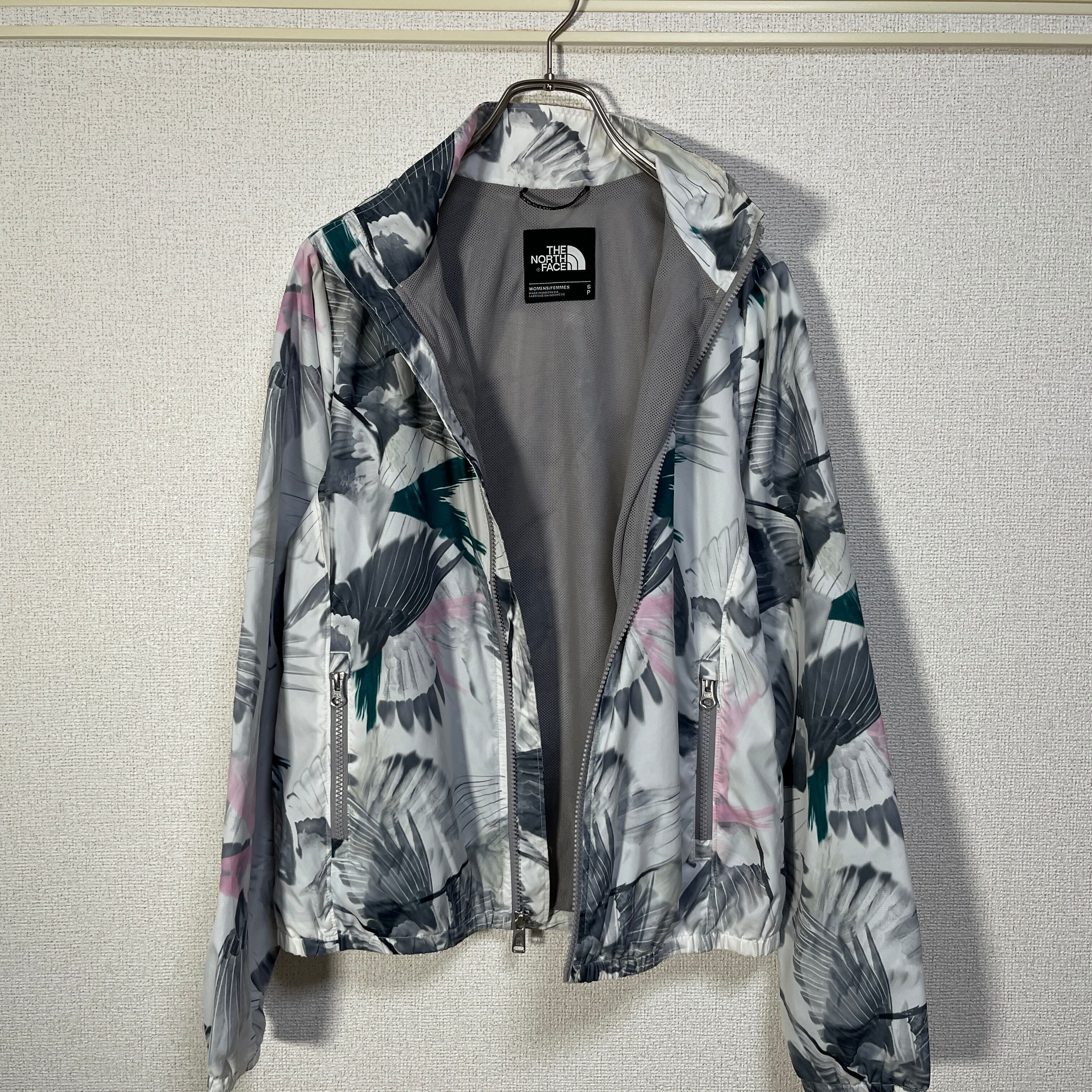 ノースフェイス ナイロンジャケット 総柄 花柄 白ボタニカル ワンポイント15 古着 レディース 人気 プリントロゴ