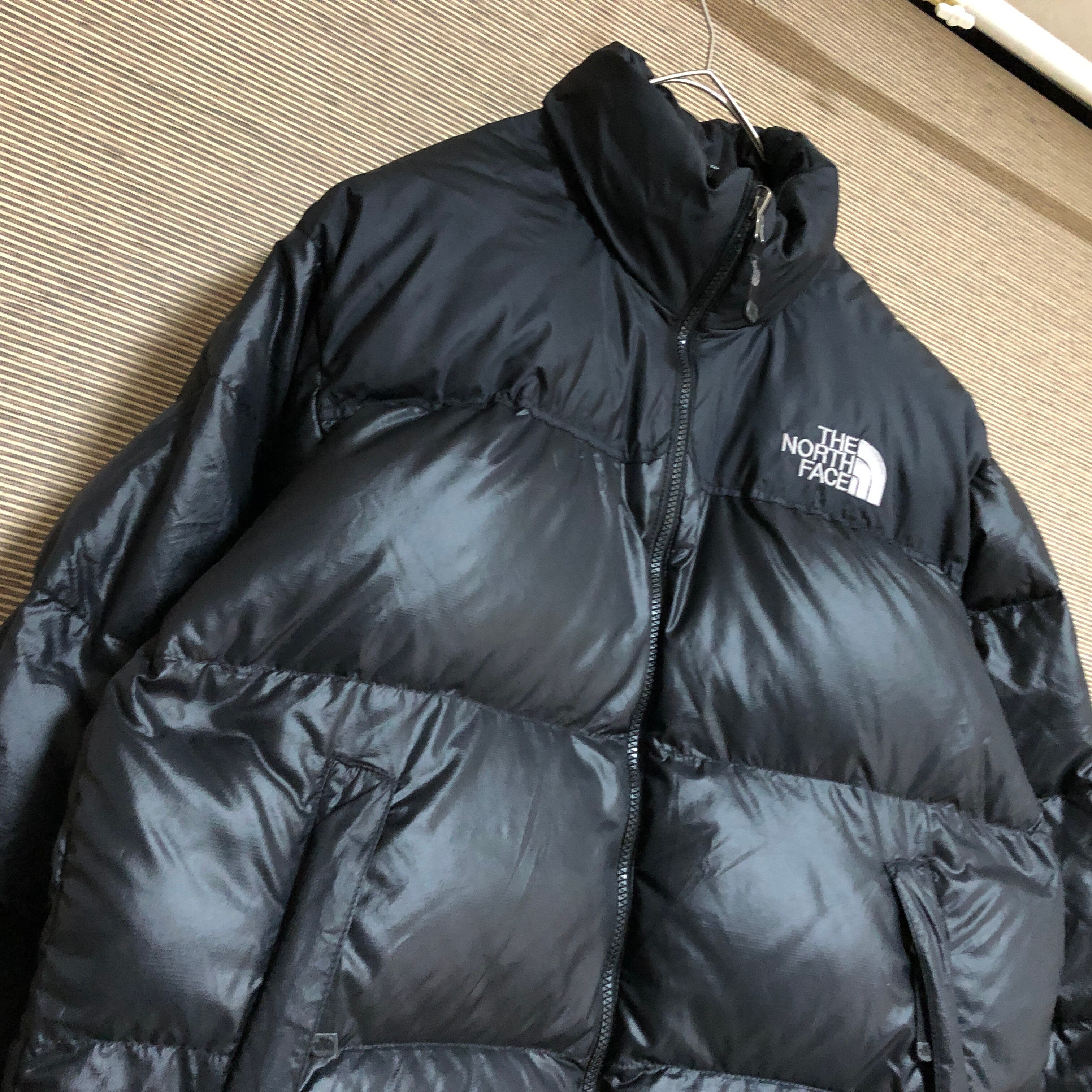 ノースフェイス ダウンジャケット Lヌプシ700 ブラック黒 ワンポイント65k 古着 人気カラー 希少サイズ