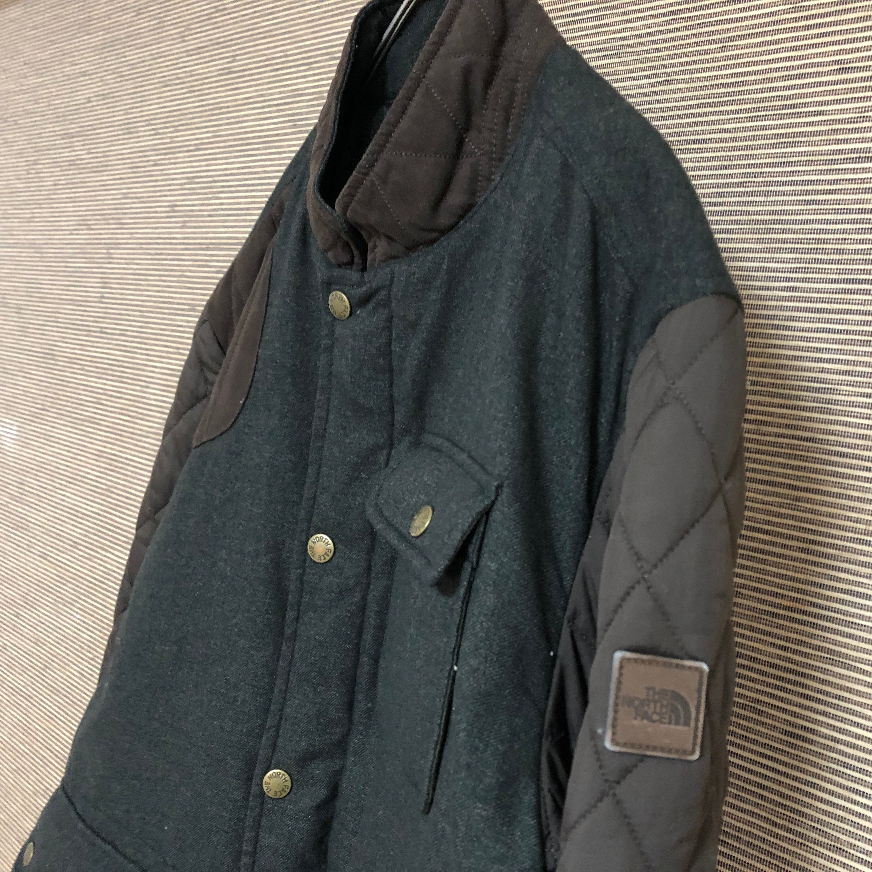ノースフェイス 中綿コート ブルゾン カーキーブラウン ワンポイント肩ロゴ2K 古着 VX 韓国限定ホワイトレーベル