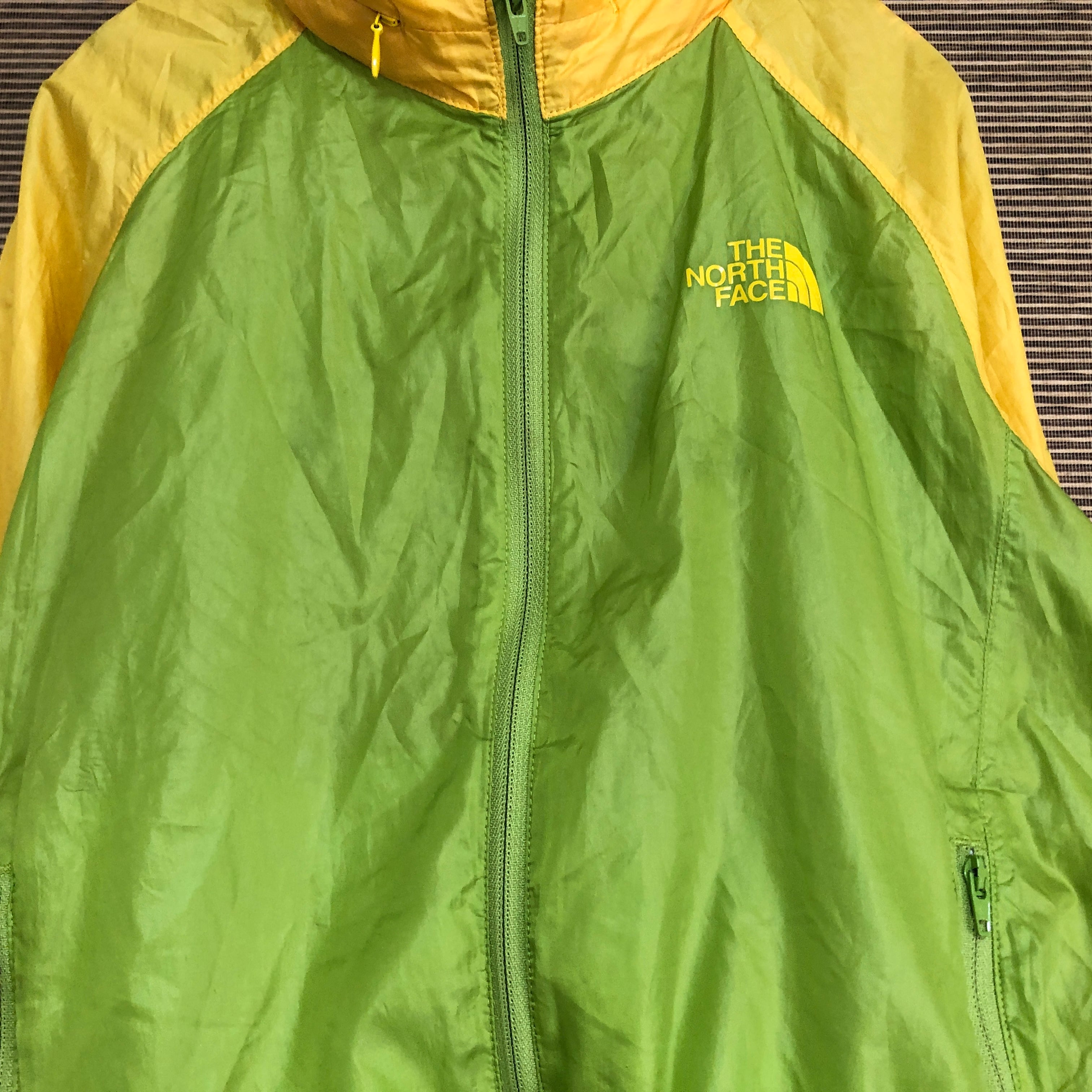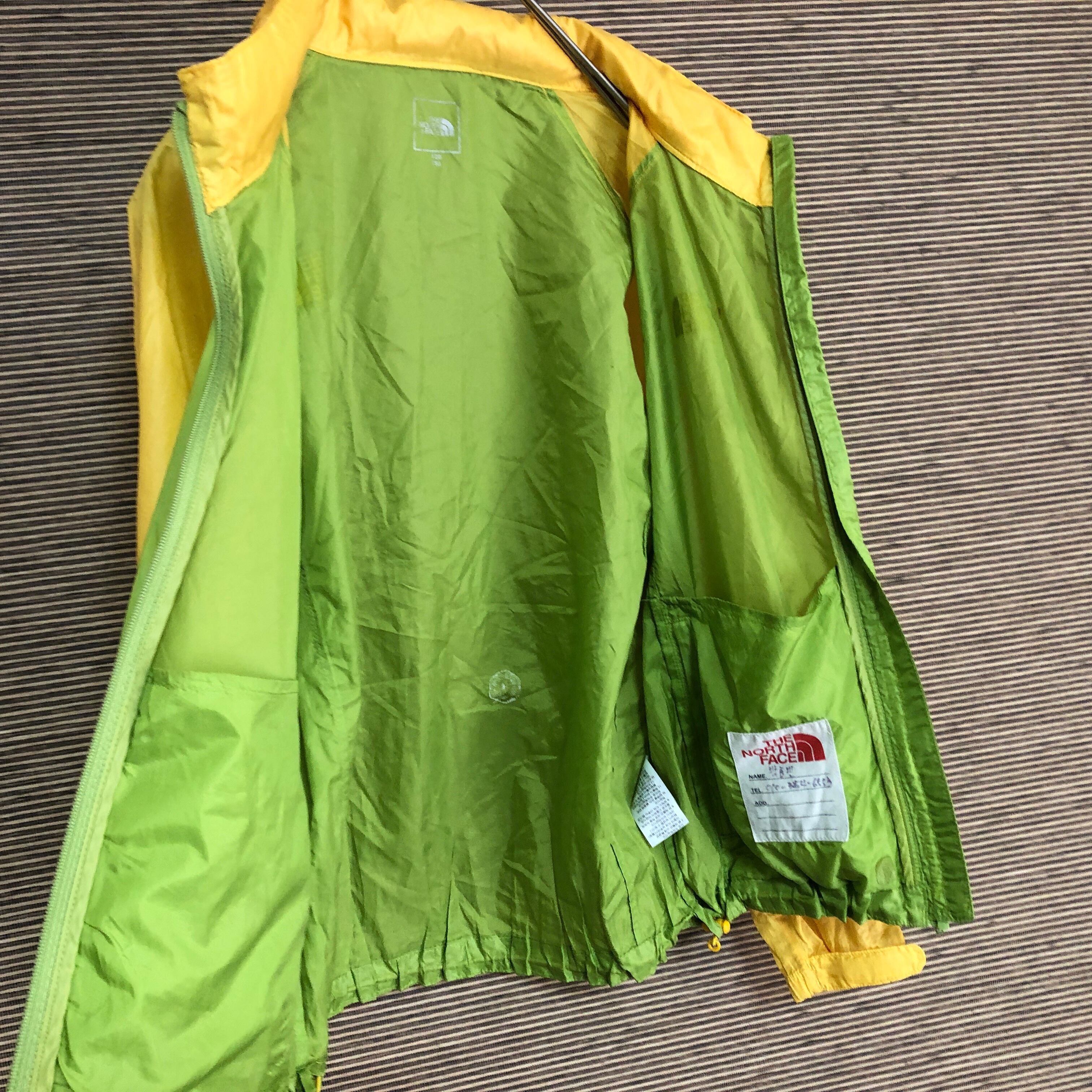 ノースフェイス ナイロンジャケットパーカー 子供120 黄緑 薄手キッズP1 古着 訳あり激安 ワンポイントロゴ