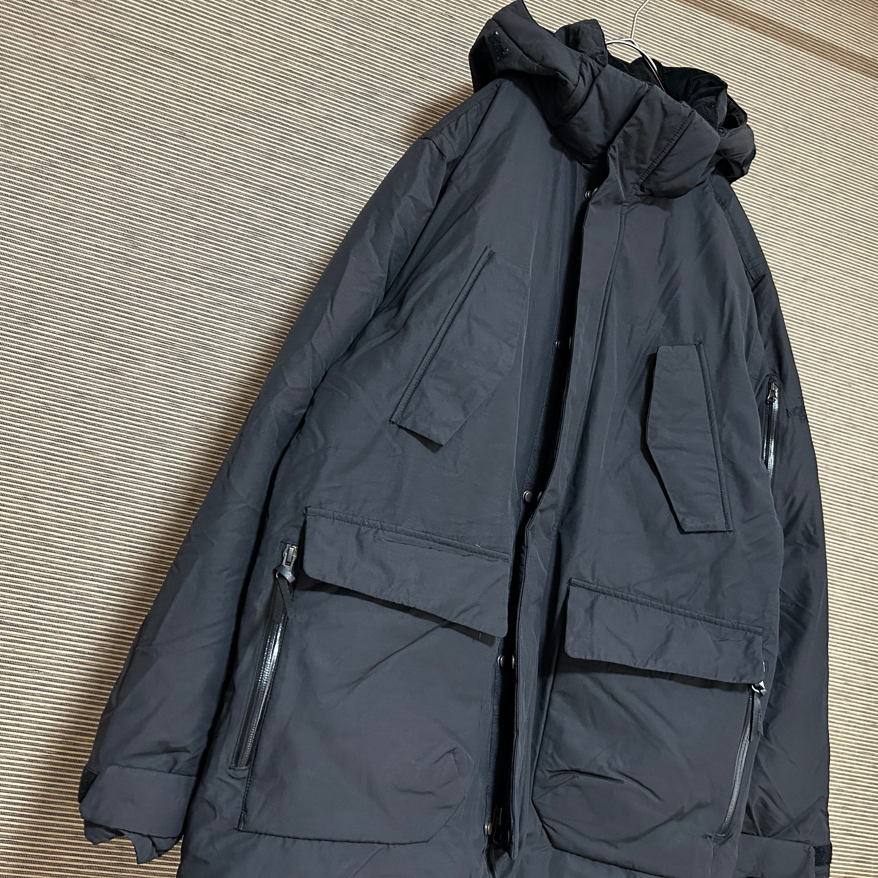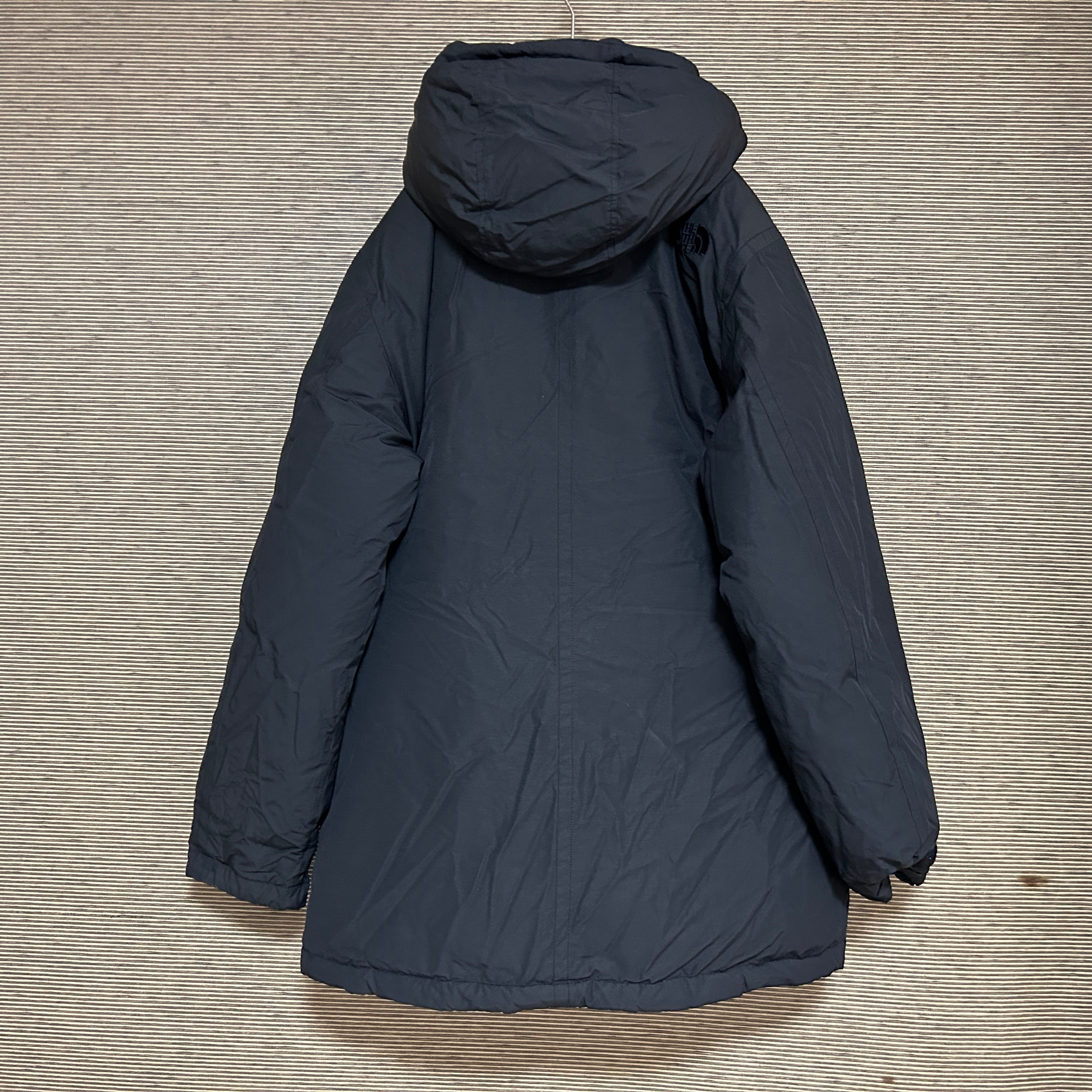 ノースフェイス ロングダウンコート 黒ブラック 刺繍ワンポイント肩ロゴ7K 古着 人気 袖ロゴスリーブロゴ proheat 韓国限定ホワイトレーベル