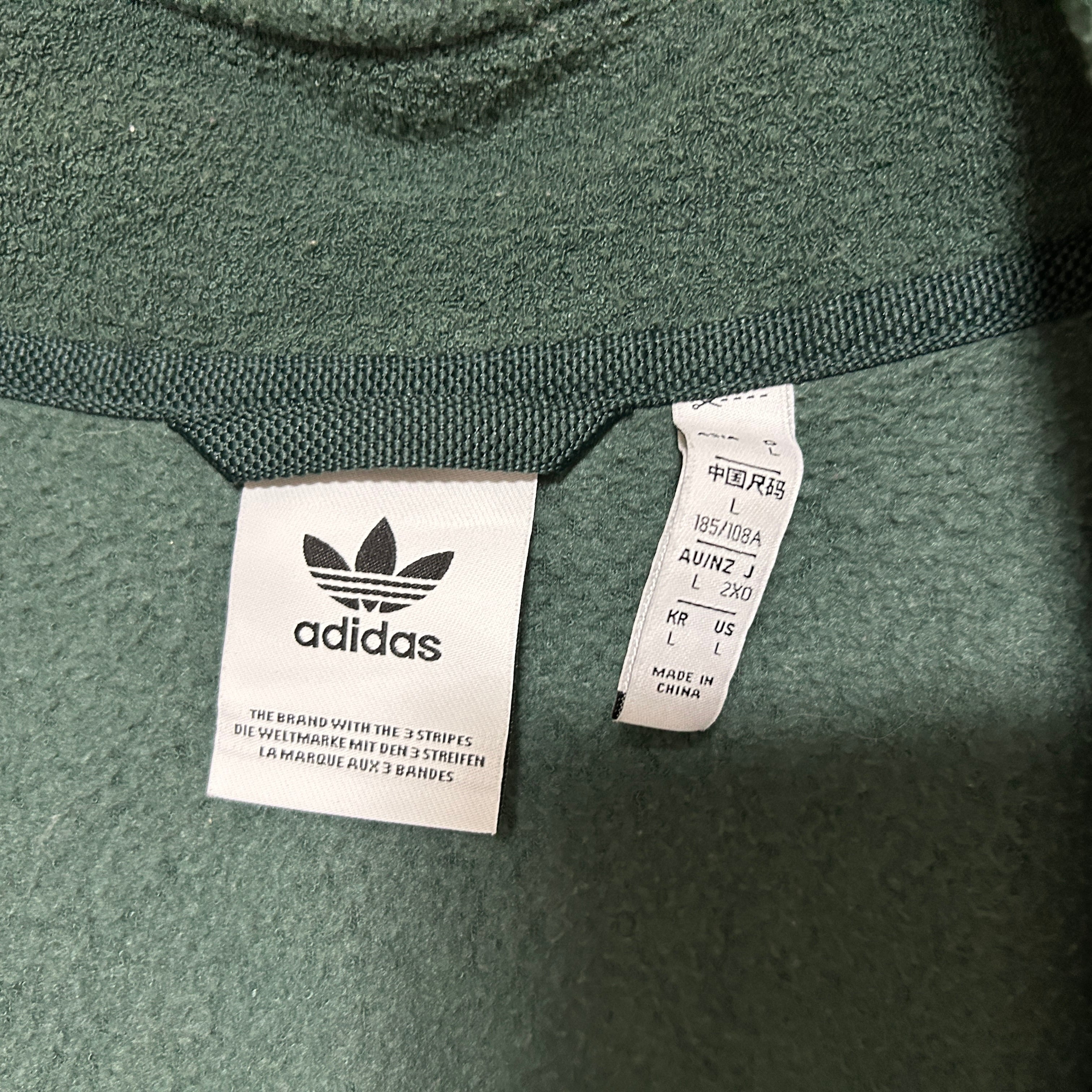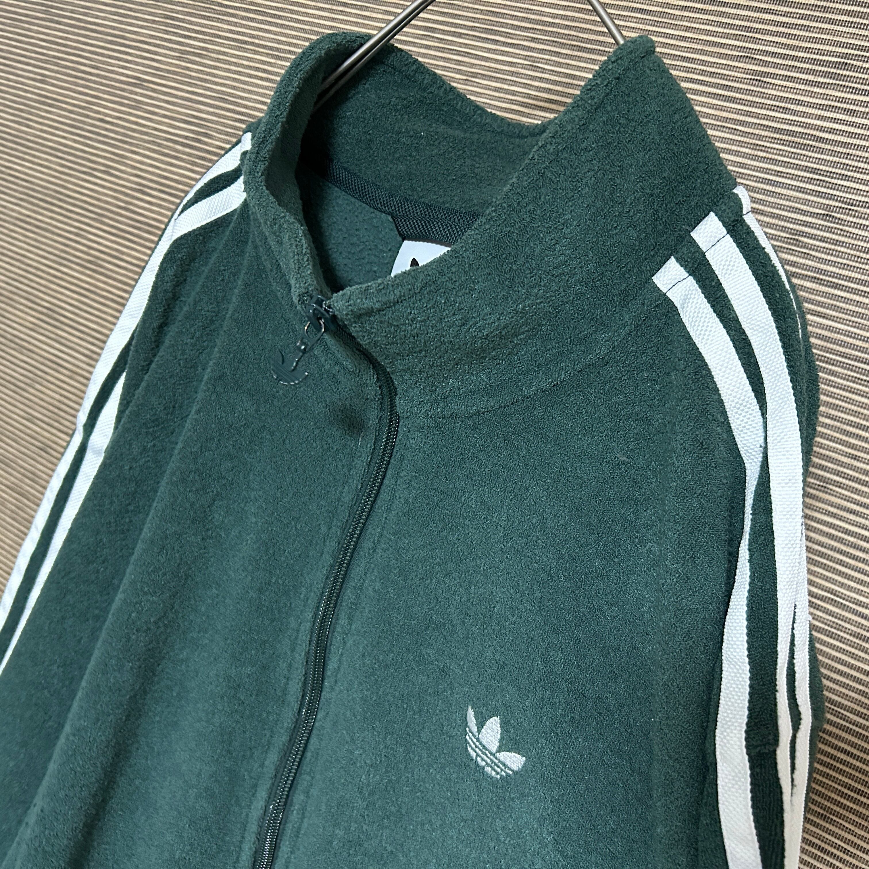 アディダス ジャージ トラックジャケットパイルトレフォイル モスグリーンA4 古着 ワンポイントロゴ 刺繍 三本線