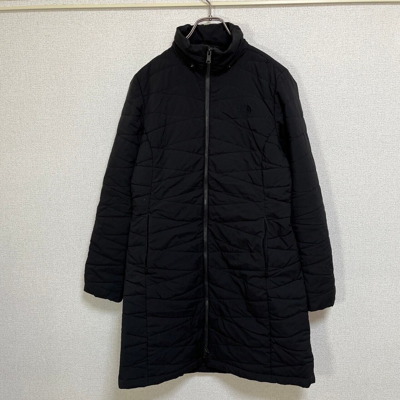 ノースフェイス 中綿ロングジャケット 黒 刺繍 ワンポイント 薄手3K 古着 レディース vmotion 袖ロゴ
