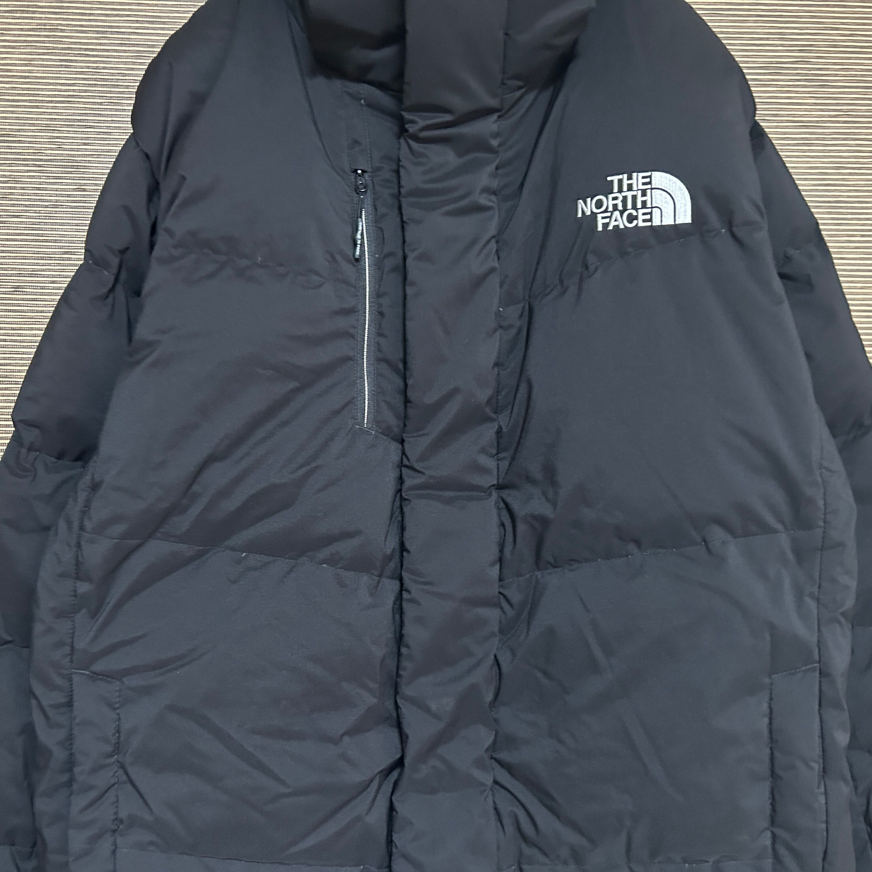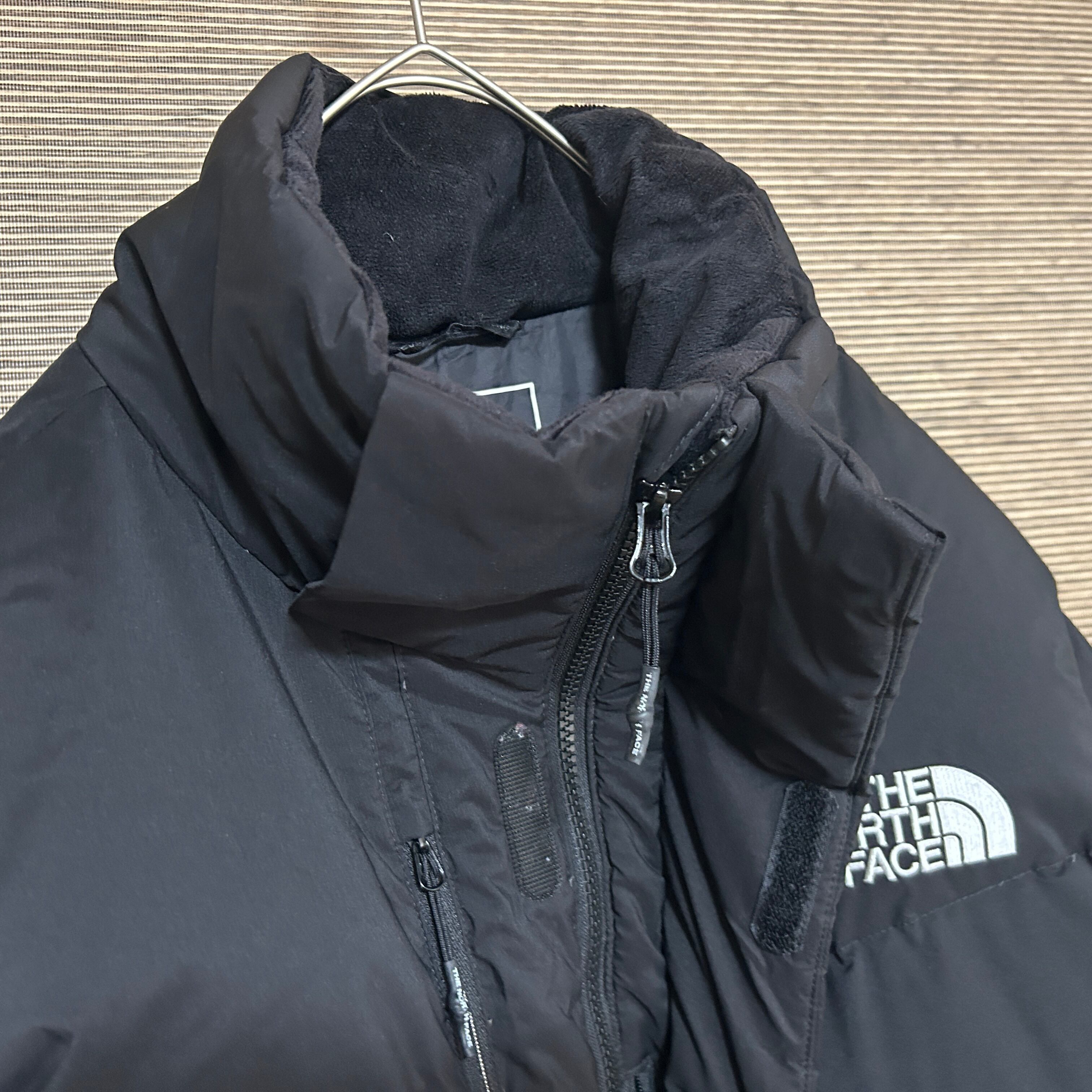 ノースフェイス エアーダウンジャケット 黒ブラック刺繍 ワンポイント 袖ロゴP4 古着 人気 スリーブロゴ デカロゴ ビッグロゴ