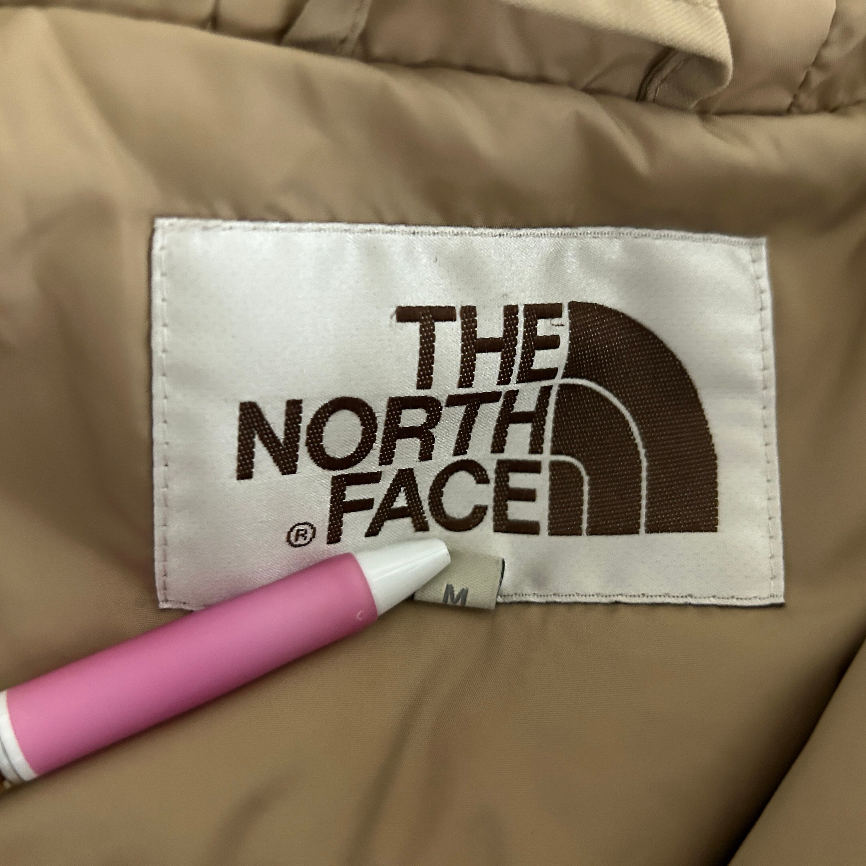ノースフェイス ダウンジャケット ボンバージャケット 刺繍 ベージュ P3 古着 レディース 訳あり激安