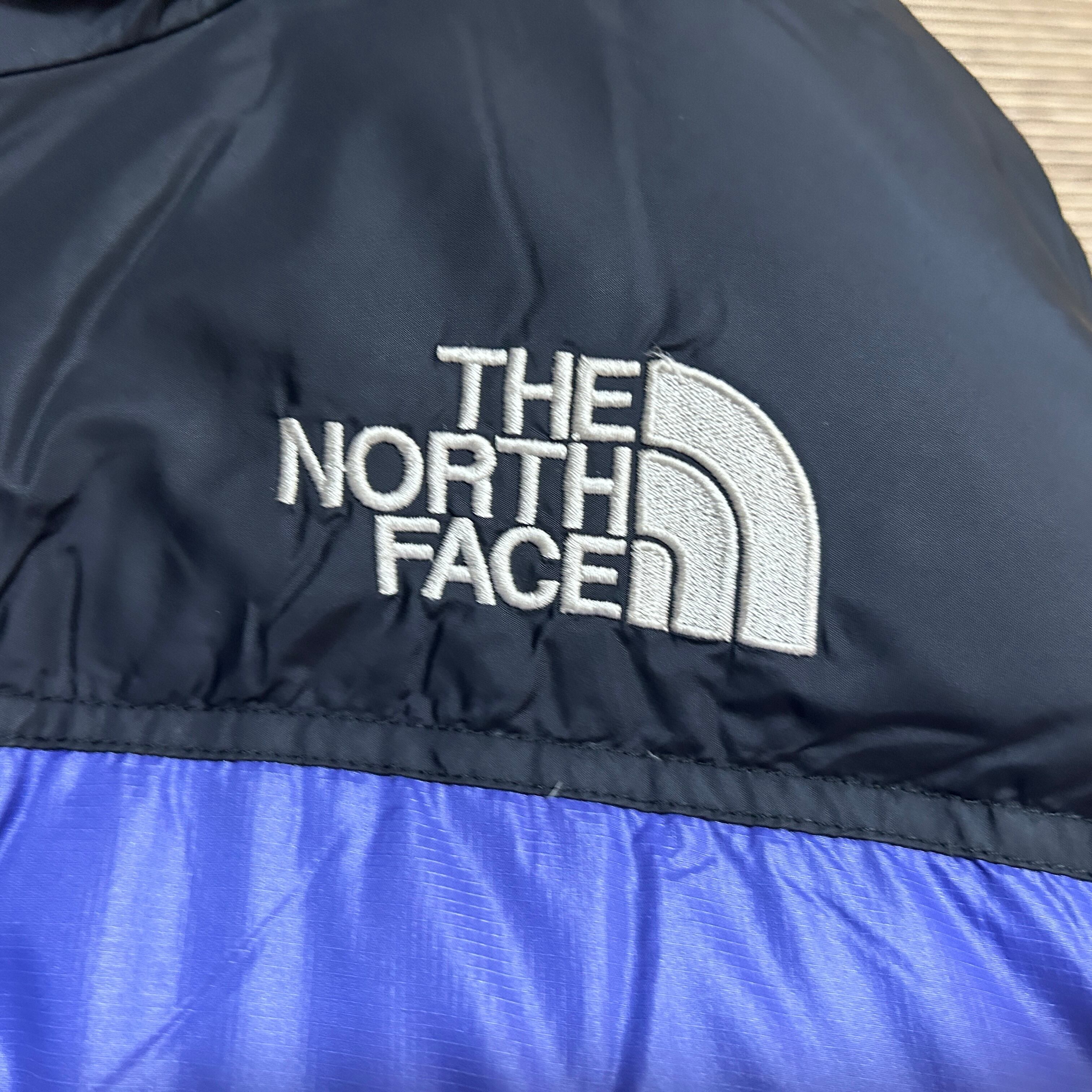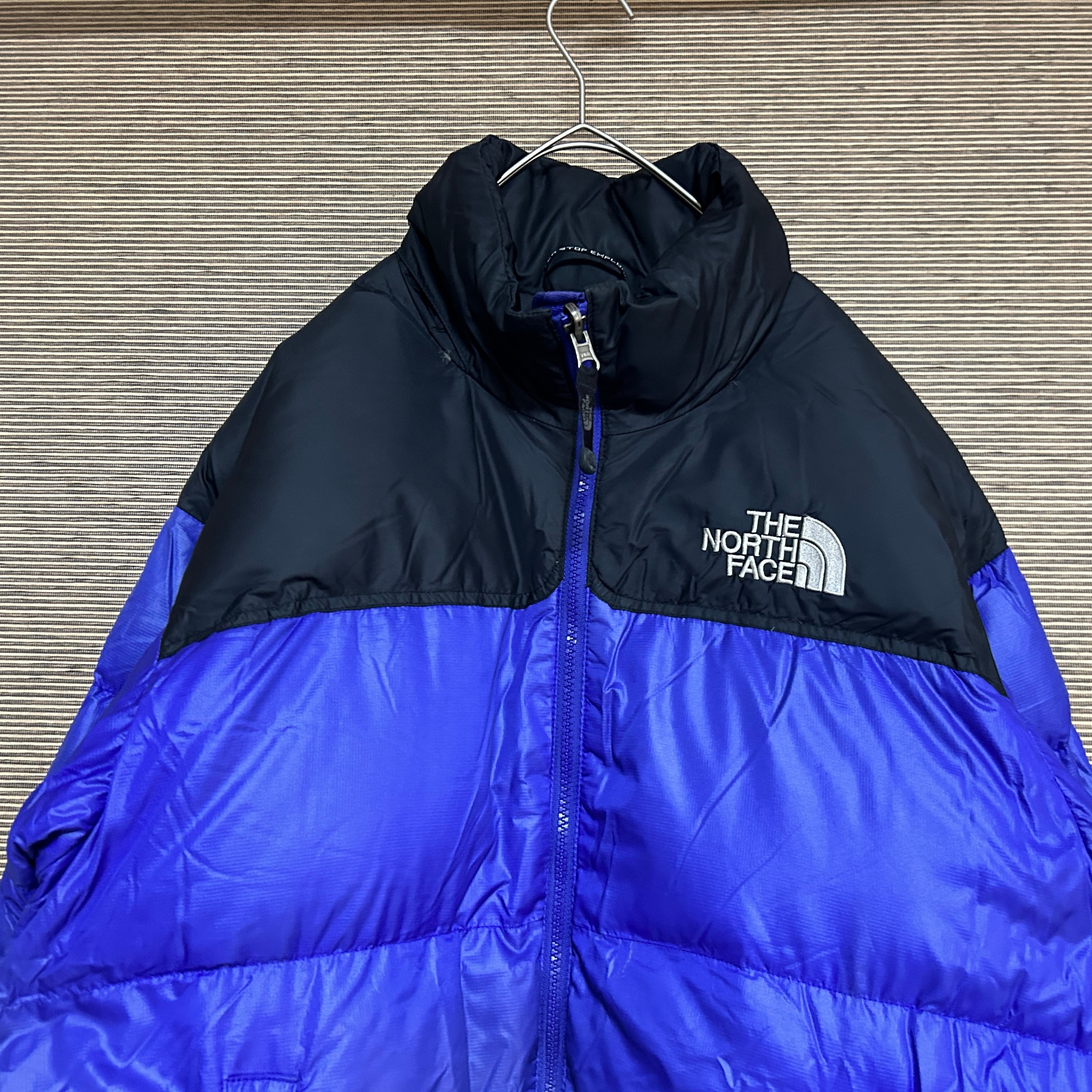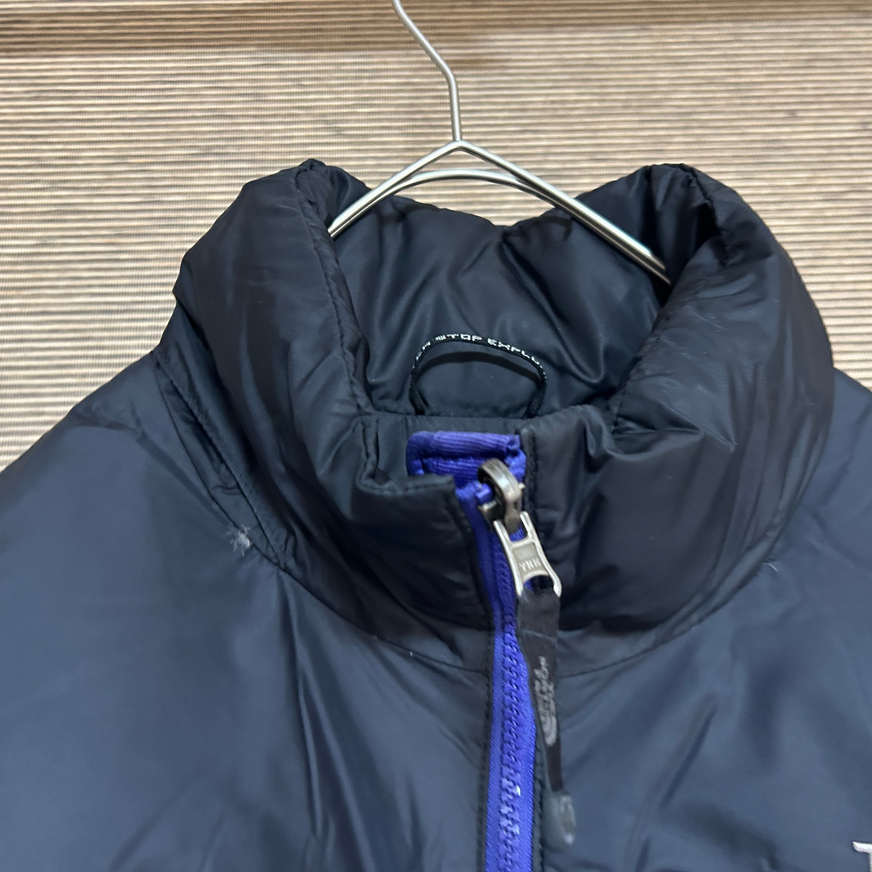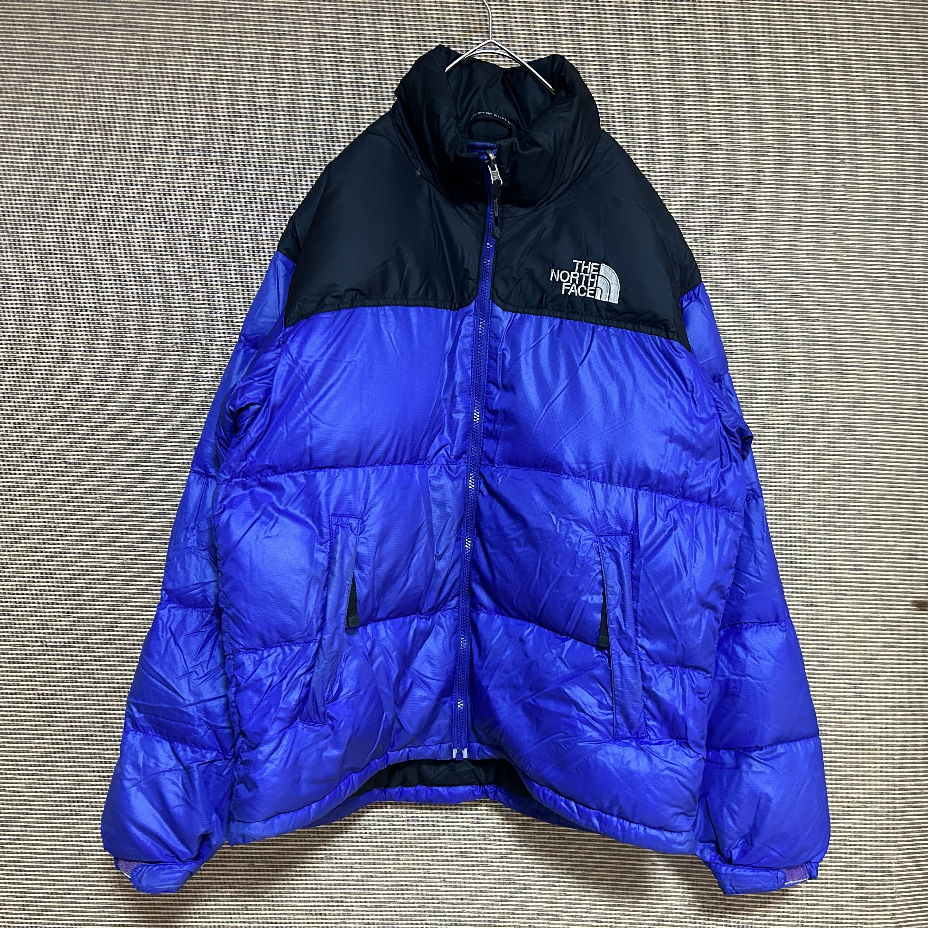 ノースフェイス ダウンジャケット ヌプシ 700 黒パープル ワンポイントP3 古着 刺繍 バイカラー ブラック