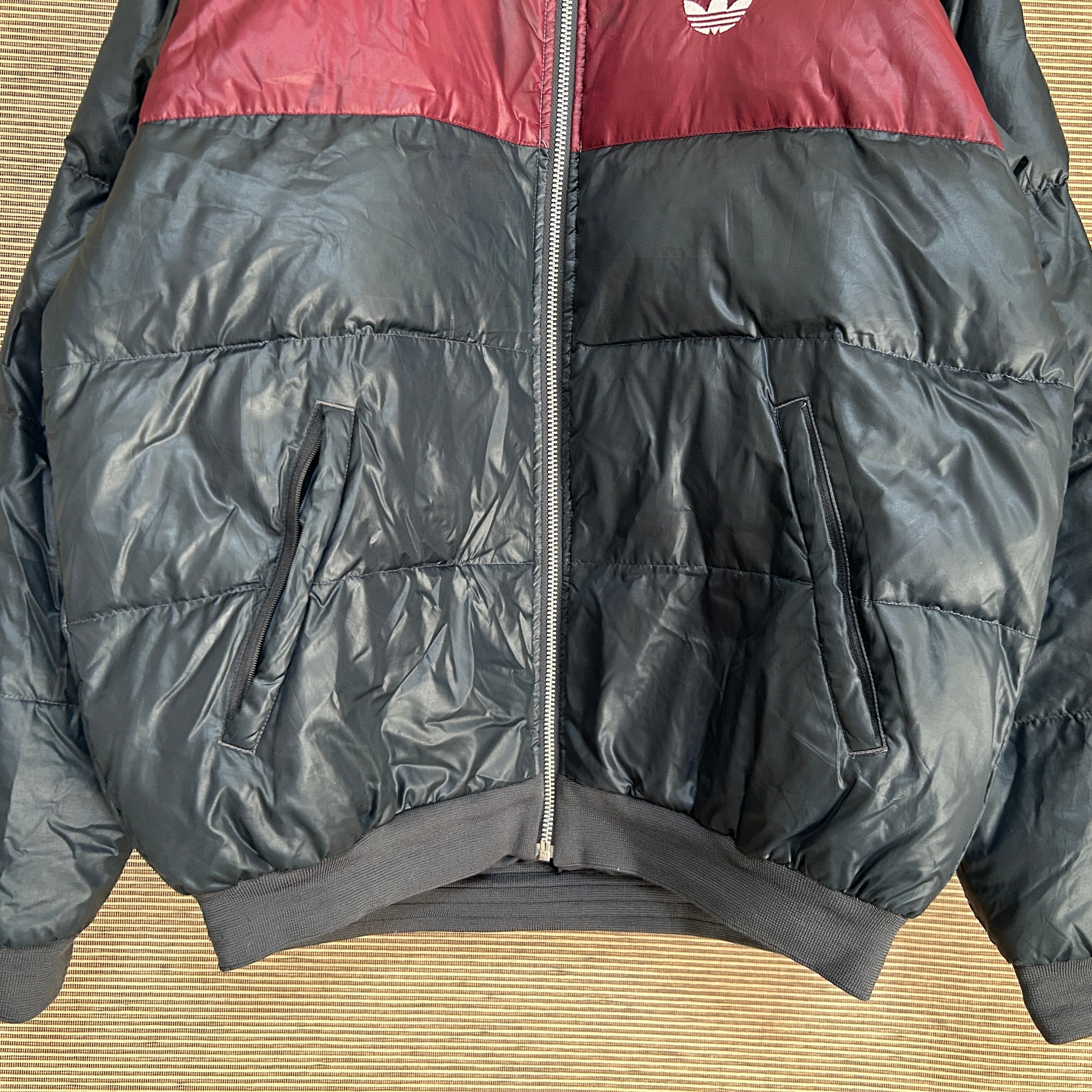 アディダス ダウンジャケット アウター トレフォイルロゴ 刺繍 ボーダー15R 古着 ブルゾン ワンポイントロゴ