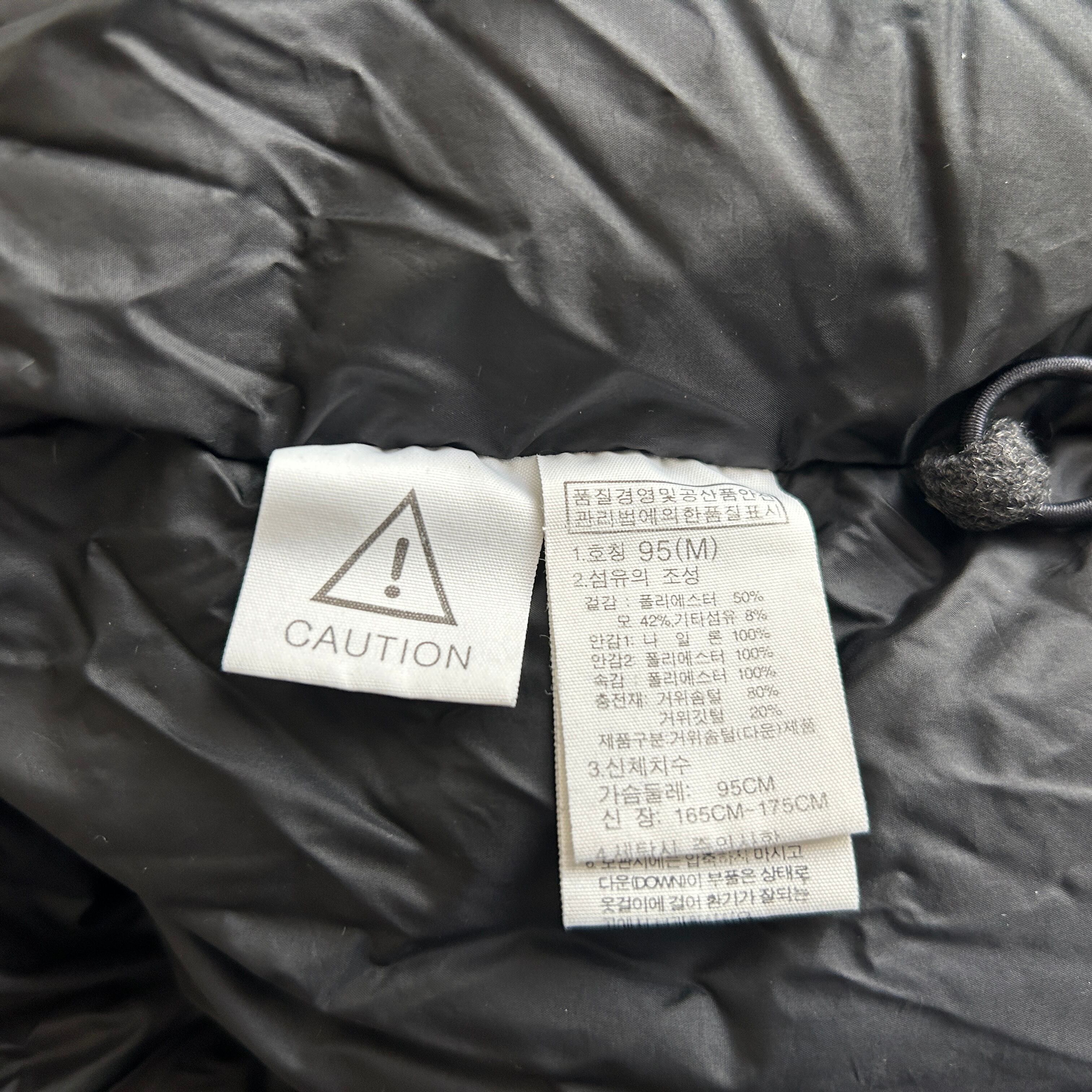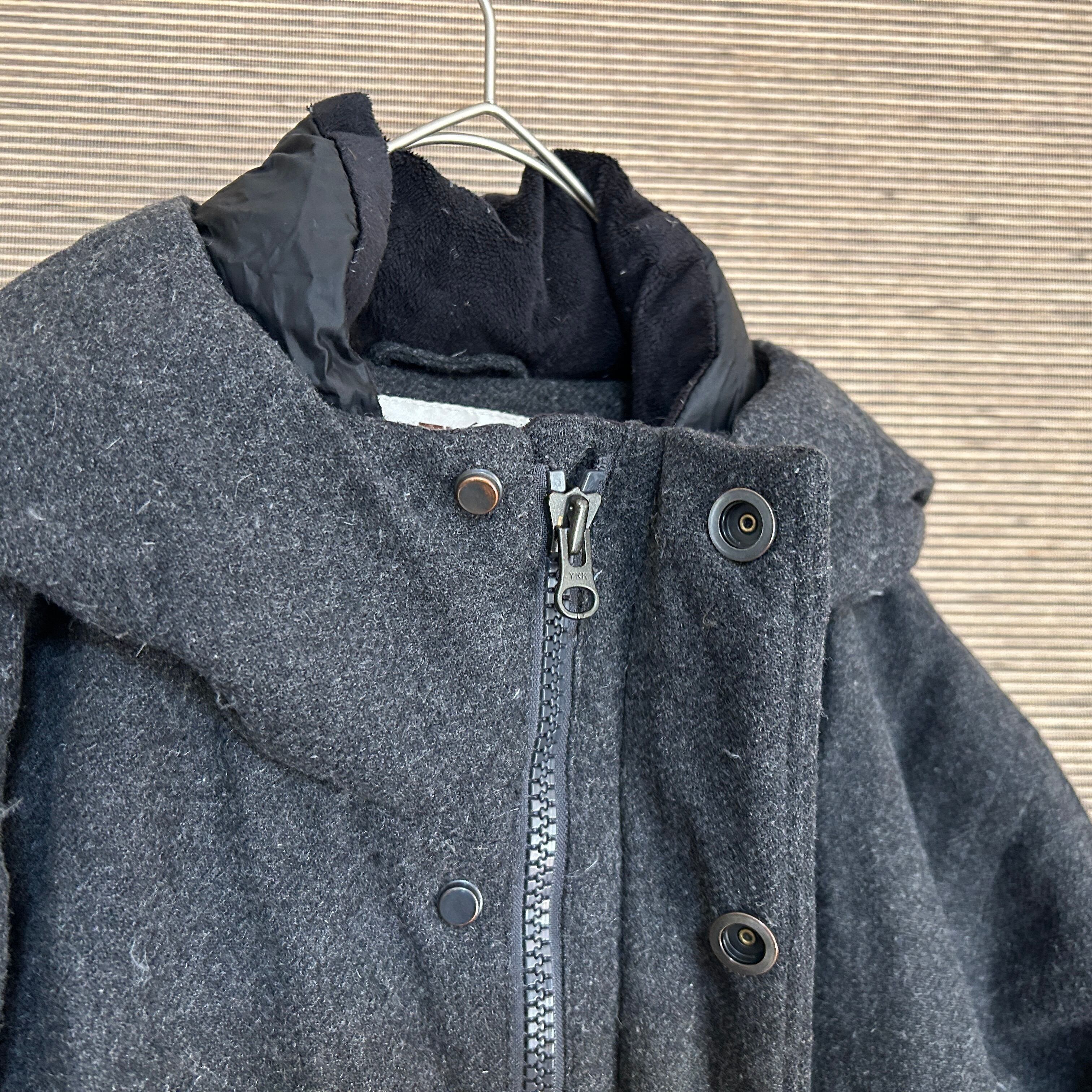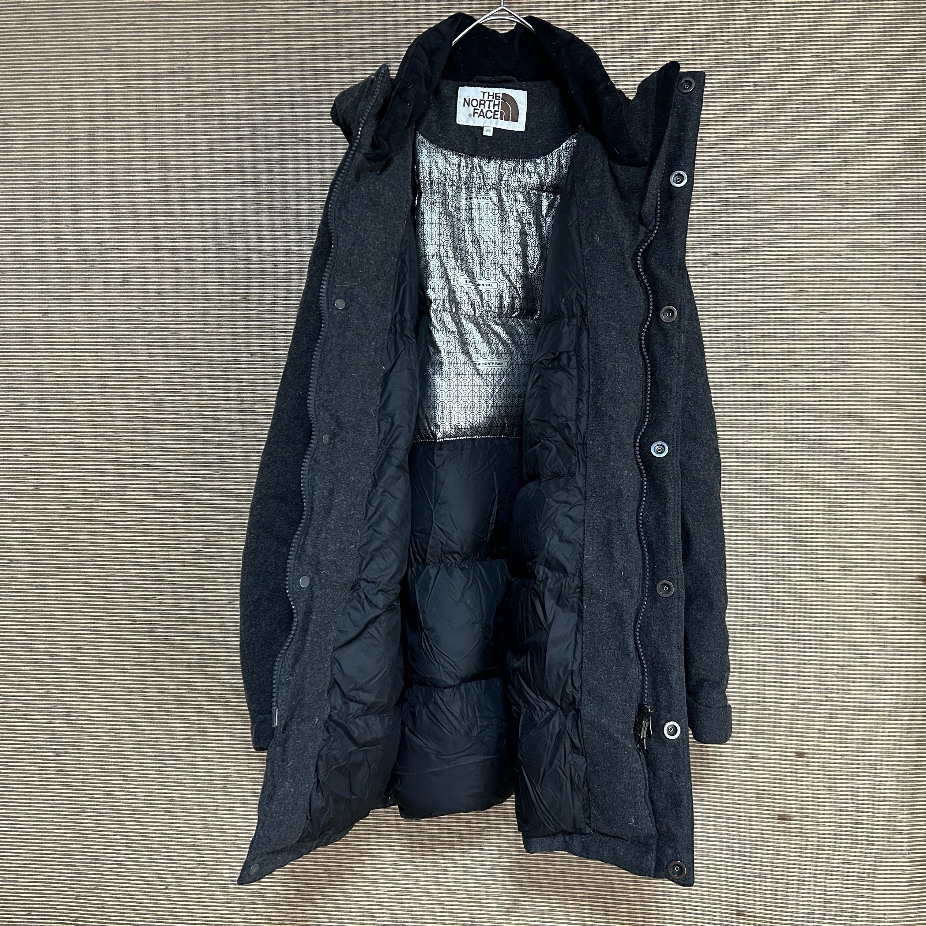 ノースフェイス ウールダウンジャケット ダークグレー刺繍 肩ロゴ 韓国限定6R 古着 ワンポイントロゴ ホワイトレーベル