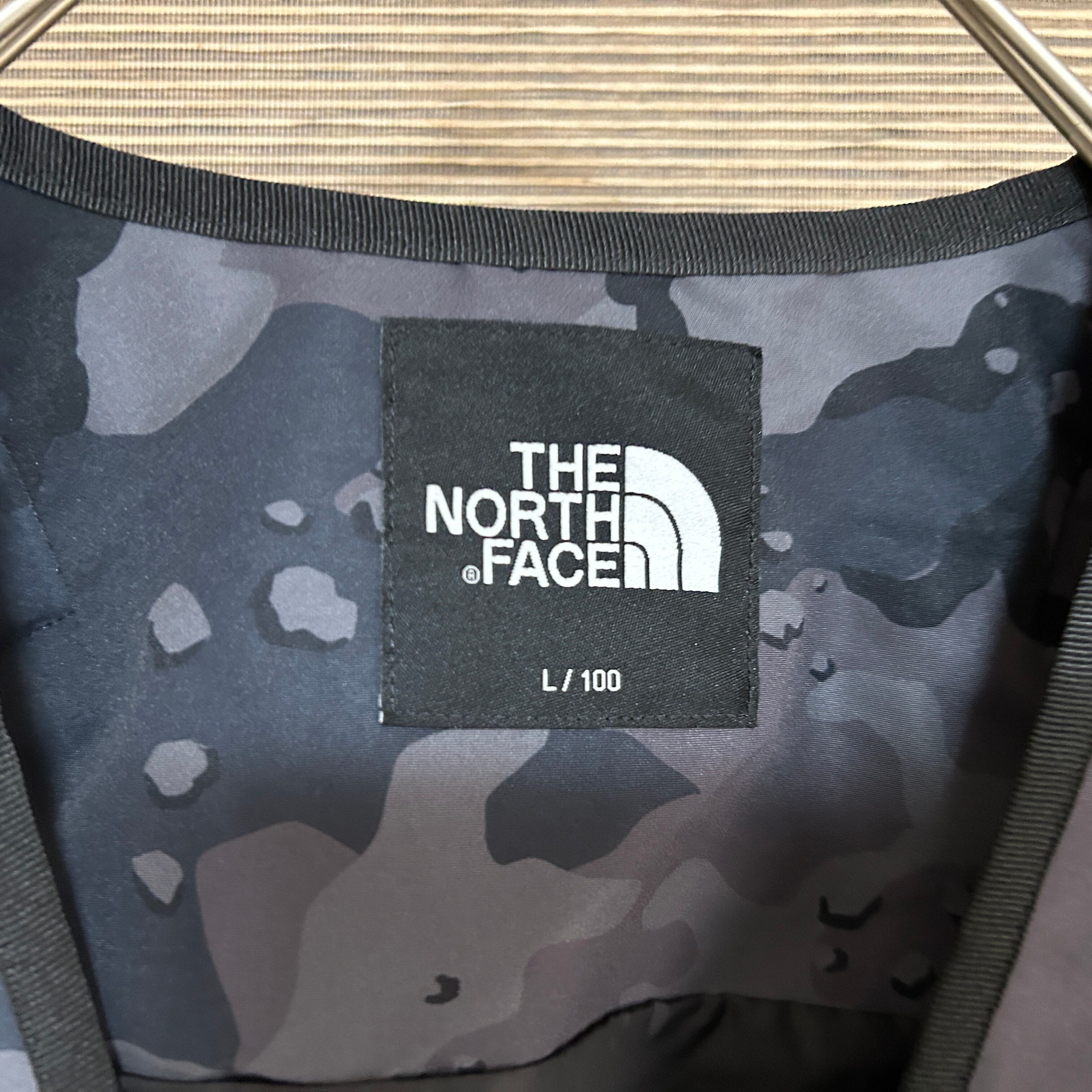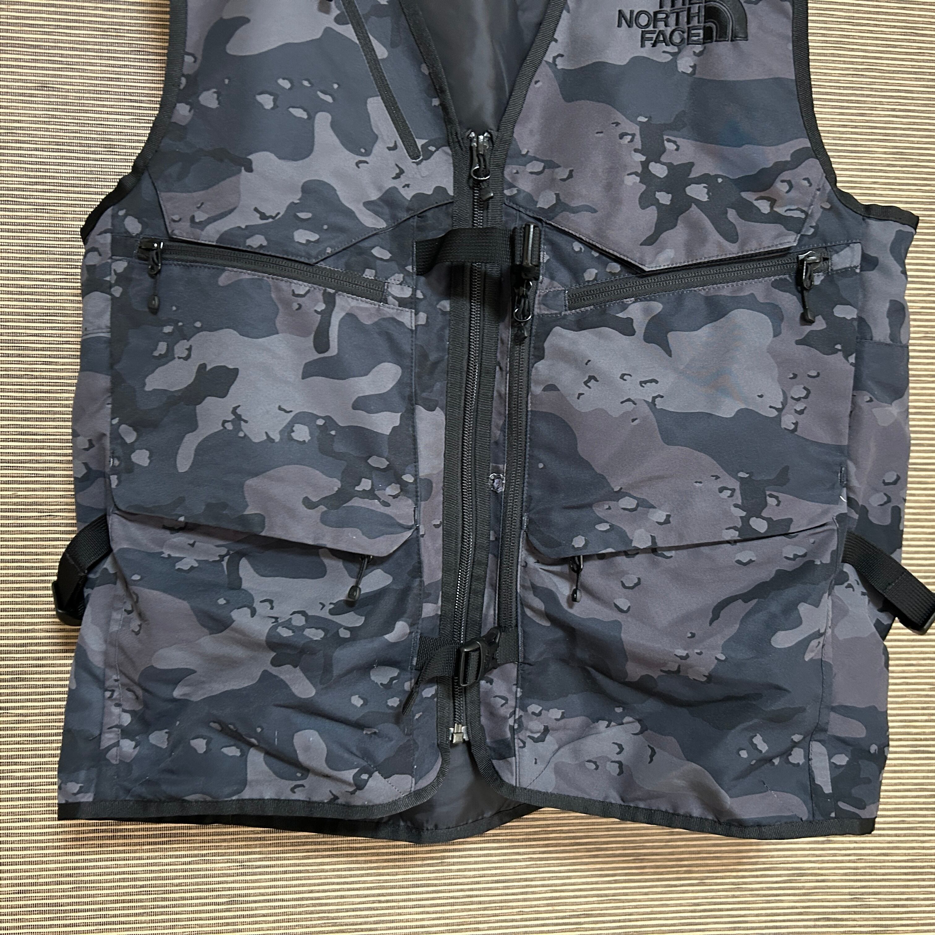 ノースフェイス フィッシングベスト 迷彩 カモフラ グレー刺繍ワンポイントB1 古着 人気 激レア