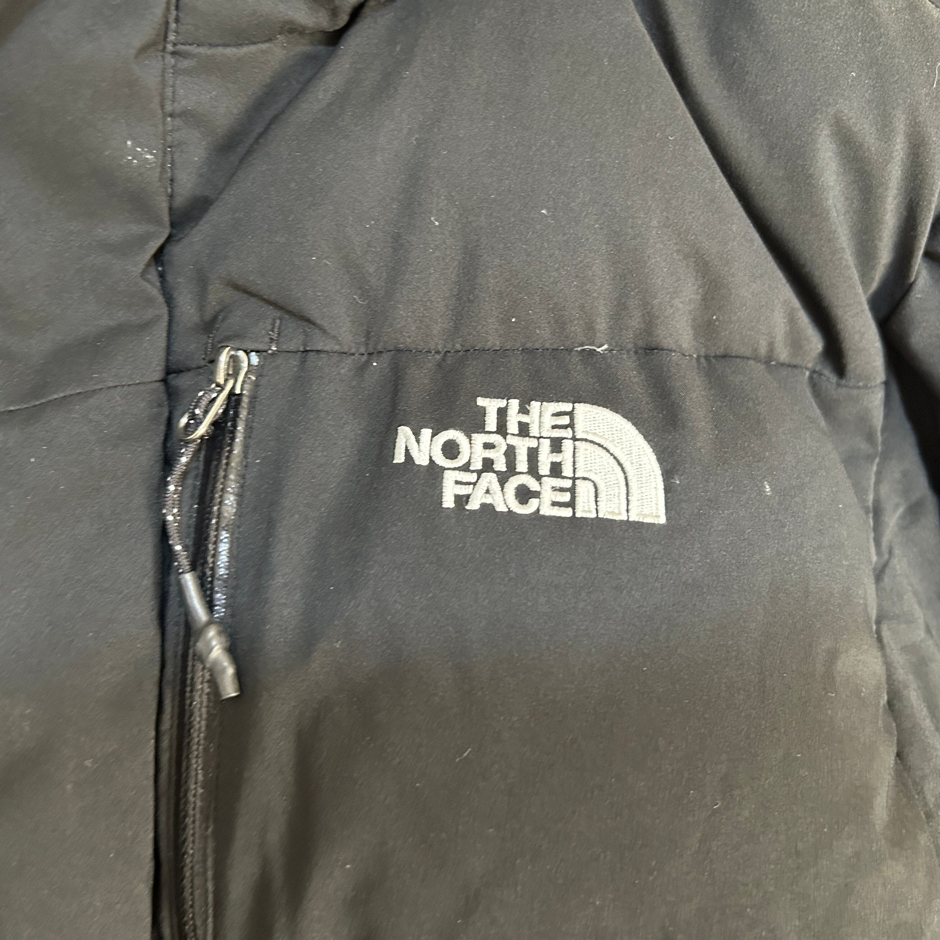ノースフェイス ロングダウンコート ベンチコート 刺繍黒 ブラック子供160C2w 古着 レディース キッズ 人気 ワンポイントロゴ